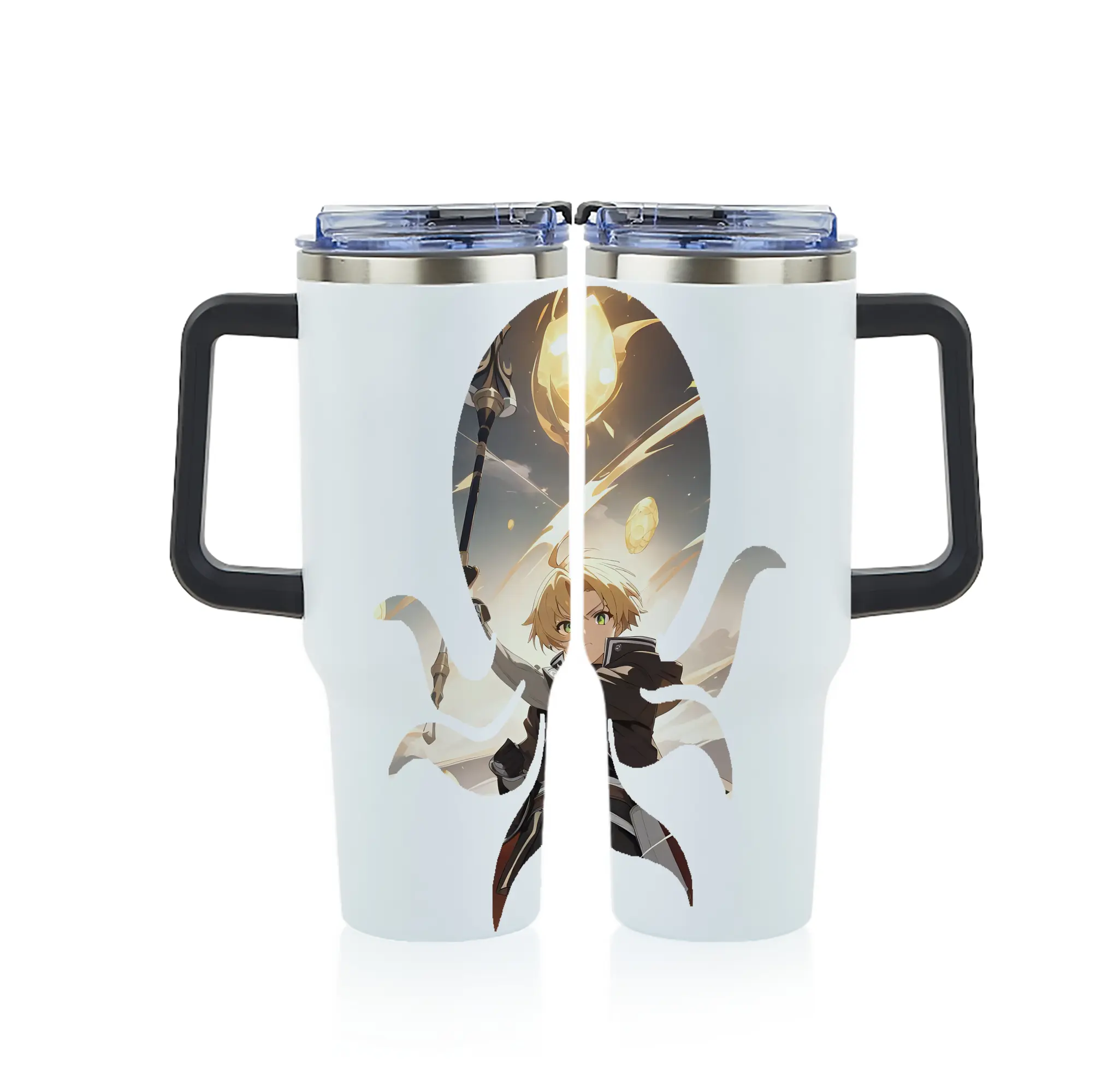 無職転生 グッズ,ルーデウス・グレイラット - 1200mL フルプリント車用タンブラー ・ 304ステンレス 内側 ・ 201ステンレス 外側 ・ 保温 保冷 ・ 通勤 ドライブ アウトドア用