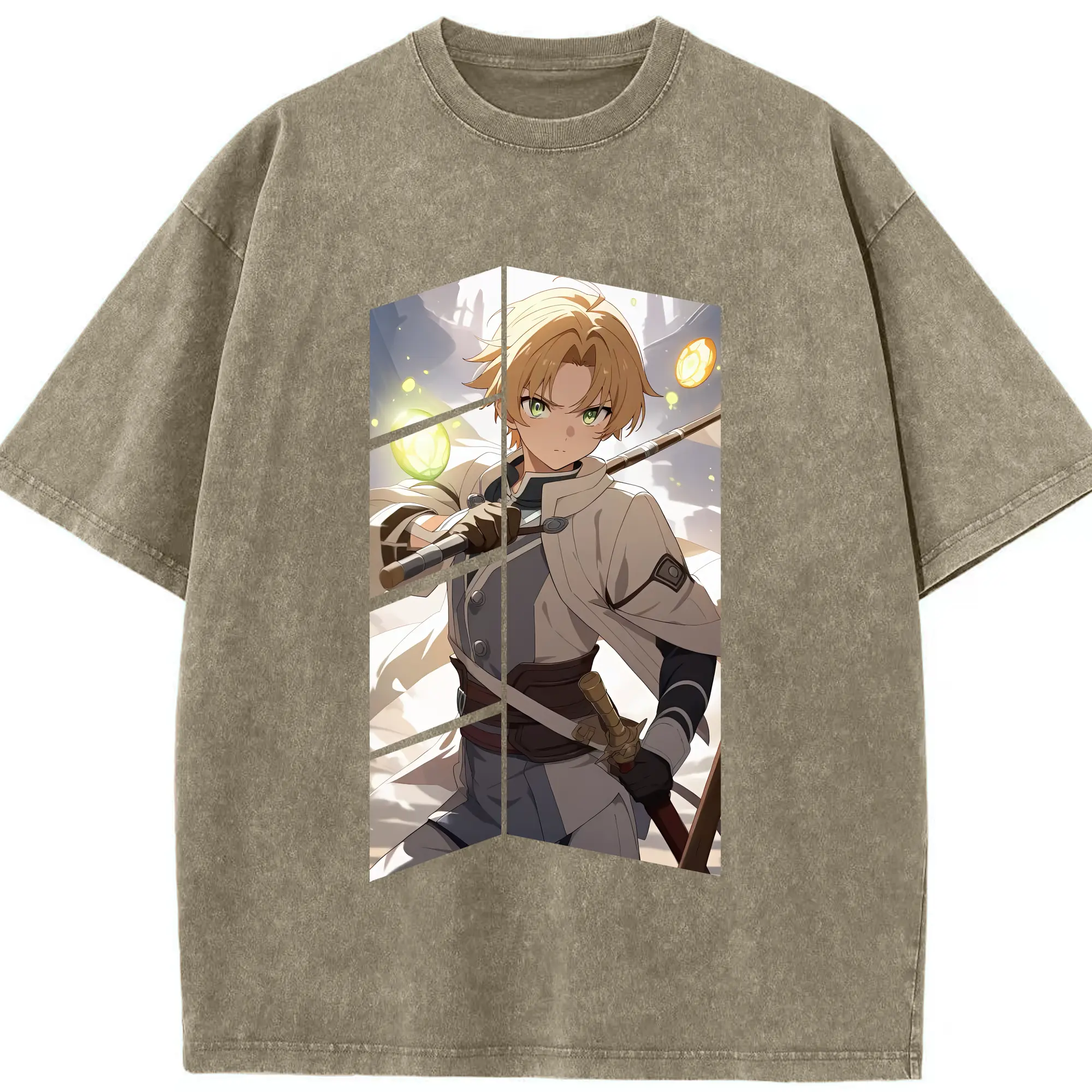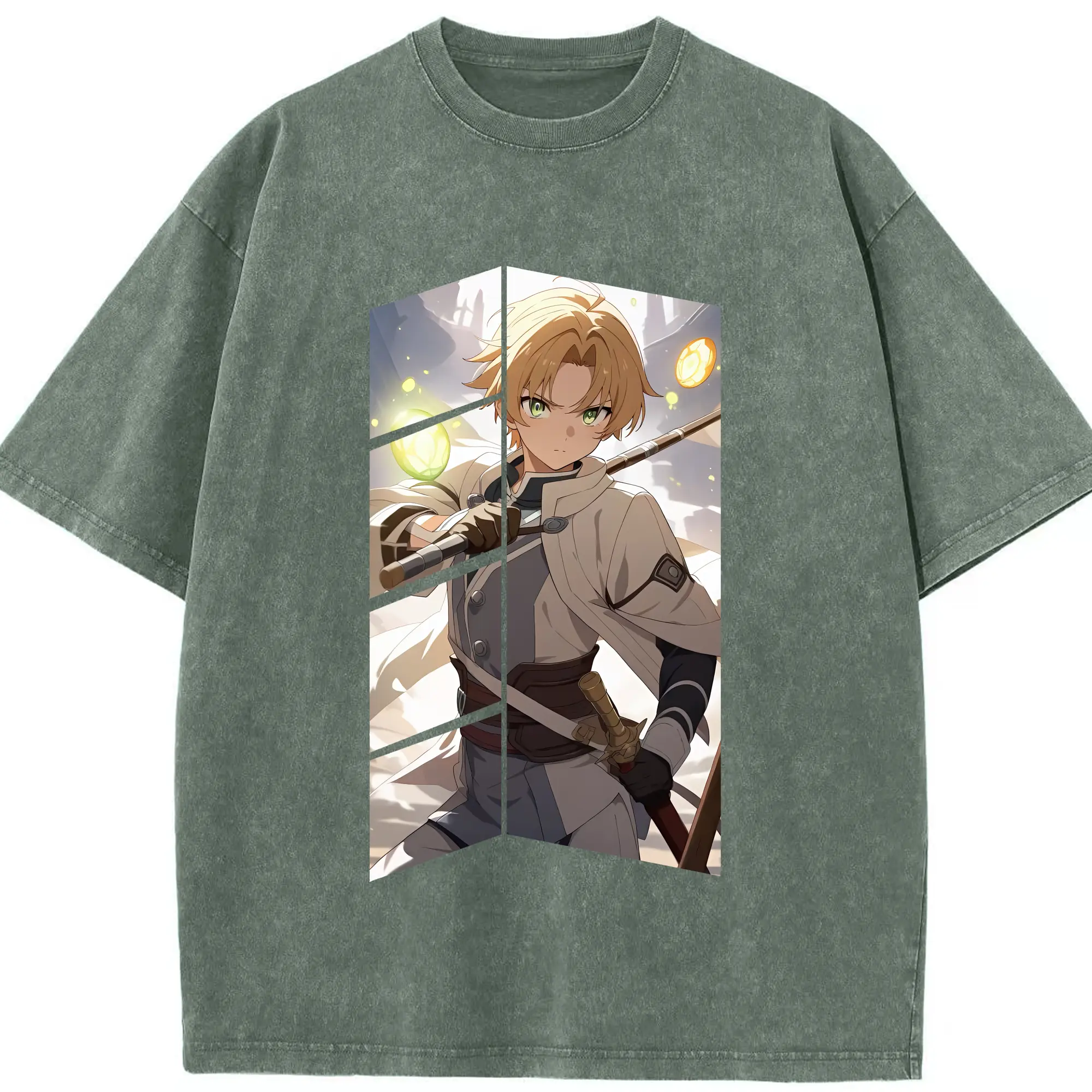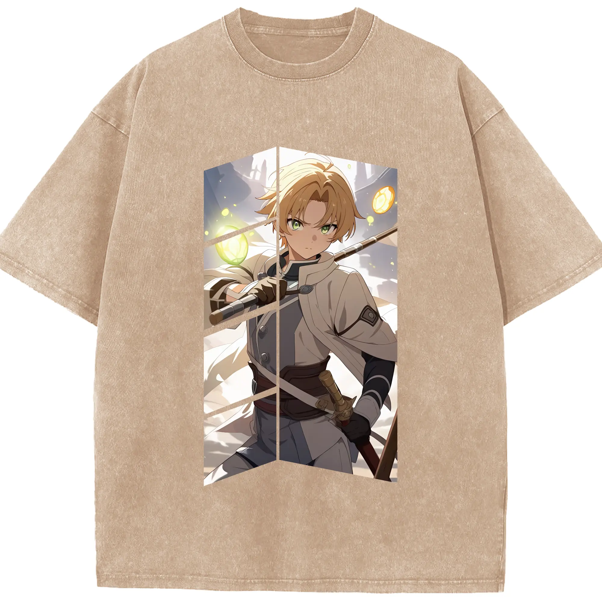 無職転生 グッズ,ルーデウス・グレイラット - 綿100% ヴィンテージ風 半袖Tシャツ ・ 背面プリント ・ 柔らか肌触り ・ 通気性 快適 ・ スポーツ カジュアル 外出用