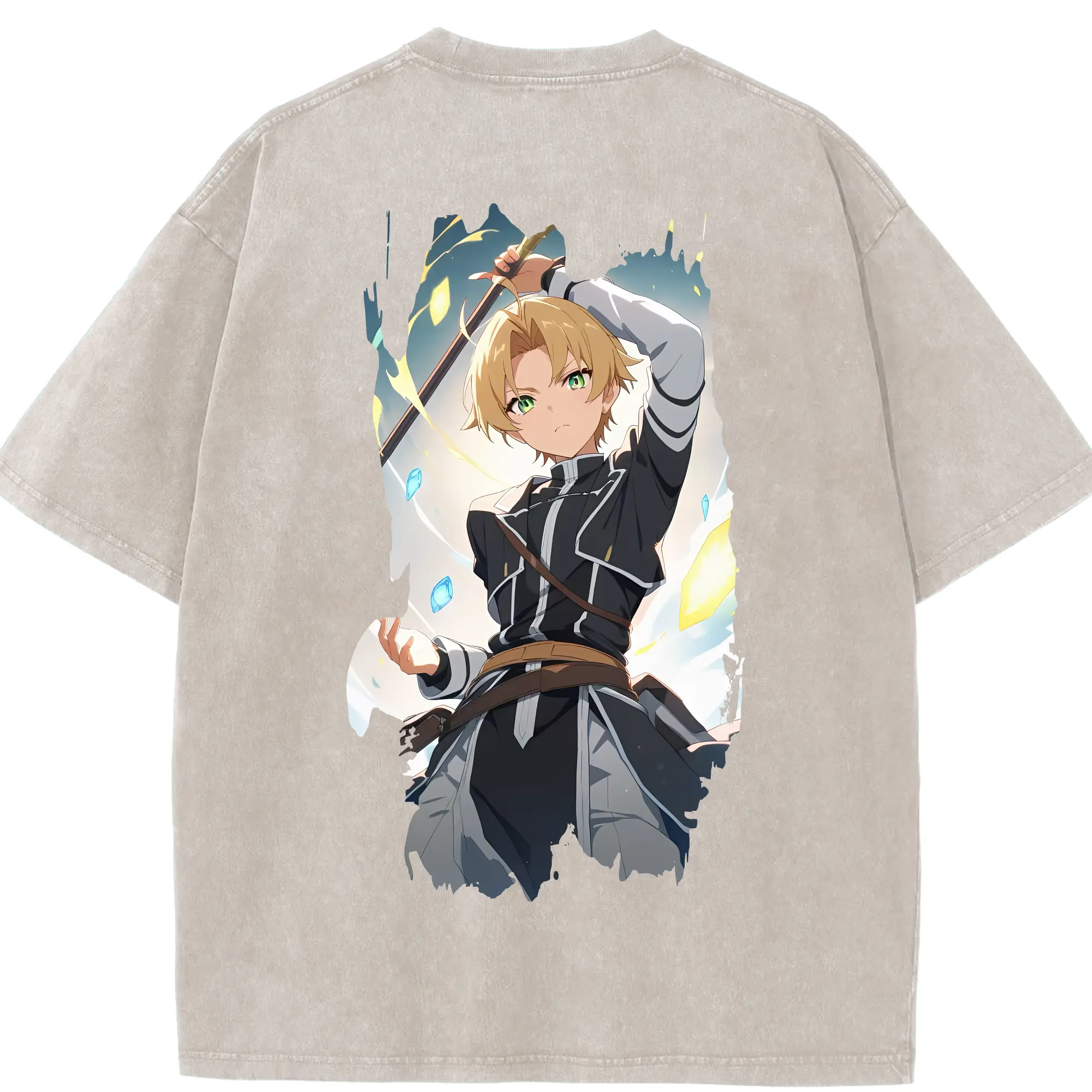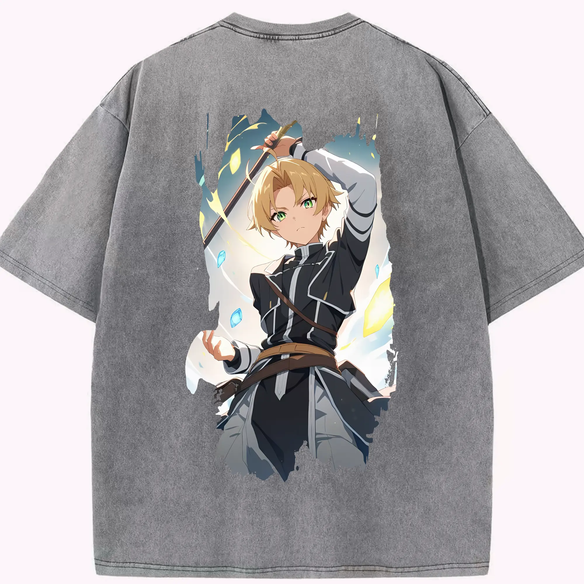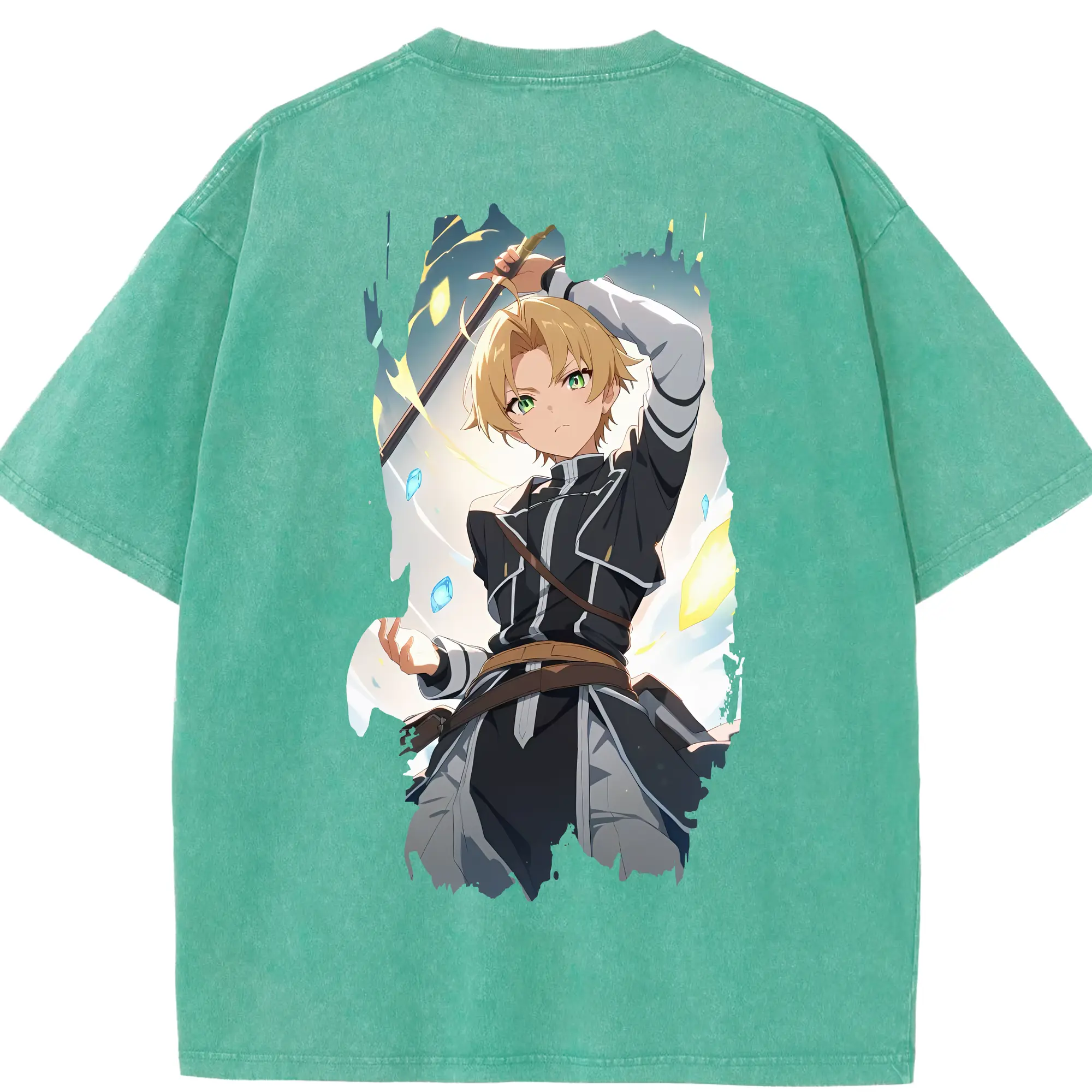 無職転生 グッズ,ルーデウス・グレイラット - 綿100% ヴィンテージ風 半袖Tシャツ ・ フロントプリント ・ 柔らか肌触り ・ 通気性 快適 ・ スポーツ カジュアル 外出用