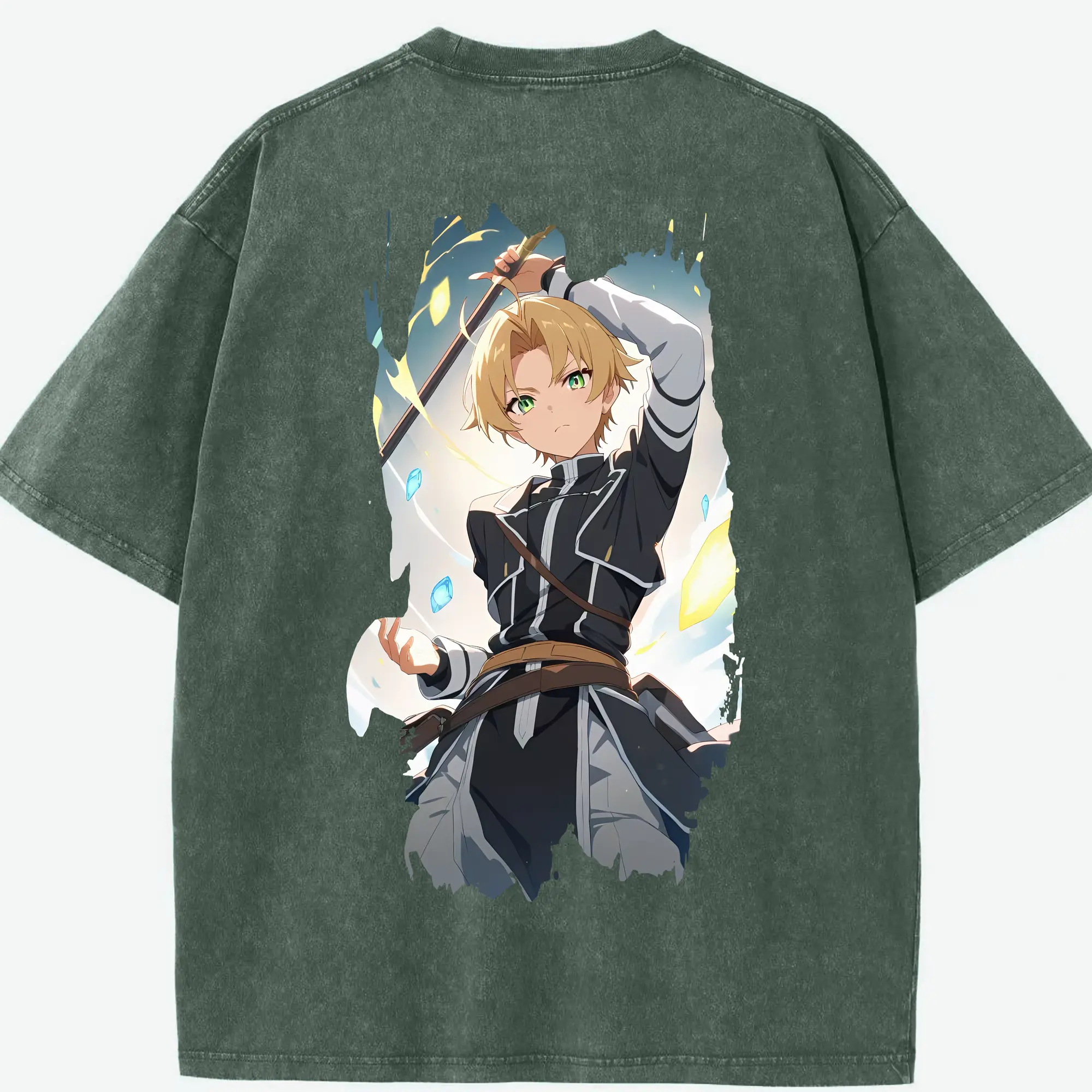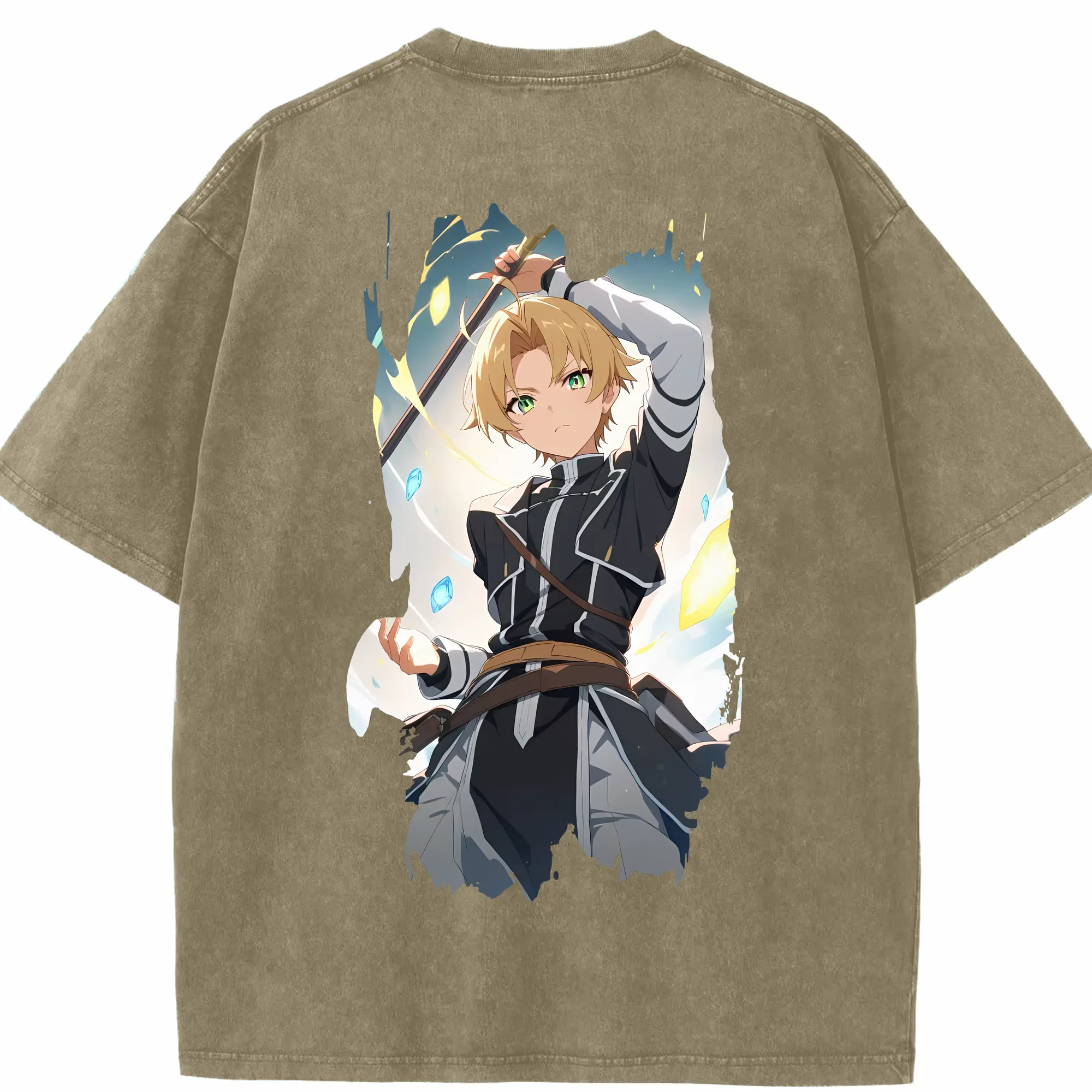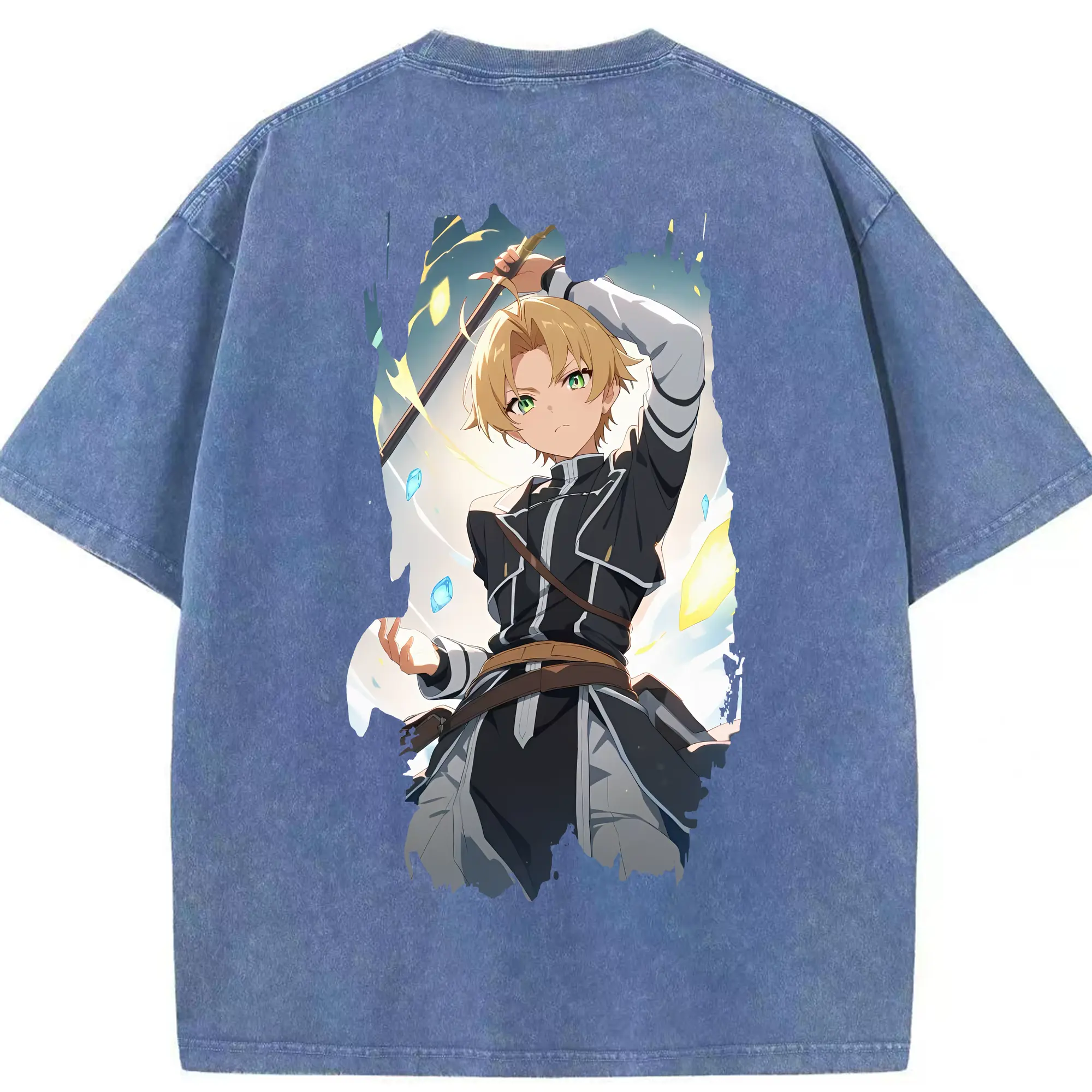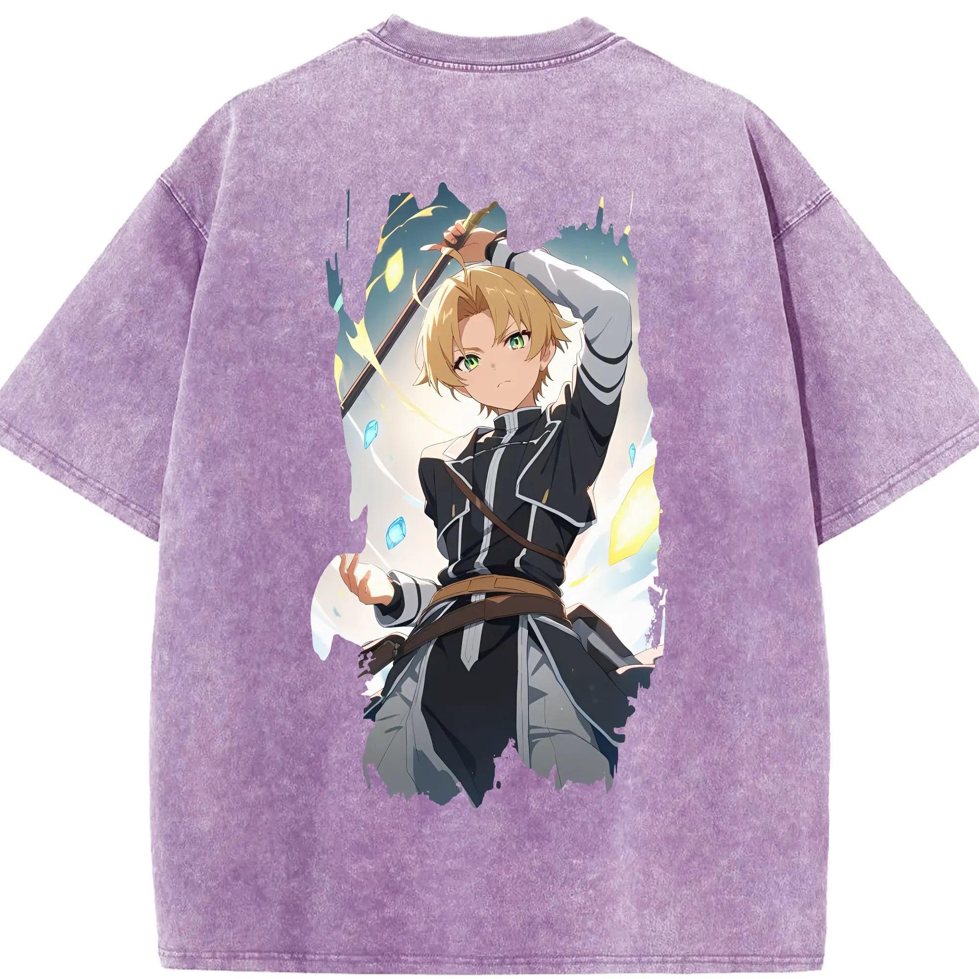 無職転生 グッズ,ルーデウス・グレイラット - 綿100% ヴィンテージ風 半袖Tシャツ ・ フロントプリント ・ 柔らか肌触り ・ 通気性 快適 ・ スポーツ カジュアル 外出用