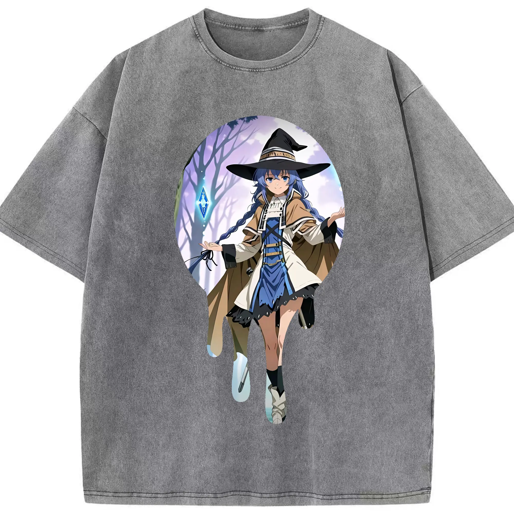 無職転生 グッズ,ロキシー・ミグルディア - 綿100% ヴィンテージ風 半袖Tシャツ ・ 背面プリント ・ 柔らか肌触り ・ 通気性 快適 ・ スポーツ カジュアル 外出用