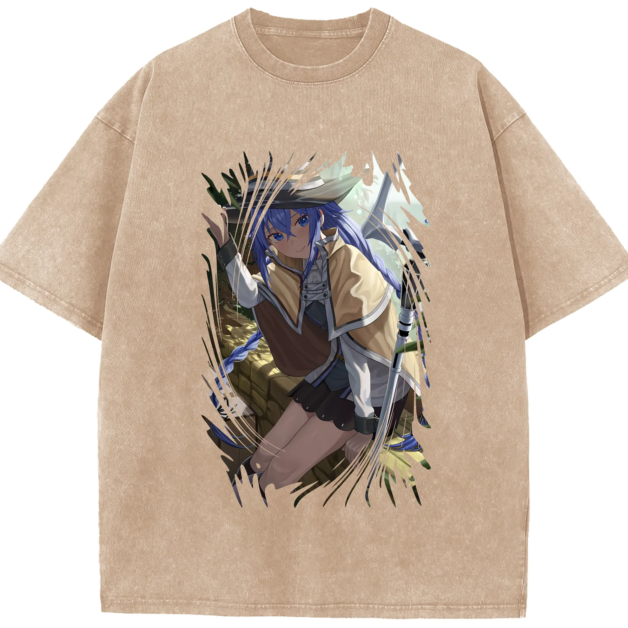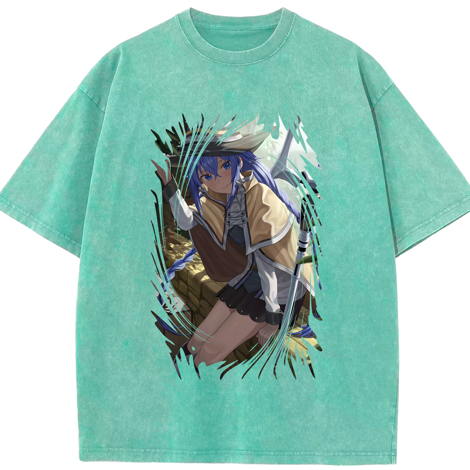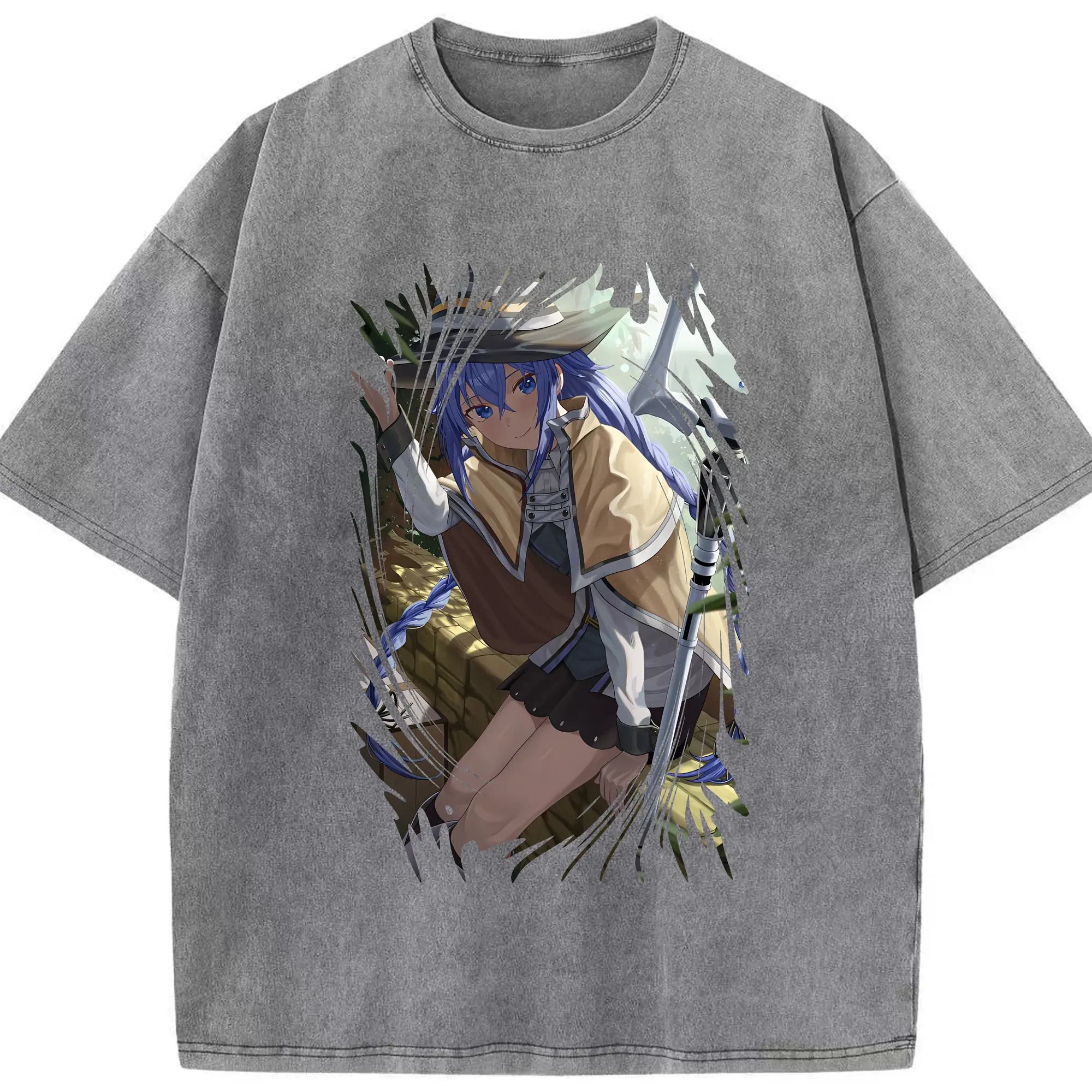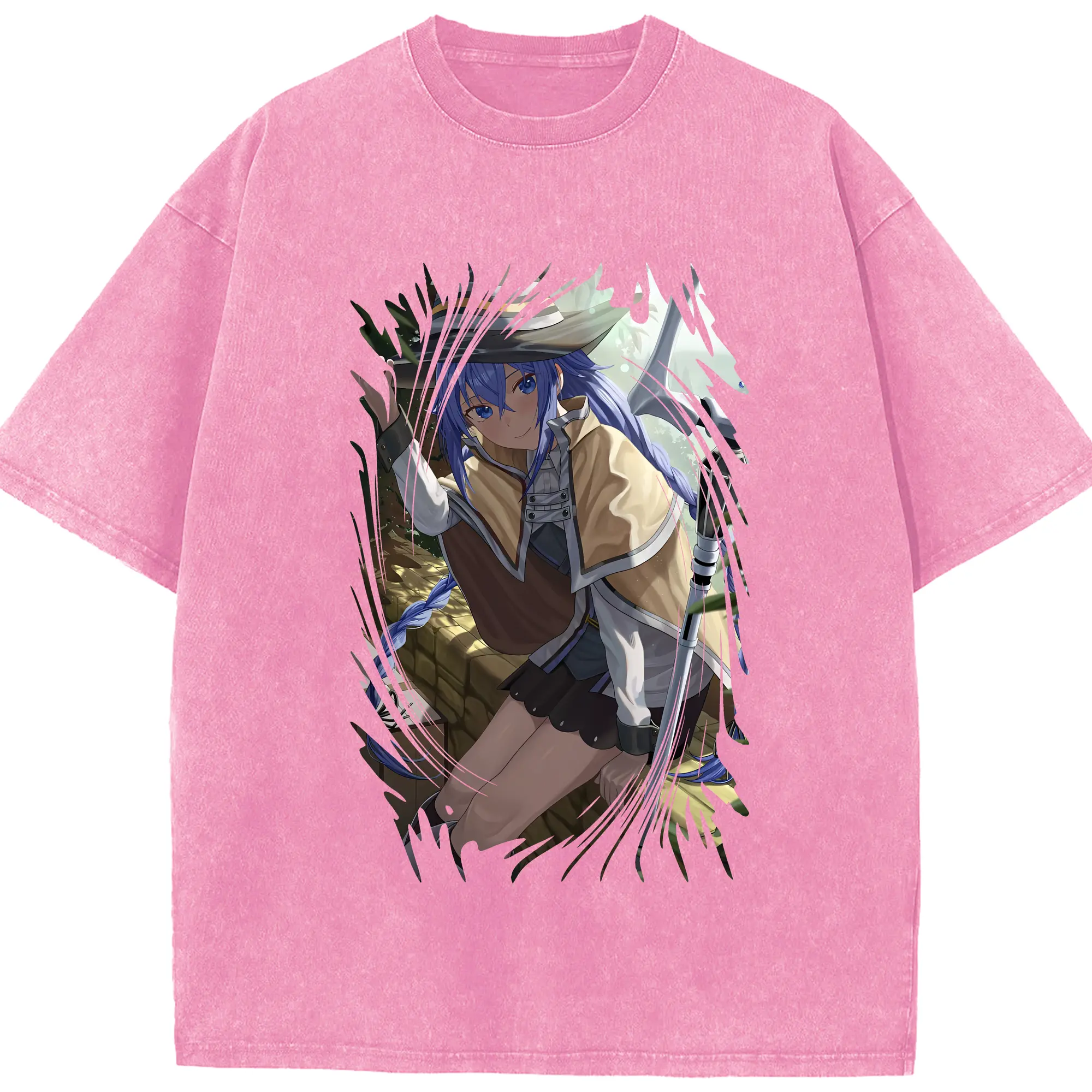無職転生 グッズ,ロキシー・ミグルディア - 綿100% ヴィンテージ風 半袖Tシャツ ・ 背面プリント ・ 柔らか肌触り ・ 通気性 快適 ・ スポーツ カジュアル 外出用