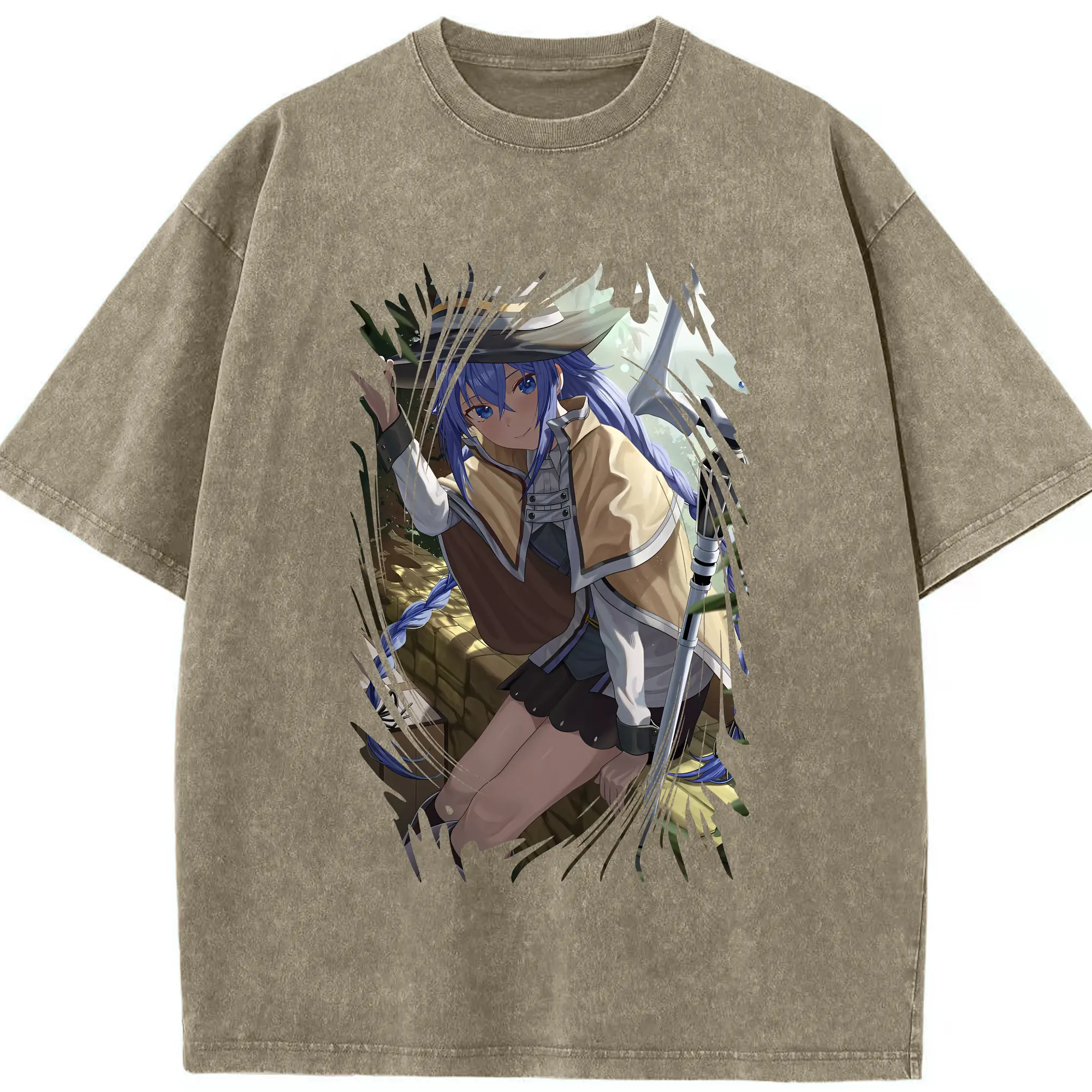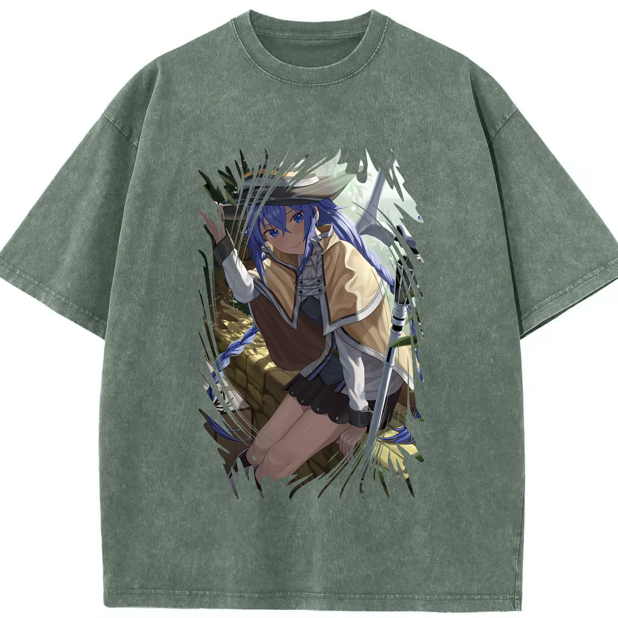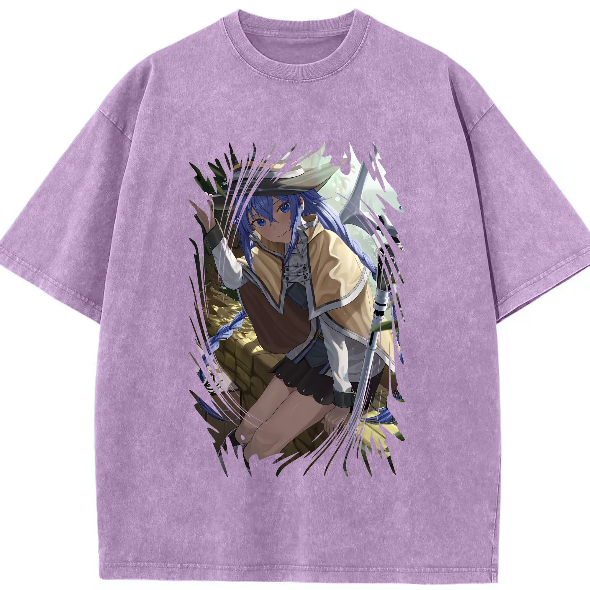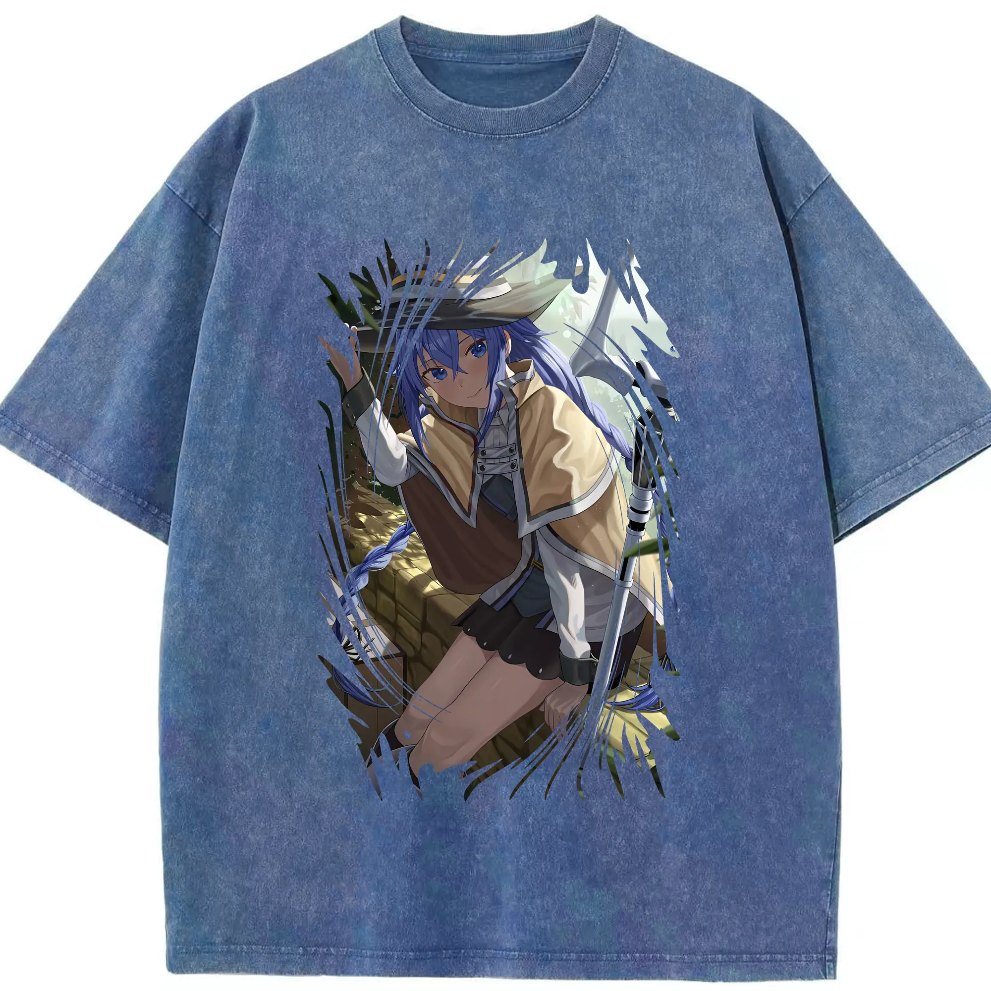 無職転生 グッズ,ロキシー・ミグルディア - 綿100% ヴィンテージ風 半袖Tシャツ ・ 背面プリント ・ 柔らか肌触り ・ 通気性 快適 ・ スポーツ カジュアル 外出用