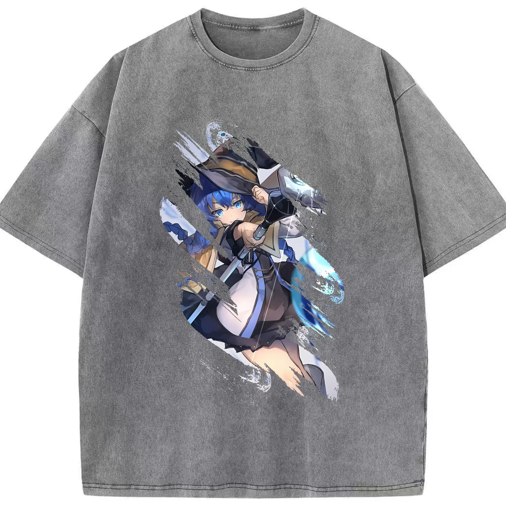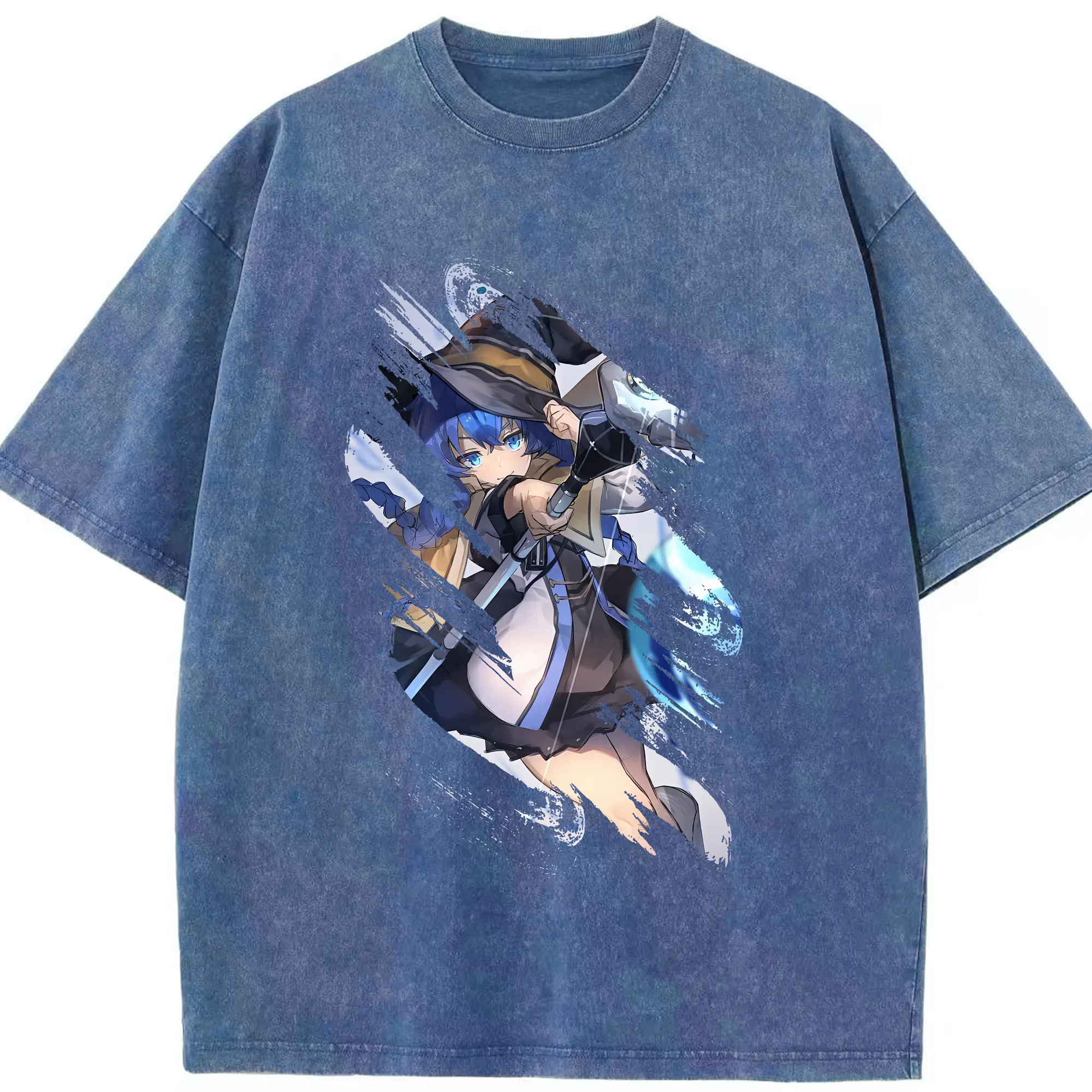 無職転生 グッズ,ロキシー・ミグルディア - 綿100% ヴィンテージ風 半袖Tシャツ ・ 背面プリント ・ 柔らか肌触り ・ 通気性 快適 ・ スポーツ カジュアル 外出用