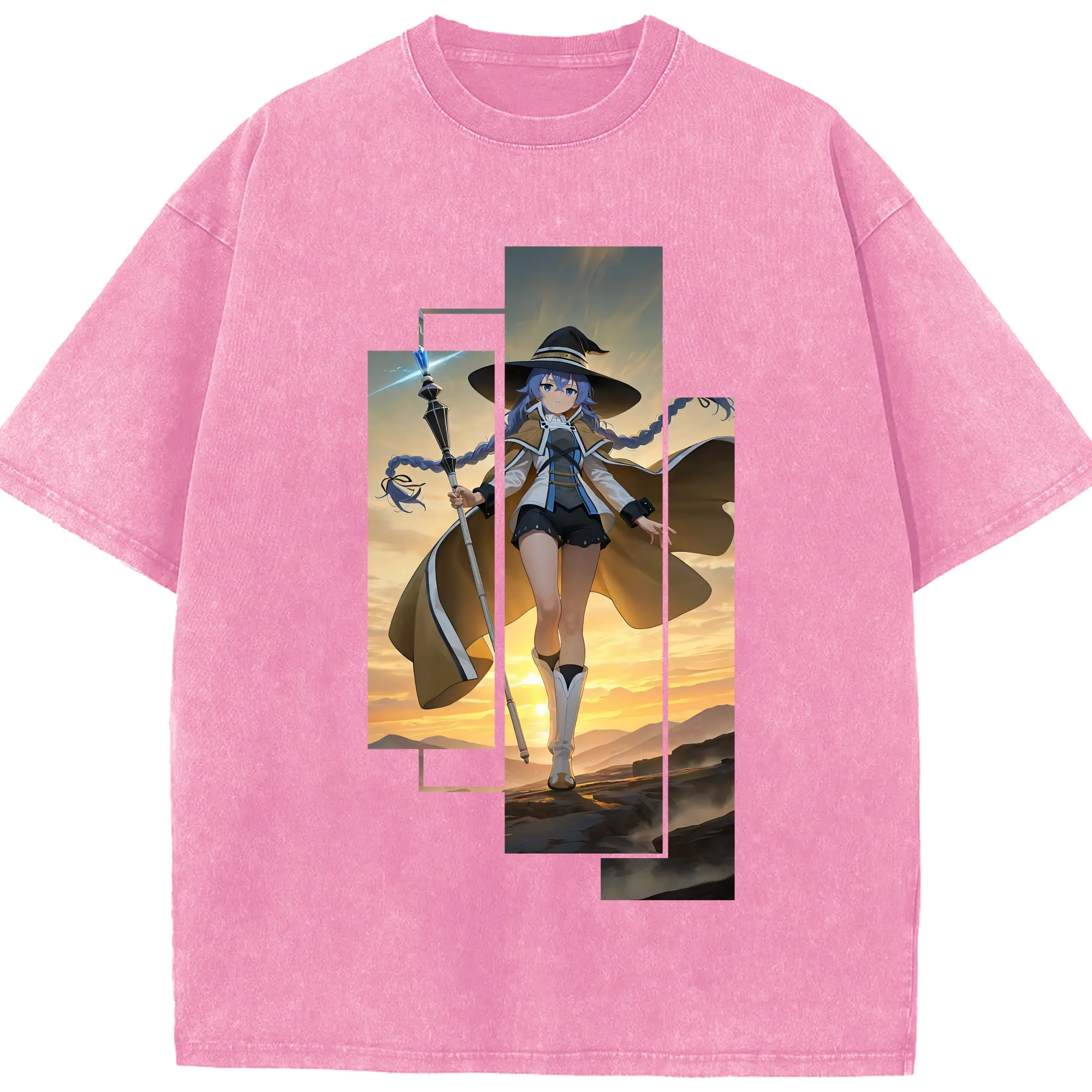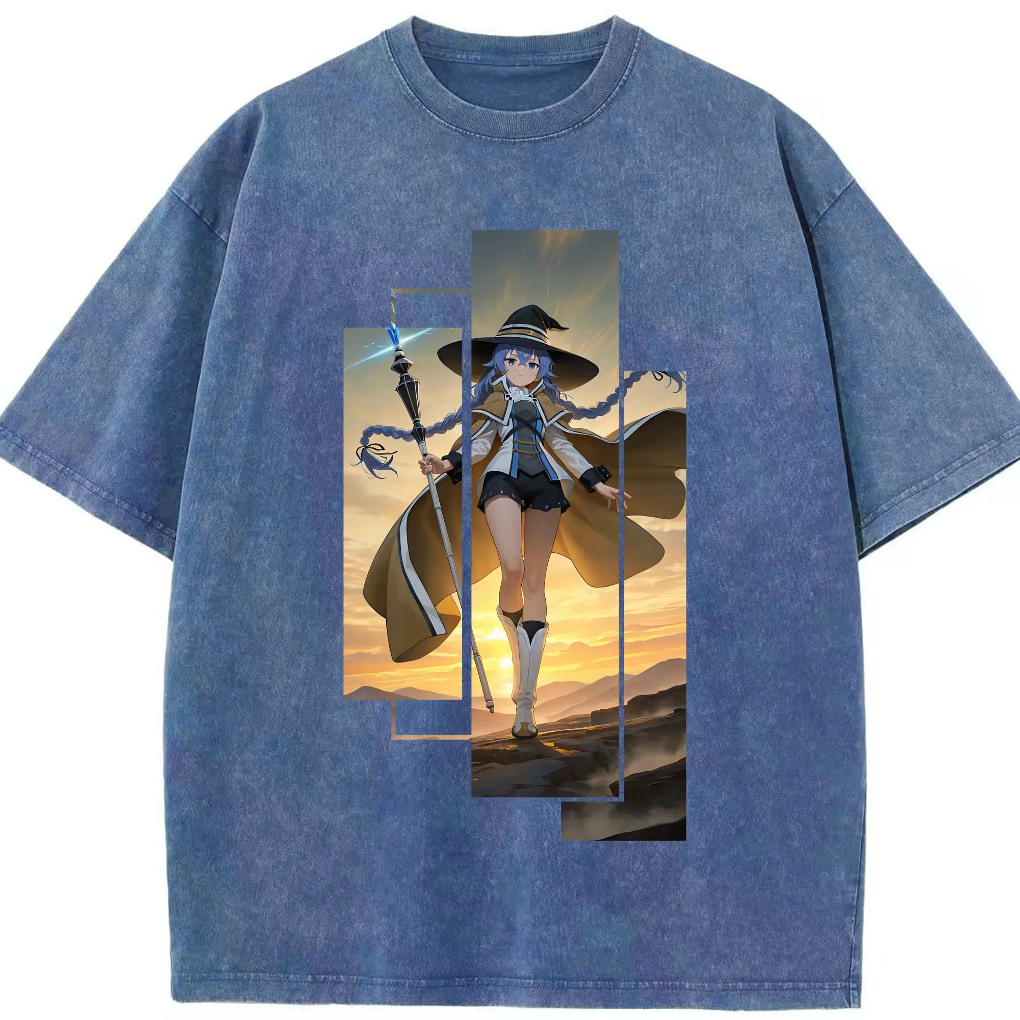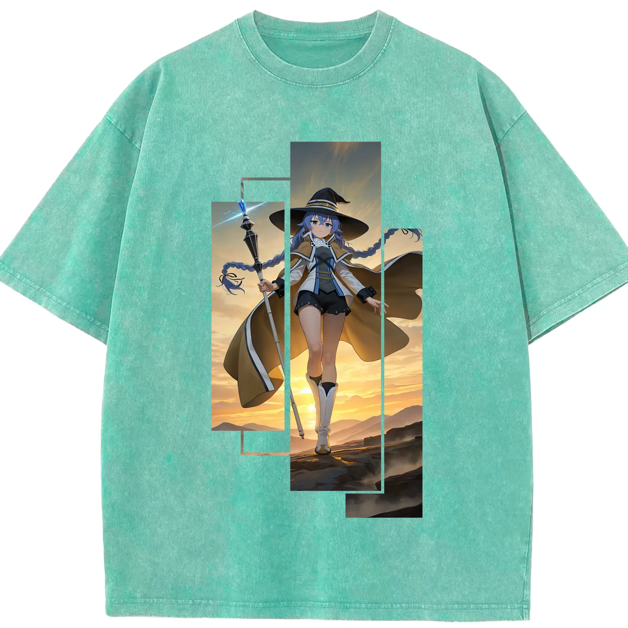 無職転生 グッズ,ロキシー・ミグルディア - 綿100% ヴィンテージ風 半袖Tシャツ ・ 背面プリント ・ 柔らか肌触り ・ 通気性 快適 ・ スポーツ カジュアル 外出用