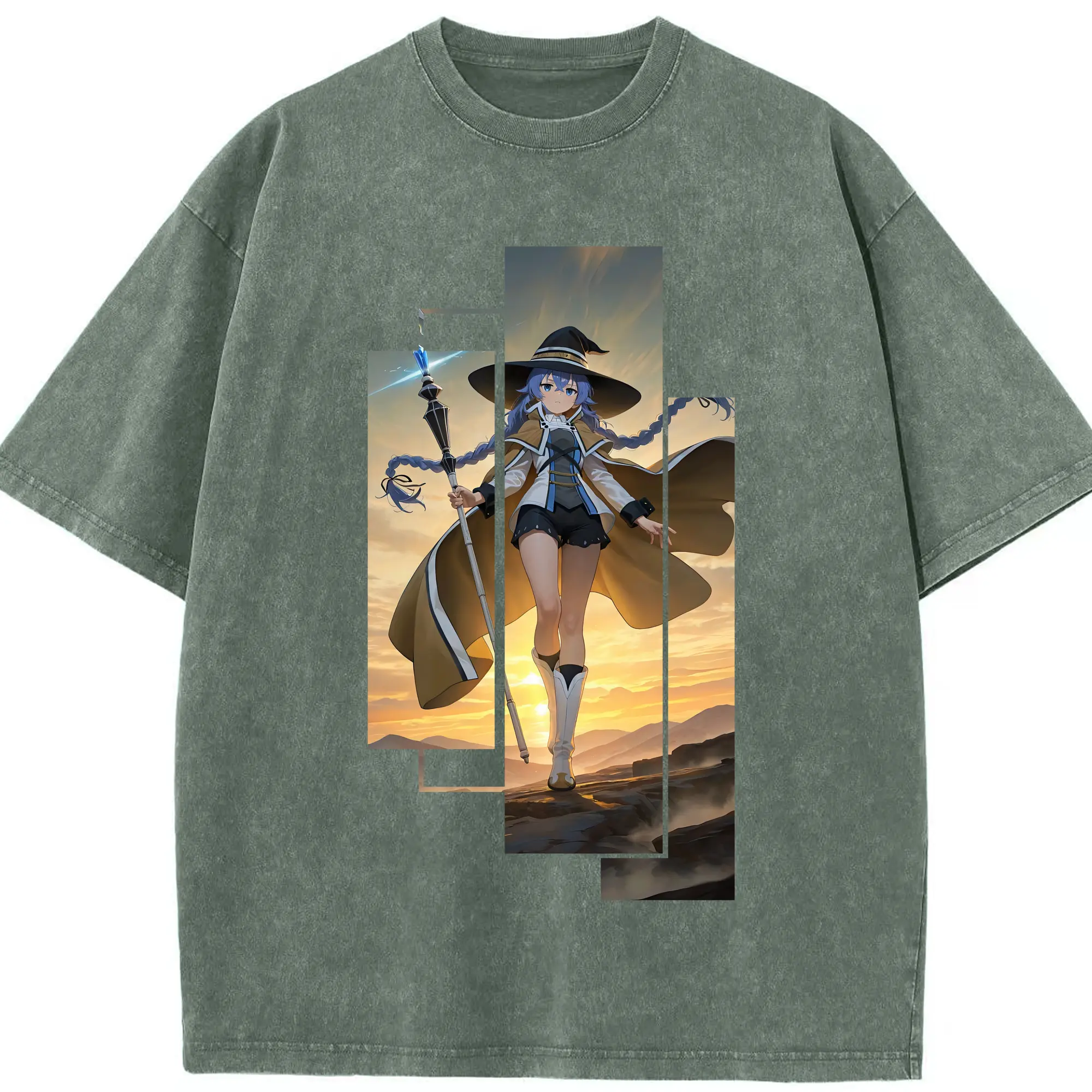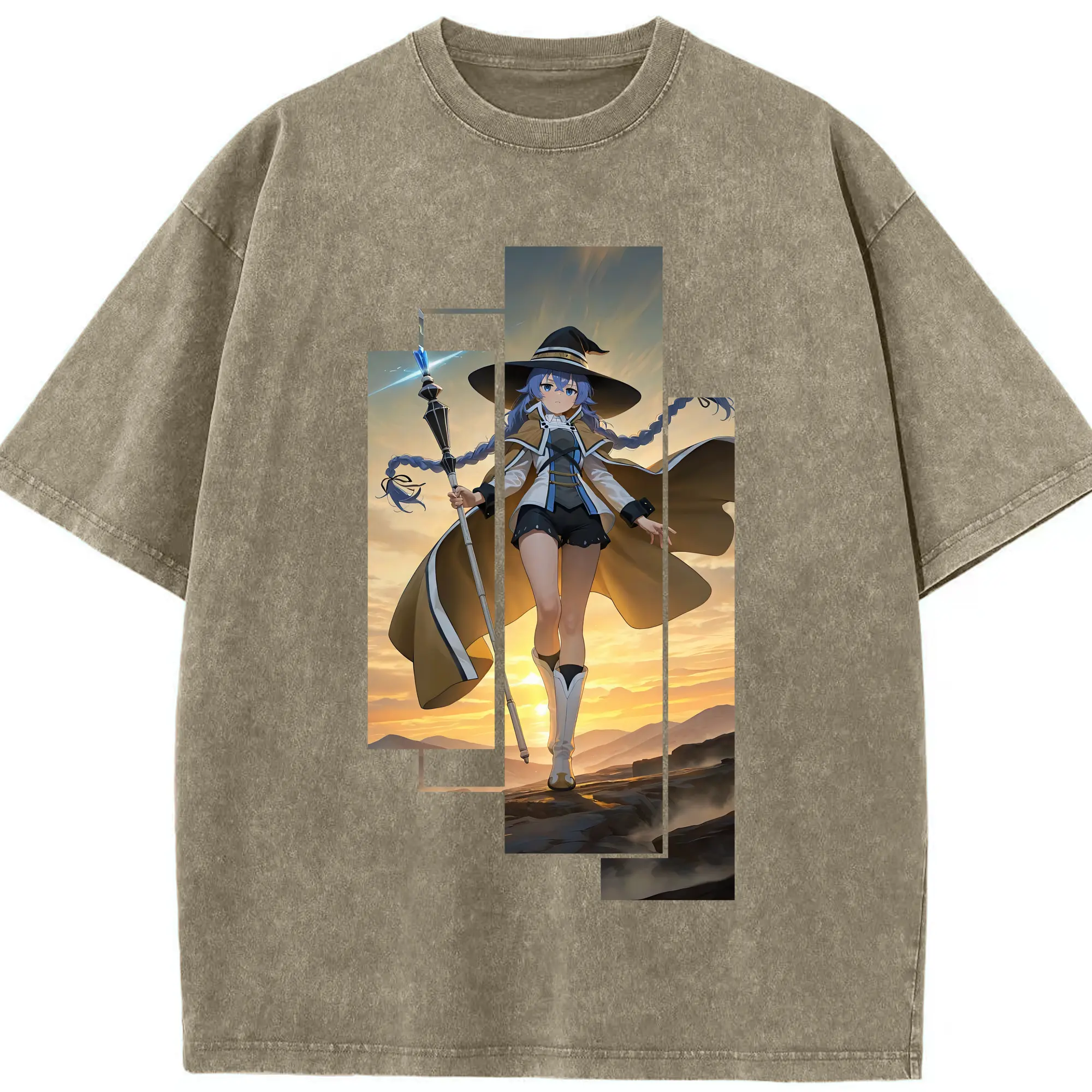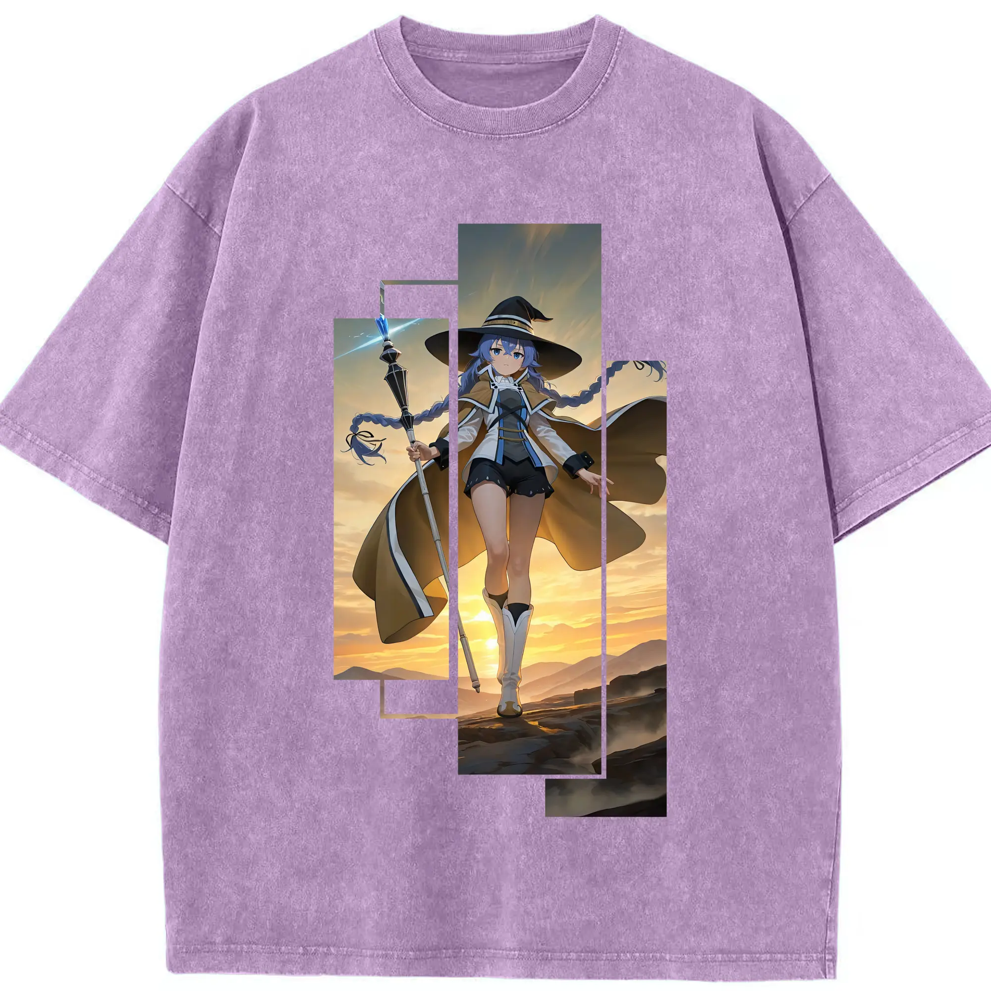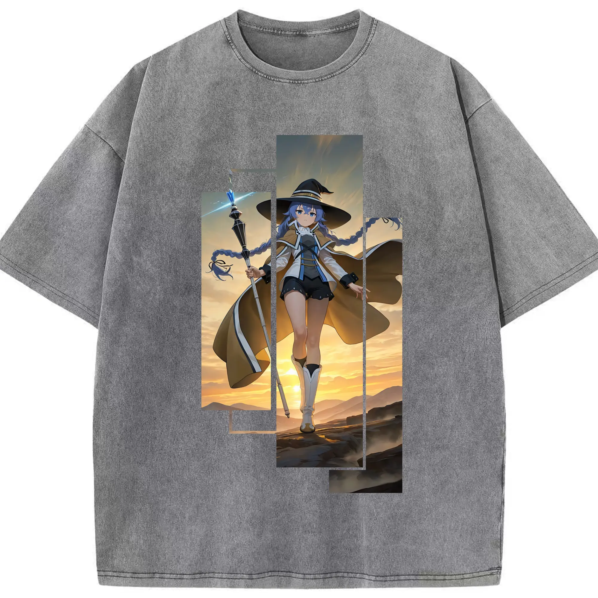 無職転生 グッズ,ロキシー・ミグルディア - 綿100% ヴィンテージ風 半袖Tシャツ ・ 背面プリント ・ 柔らか肌触り ・ 通気性 快適 ・ スポーツ カジュアル 外出用