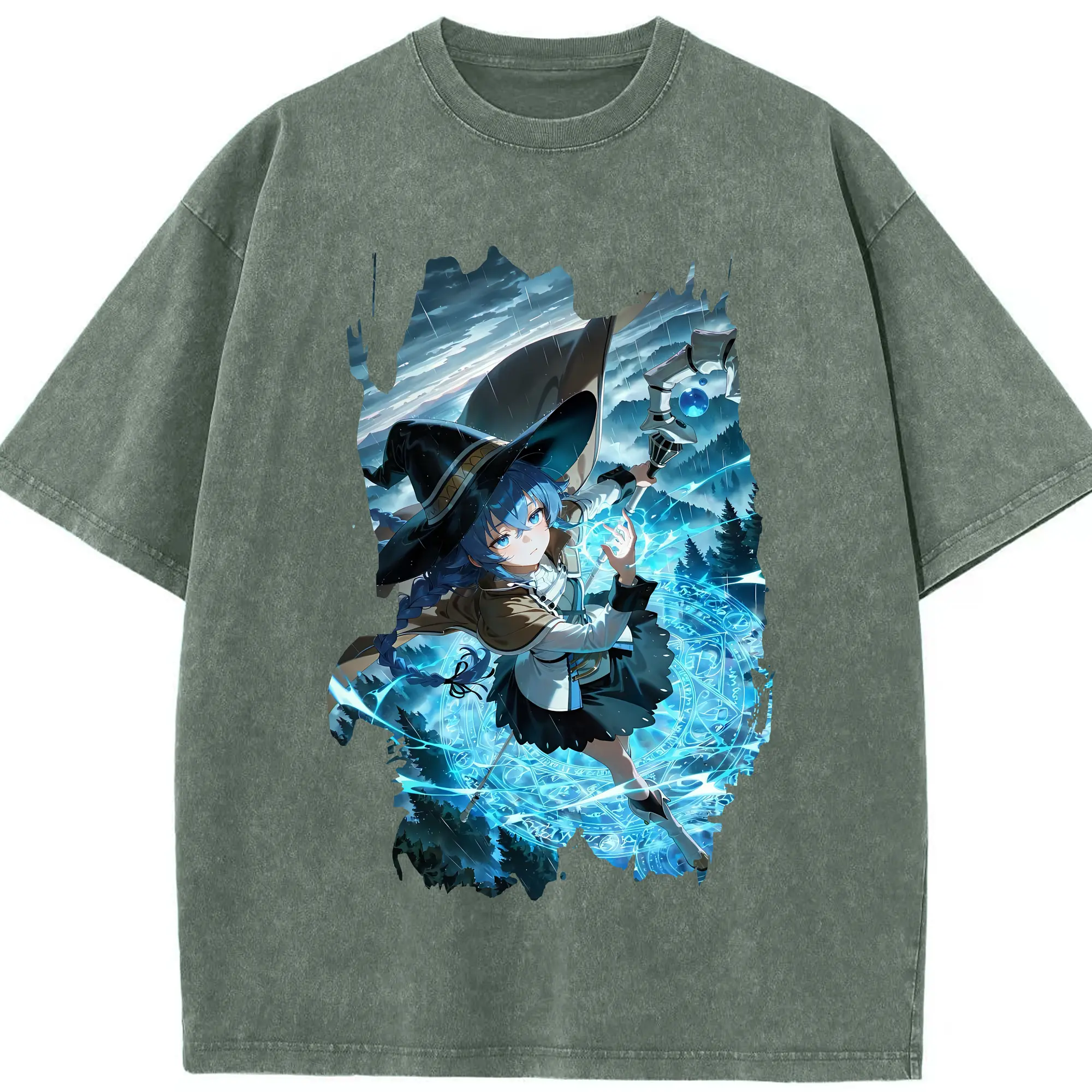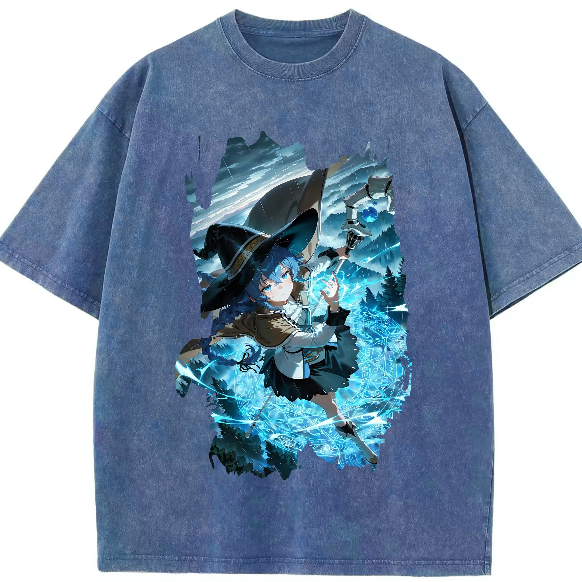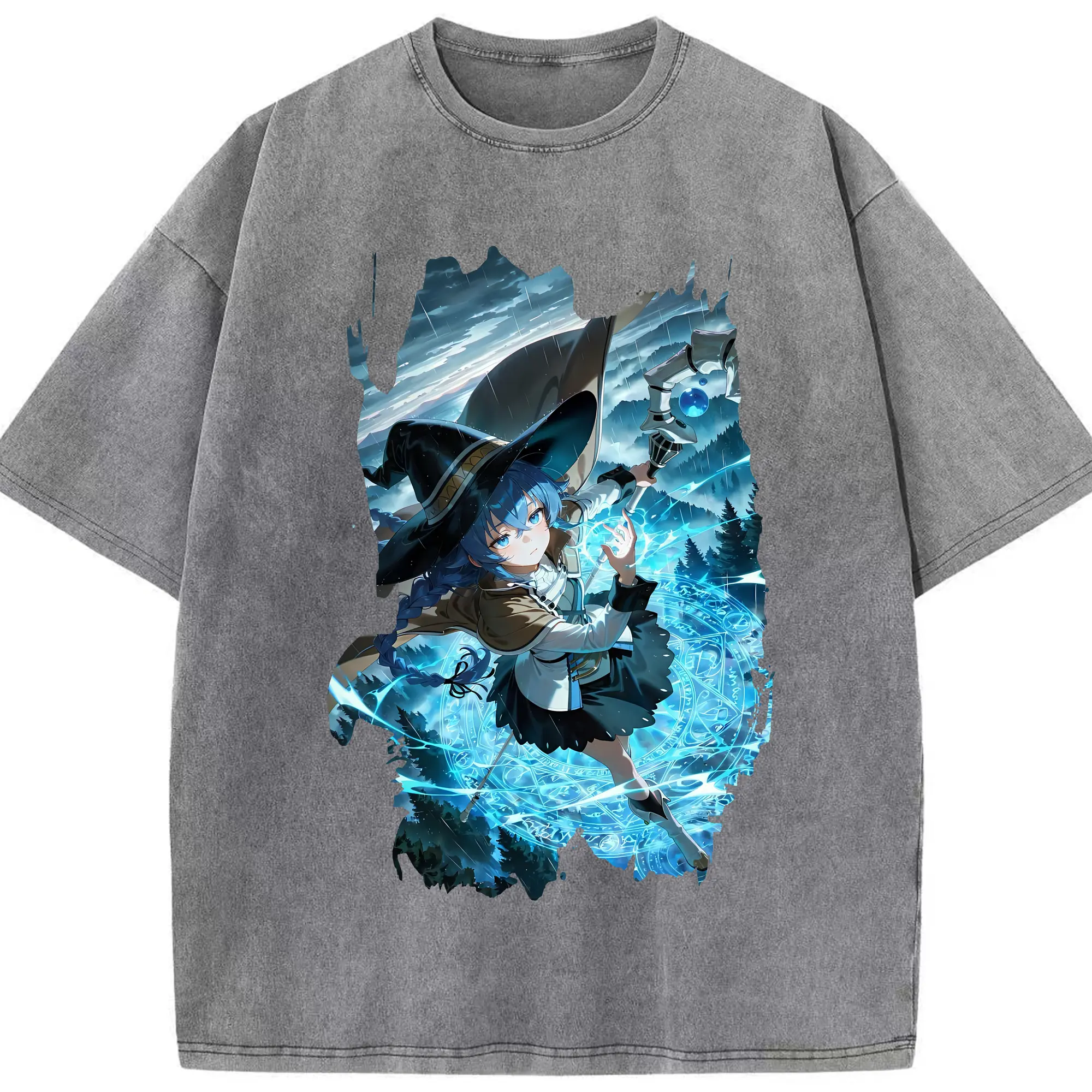 無職転生 グッズ,ロキシー・ミグルディア - 綿100% ヴィンテージ風 半袖Tシャツ ・ 背面プリント ・ 柔らか肌触り ・ 通気性 快適 ・ スポーツ カジュアル 外出用