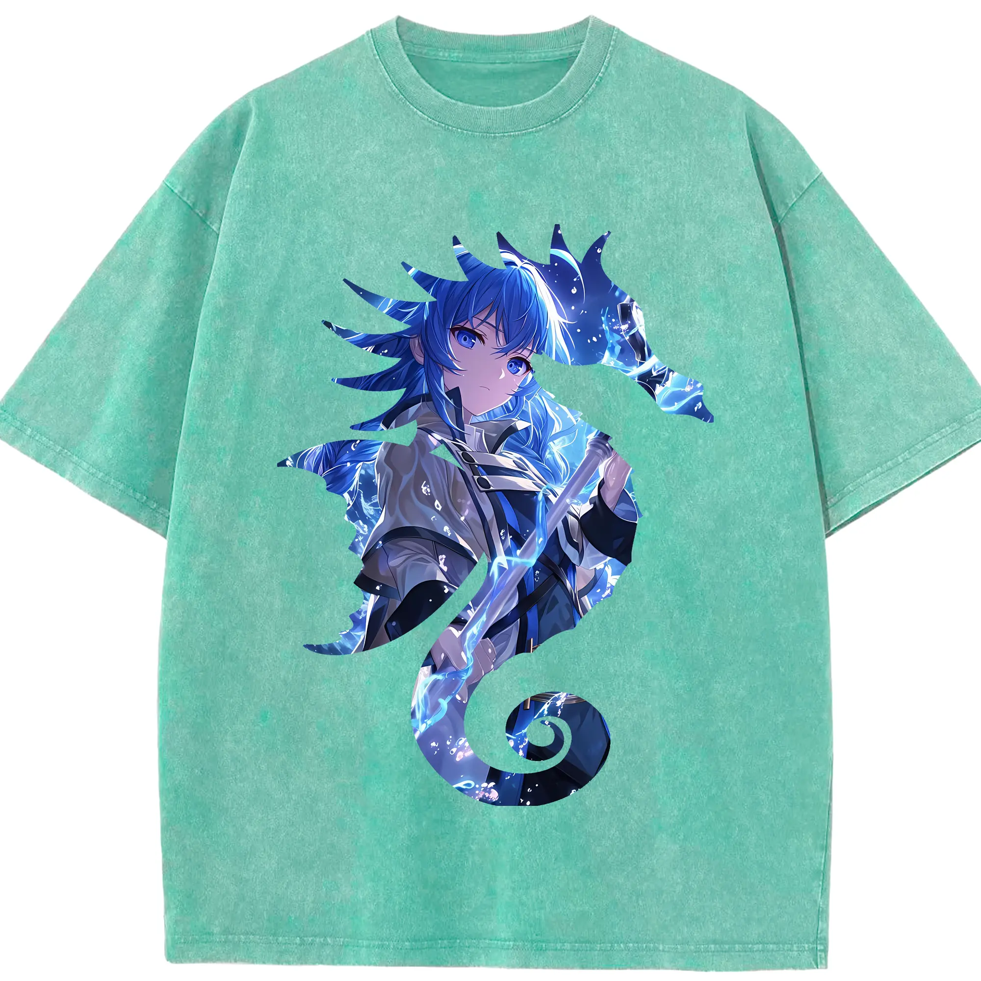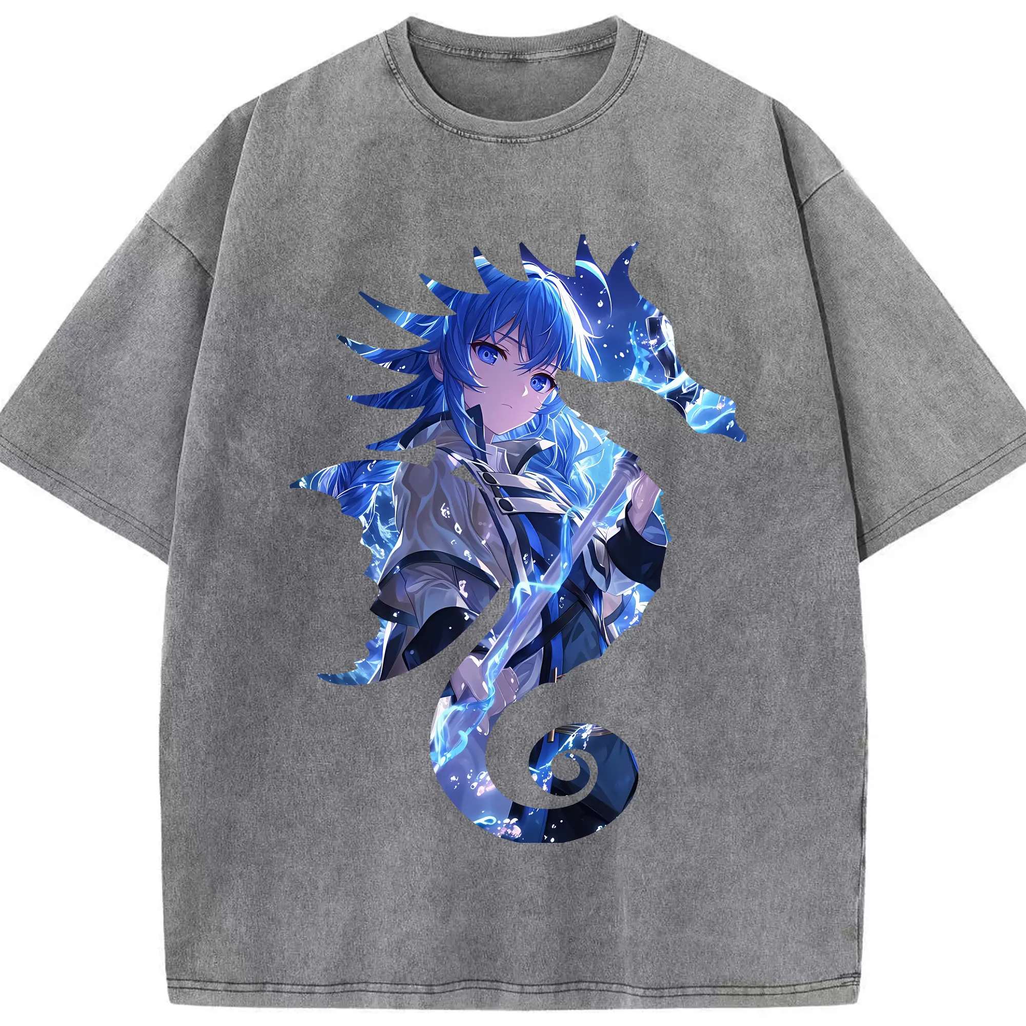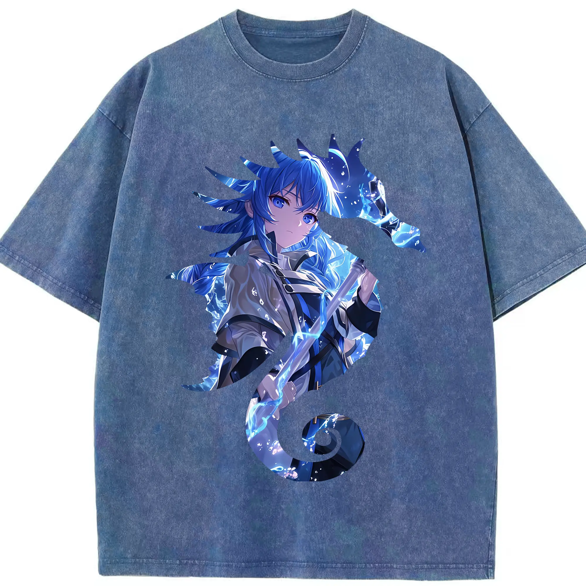 鳴潮 グッズ ザンニー - 綿100% ヴィンテージ風 半袖Tシャツ ・ フロントプリント ・ 柔らか肌触り ・ 通気性 快適 ・ スポーツ カジュアル 外出用