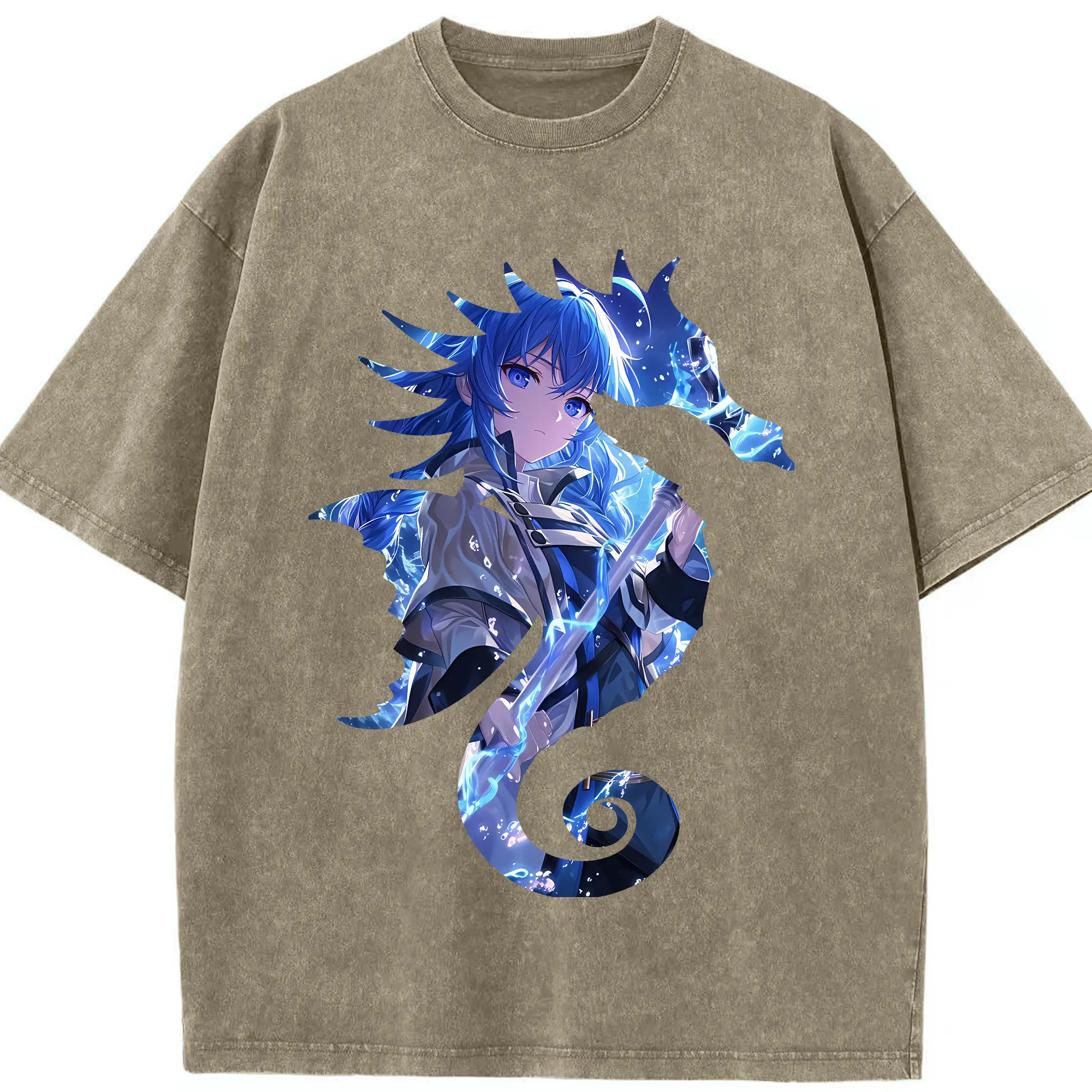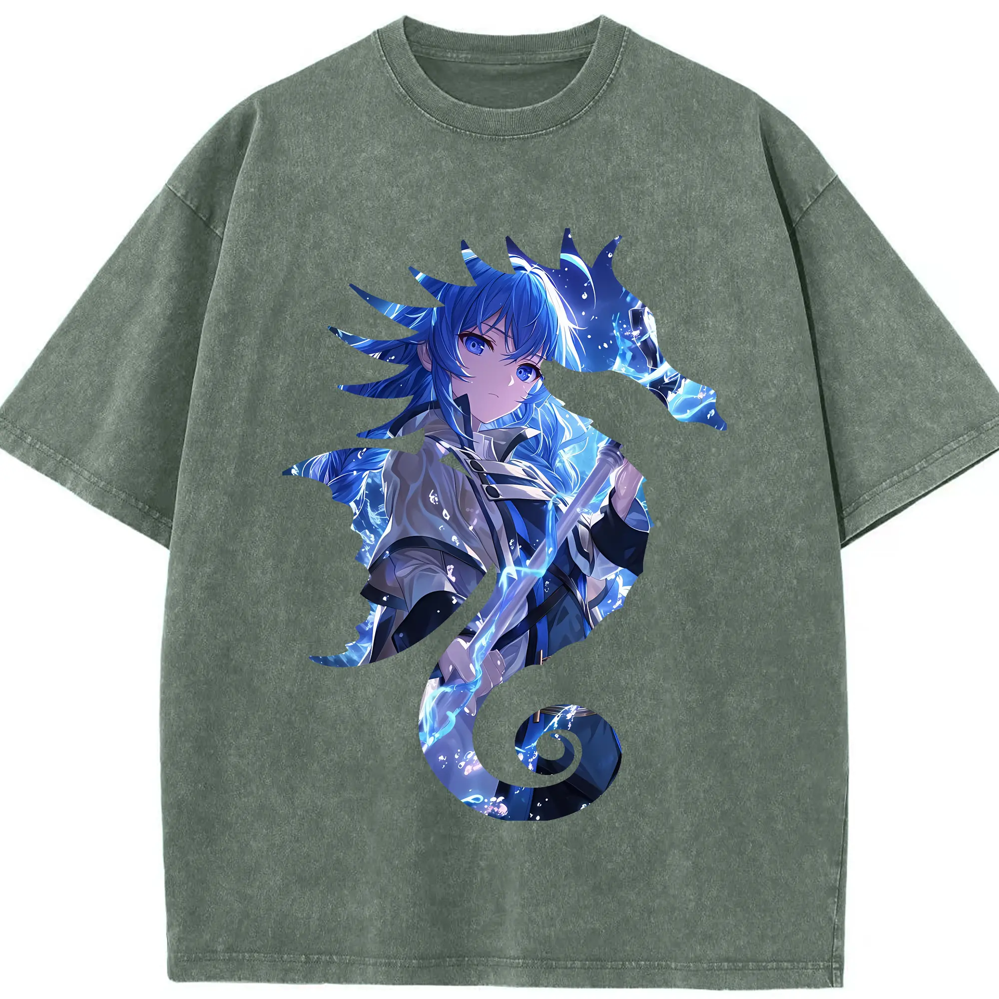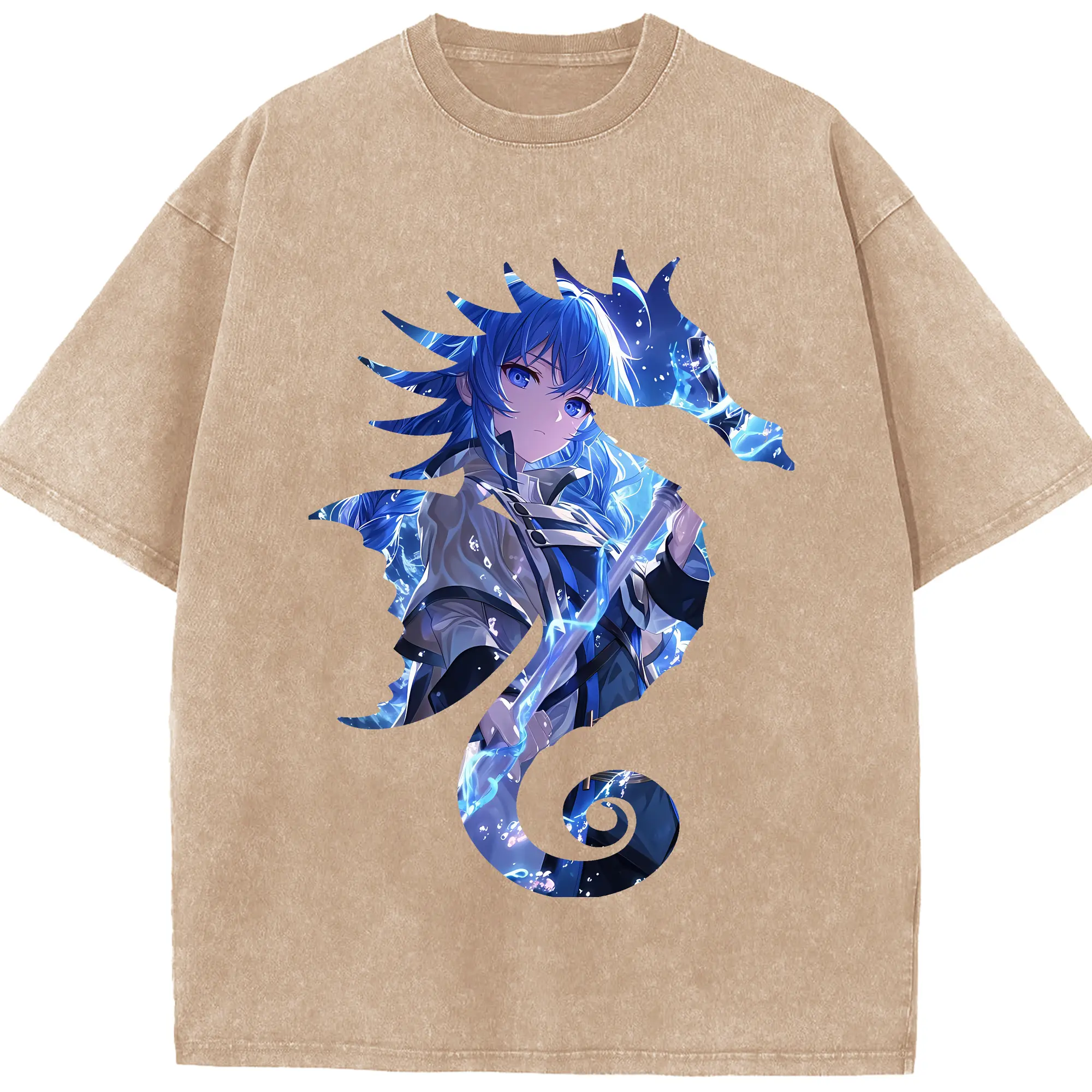 鳴潮 グッズ ザンニー - 綿100% ヴィンテージ風 半袖Tシャツ ・ フロントプリント ・ 柔らか肌触り ・ 通気性 快適 ・ スポーツ カジュアル 外出用