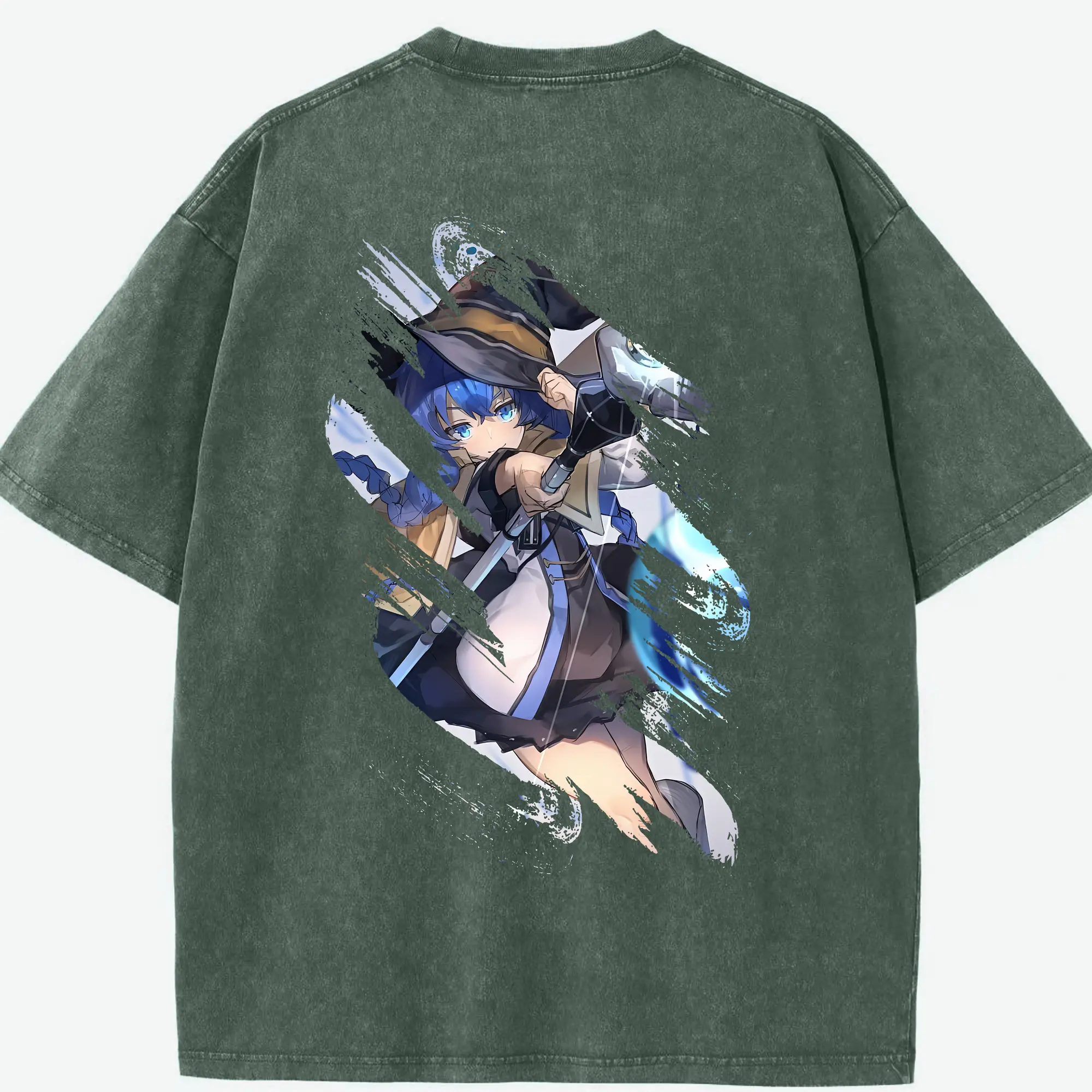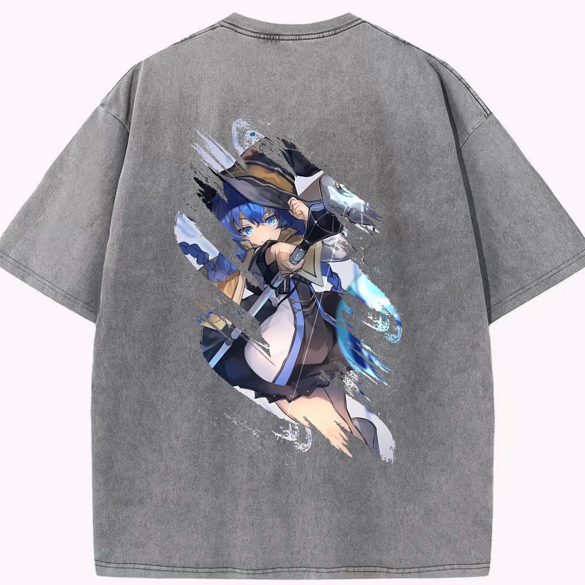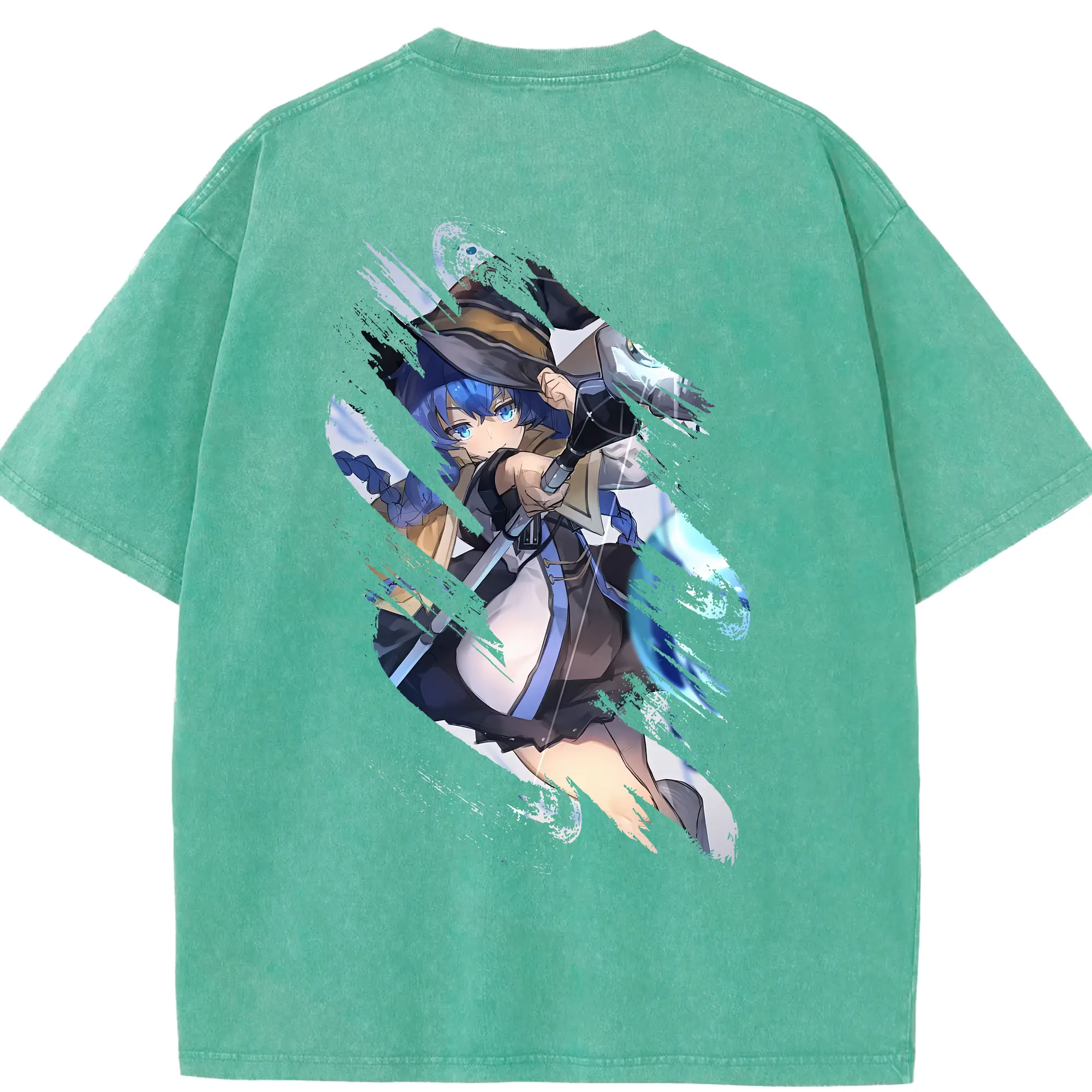 無職転生 グッズ,ロキシー・ミグルディア - 綿100% ヴィンテージ風 半袖Tシャツ ・ フロントプリント ・ 柔らか肌触り ・ 通気性 快適 ・ スポーツ カジュアル 外出用