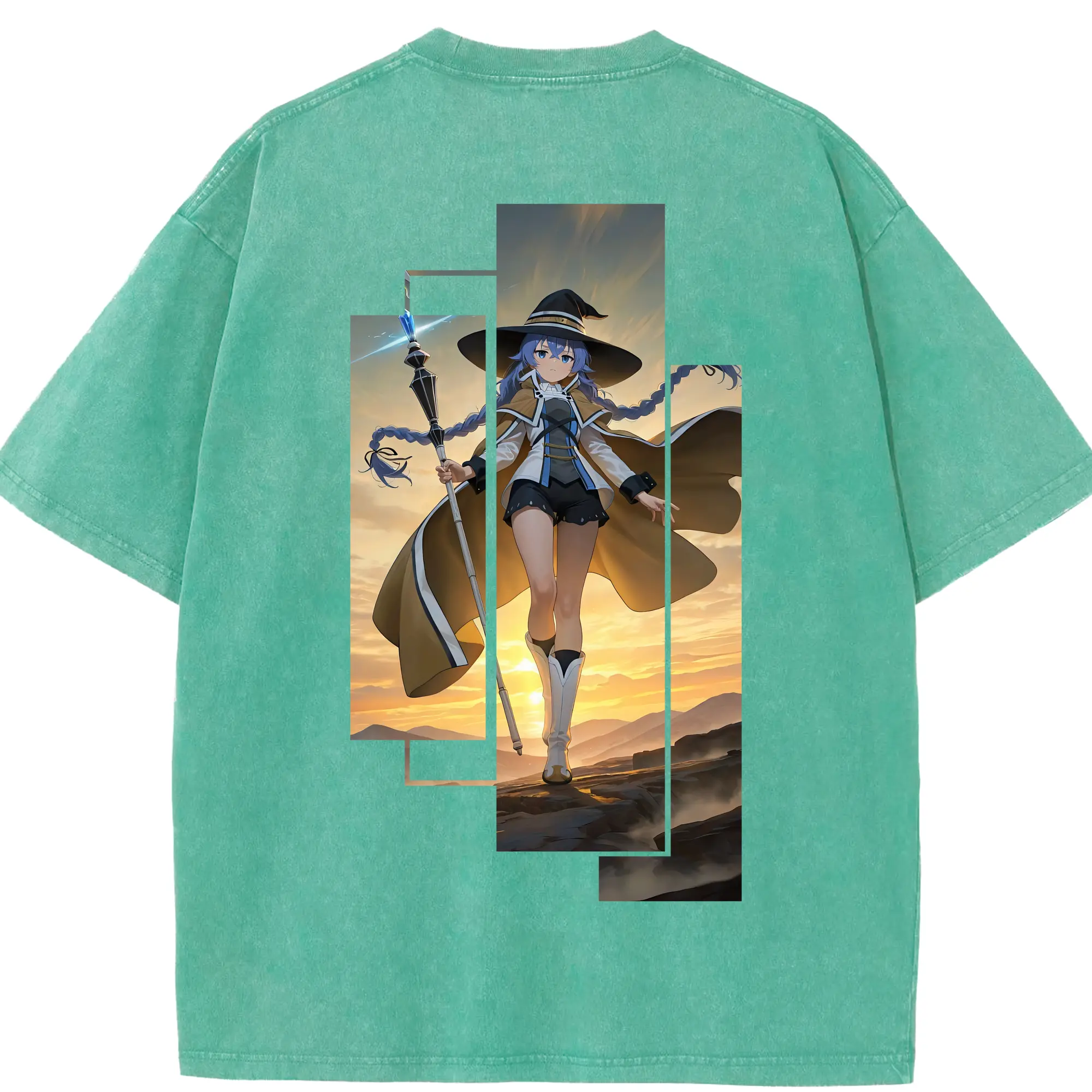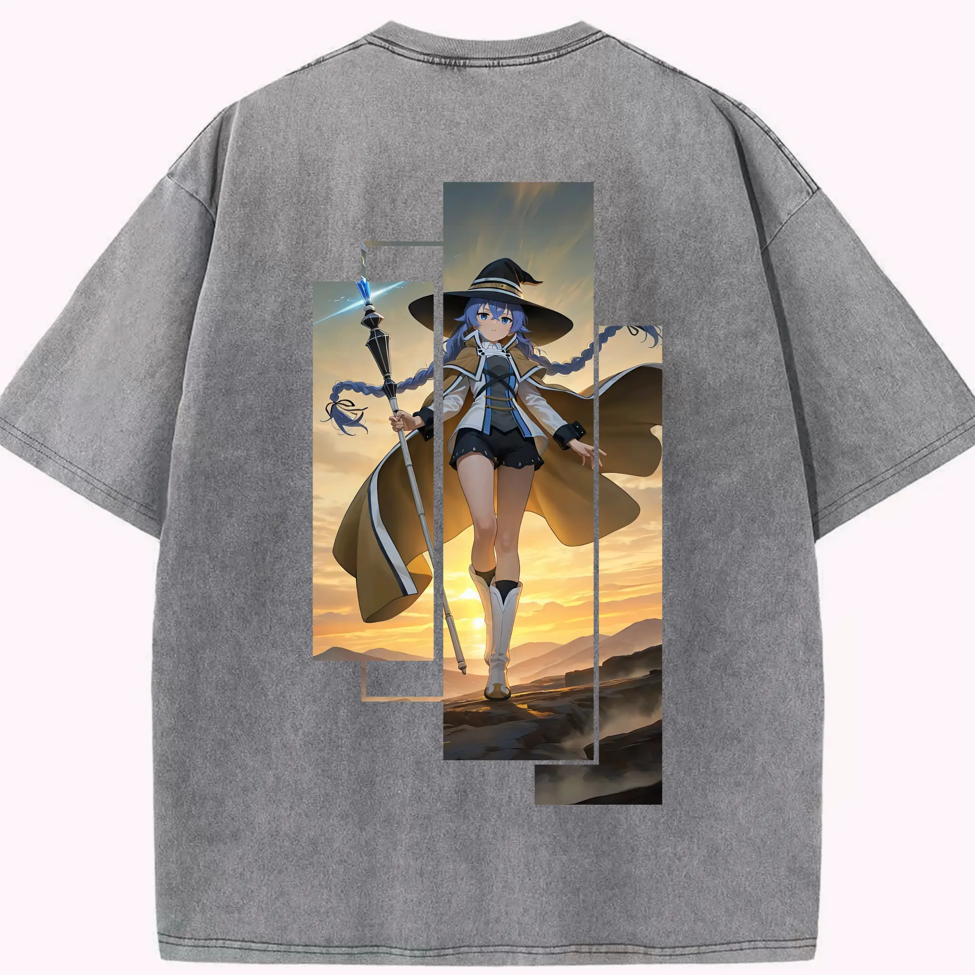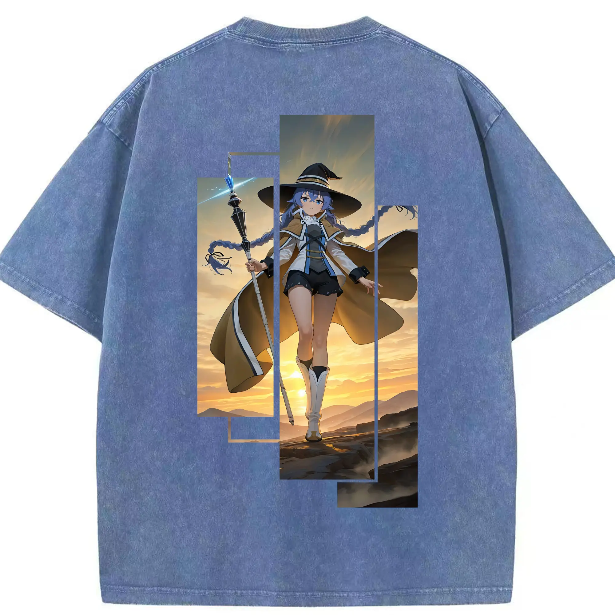 無職転生 グッズ,ロキシー・ミグルディア - 綿100% ヴィンテージ風 半袖Tシャツ ・ フロントプリント ・ 柔らか肌触り ・ 通気性 快適 ・ スポーツ カジュアル 外出用