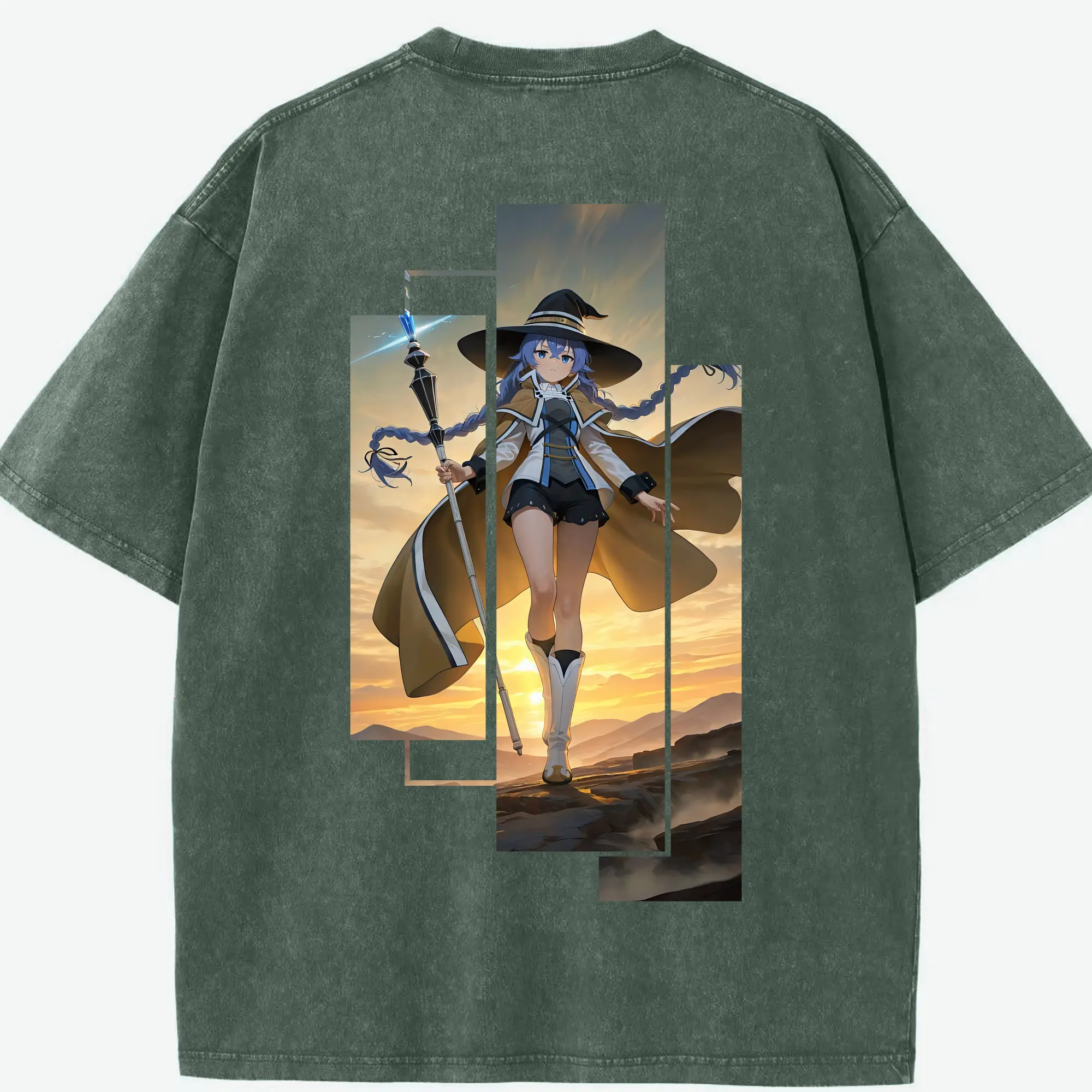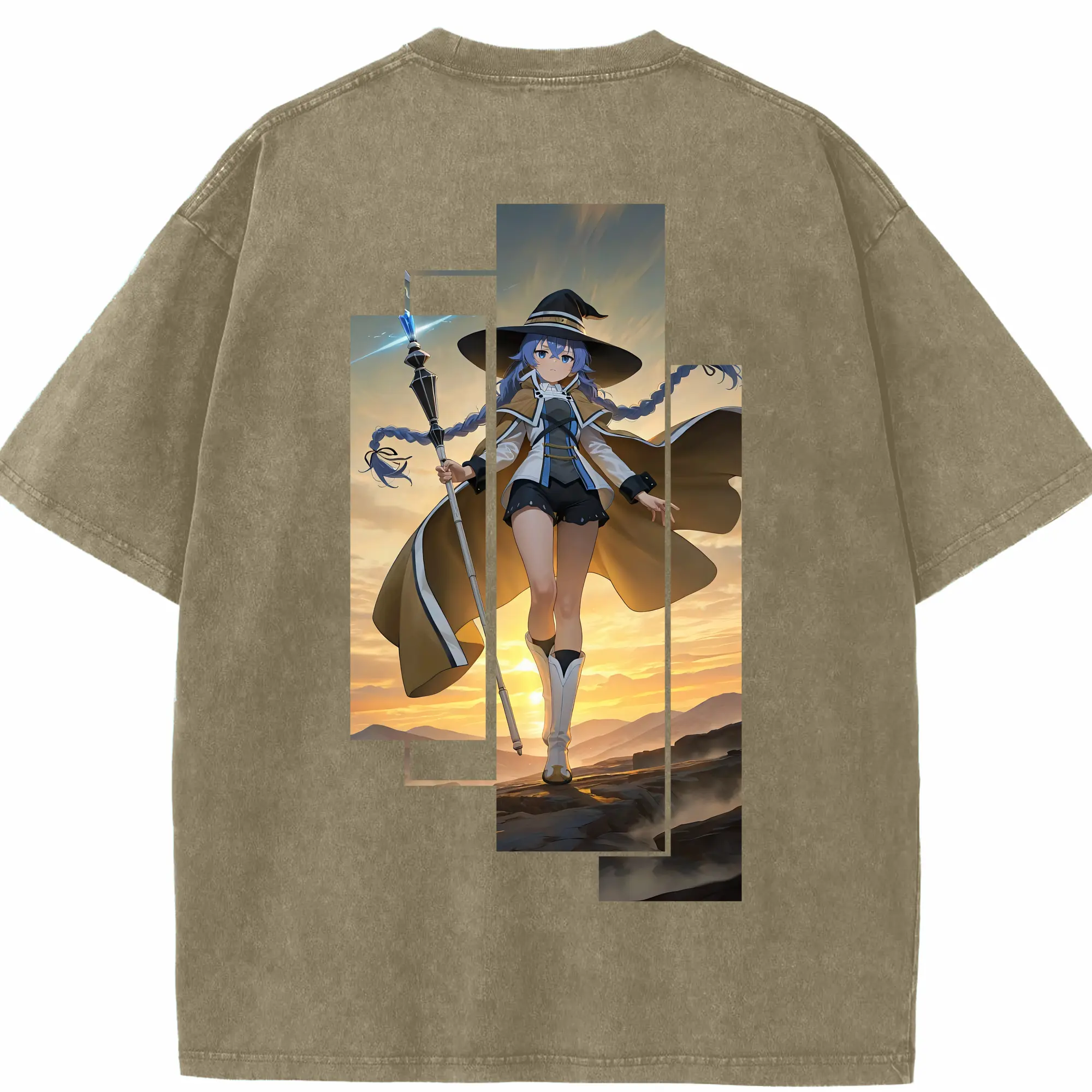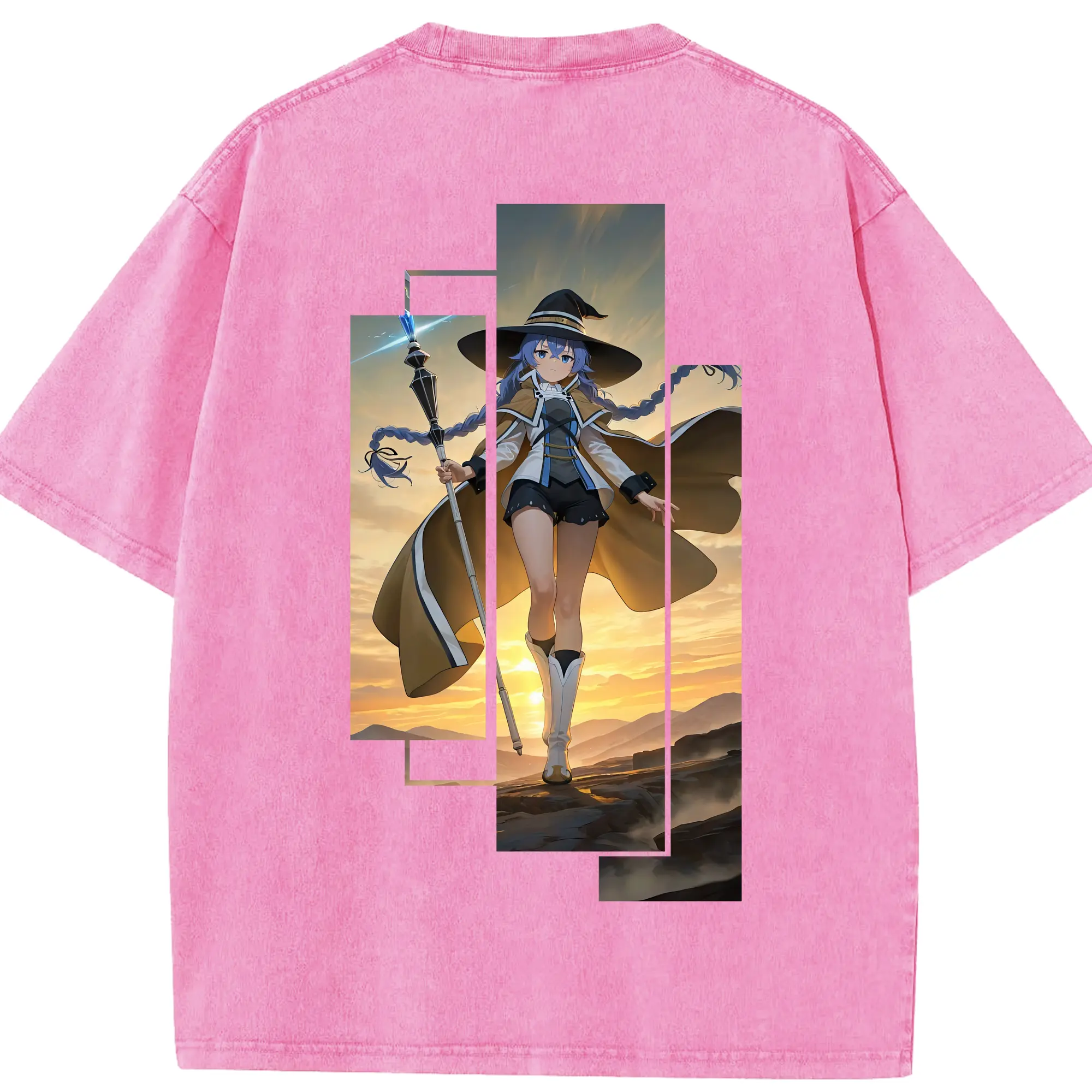 無職転生 グッズ,ロキシー・ミグルディア - 綿100% ヴィンテージ風 半袖Tシャツ ・ フロントプリント ・ 柔らか肌触り ・ 通気性 快適 ・ スポーツ カジュアル 外出用