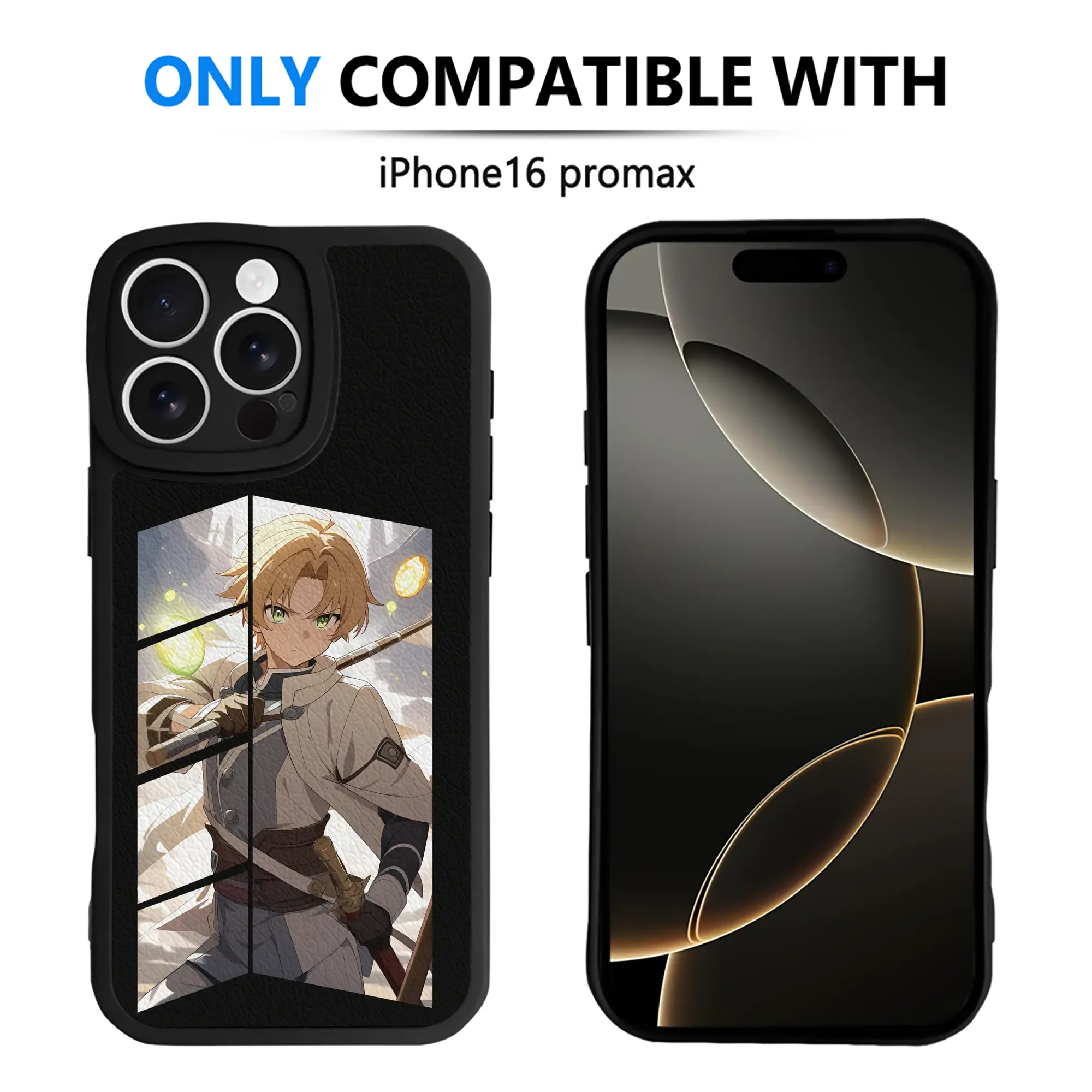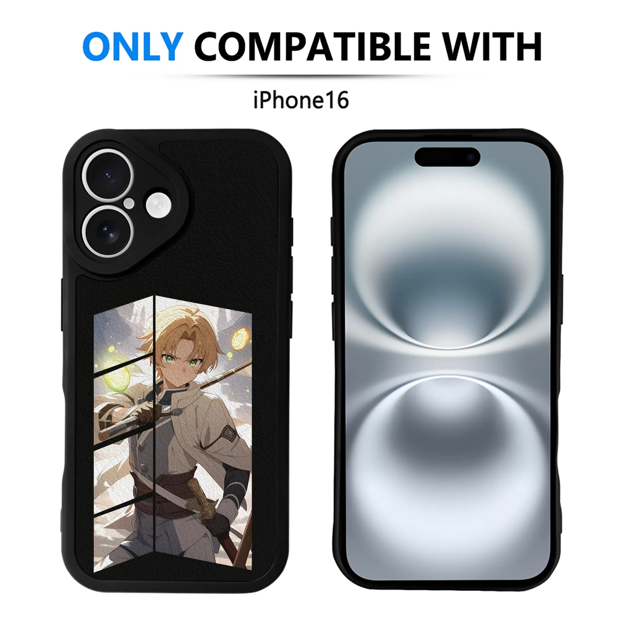 無職転生 グッズ,ルーデウス・グレイラット - IPhone 16シリーズ対応 ・ シリコンスマホケース ・ レザー調 ・ 高精度フィット ・ 耐衝撃 ・ ワイヤレス充電対応 ・ 精密カット