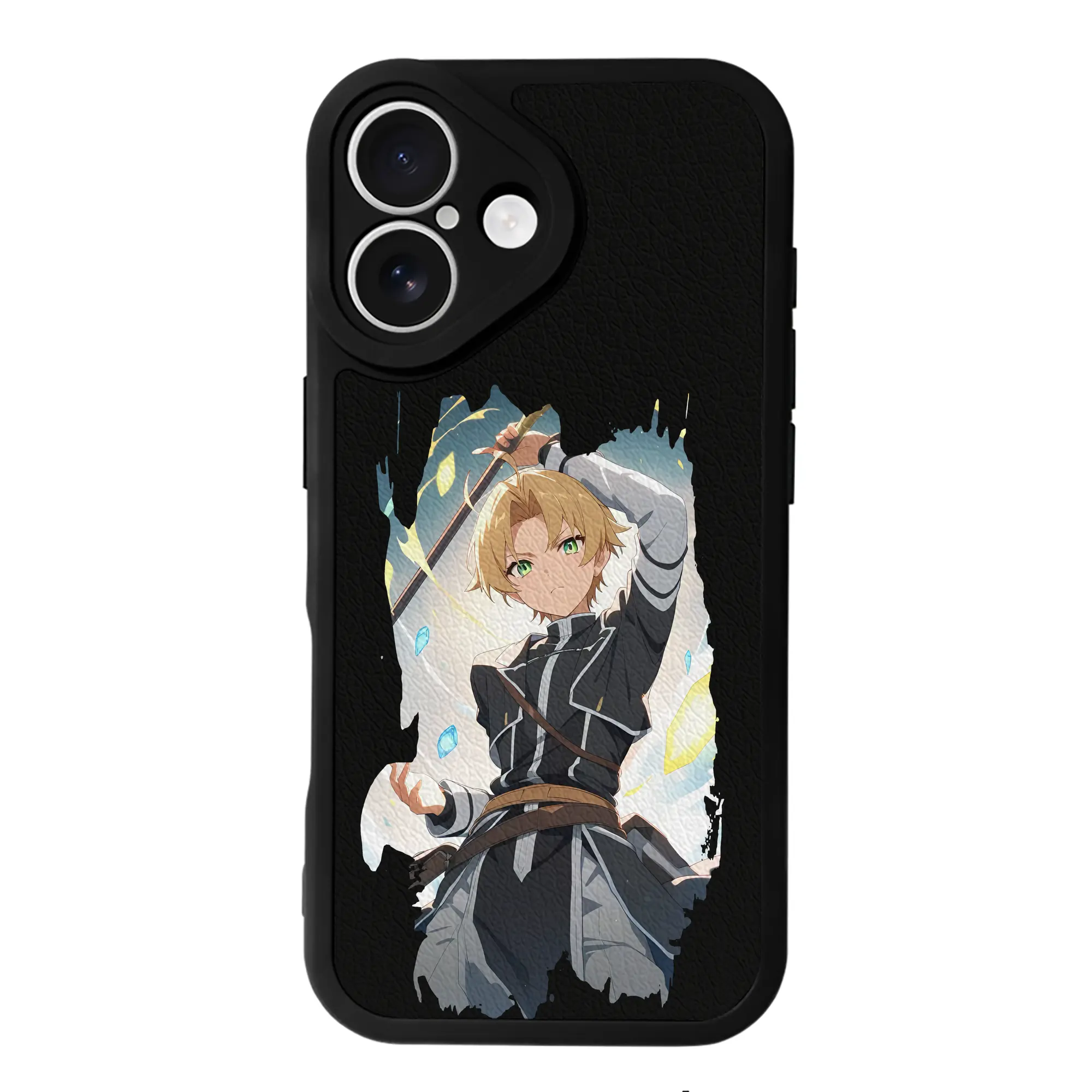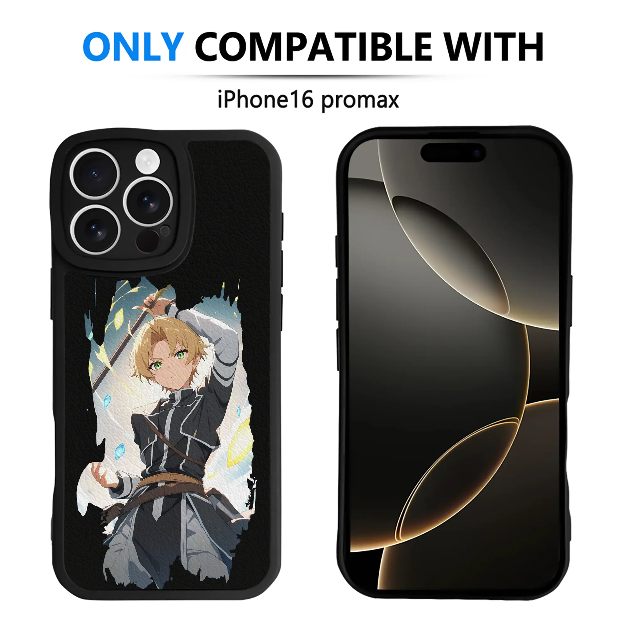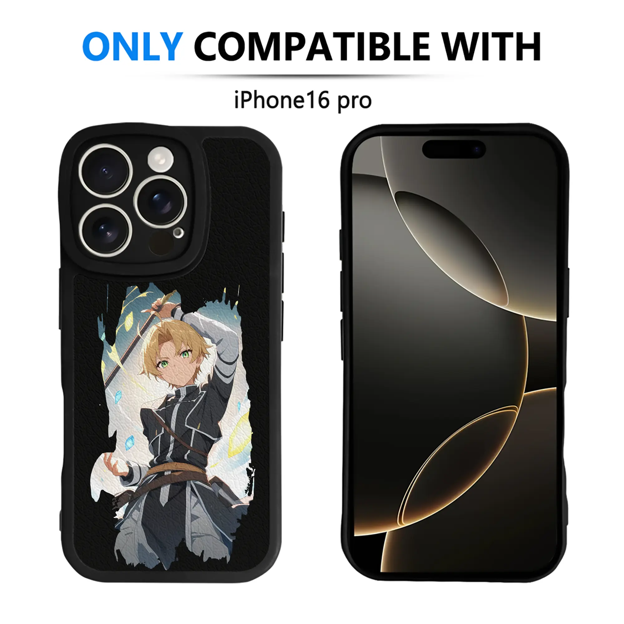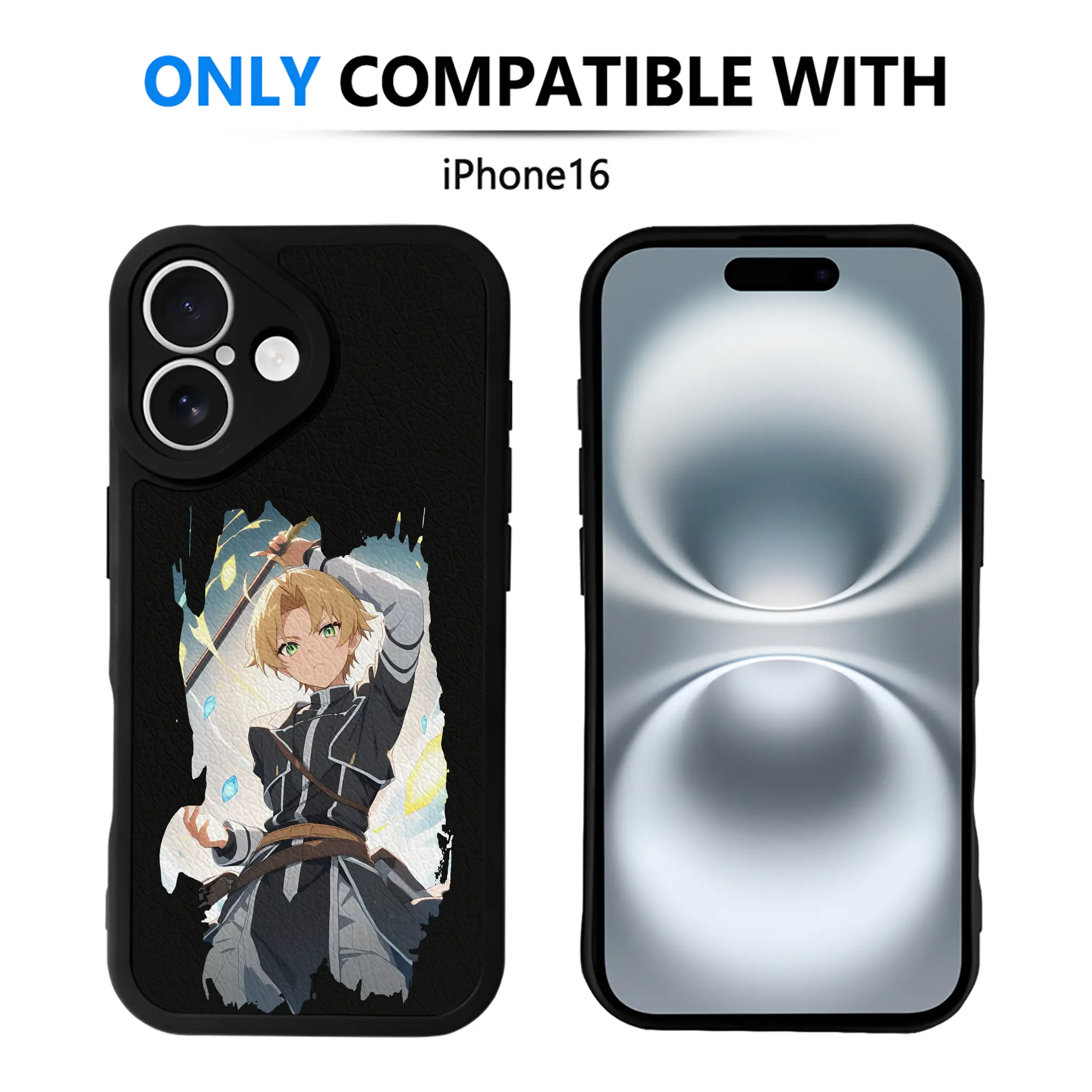 無職転生 グッズ,ルーデウス・グレイラット - IPhone 16シリーズ対応 ・ シリコンスマホケース ・ レザー調 ・ 高精度フィット ・ 耐衝撃 ・ ワイヤレス充電対応 ・ 精密カット
