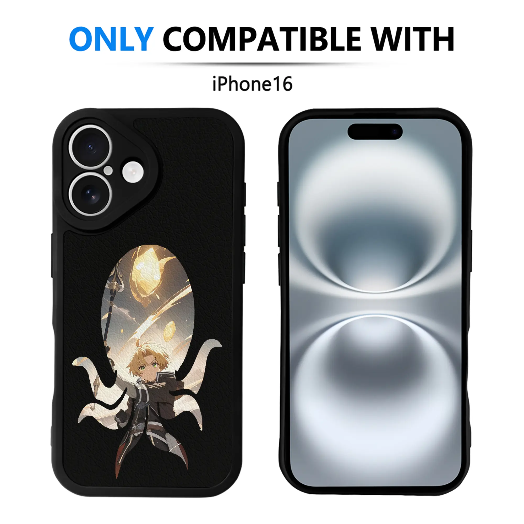 無職転生 グッズ,ルーデウス・グレイラット - IPhone 16シリーズ対応 ・ シリコンスマホケース ・ レザー調 ・ 高精度フィット ・ 耐衝撃 ・ ワイヤレス充電対応 ・ 精密カット