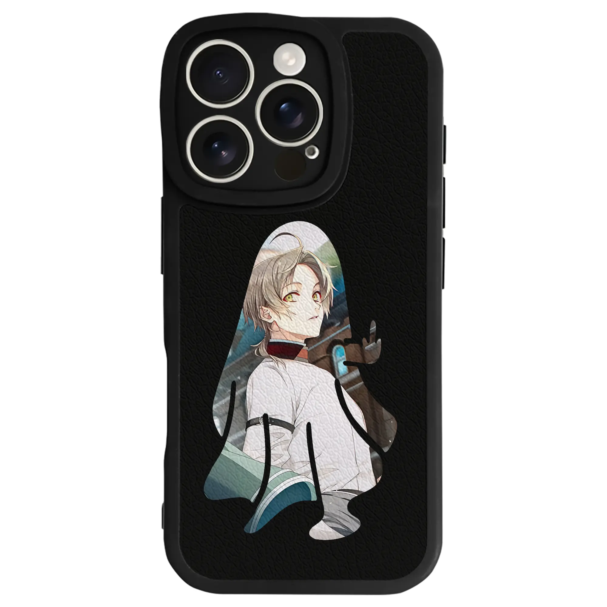 無職転生 グッズ,ルーデウス・グレイラット - IPhone 16シリーズ対応 ・ シリコンスマホケース ・ レザー調 ・ 高精度フィット ・ 耐衝撃 ・ ワイヤレス充電対応 ・ 精密カット