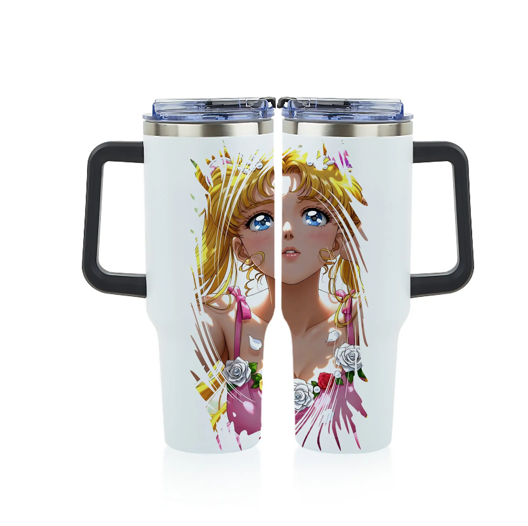 美少女戦士セーラームーン グッズ 月野 うさぎ - 1200mL フルプリント車用タンブラー ・ 304ステンレス 内側 ・ 201ステンレス 外側 ・ 保温 保冷 ・ 通勤 ドライブ アウトドア用