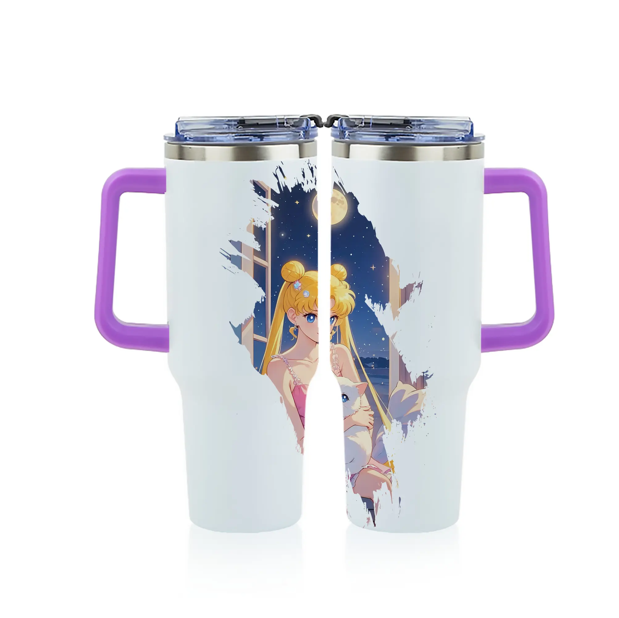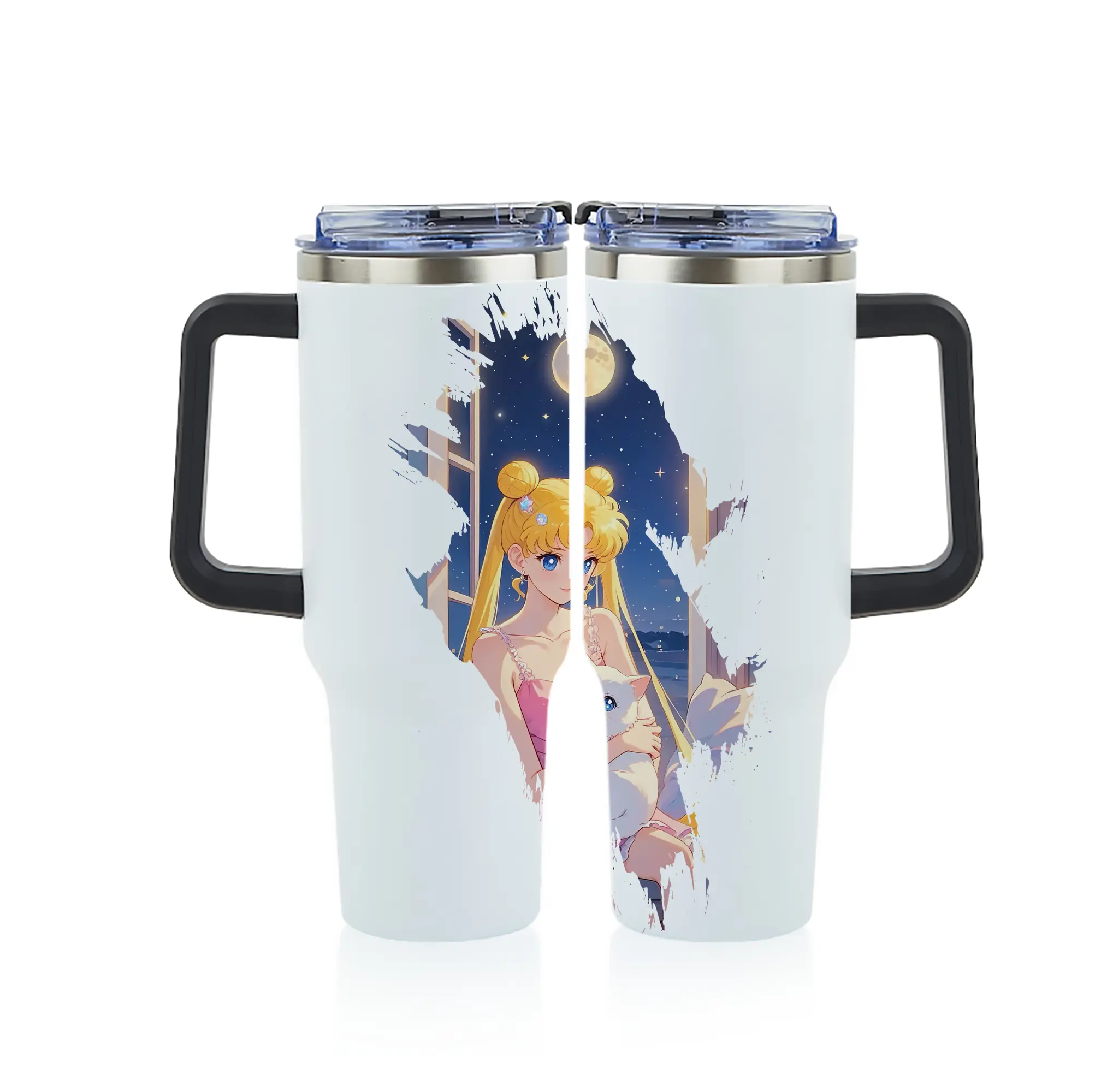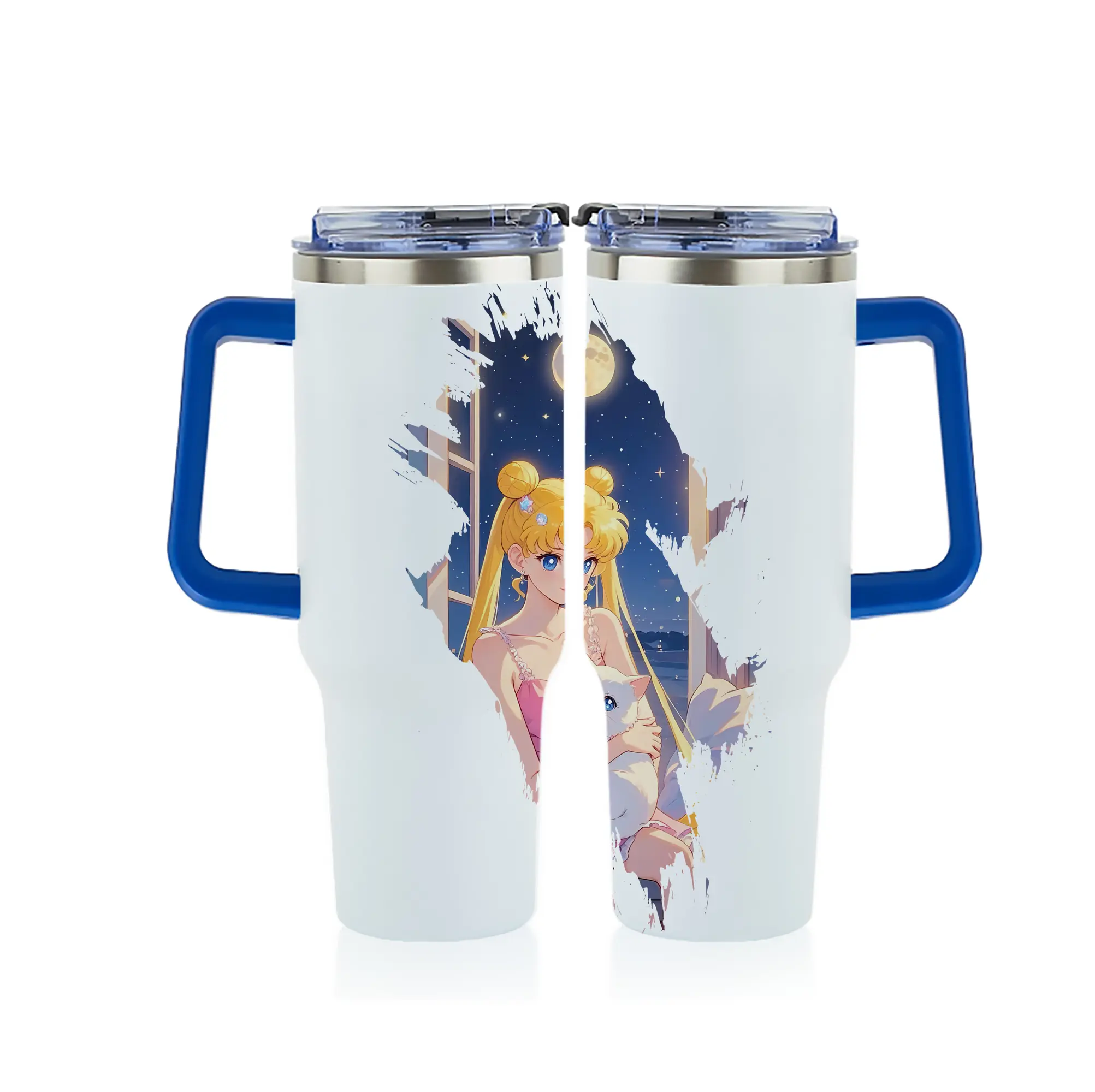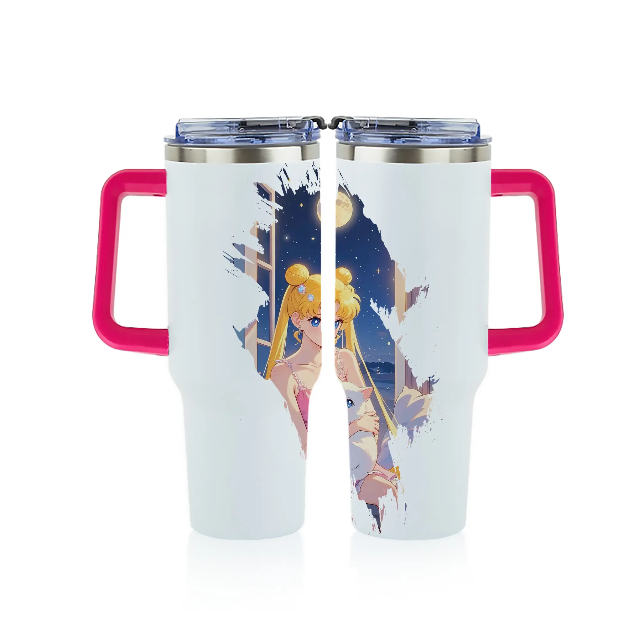 美少女戦士セーラームーン グッズ 月野 うさぎ - 1200mL フルプリント車用タンブラー ・ 304ステンレス 内側 ・ 201ステンレス 外側 ・ 保温 保冷 ・ 通勤 ドライブ アウトドア用
