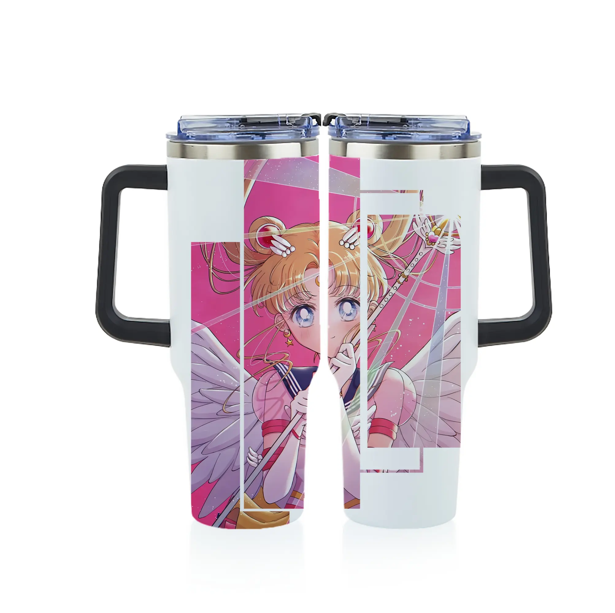 美少女戦士セーラームーン グッズ 月野 うさぎ - 1200mL フルプリント車用タンブラー ・ 304ステンレス 内側 ・ 201ステンレス 外側 ・ 保温 保冷 ・ 通勤 ドライブ アウトドア用