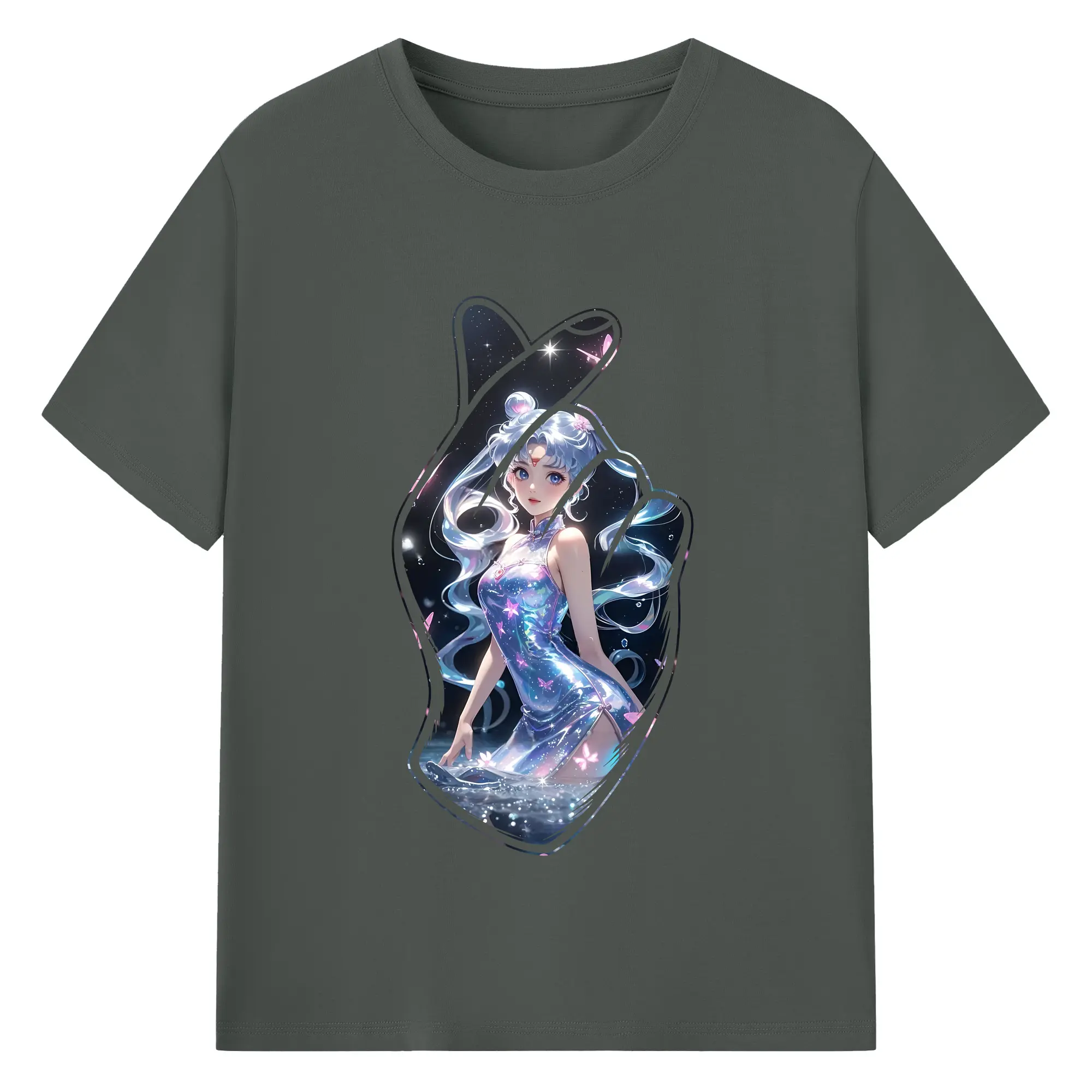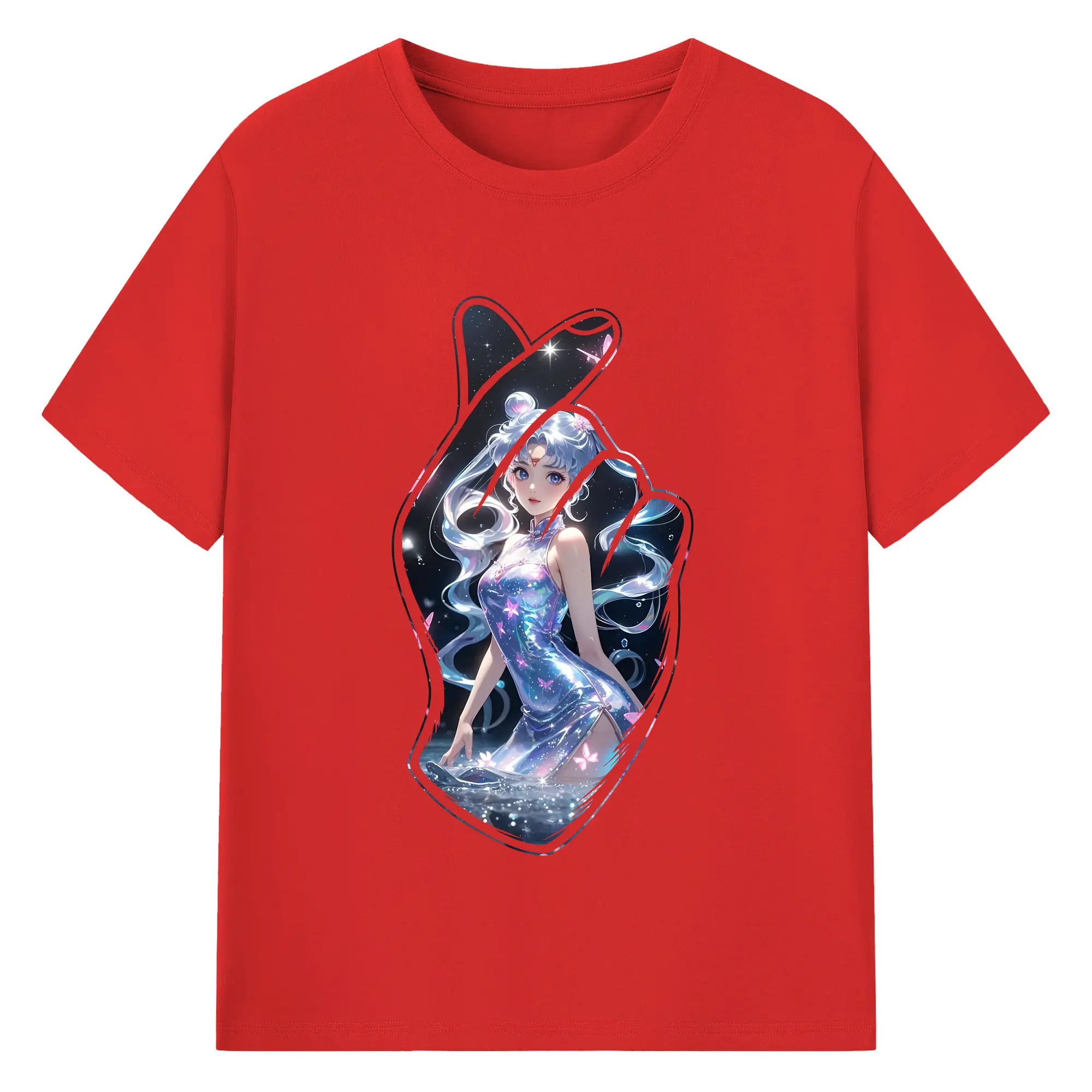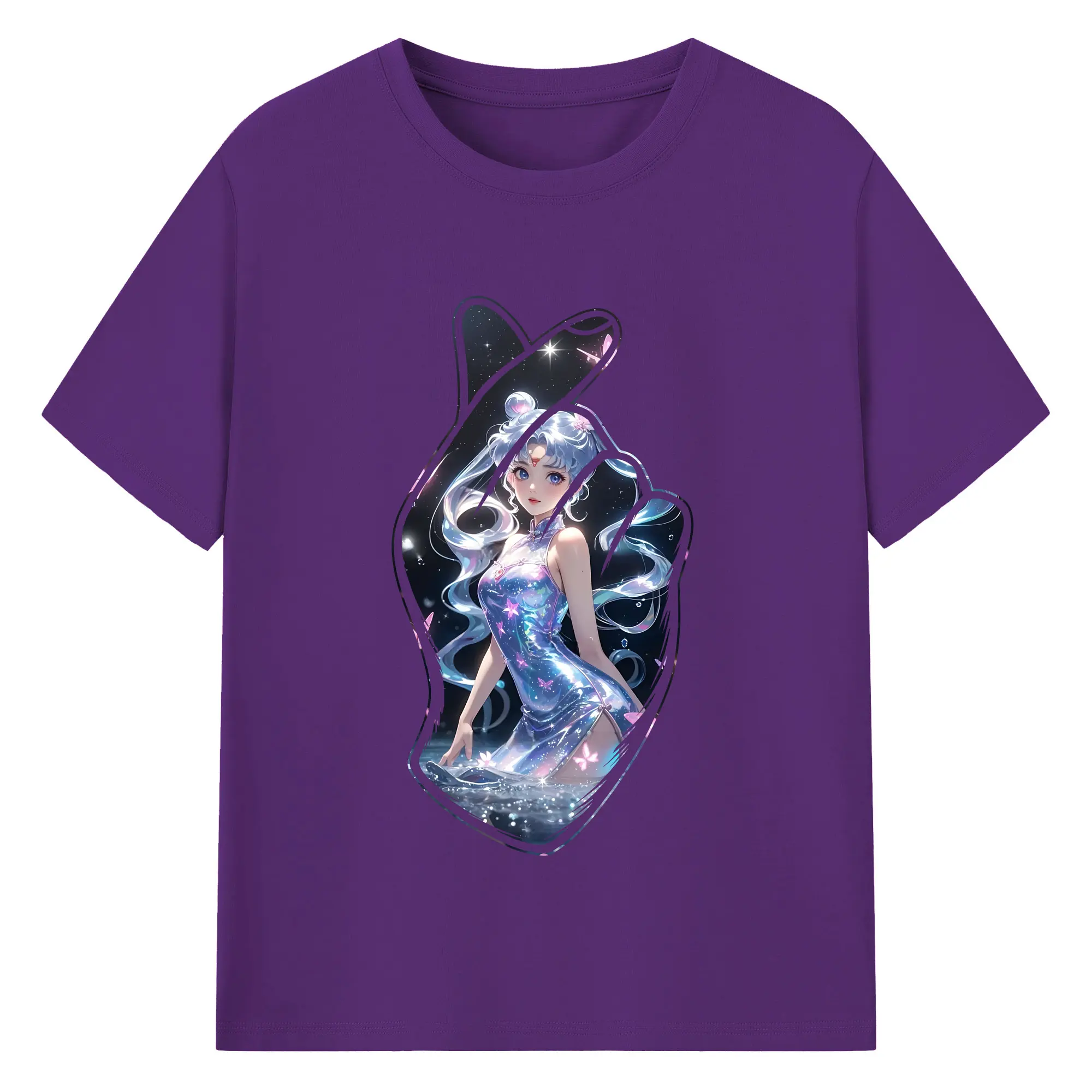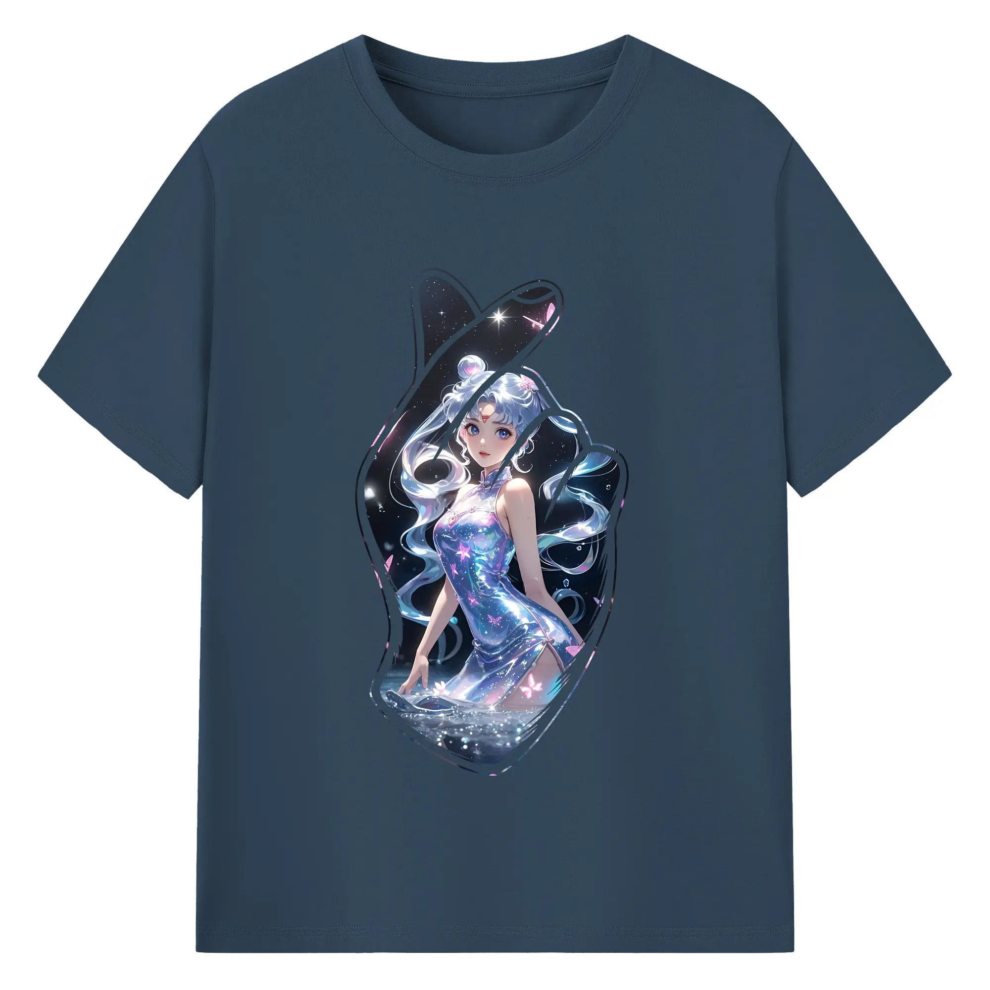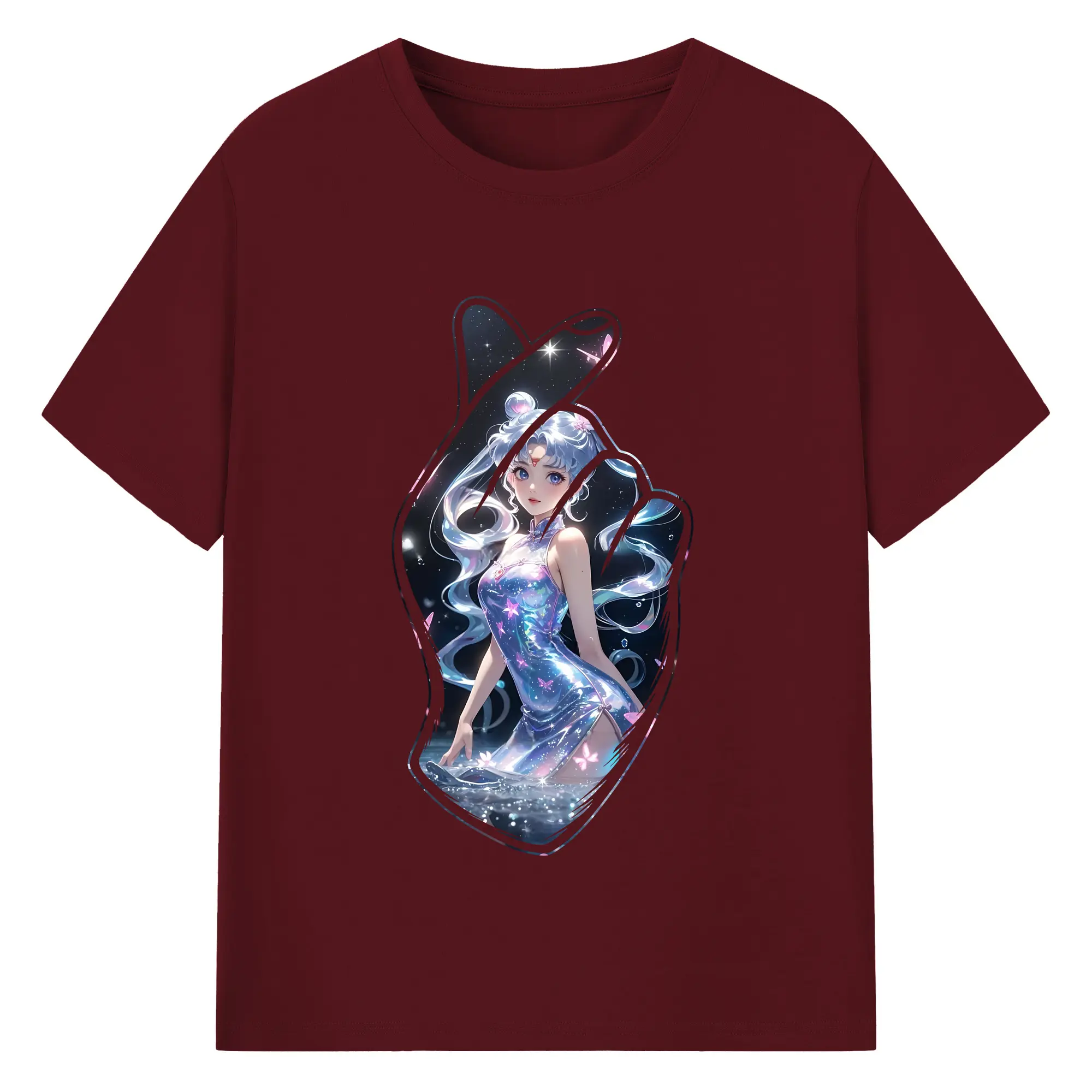 美少女戦士セーラームーン グッズ 月野 うさぎ - 綿100% 半袖Tシャツ ・ バックプリント ・ 快適 通気性 ・ 日常使い 散歩 スポーツ用