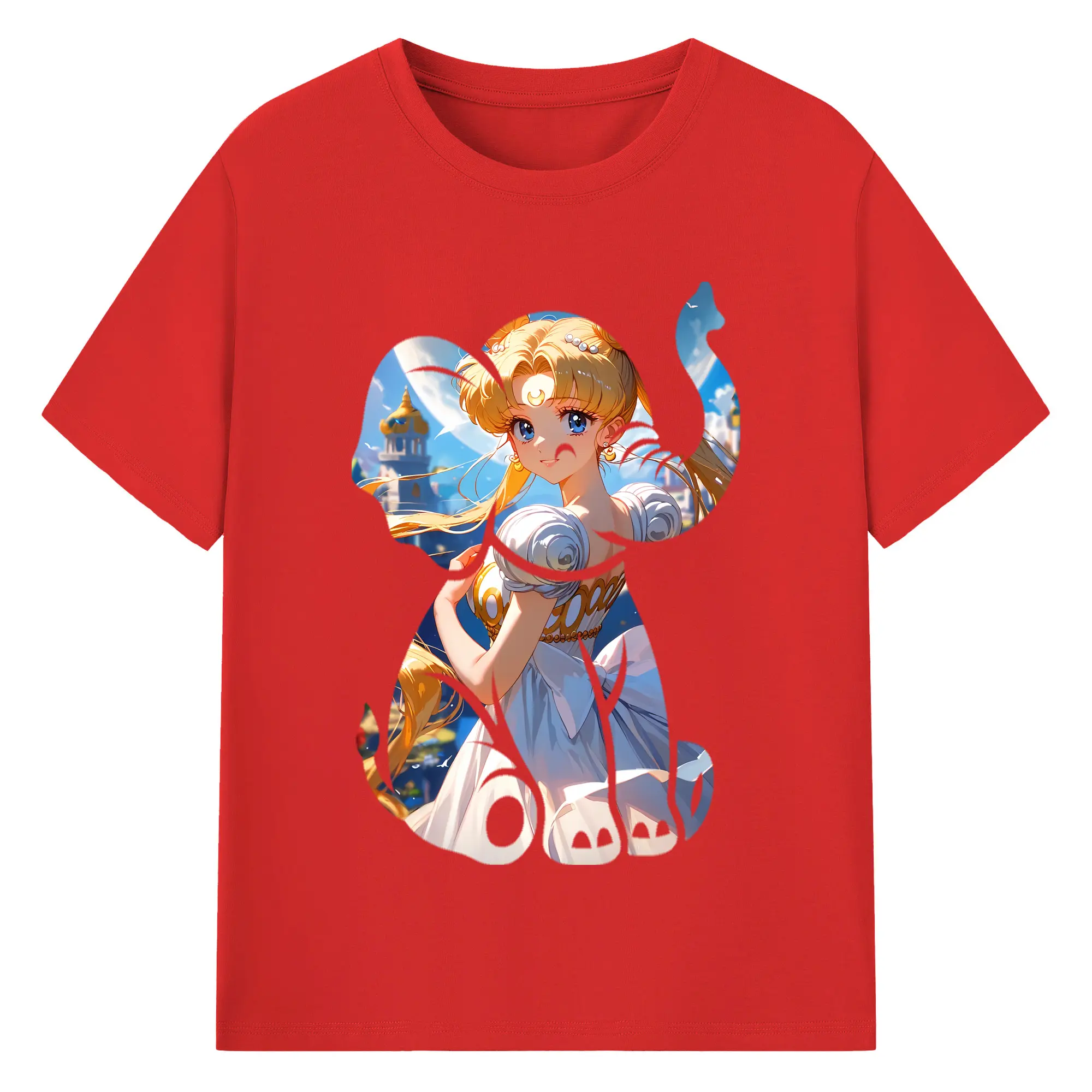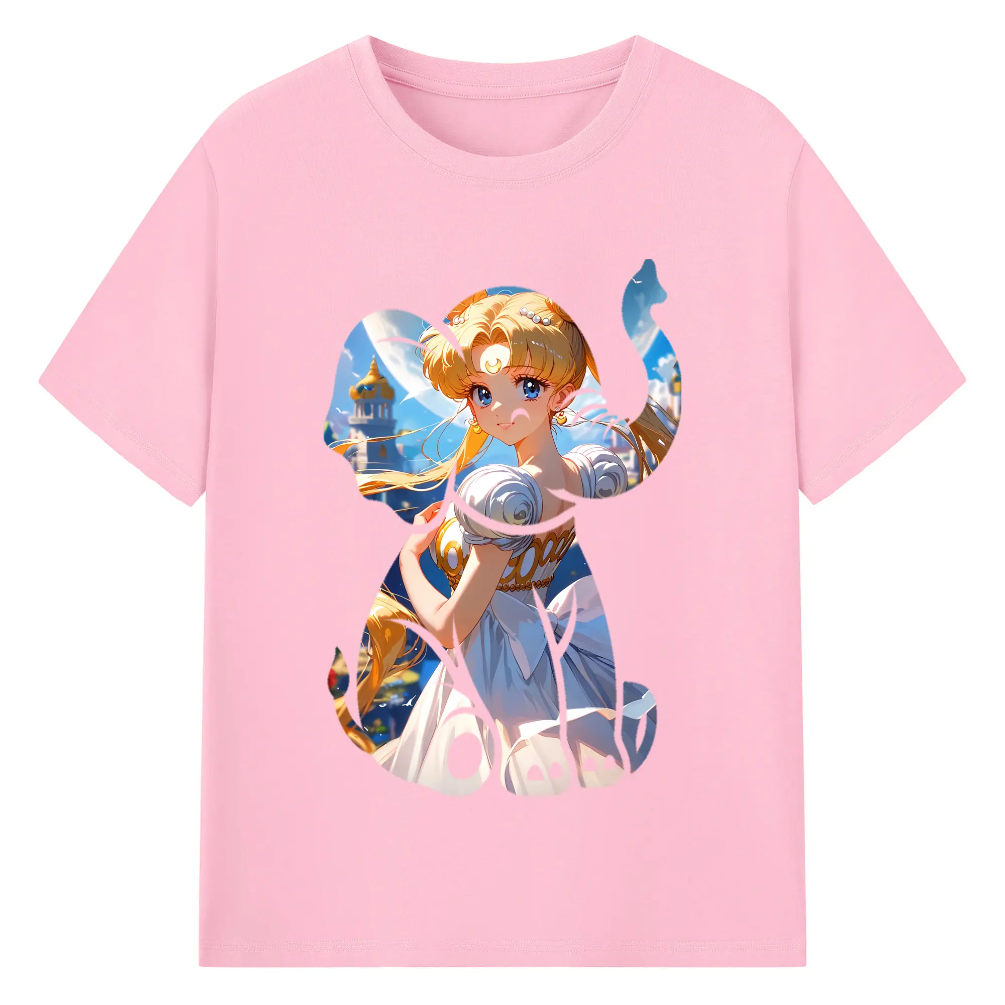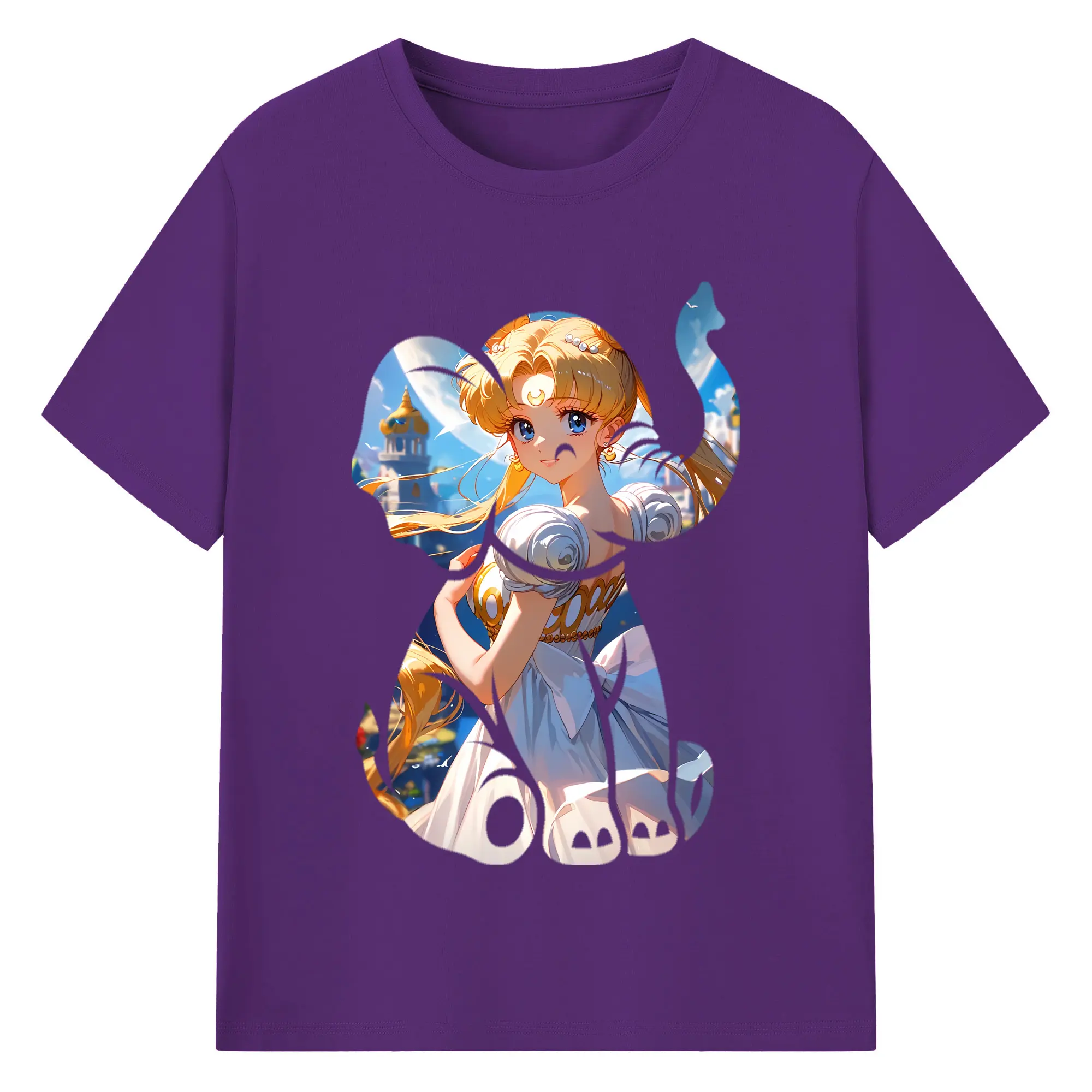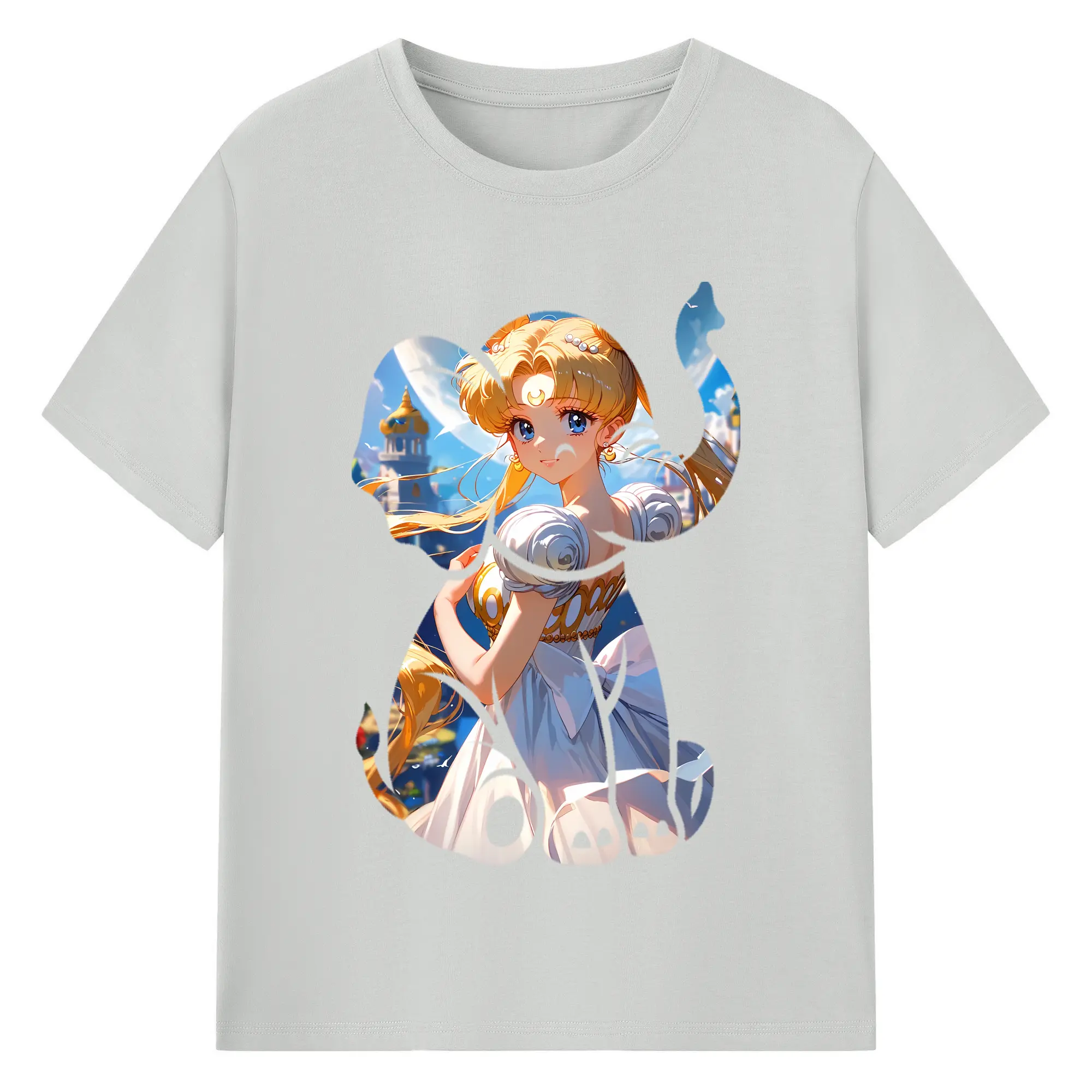 美少女戦士セーラームーン グッズ 月野 うさぎ - 綿100% 半袖Tシャツ ・ バックプリント ・ 快適 通気性 ・ 日常使い 散歩 スポーツ用