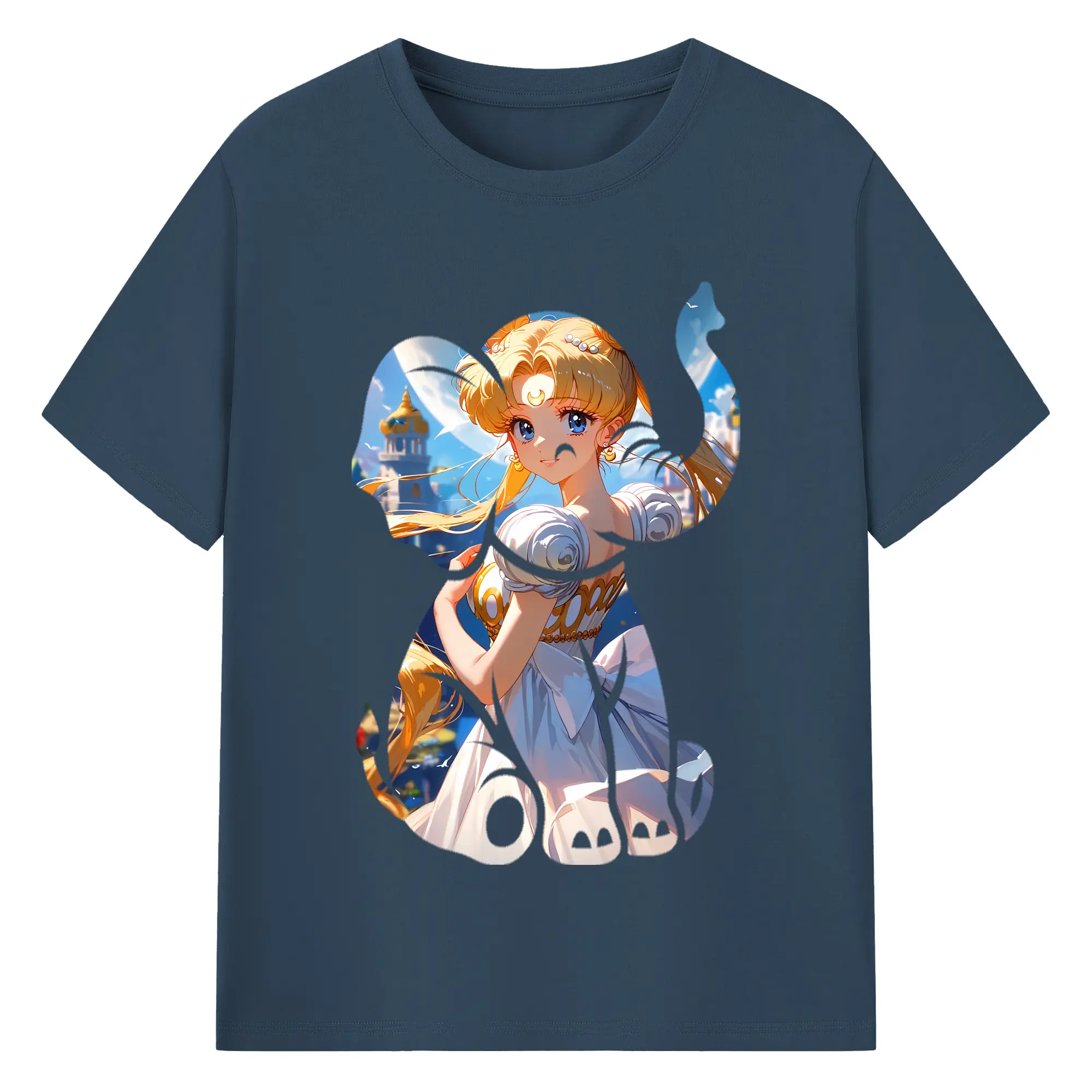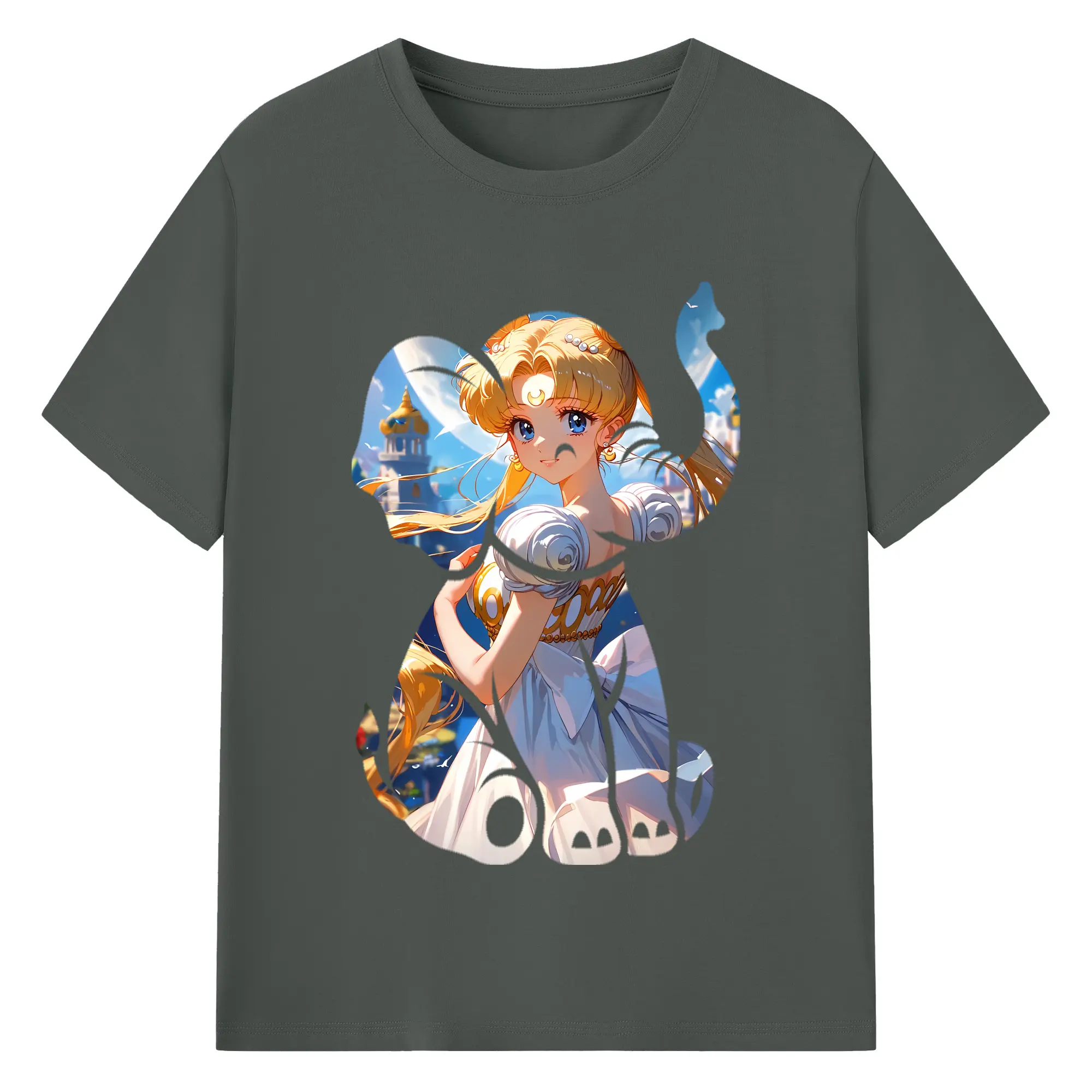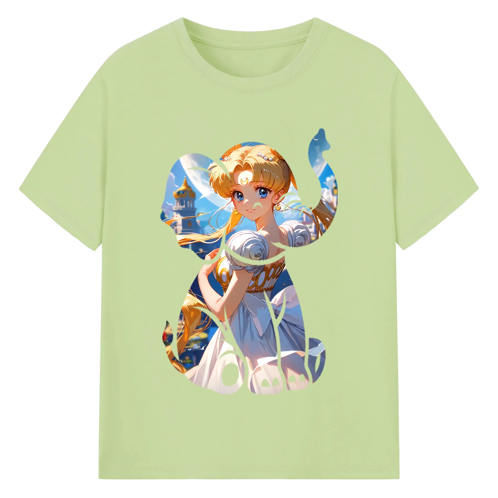 美少女戦士セーラームーン グッズ 月野 うさぎ - 綿100% 半袖Tシャツ ・ バックプリント ・ 快適 通気性 ・ 日常使い 散歩 スポーツ用