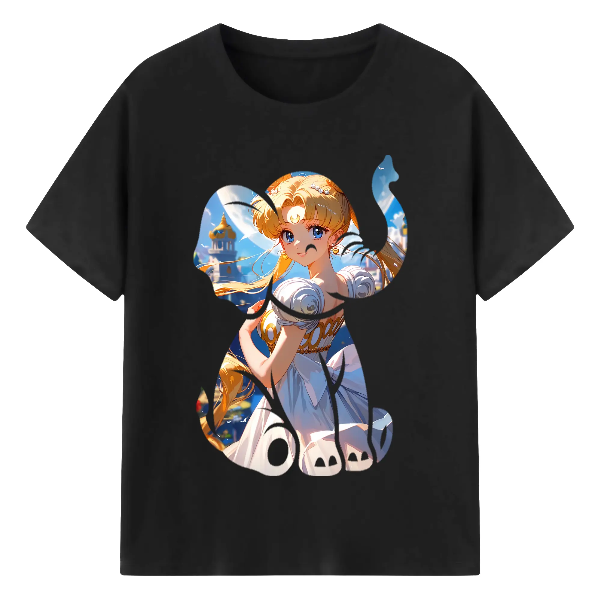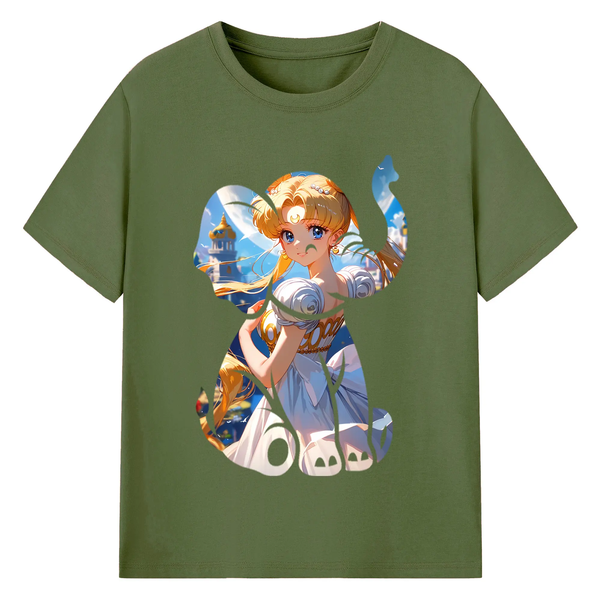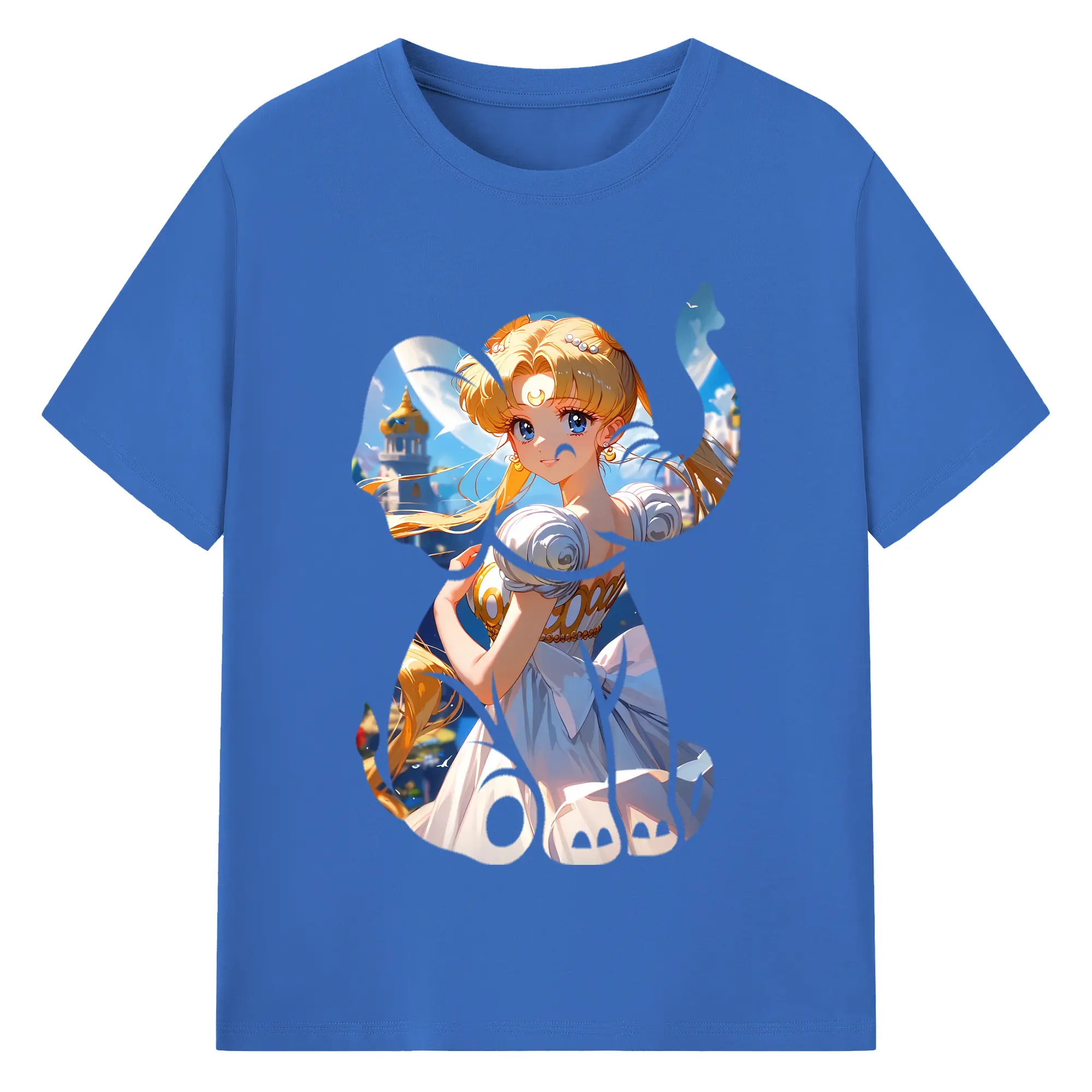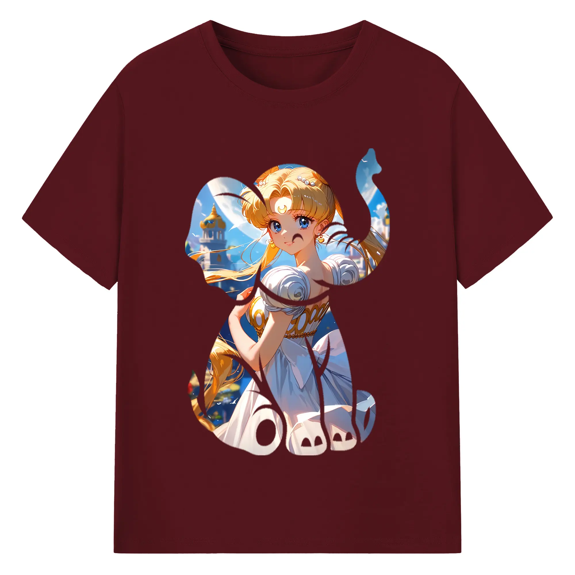 美少女戦士セーラームーン グッズ 月野 うさぎ - 綿100% 半袖Tシャツ ・ バックプリント ・ 快適 通気性 ・ 日常使い 散歩 スポーツ用