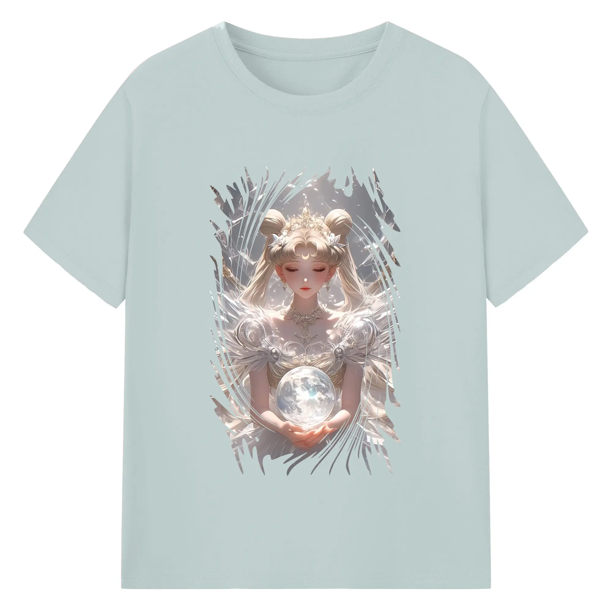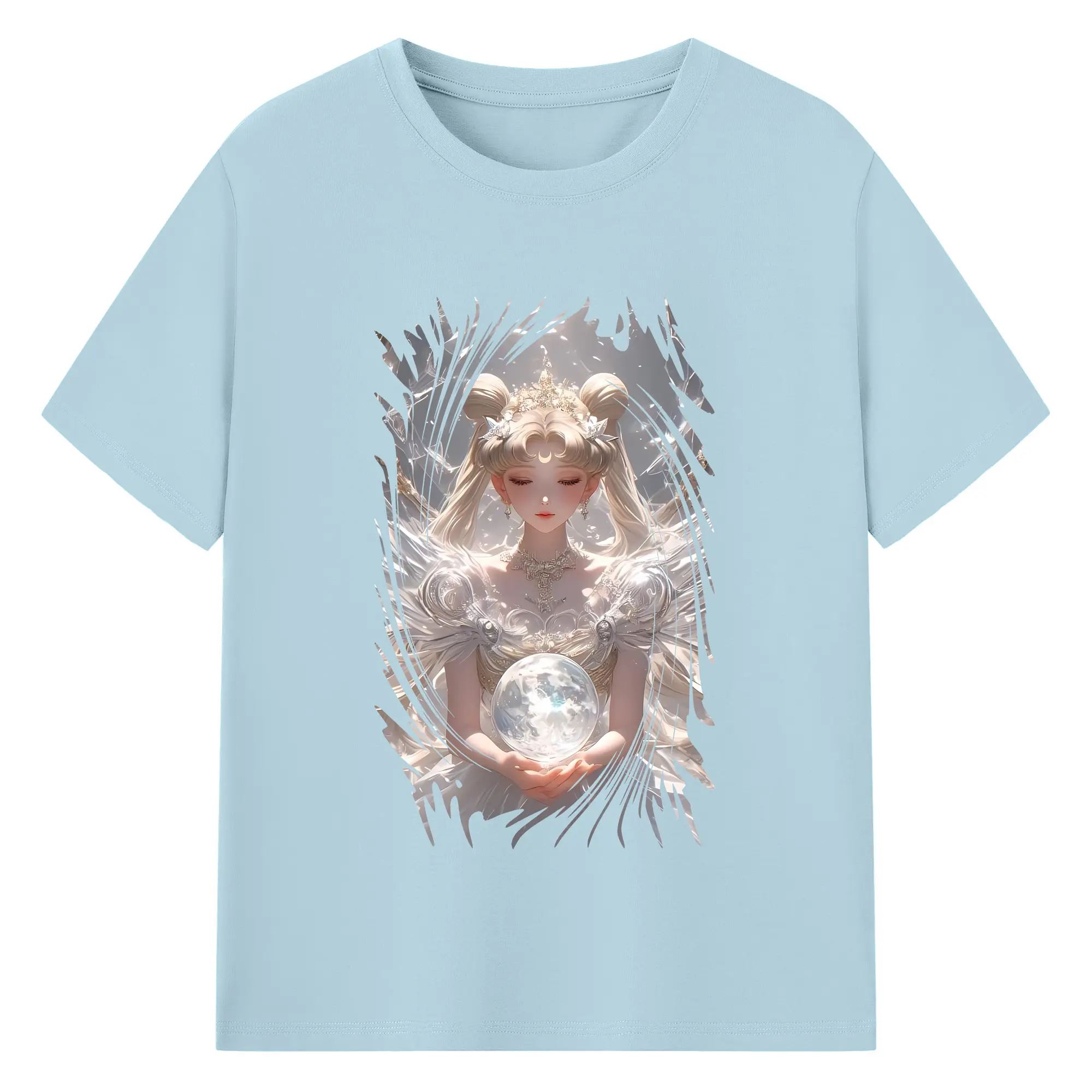 美少女戦士セーラームーン グッズ 水野 亜美 - 綿100% 半袖Tシャツ ・ フロントプリント ・ 快適 通気性 ・ 日常使い 散歩 スポーツ用