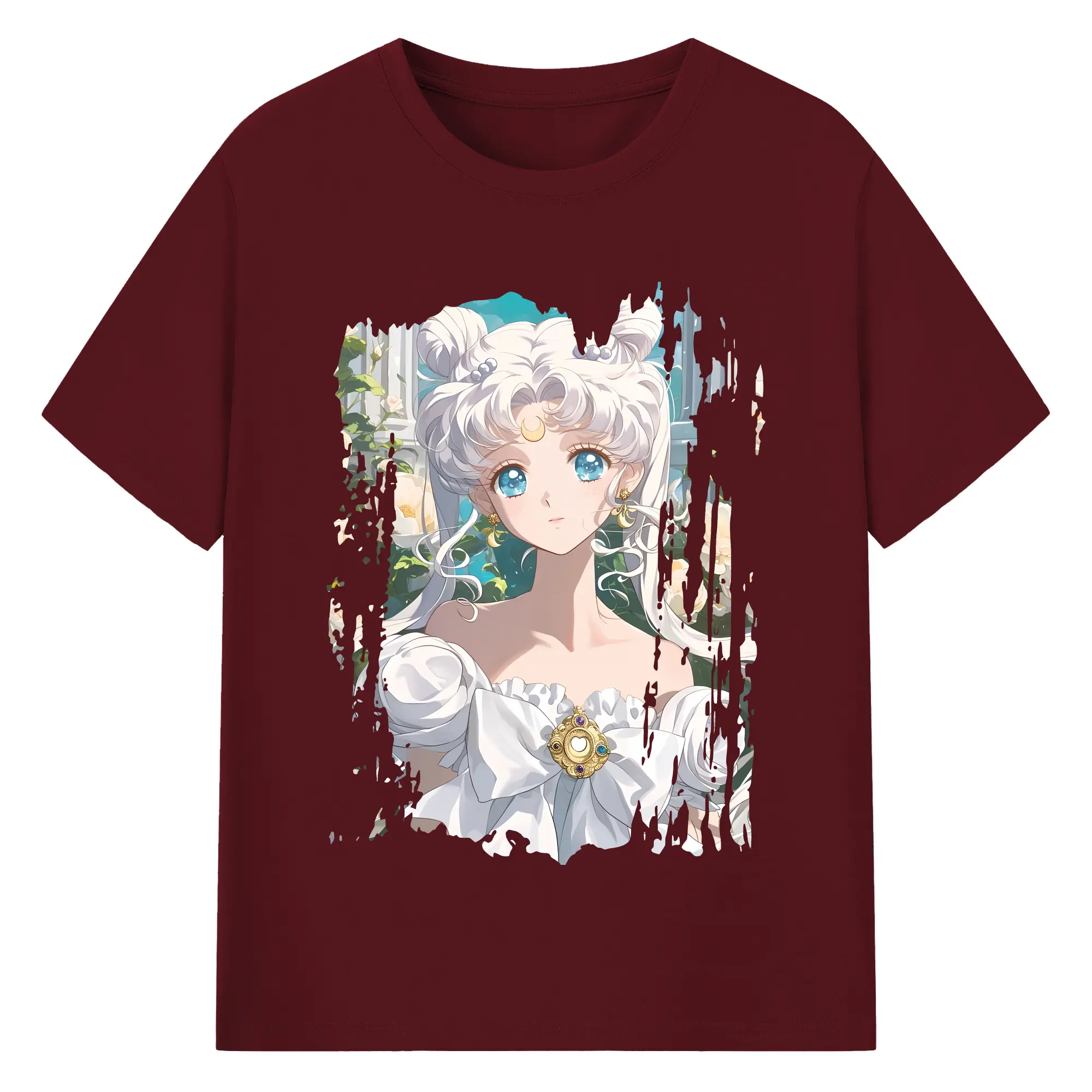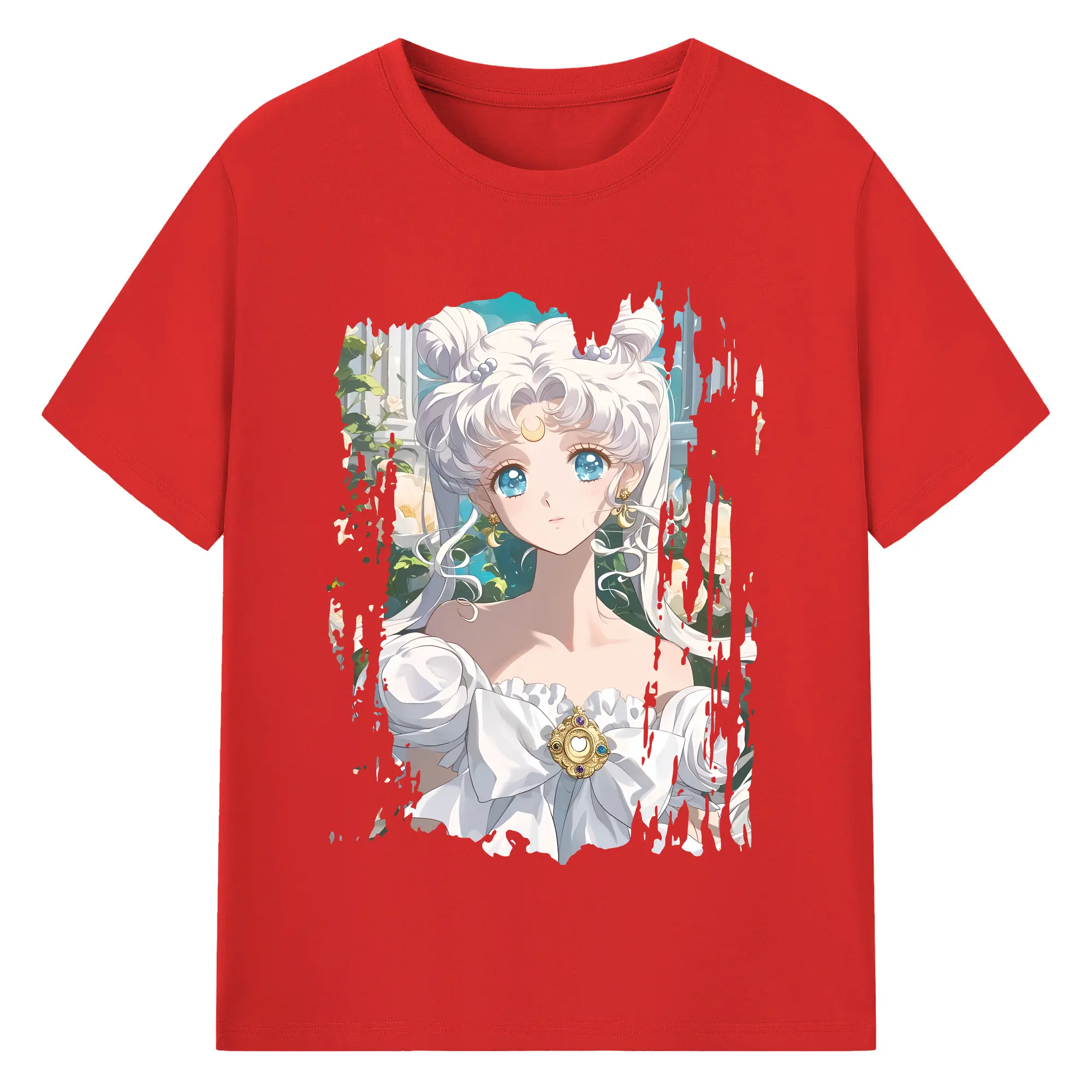 美少女戦士セーラームーン グッズ 月野 うさぎ - 綿100% 半袖Tシャツ ・ バックプリント ・ 快適 通気性 ・ 日常使い 散歩 スポーツ用