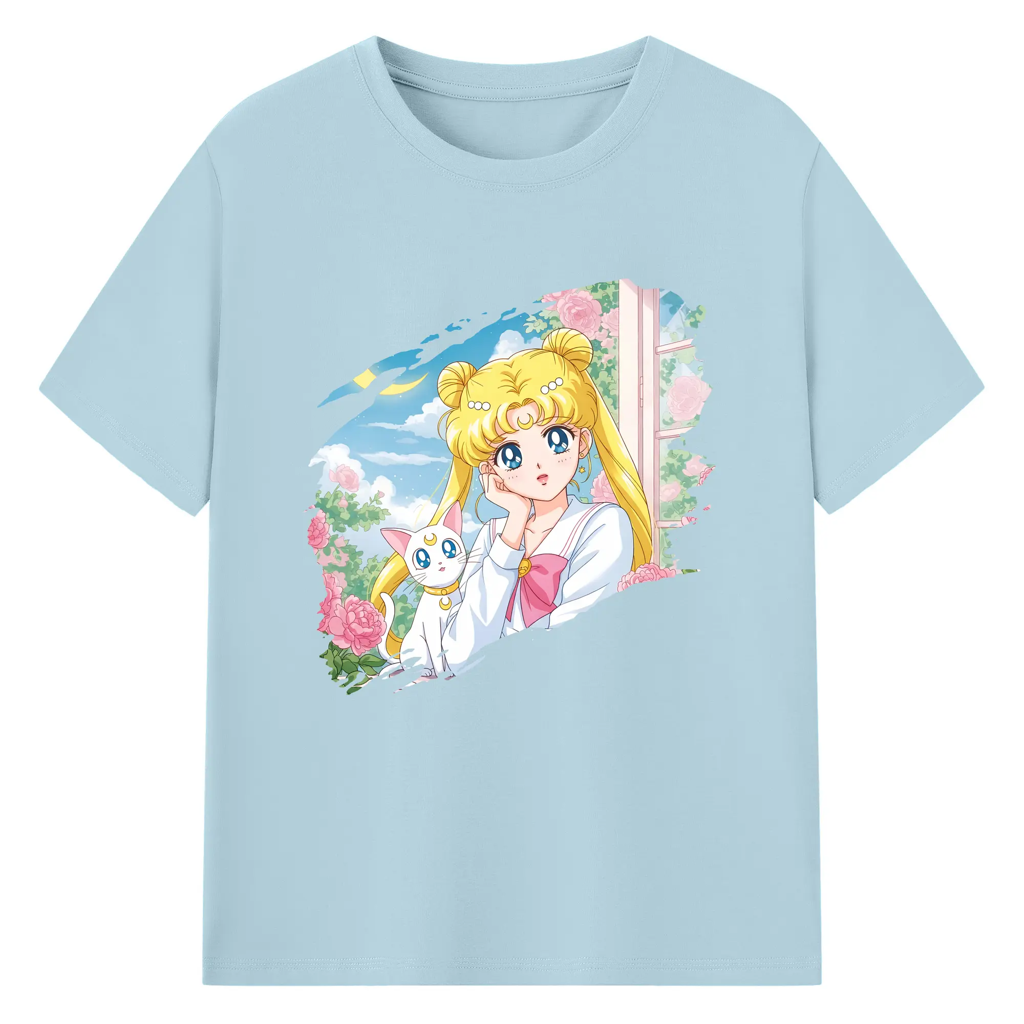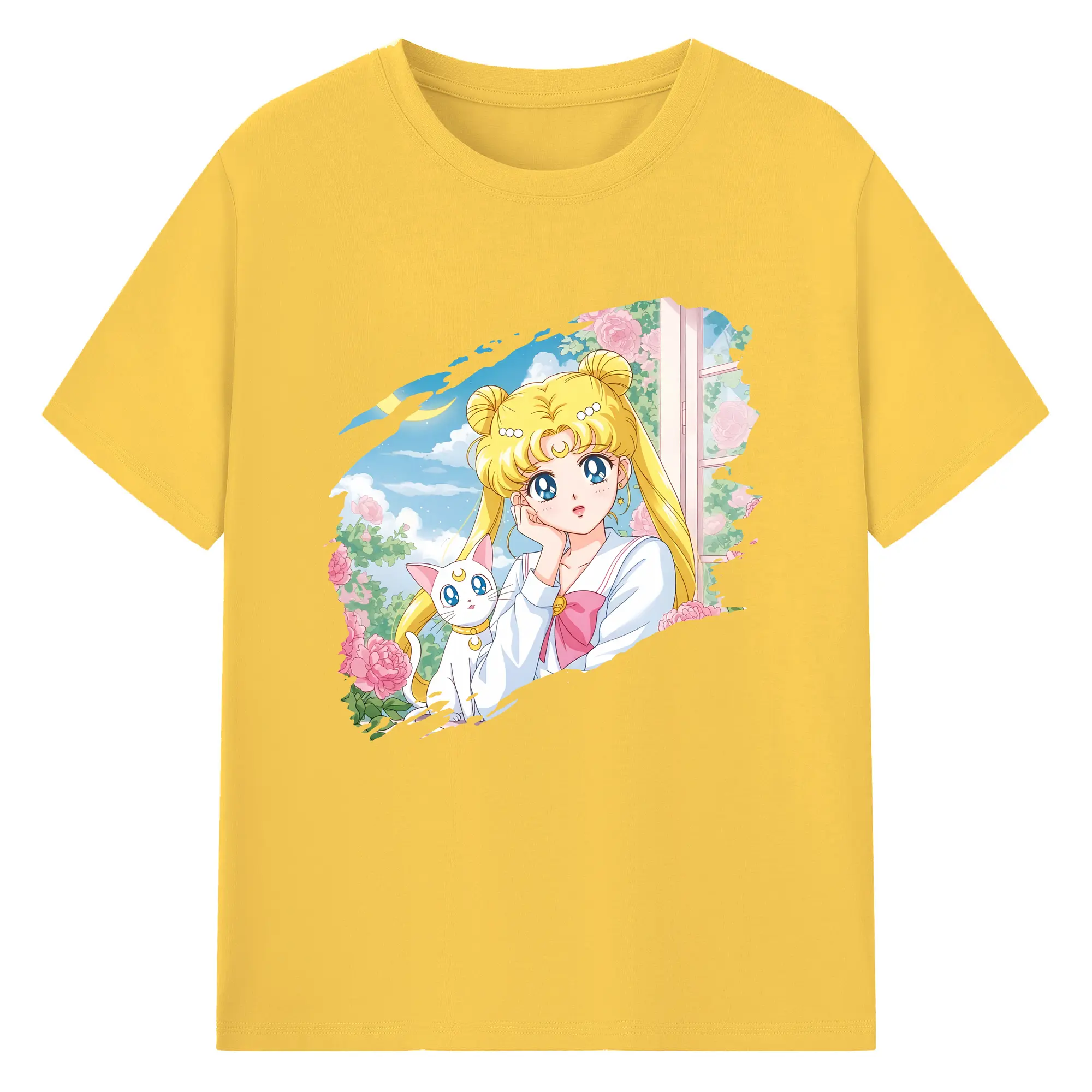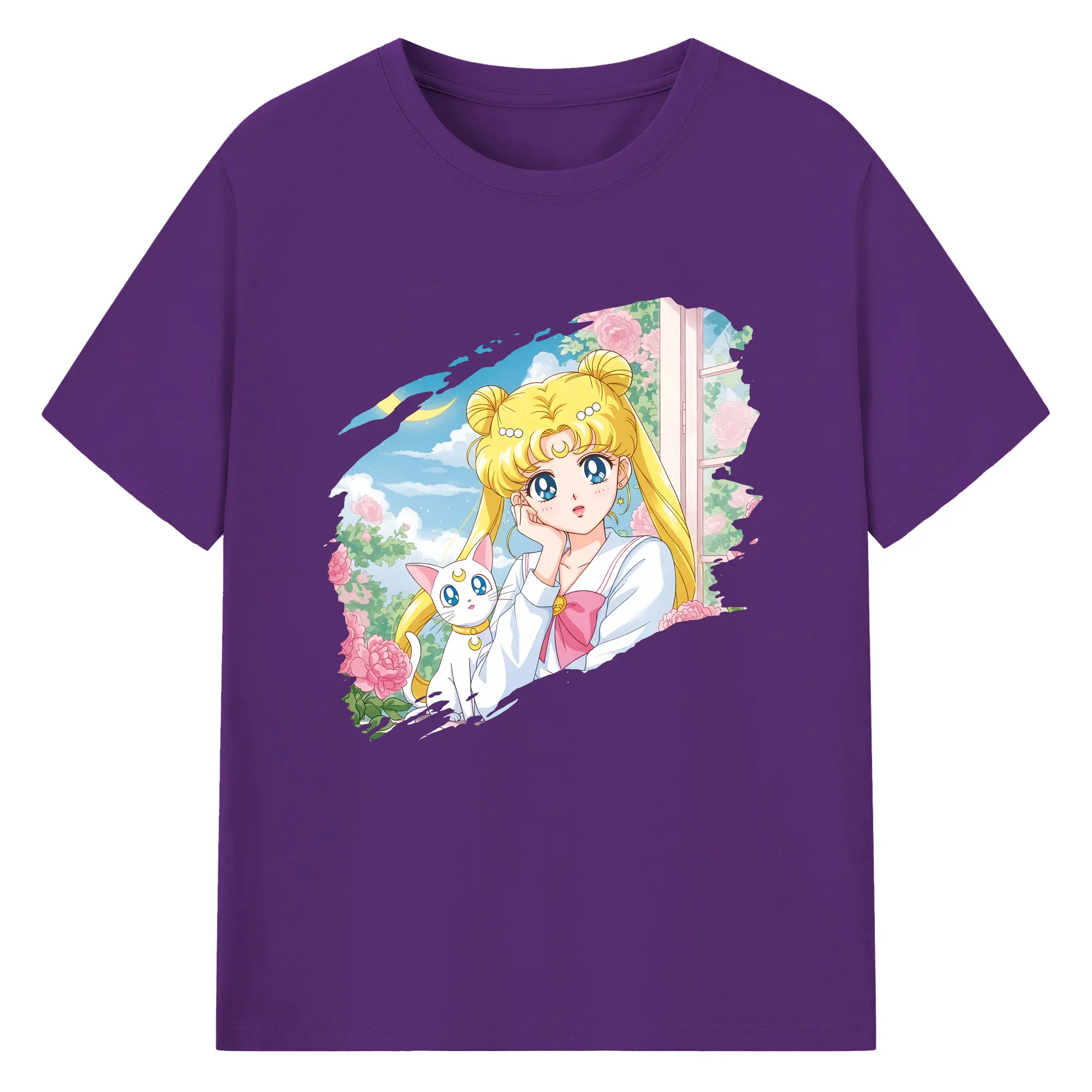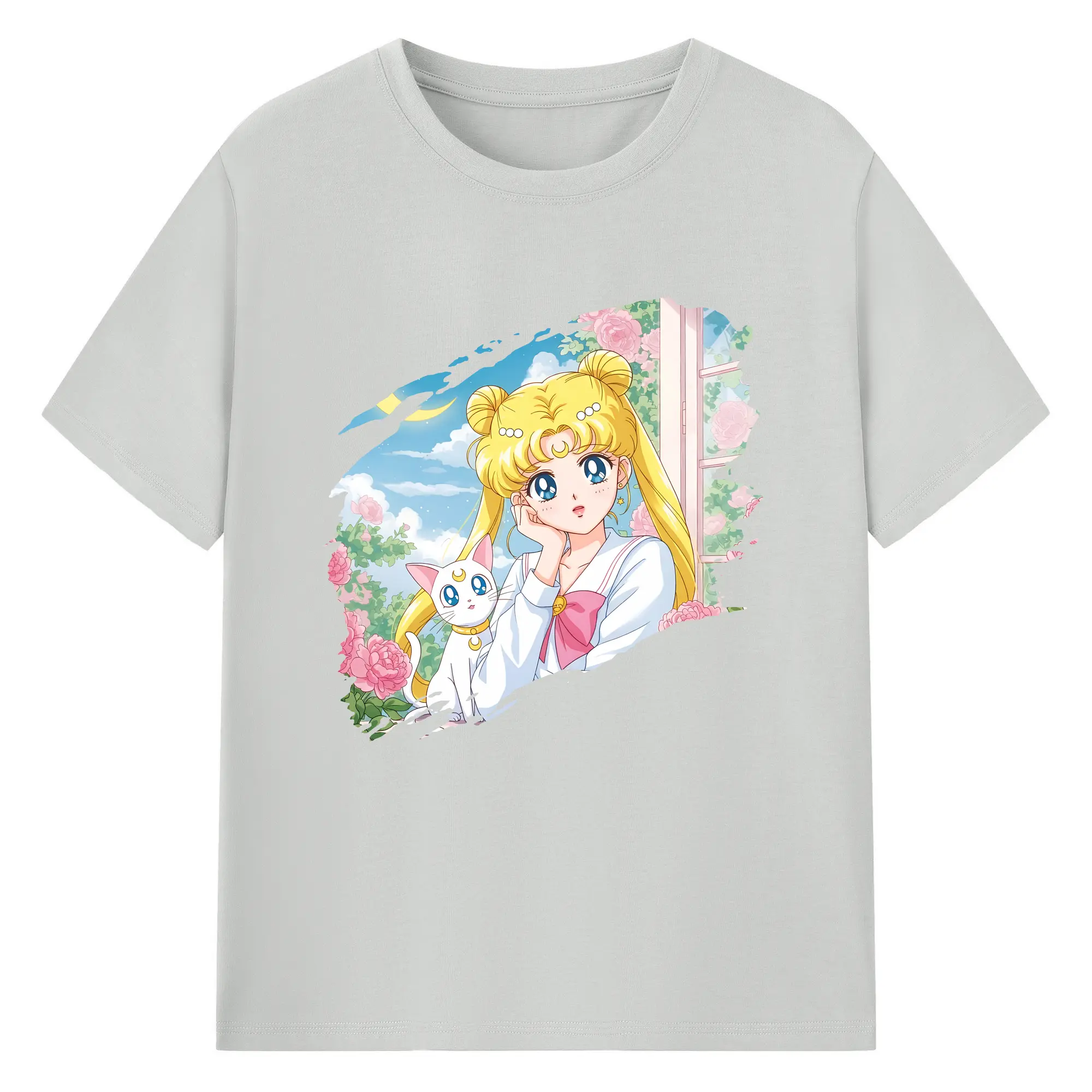 美少女戦士セーラームーン グッズ 月野 うさぎ - 綿100% 半袖Tシャツ ・ バックプリント ・ 快適 通気性 ・ 日常使い 散歩 スポーツ用