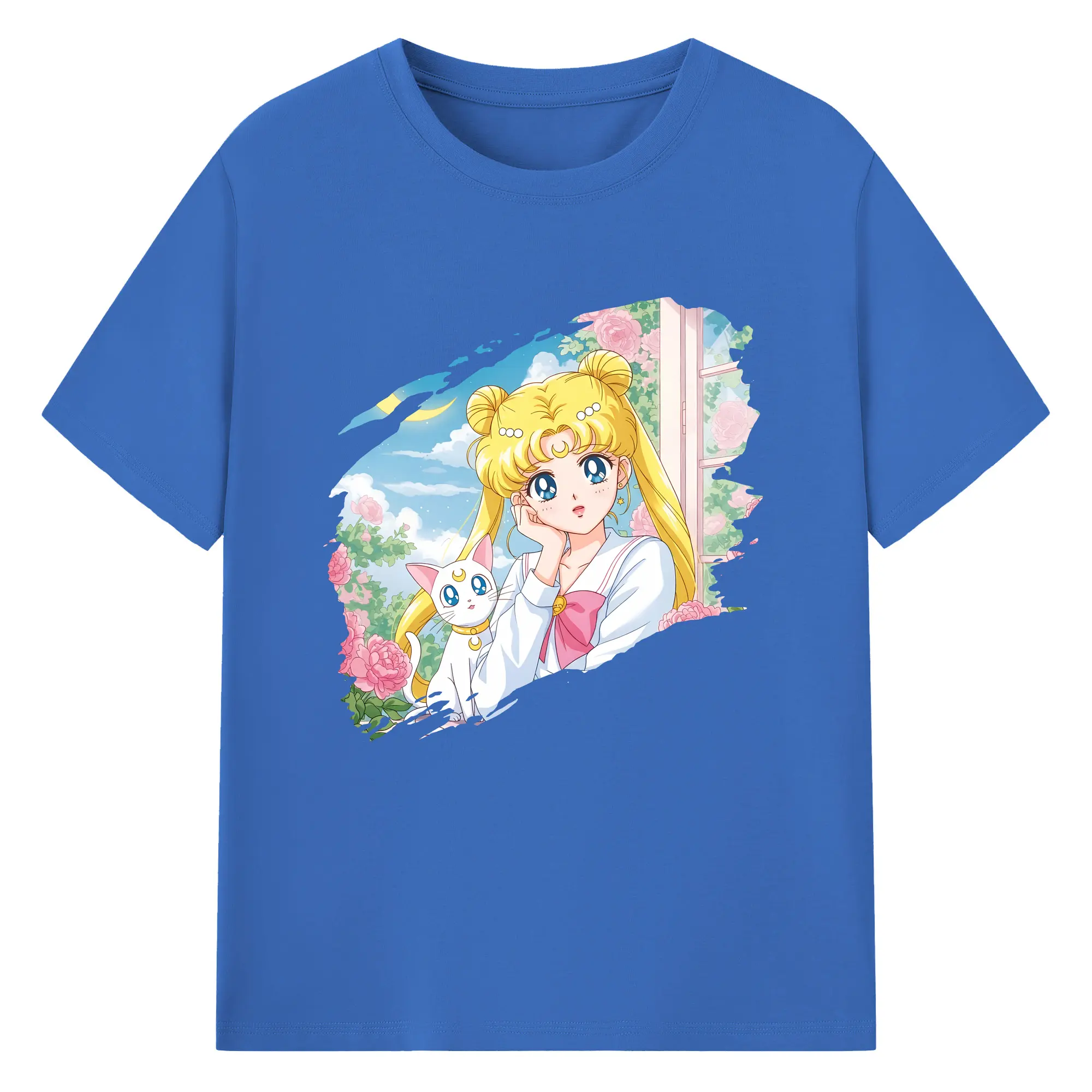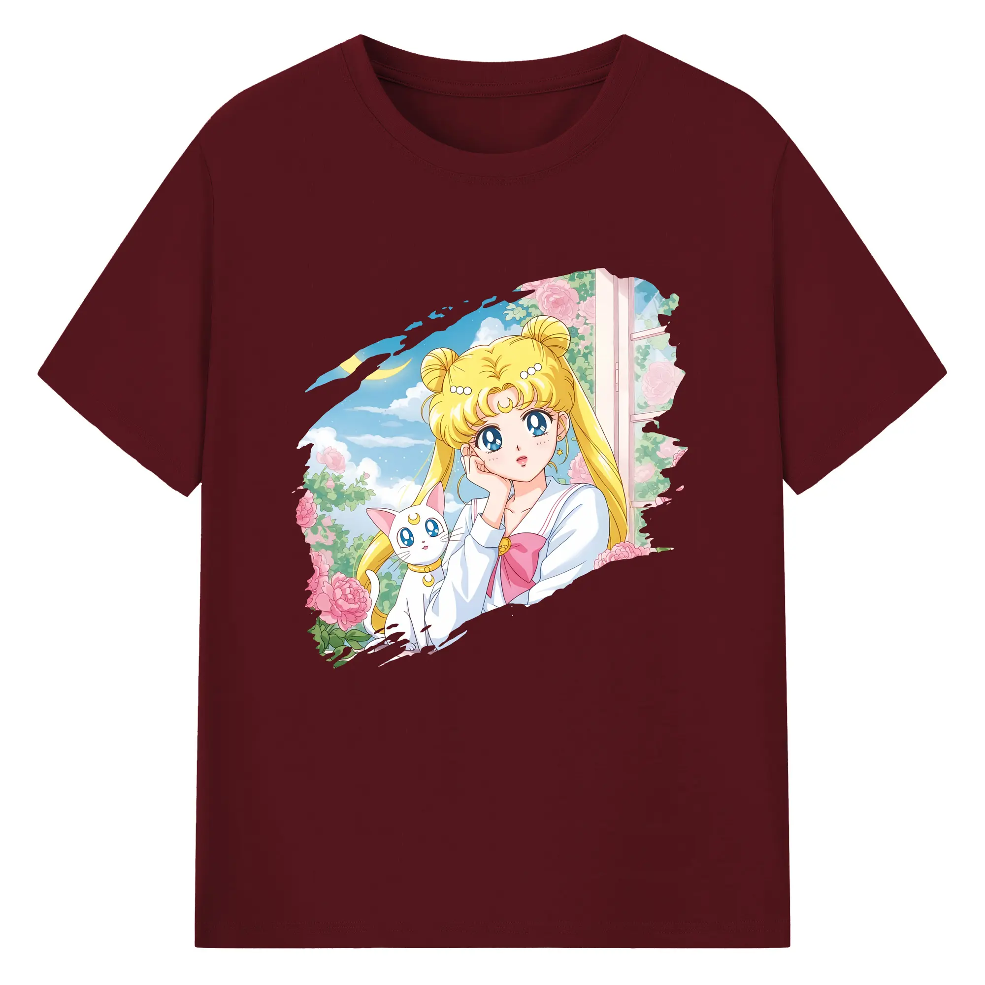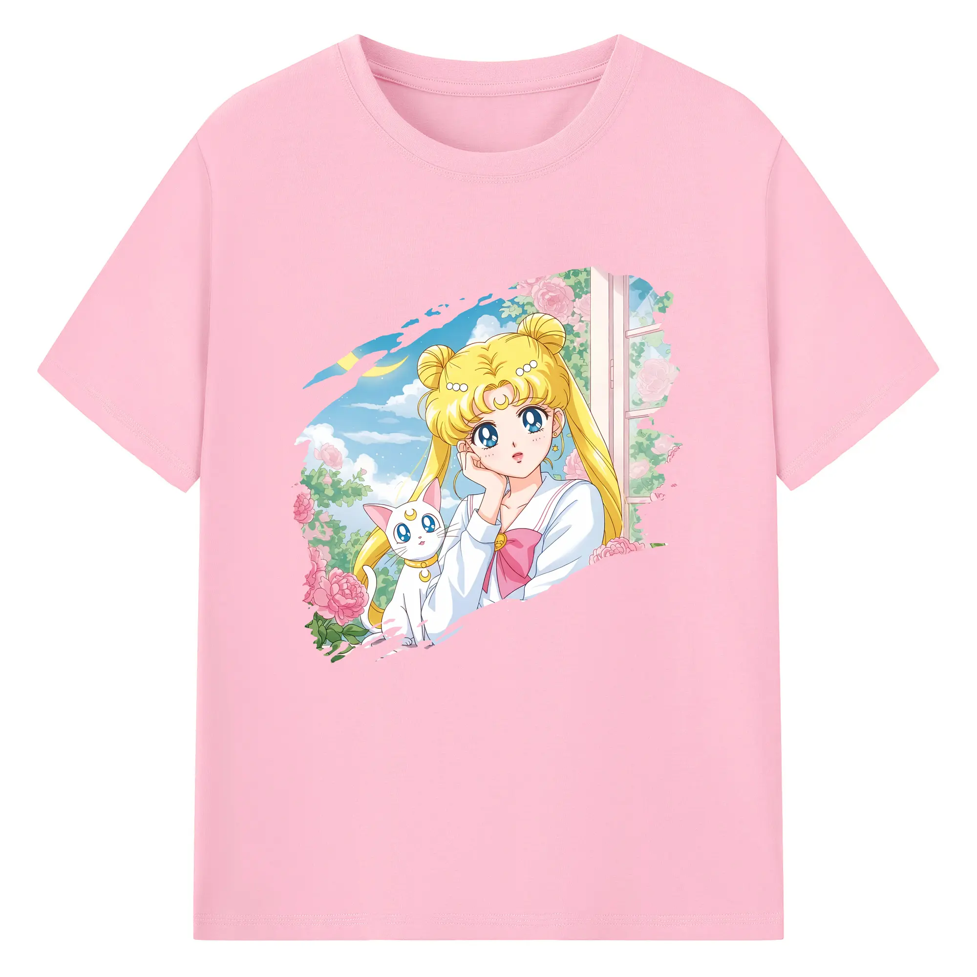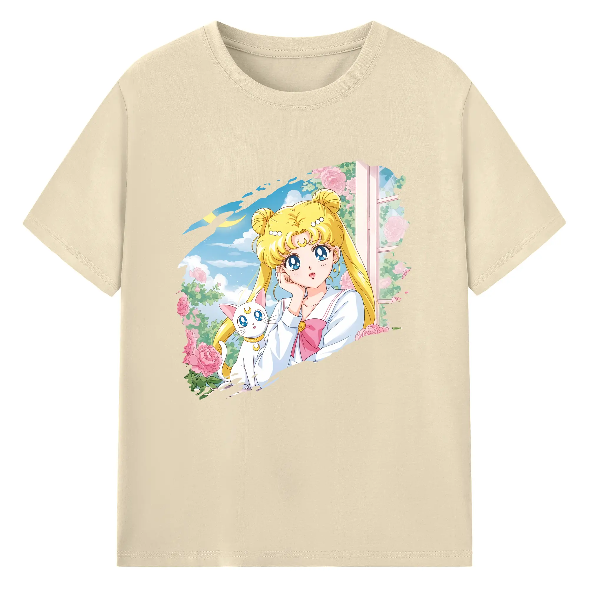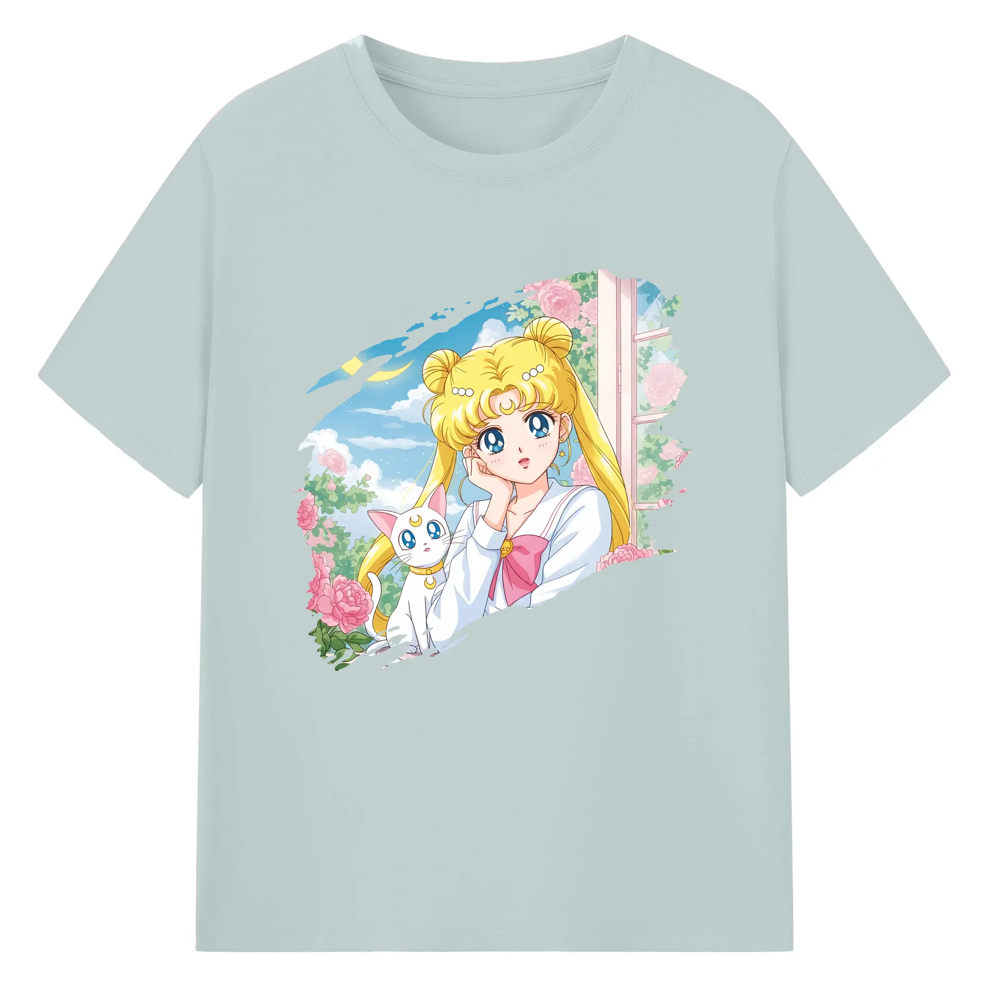 美少女戦士セーラームーン グッズ 月野 うさぎ - 綿100% 半袖Tシャツ ・ バックプリント ・ 快適 通気性 ・ 日常使い 散歩 スポーツ用