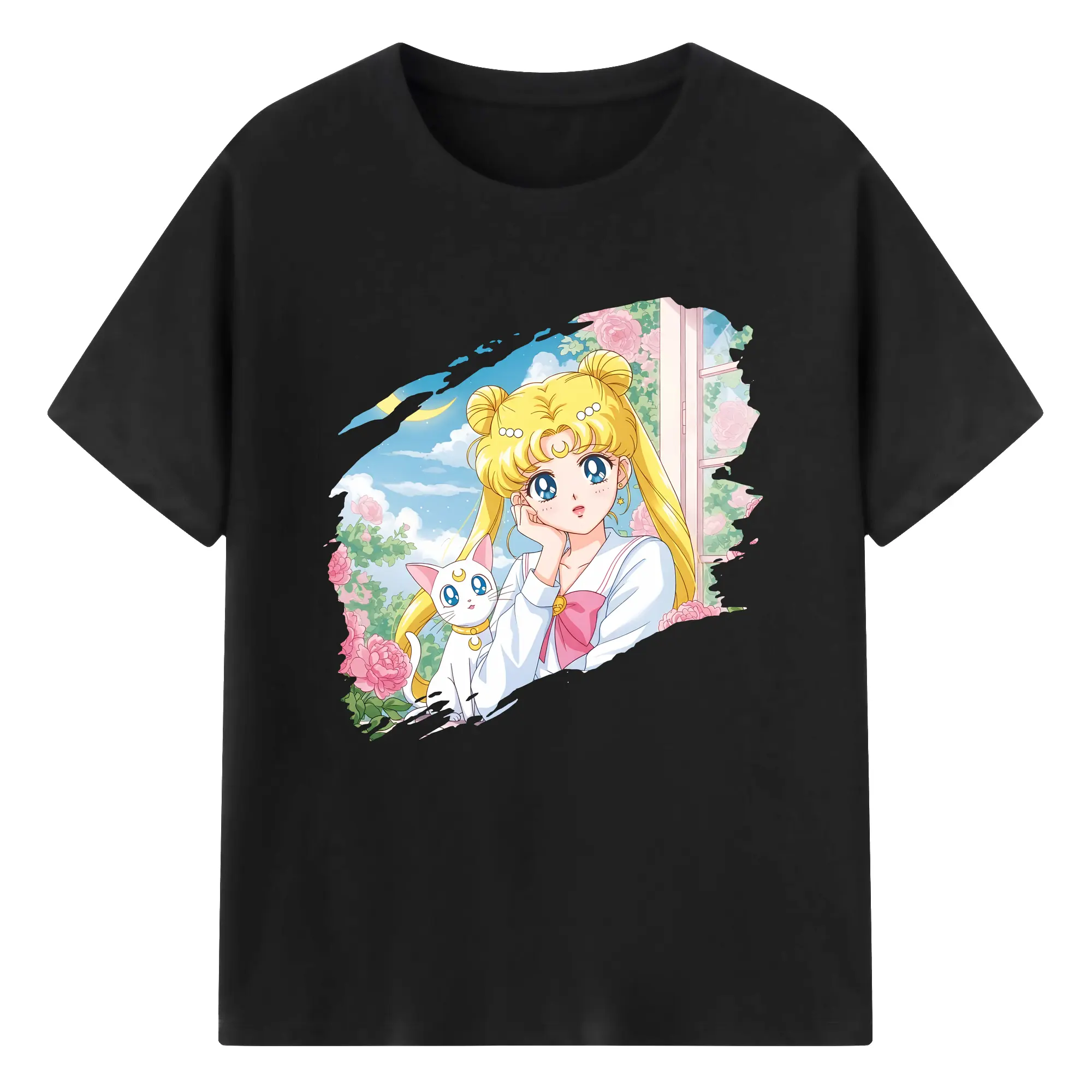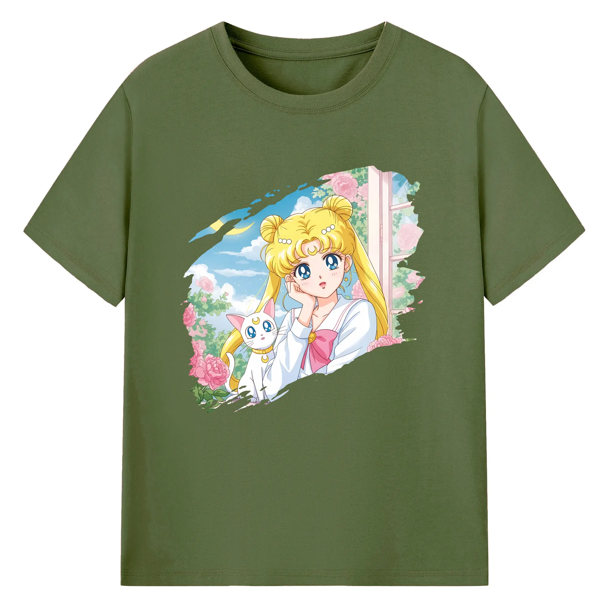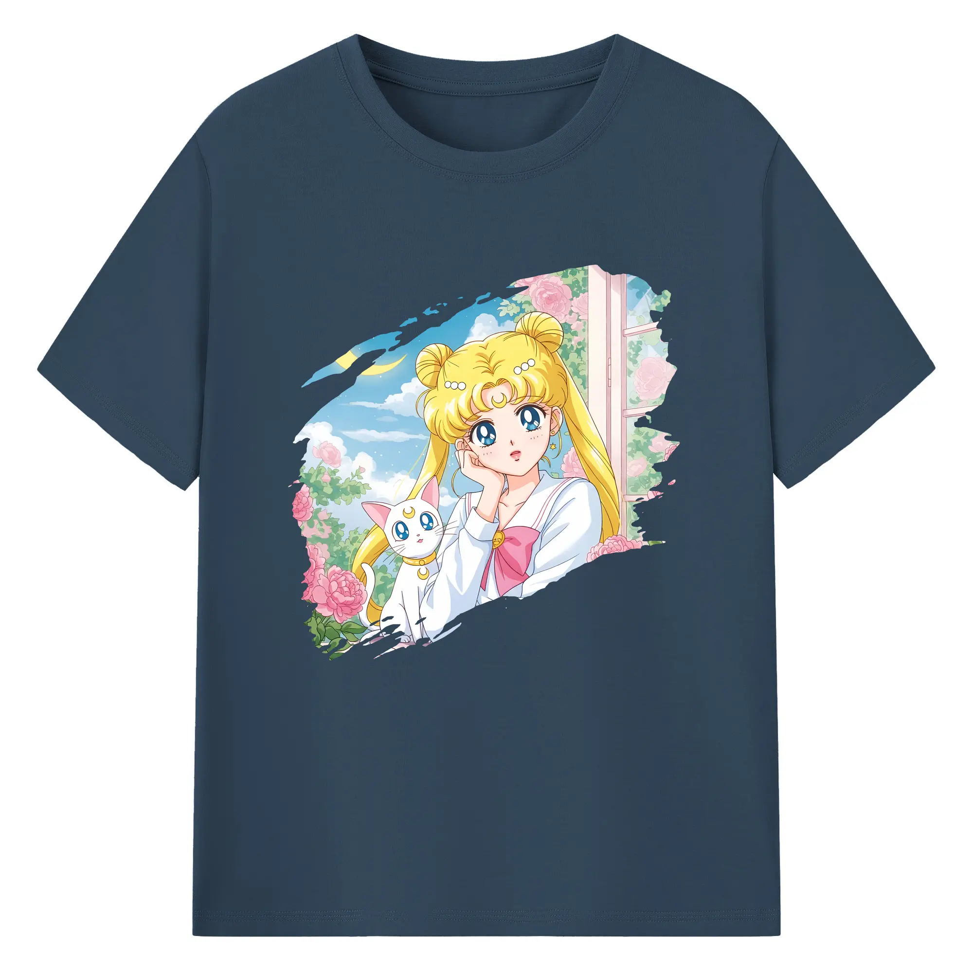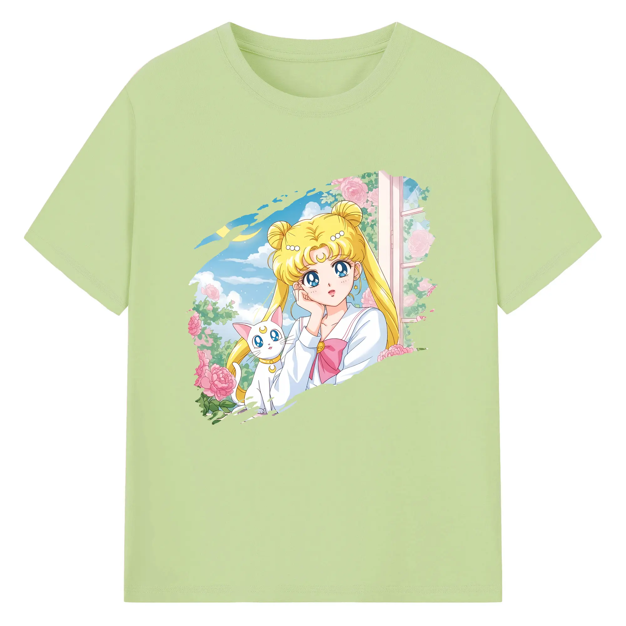 美少女戦士セーラームーン グッズ 月野 うさぎ - 綿100% 半袖Tシャツ ・ バックプリント ・ 快適 通気性 ・ 日常使い 散歩 スポーツ用