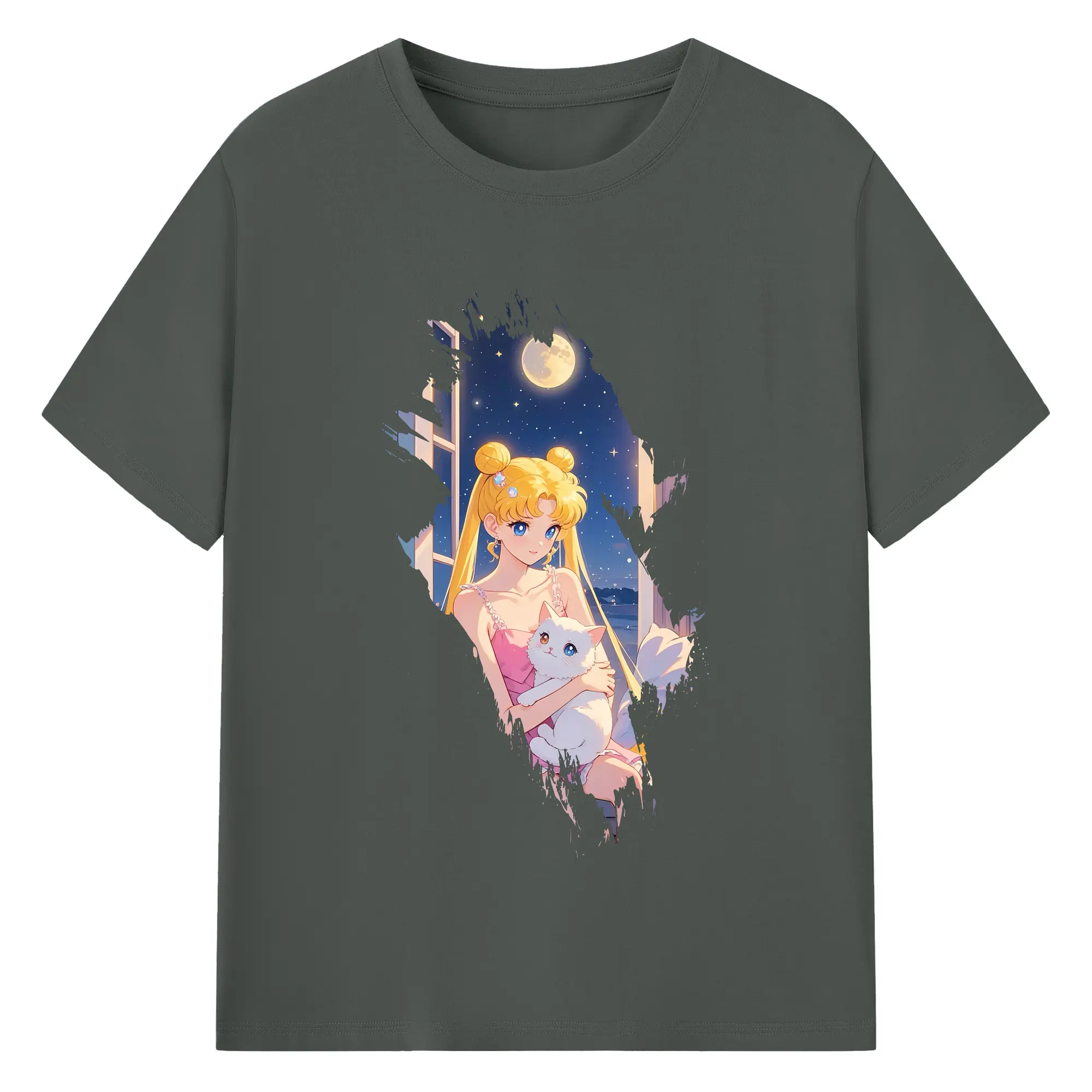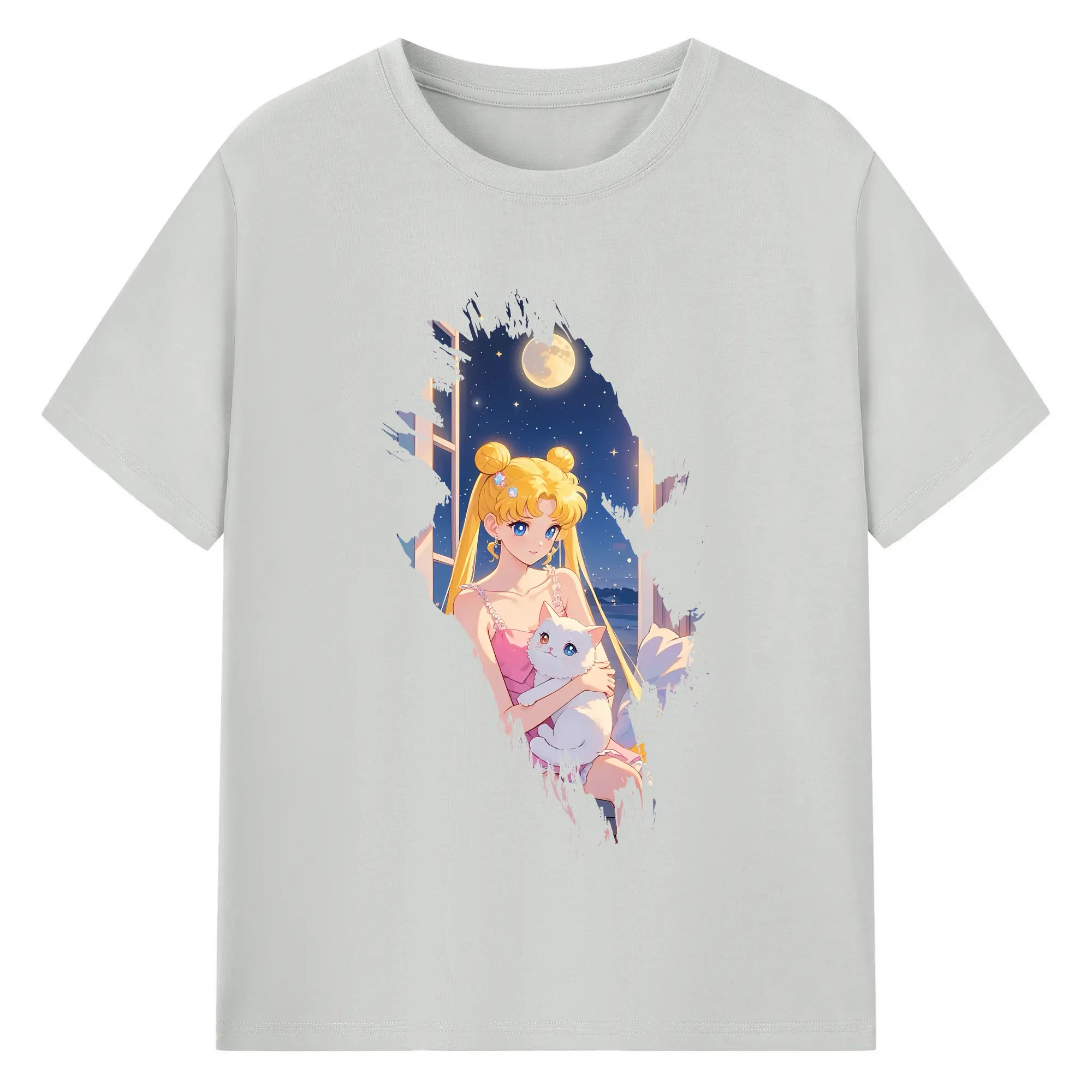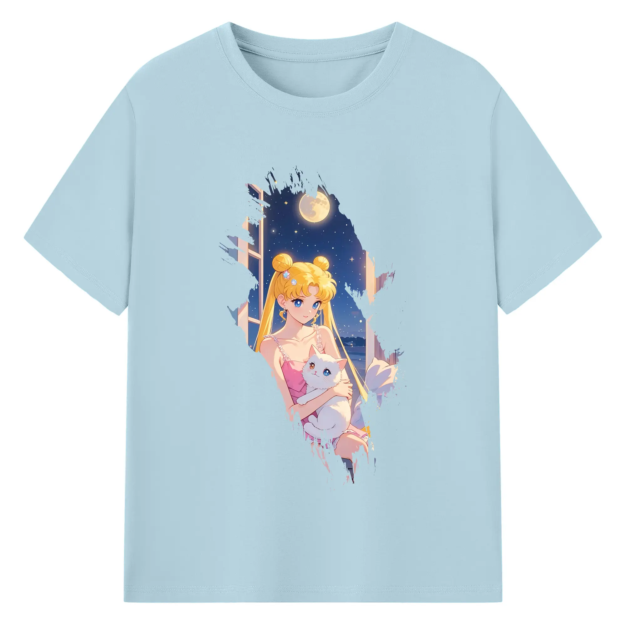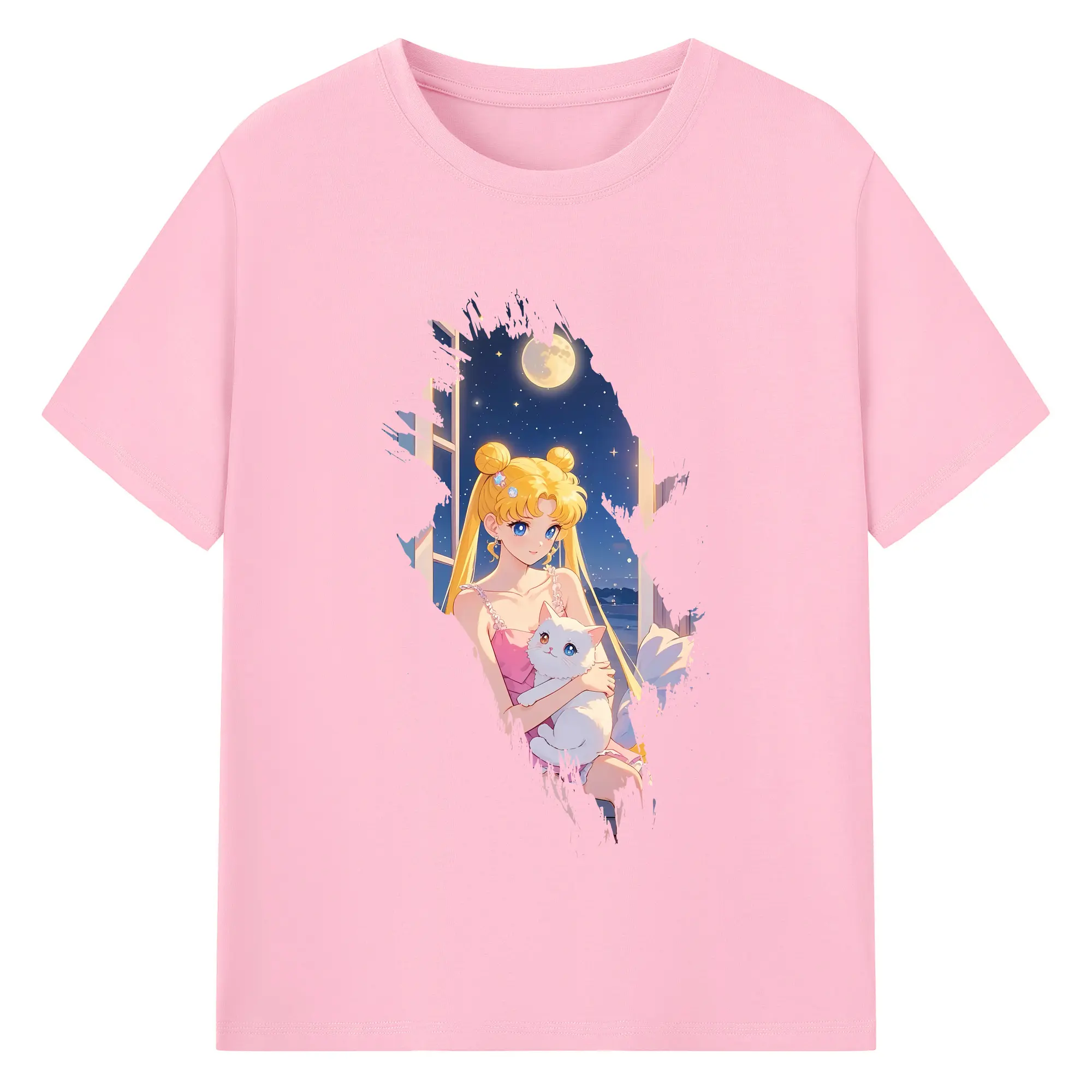 美少女戦士セーラームーン グッズ 月野 うさぎ - 綿100% 半袖Tシャツ ・ バックプリント ・ 快適 通気性 ・ 日常使い 散歩 スポーツ用