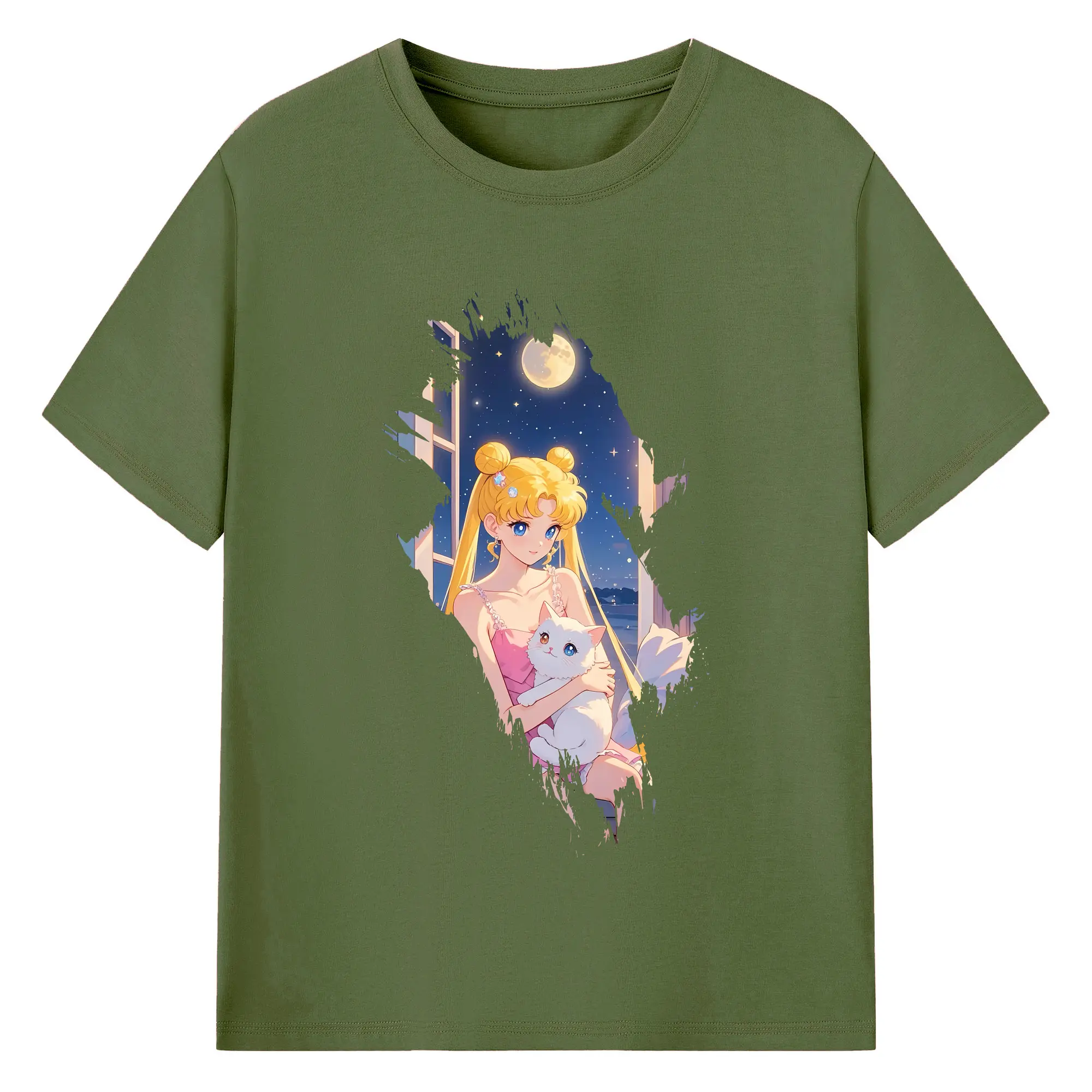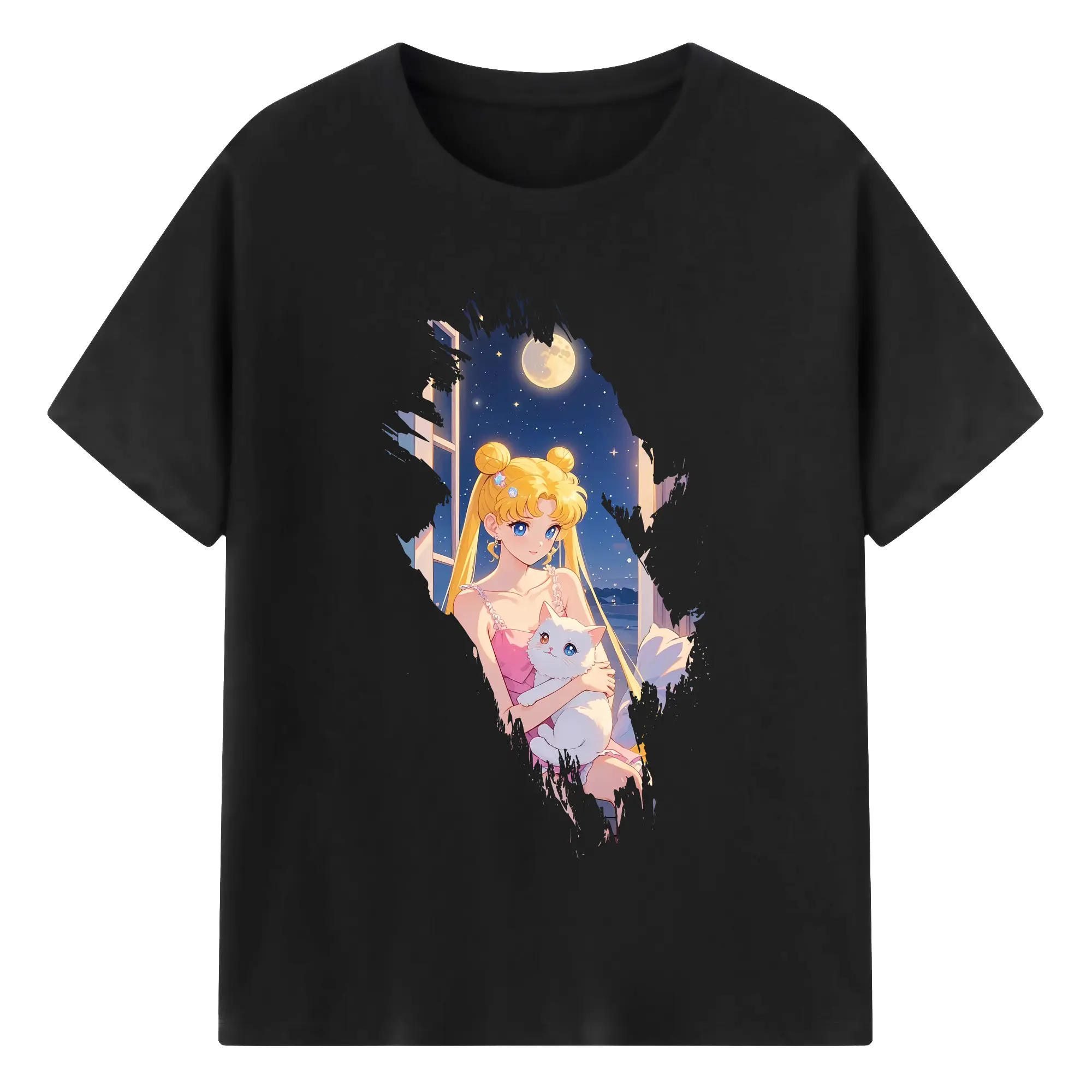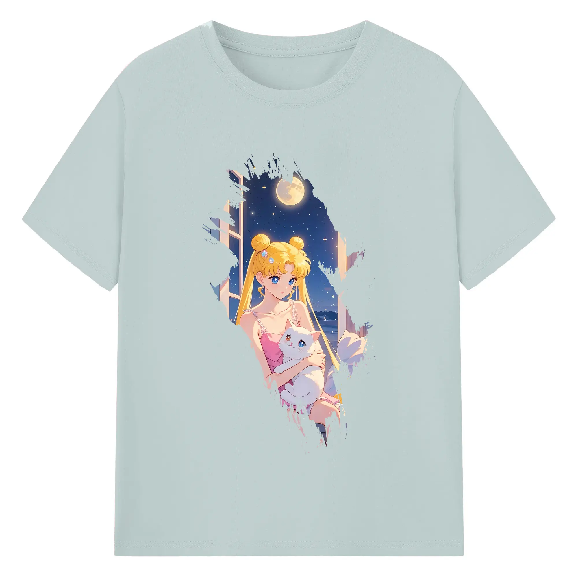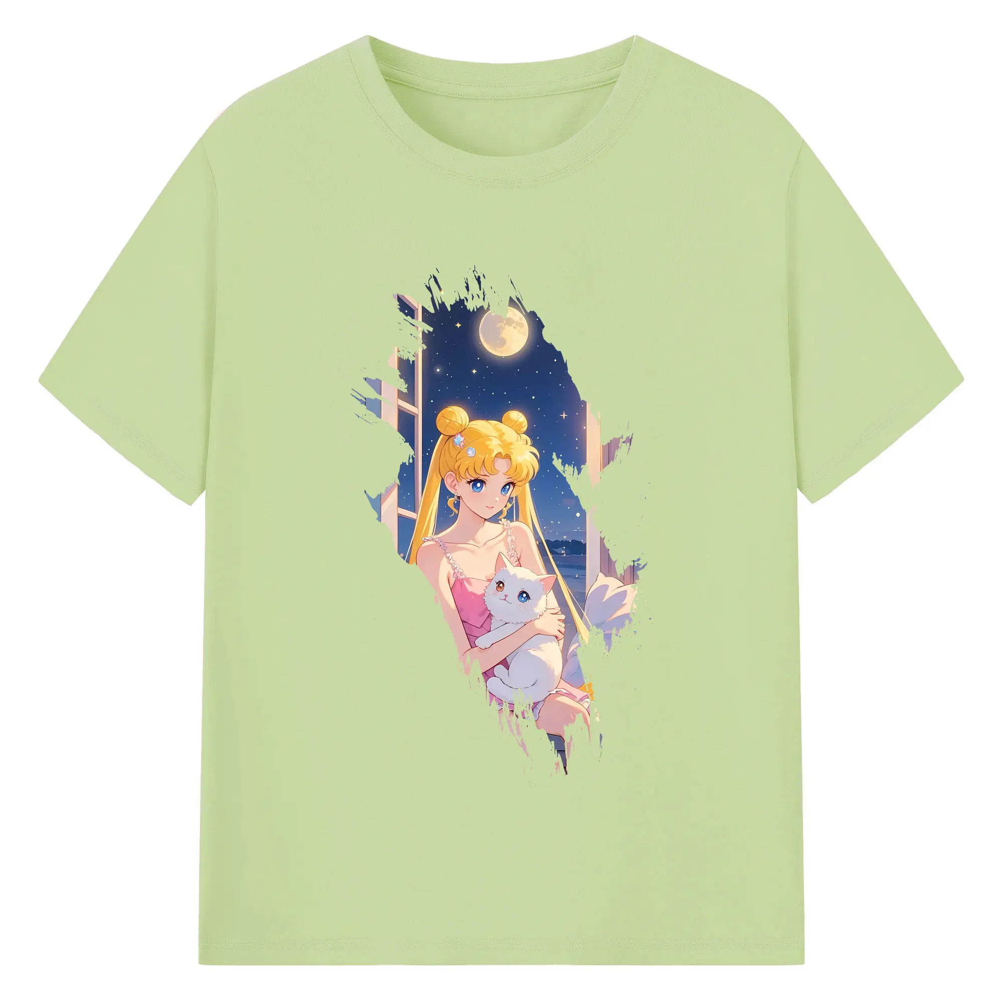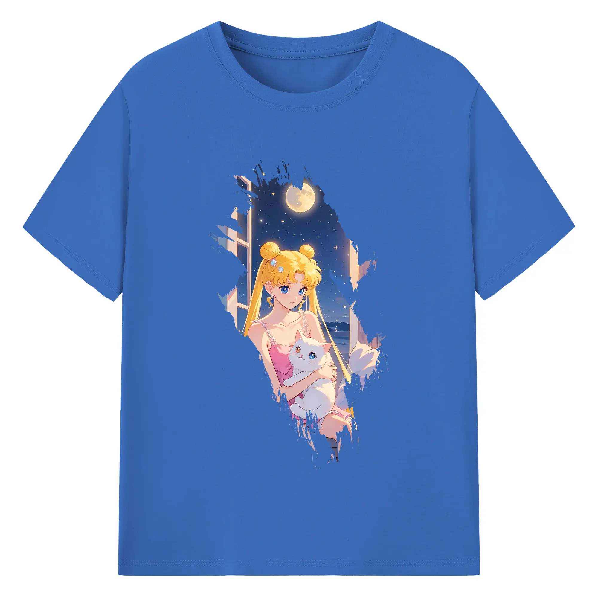 美少女戦士セーラームーン グッズ 月野 うさぎ - 綿100% 半袖Tシャツ ・ バックプリント ・ 快適 通気性 ・ 日常使い 散歩 スポーツ用
