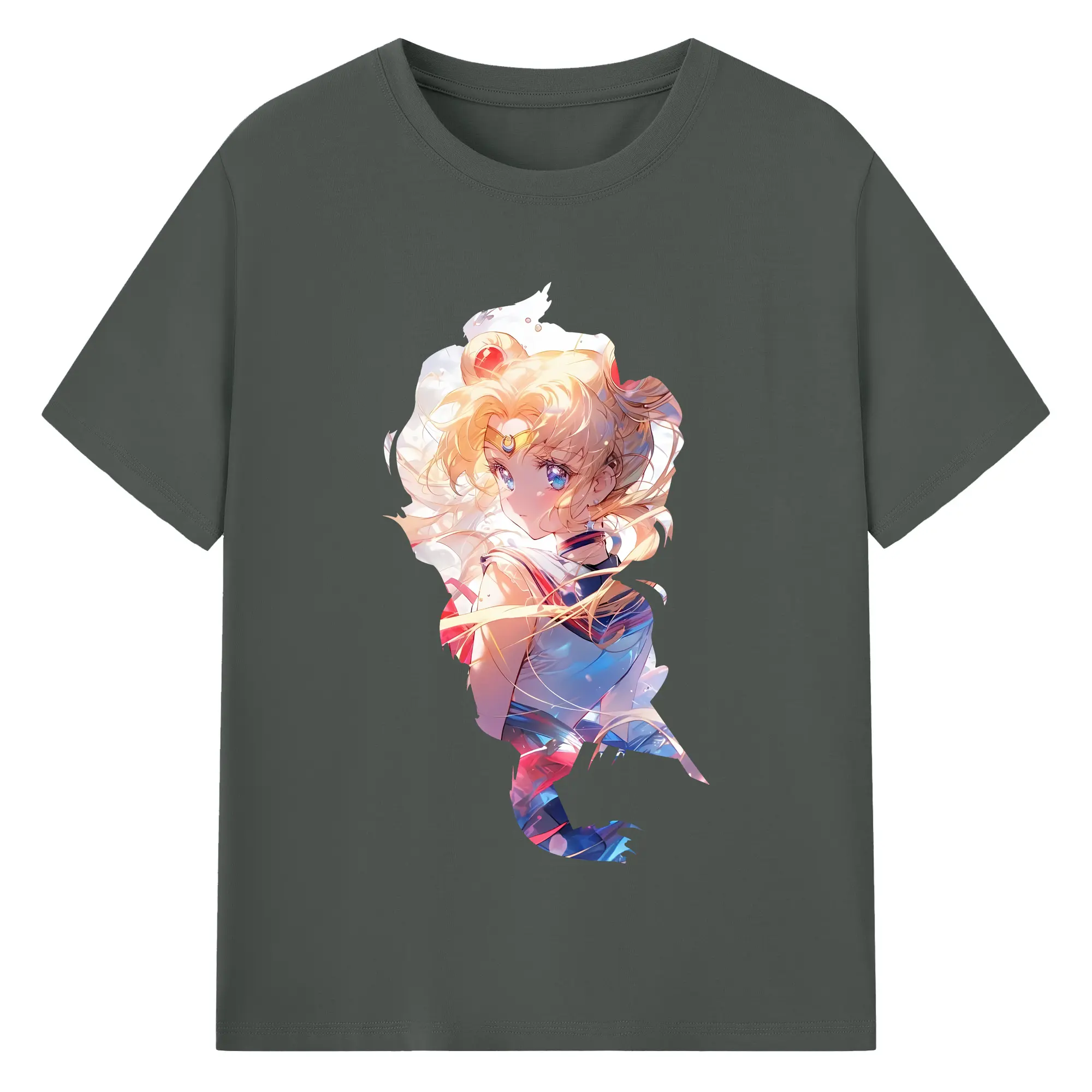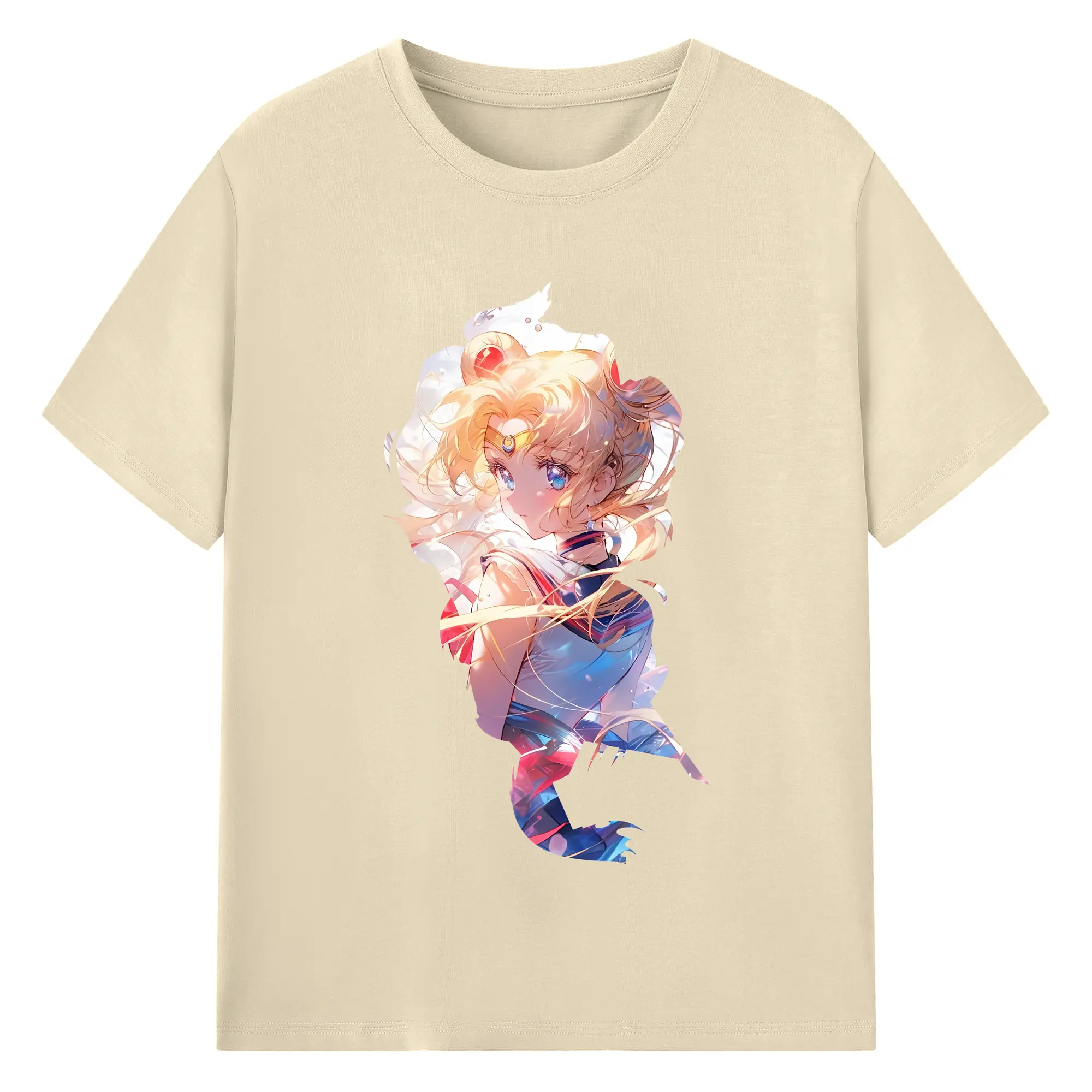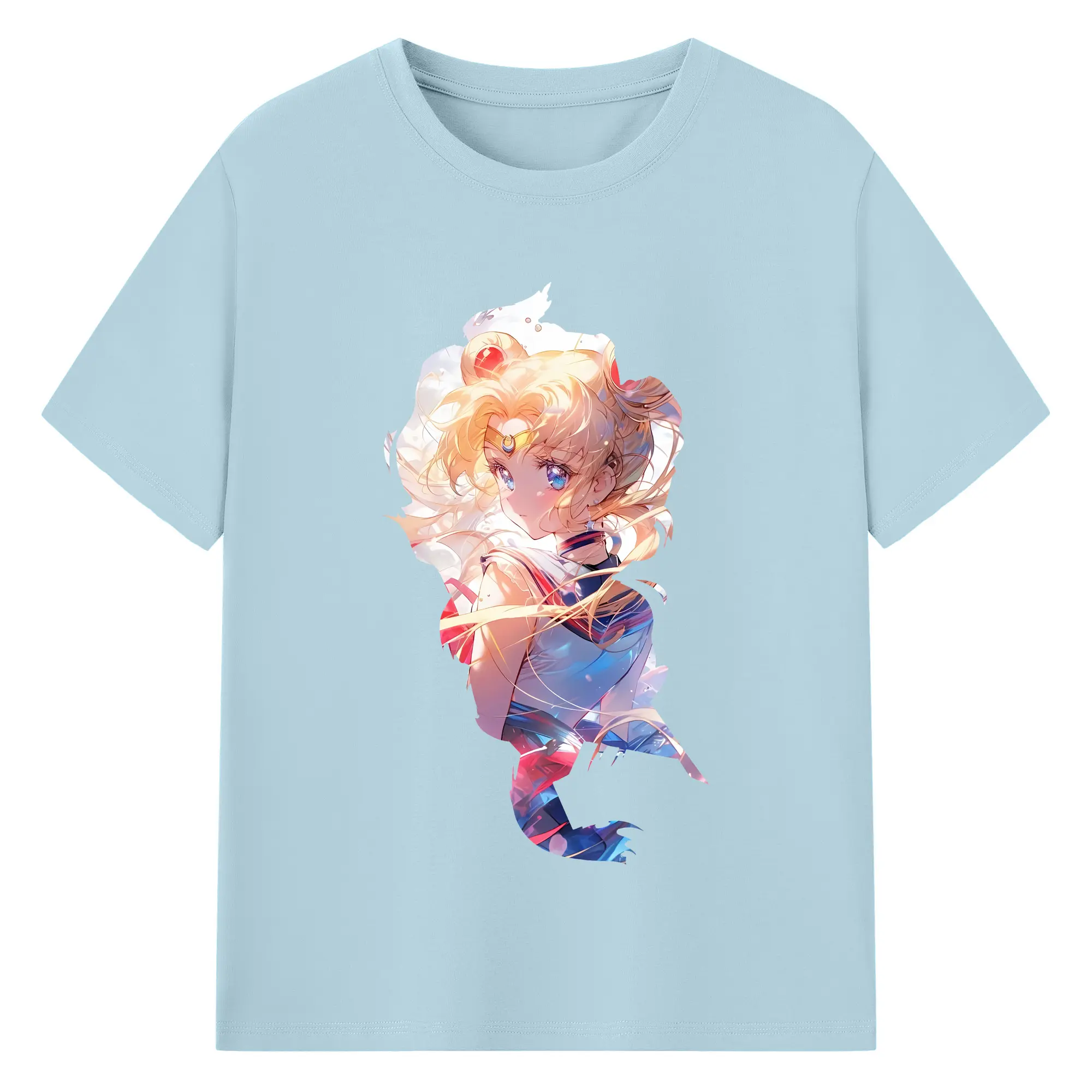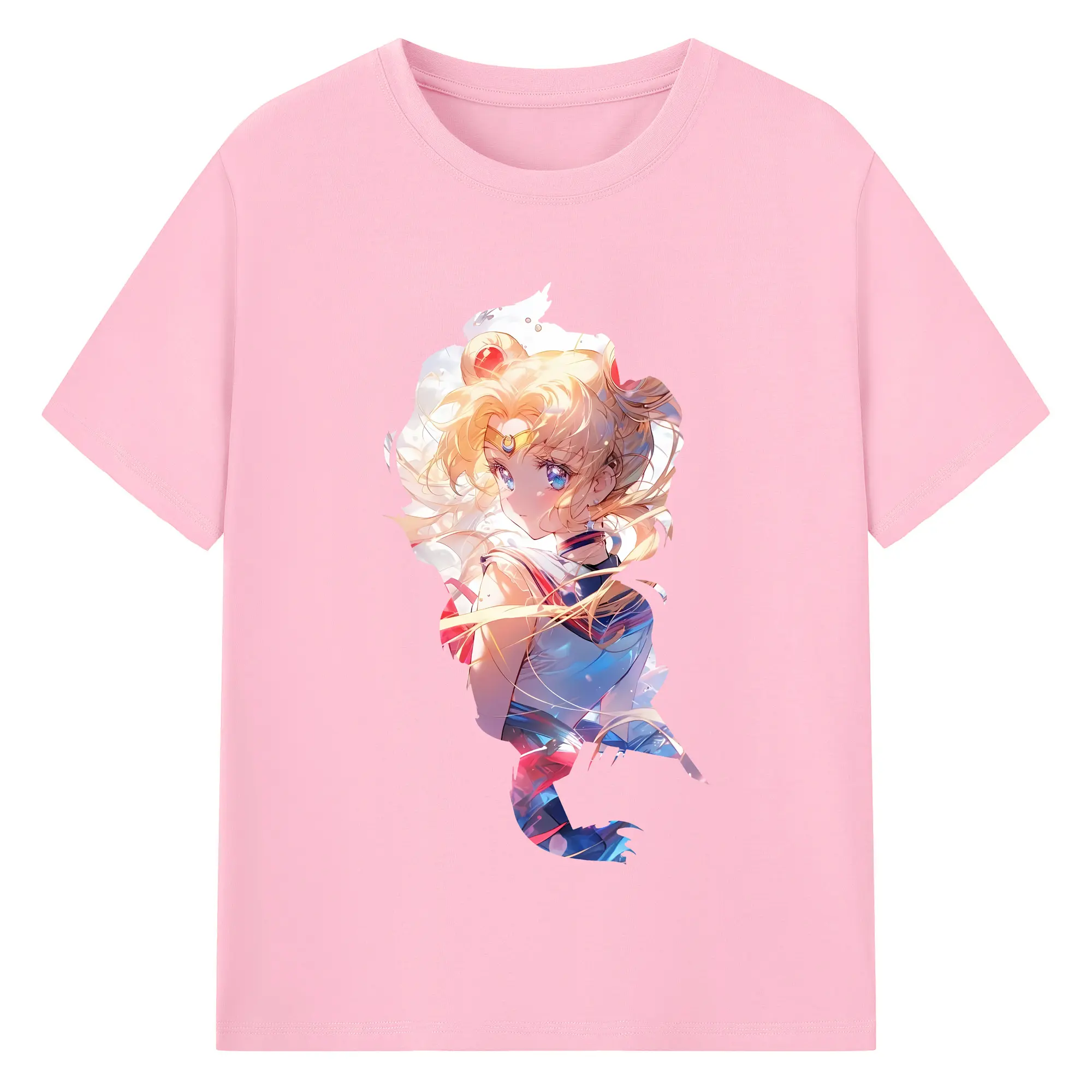 美少女戦士セーラームーン グッズ 月野 うさぎ - 綿100% 半袖Tシャツ ・ バックプリント ・ 快適 通気性 ・ 日常使い 散歩 スポーツ用