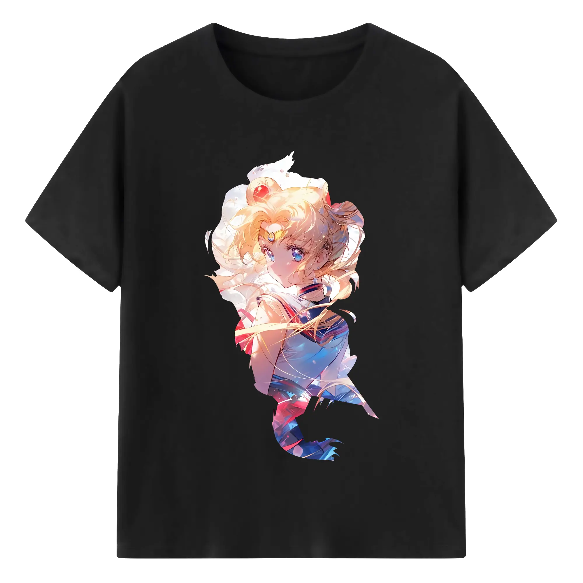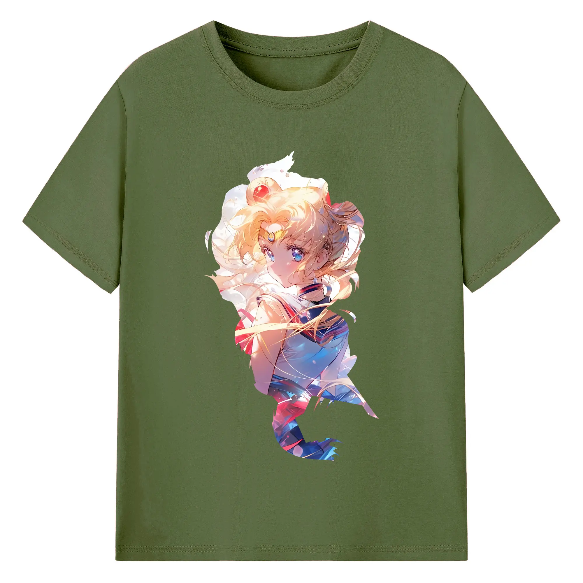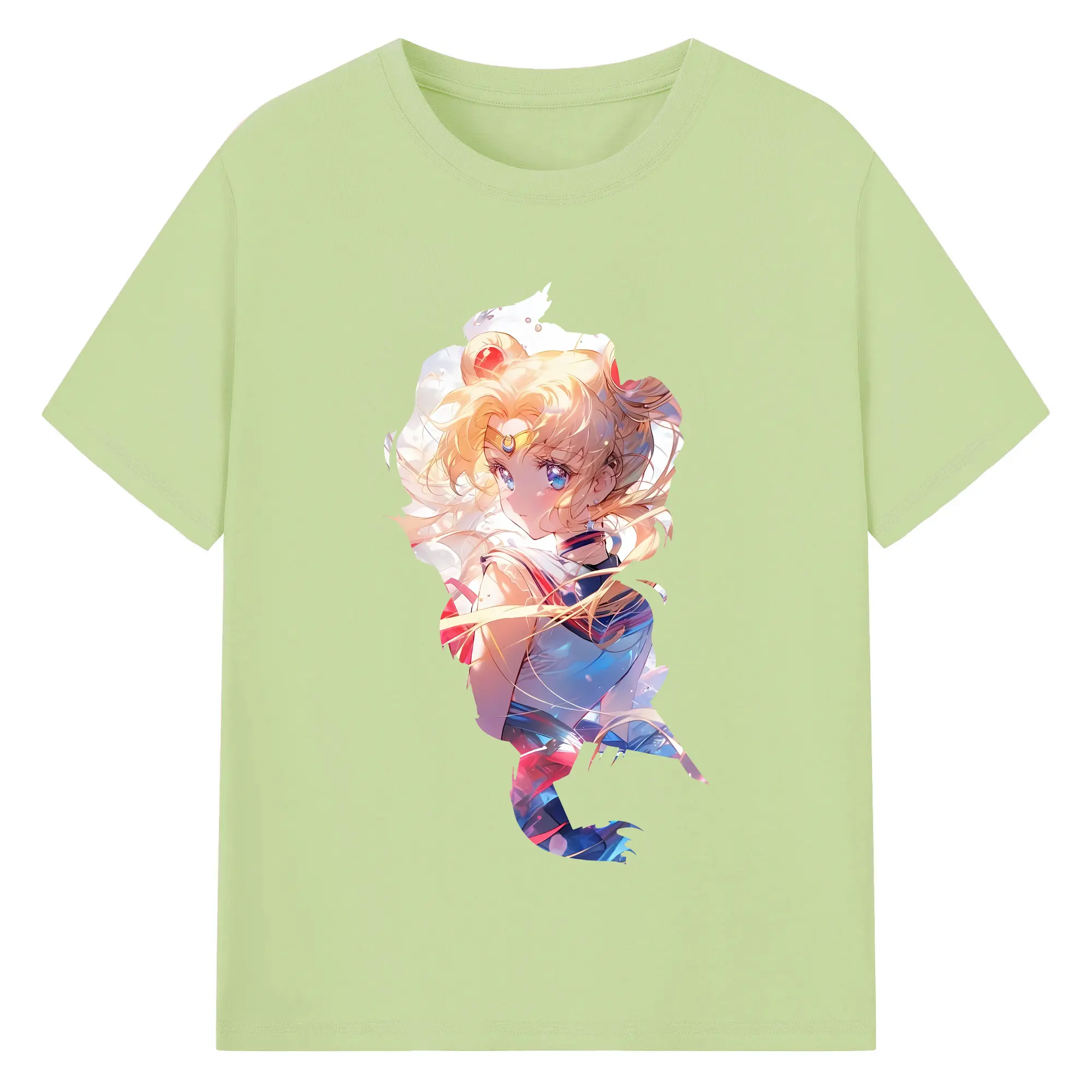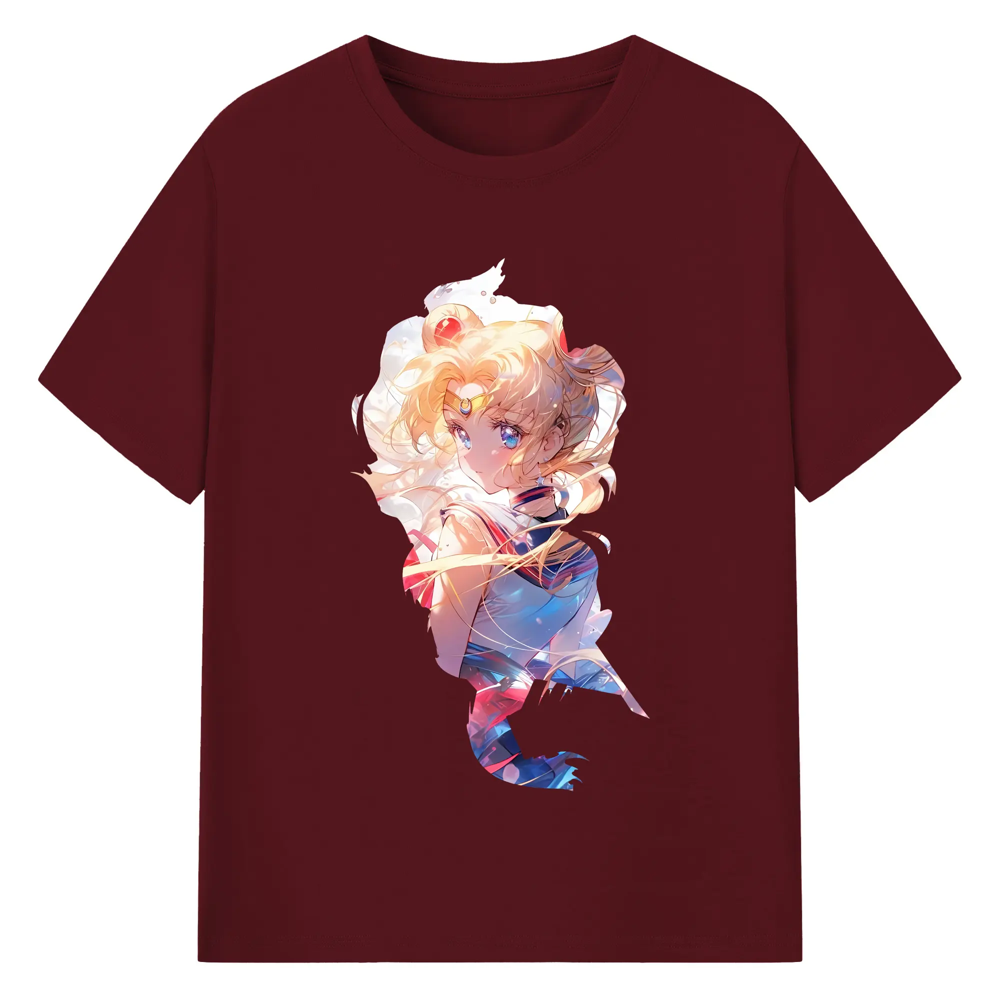 美少女戦士セーラームーン グッズ 月野 うさぎ - 綿100% 半袖Tシャツ ・ バックプリント ・ 快適 通気性 ・ 日常使い 散歩 スポーツ用
