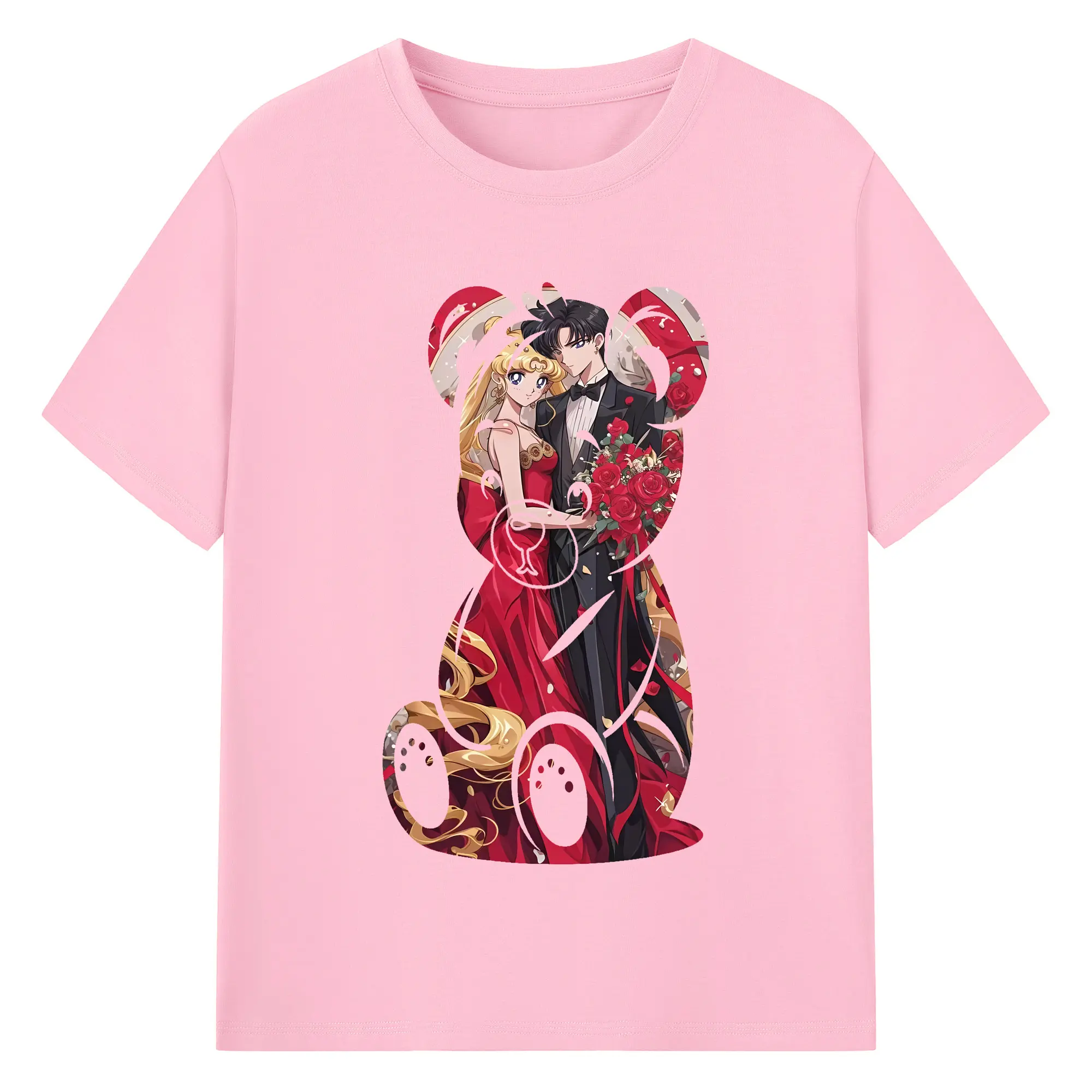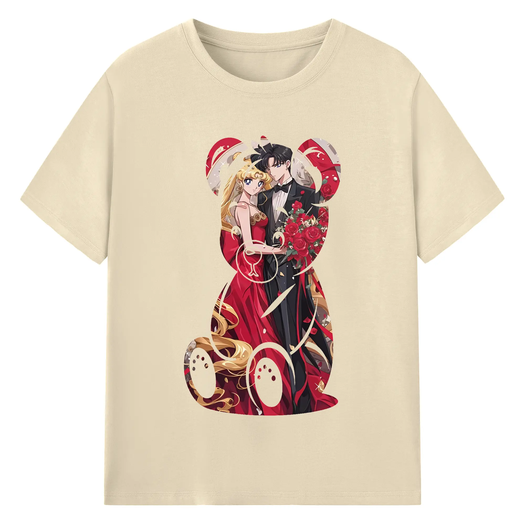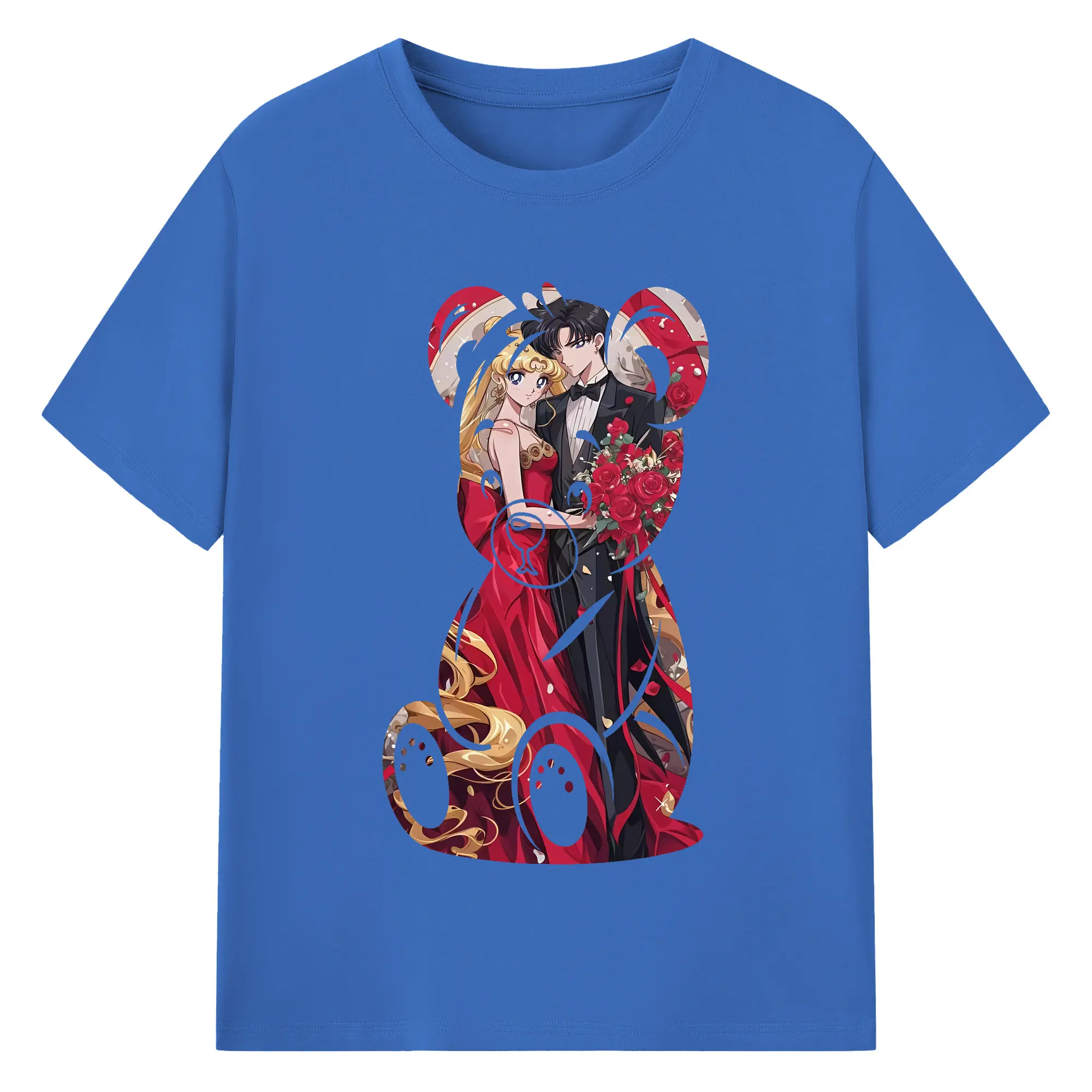 美少女戦士セーラームーン グッズ 月野 うさぎ - 綿100% 半袖Tシャツ ・ バックプリント ・ 快適 通気性 ・ 日常使い 散歩 スポーツ用