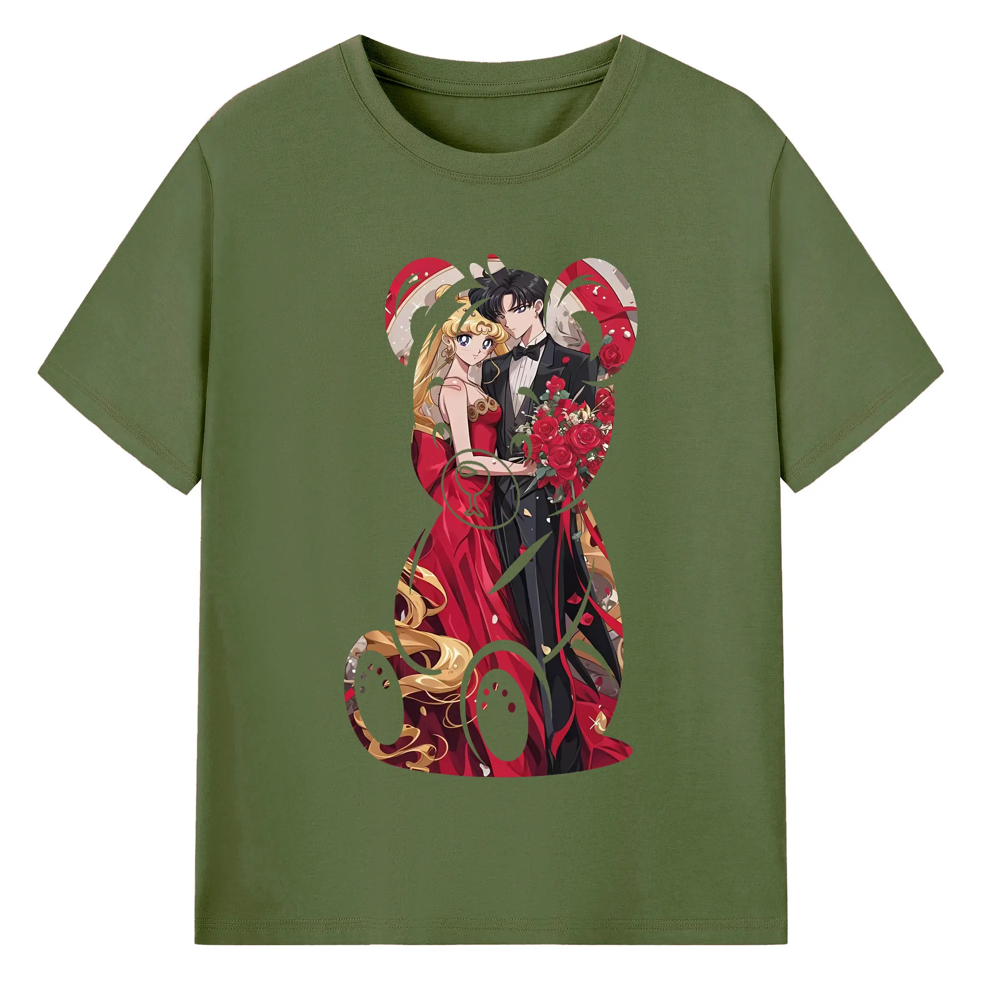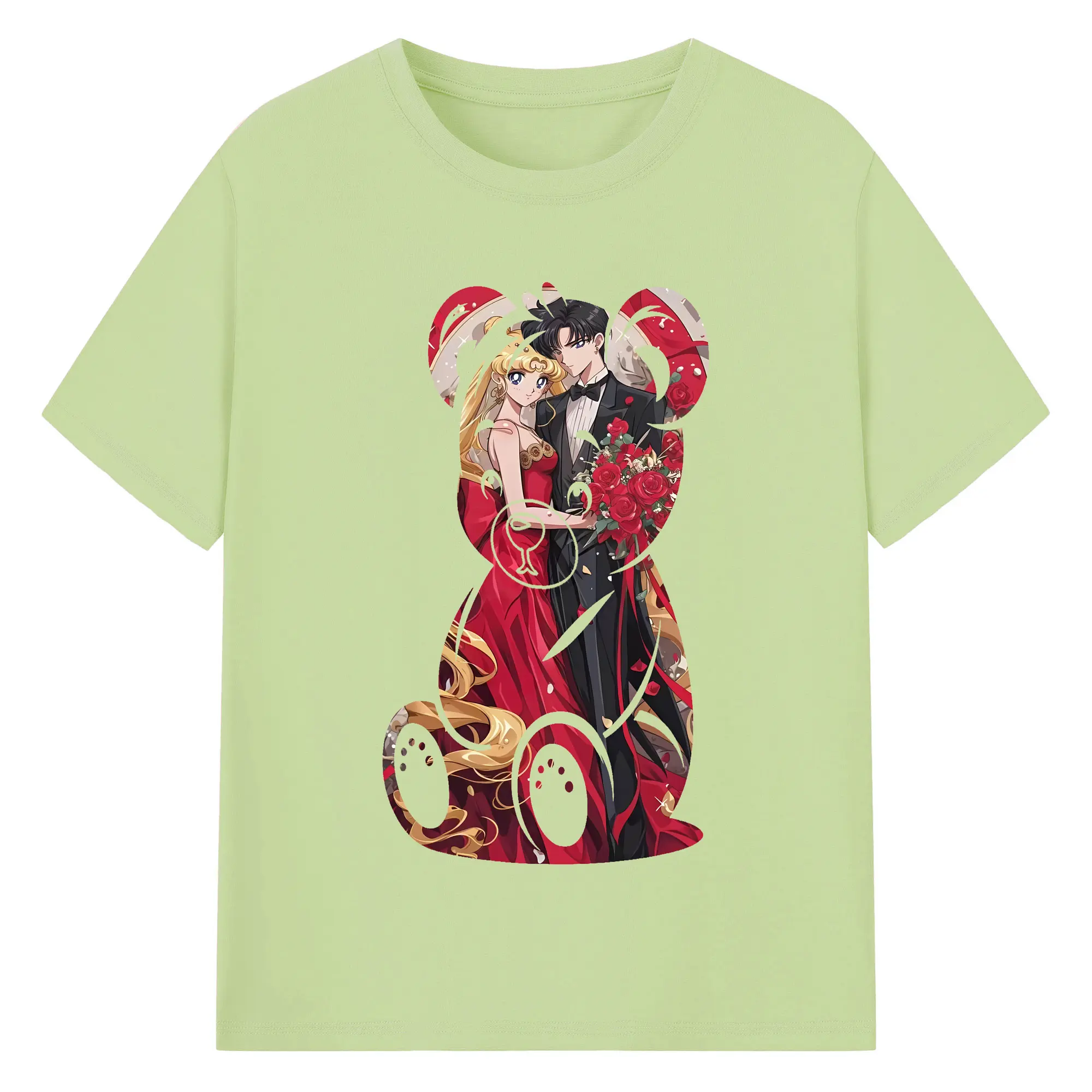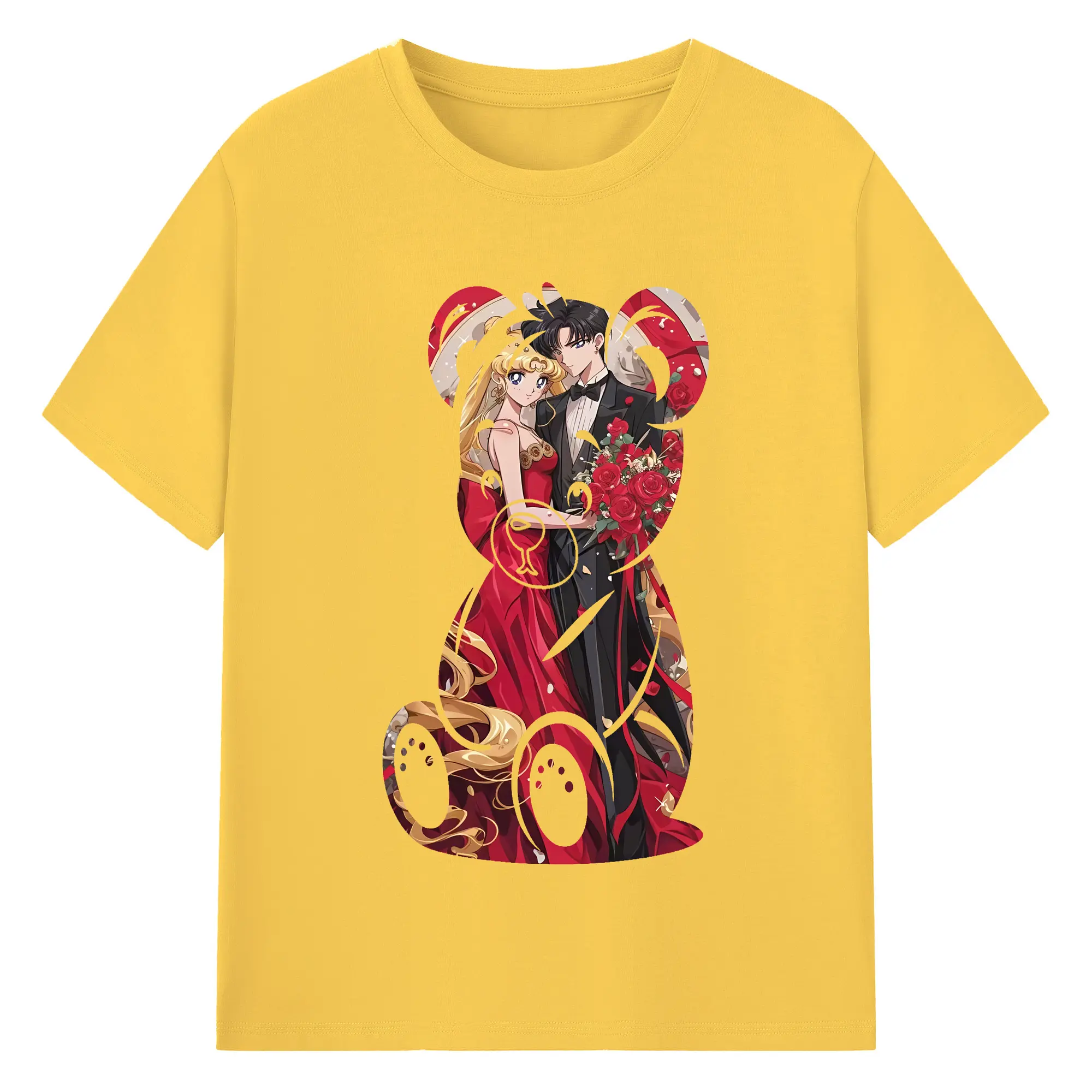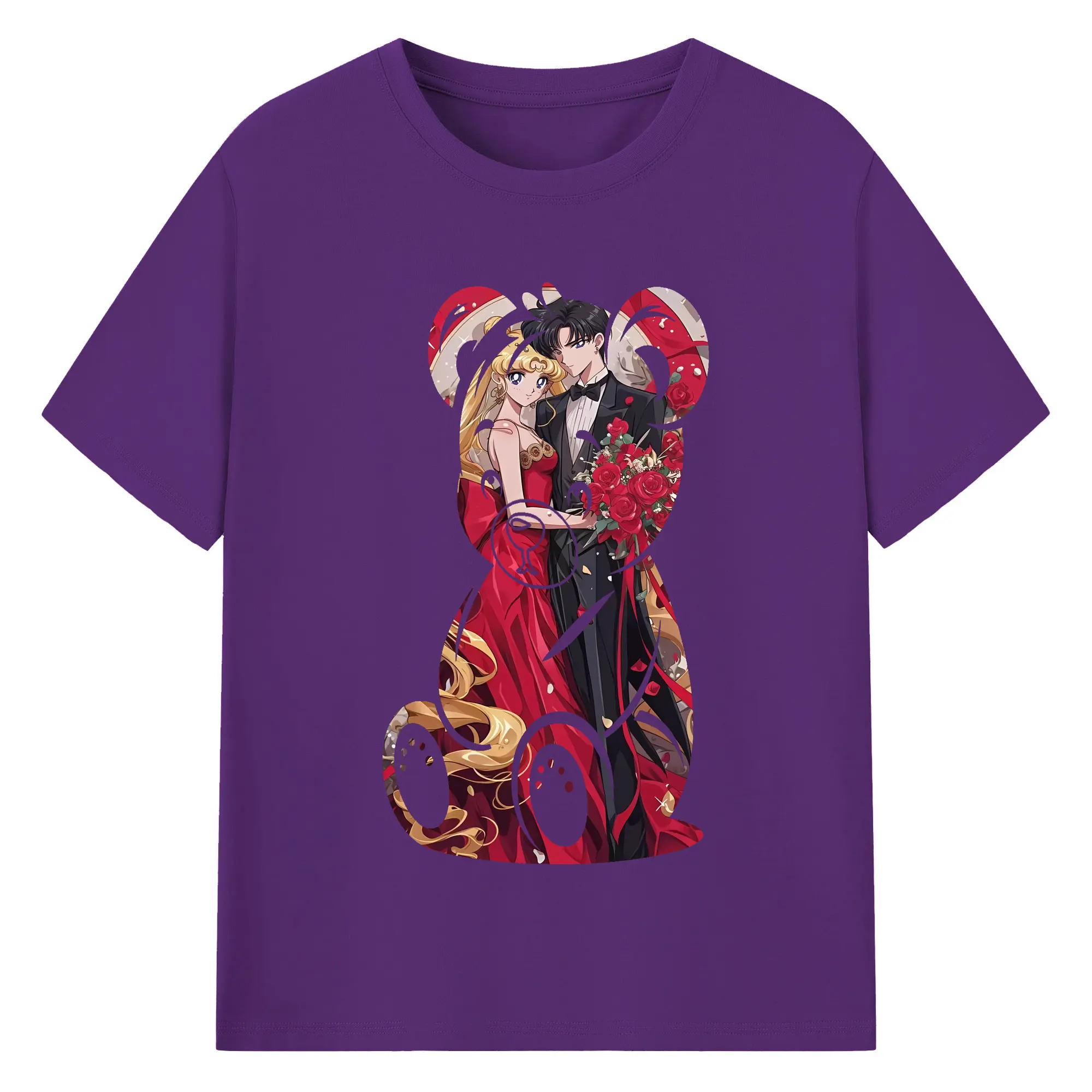 美少女戦士セーラームーン グッズ 月野 うさぎ - 綿100% 半袖Tシャツ ・ バックプリント ・ 快適 通気性 ・ 日常使い 散歩 スポーツ用