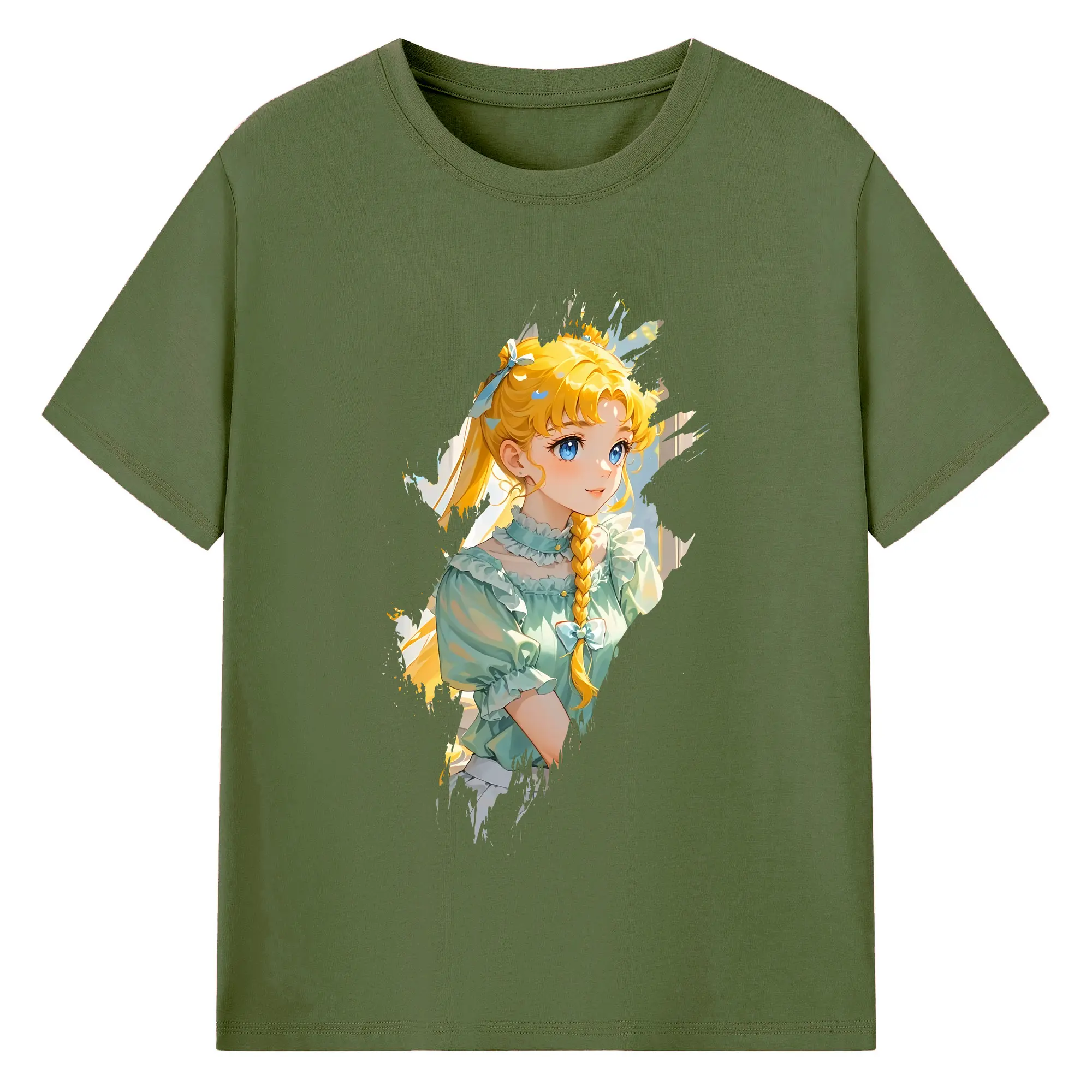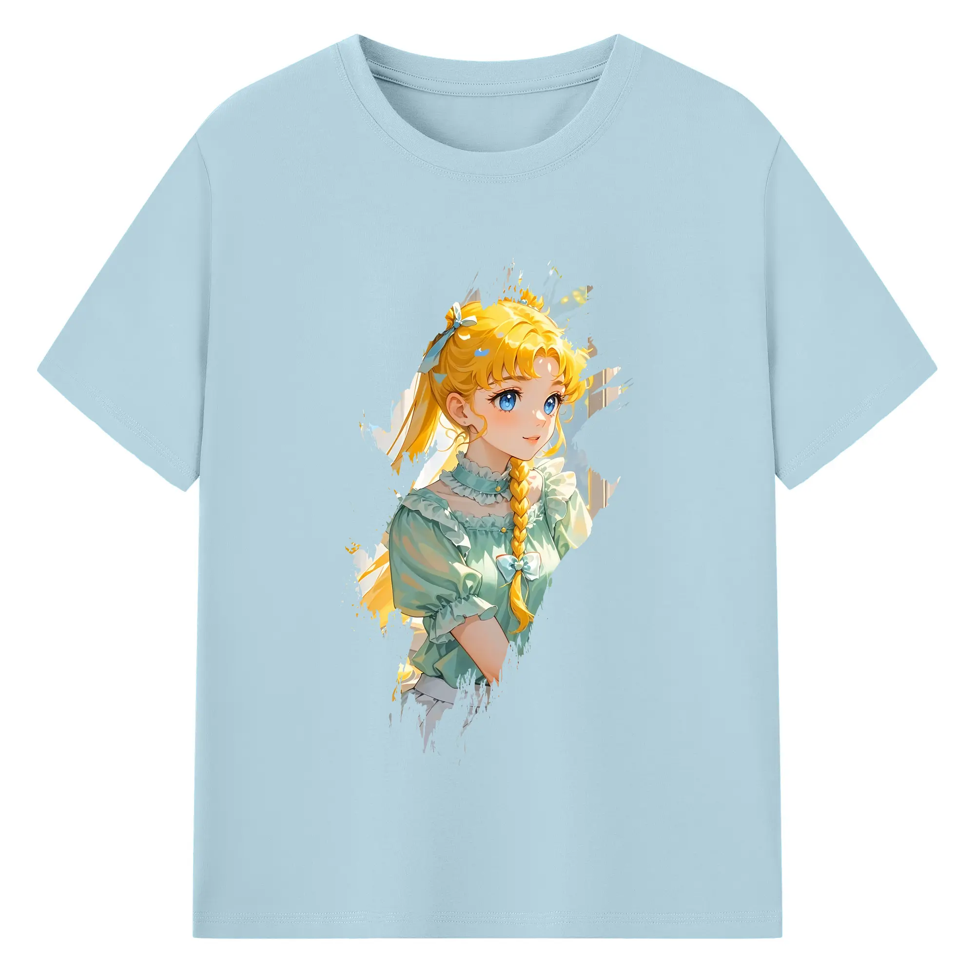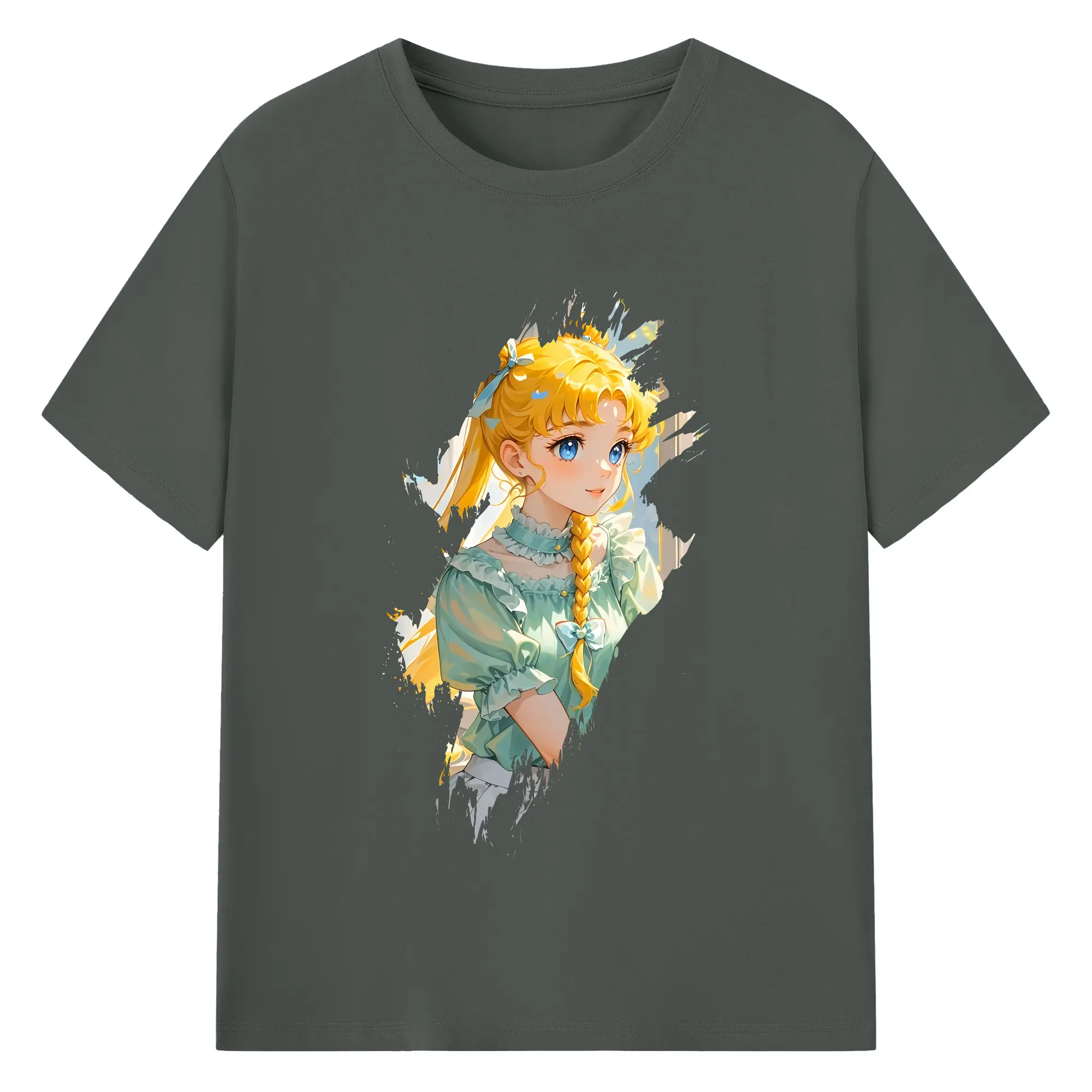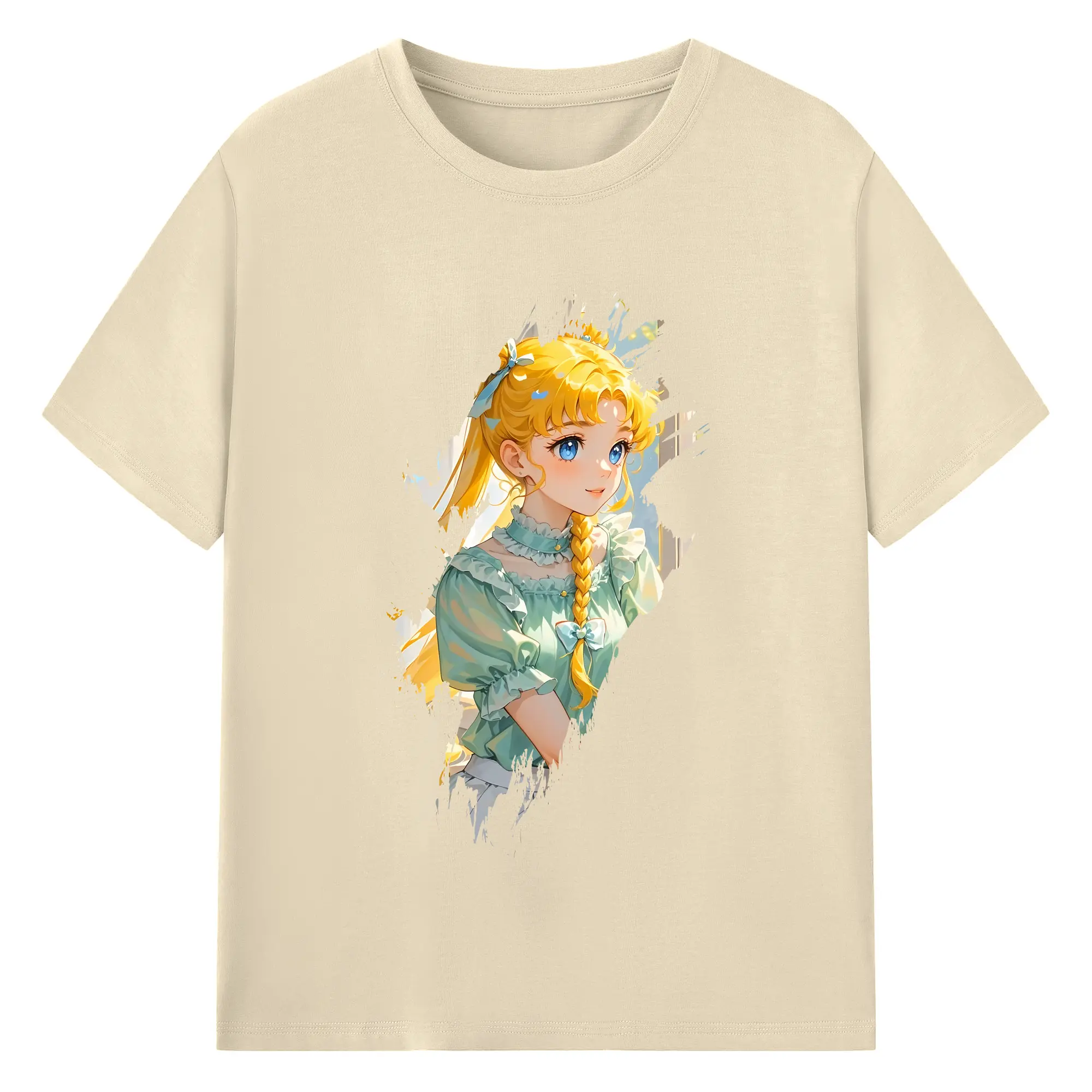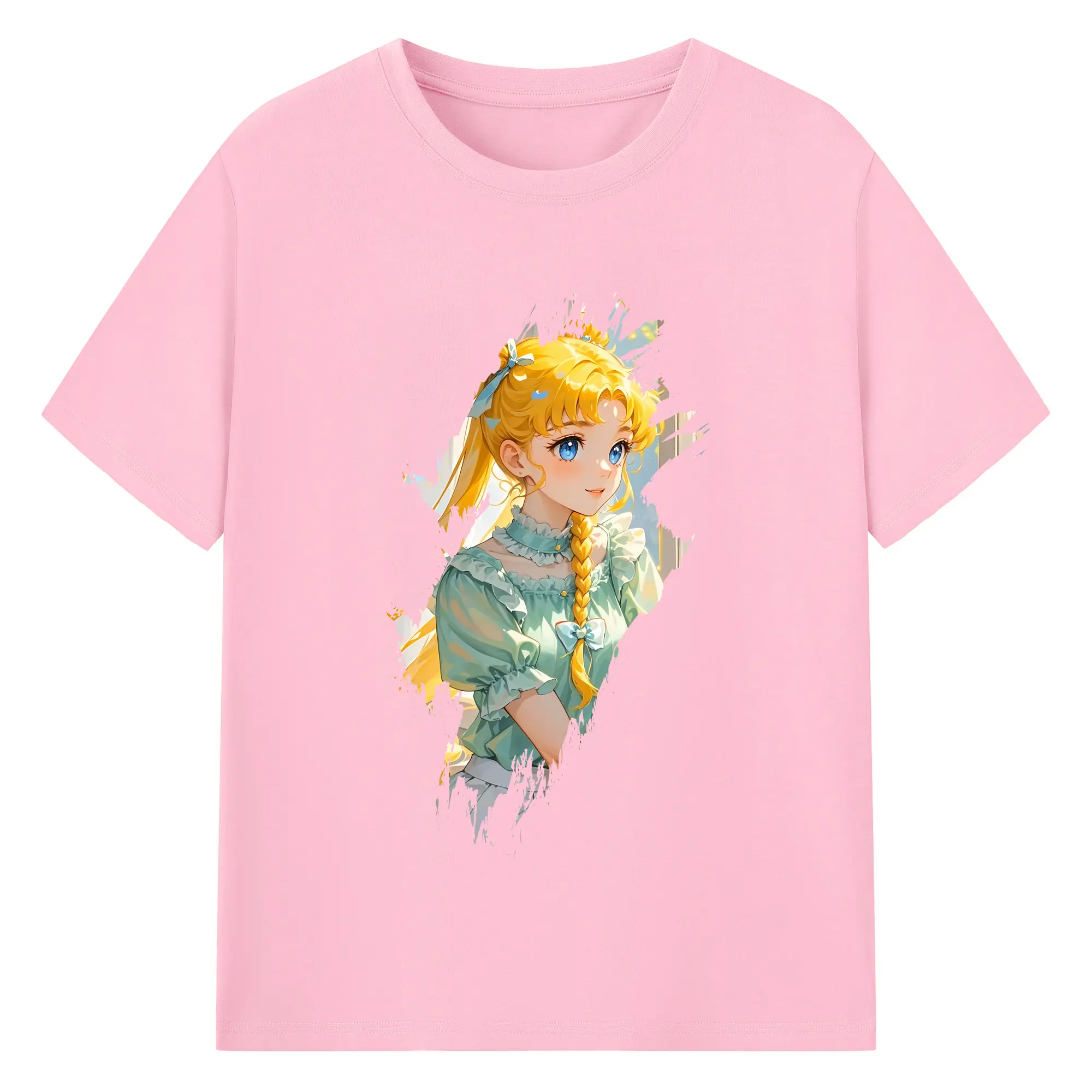 美少女戦士セーラームーン グッズ 月野 うさぎ - 綿100% 半袖Tシャツ ・ バックプリント ・ 快適 通気性 ・ 日常使い 散歩 スポーツ用