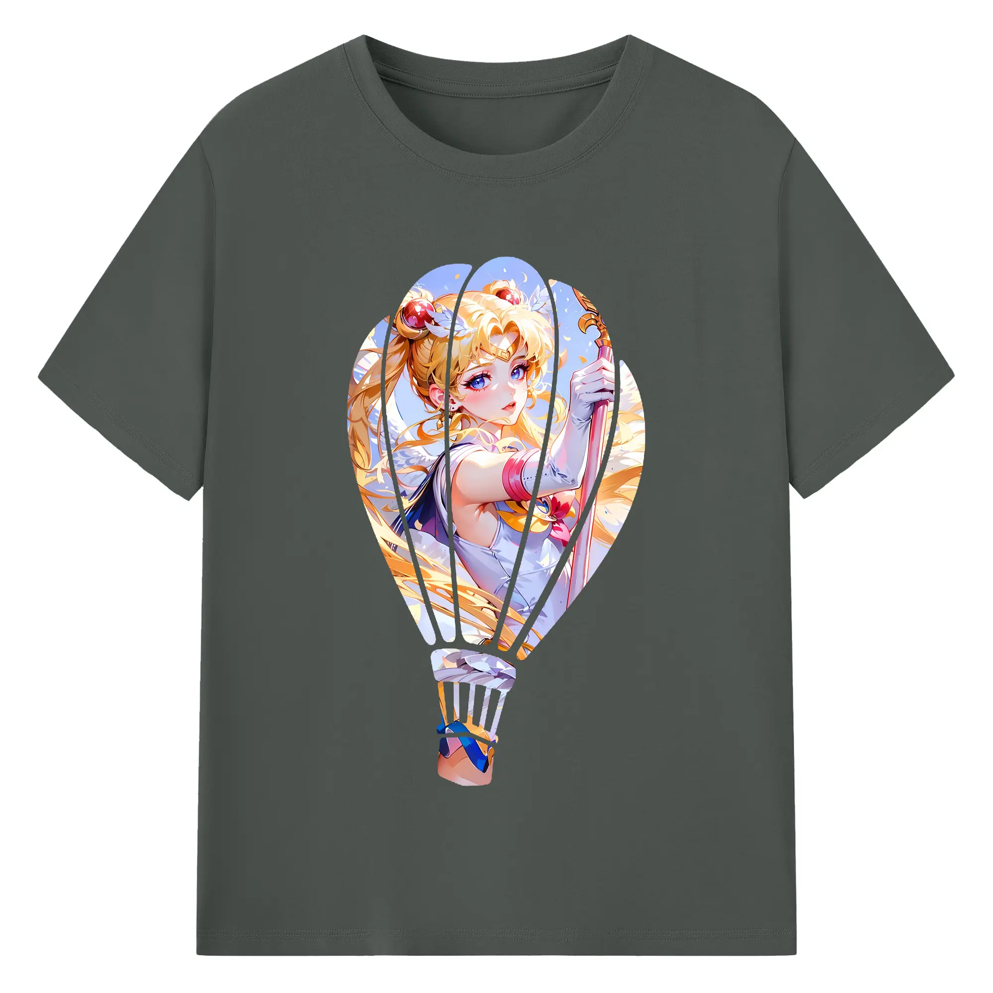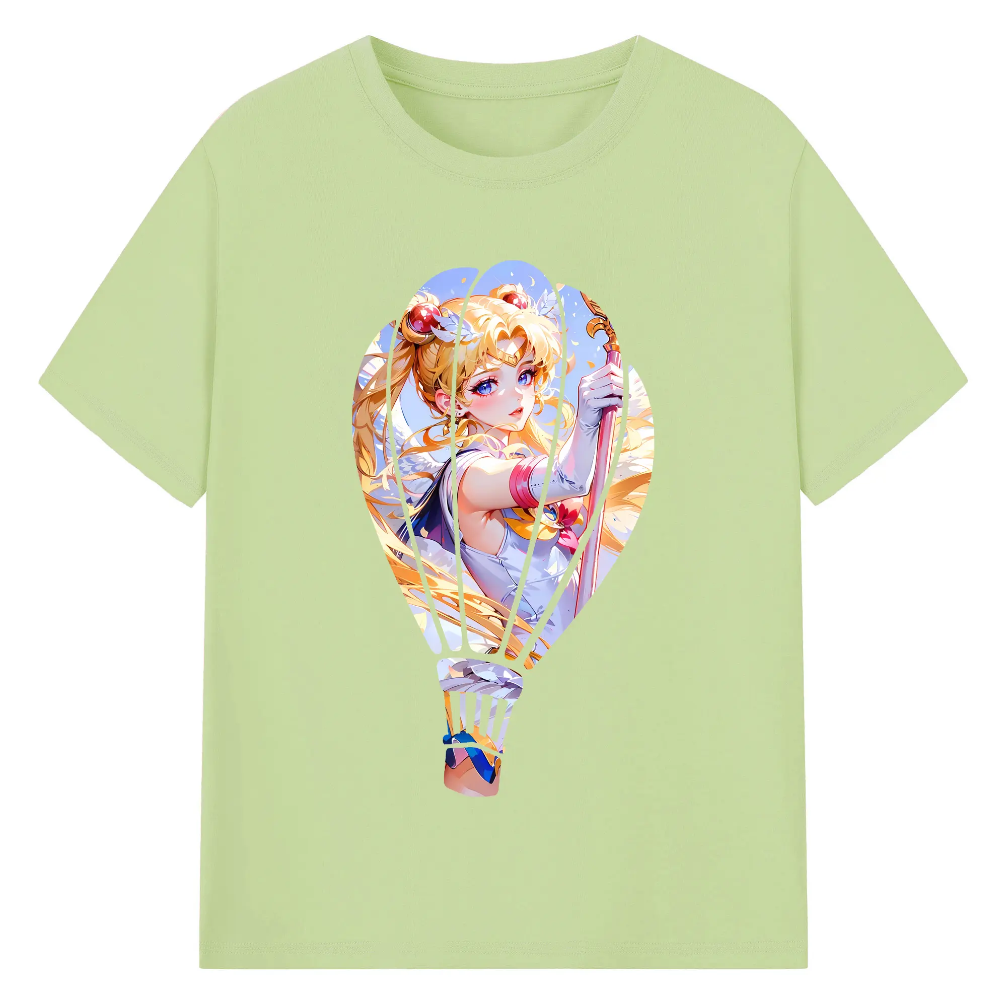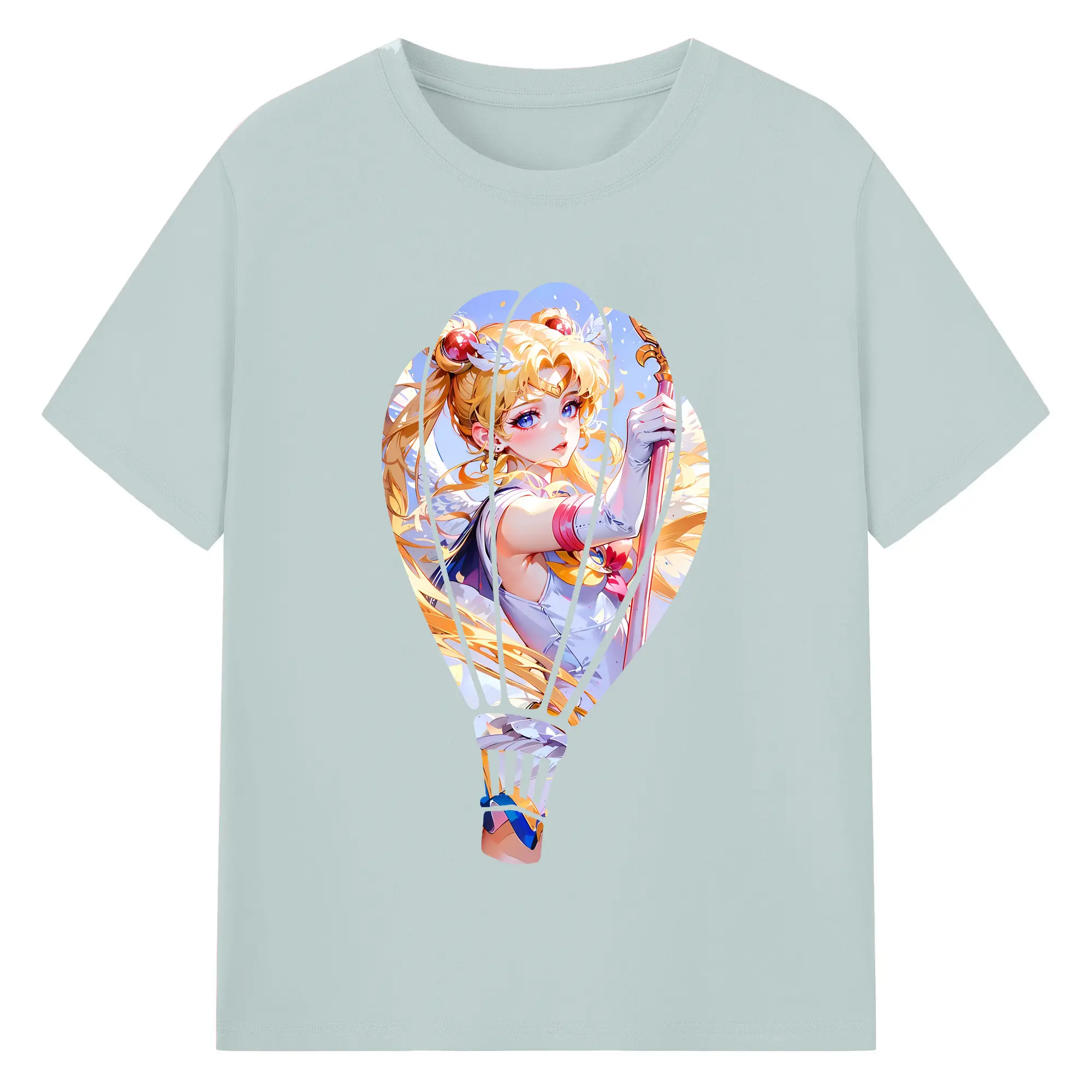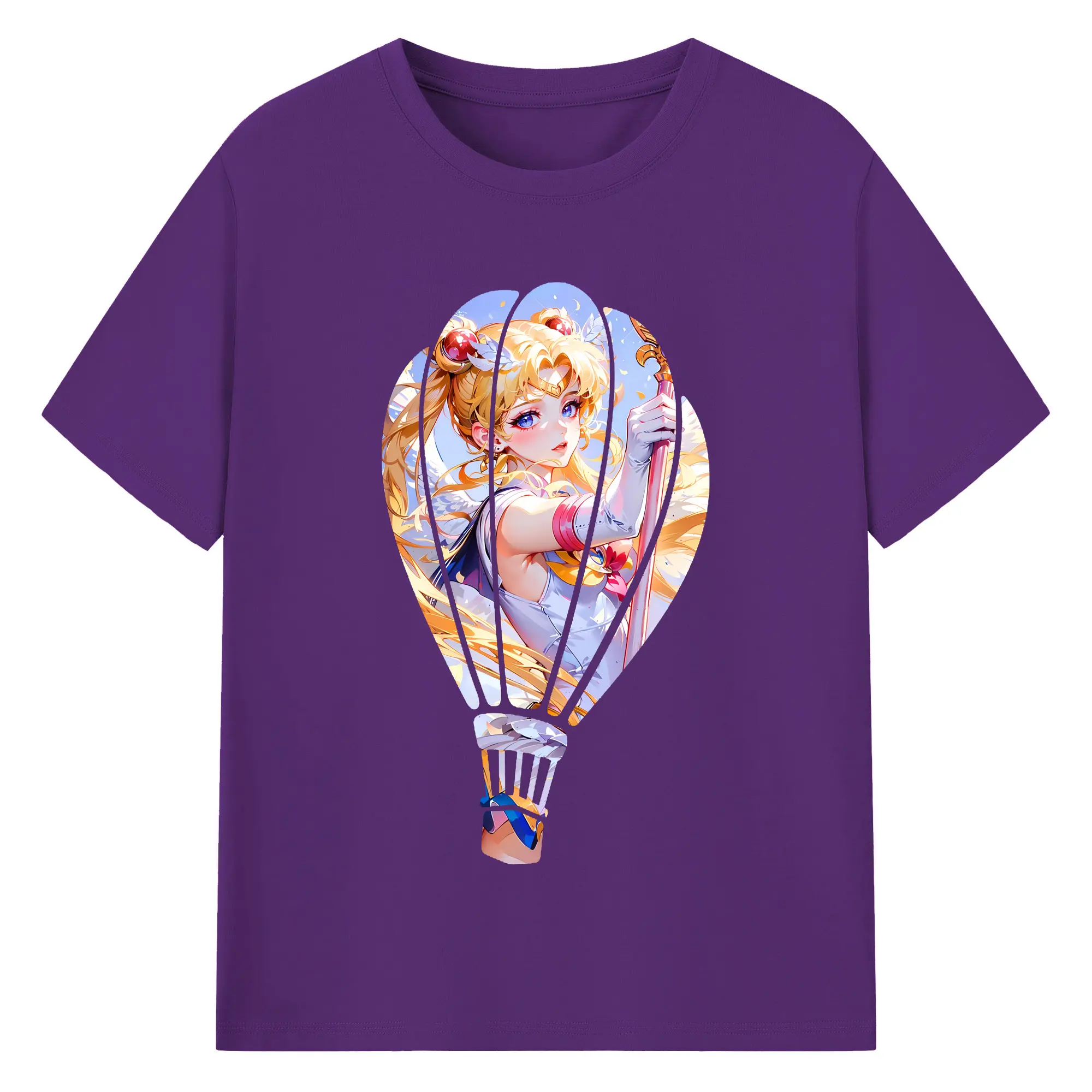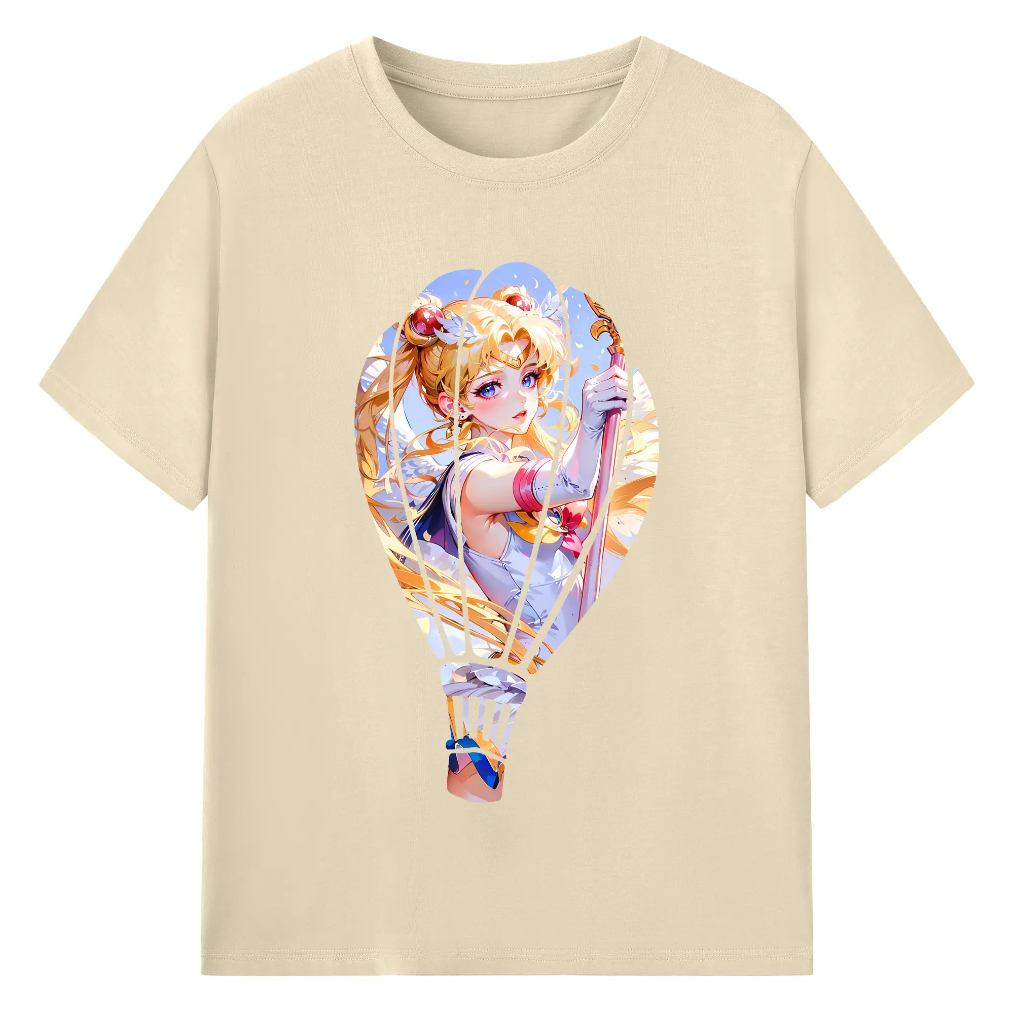 美少女戦士セーラームーン グッズ 月野 うさぎ - 綿100% 半袖Tシャツ ・ バックプリント ・ 快適 通気性 ・ 日常使い 散歩 スポーツ用