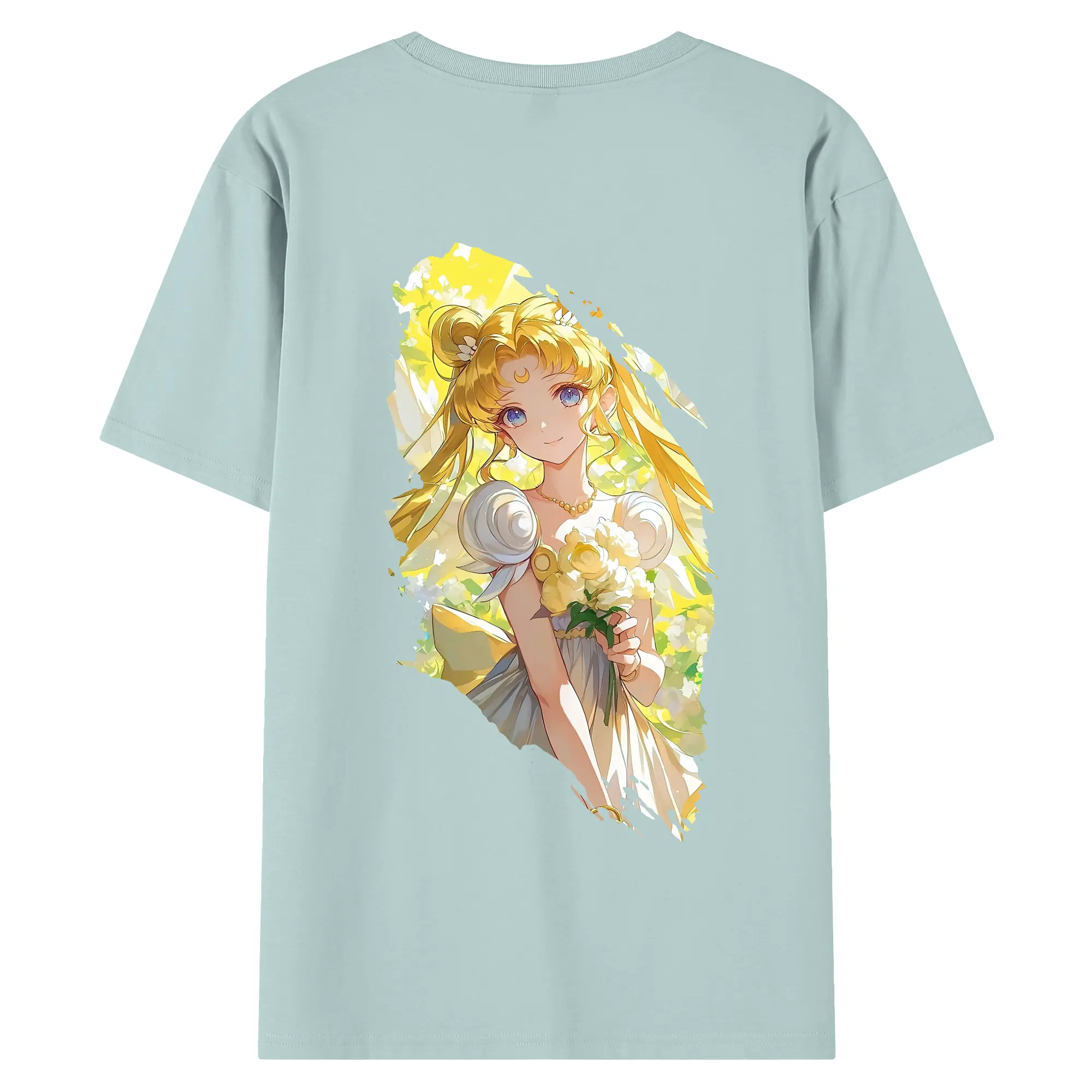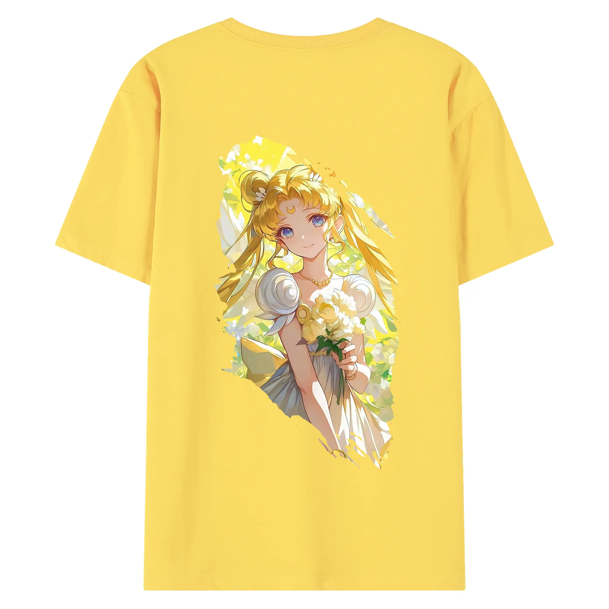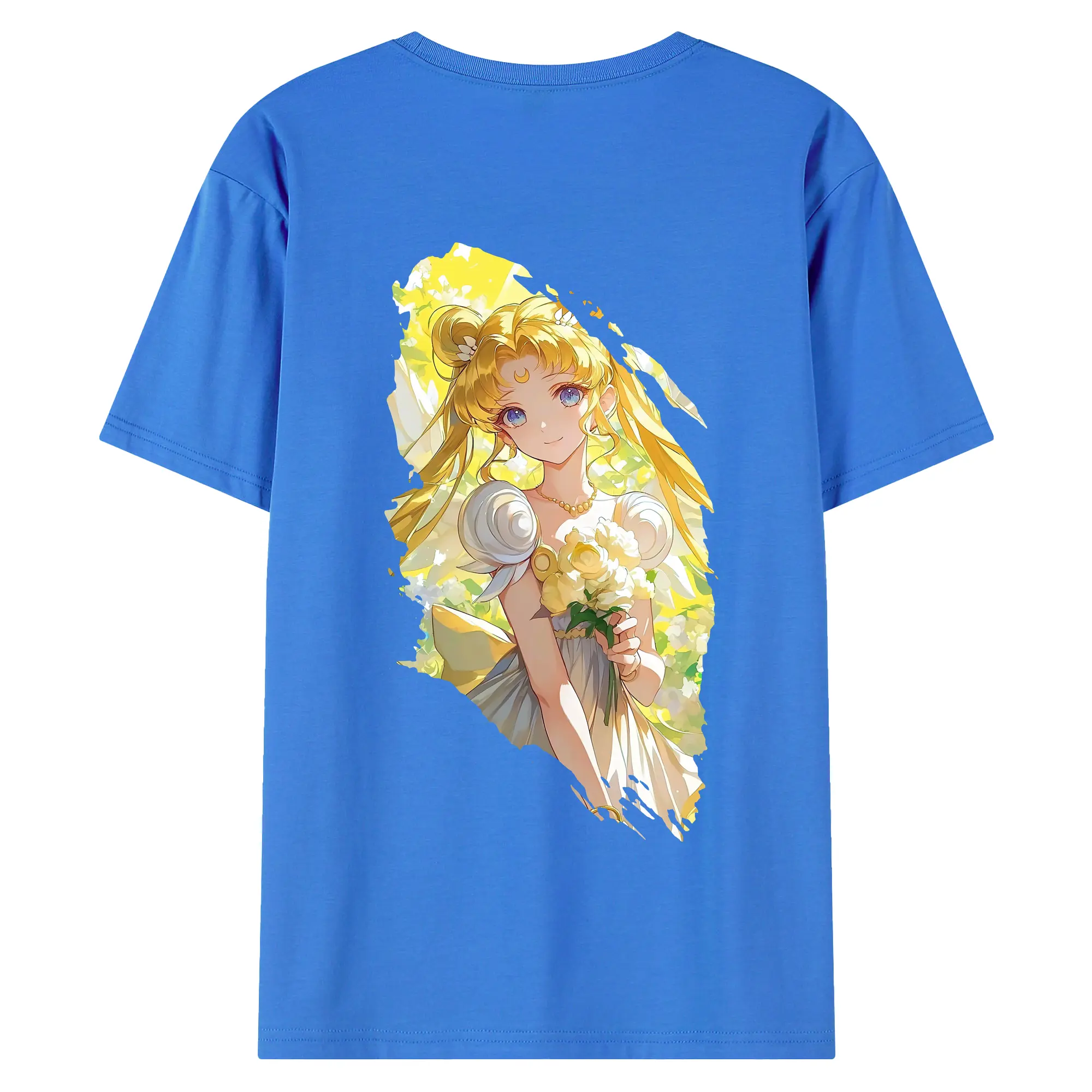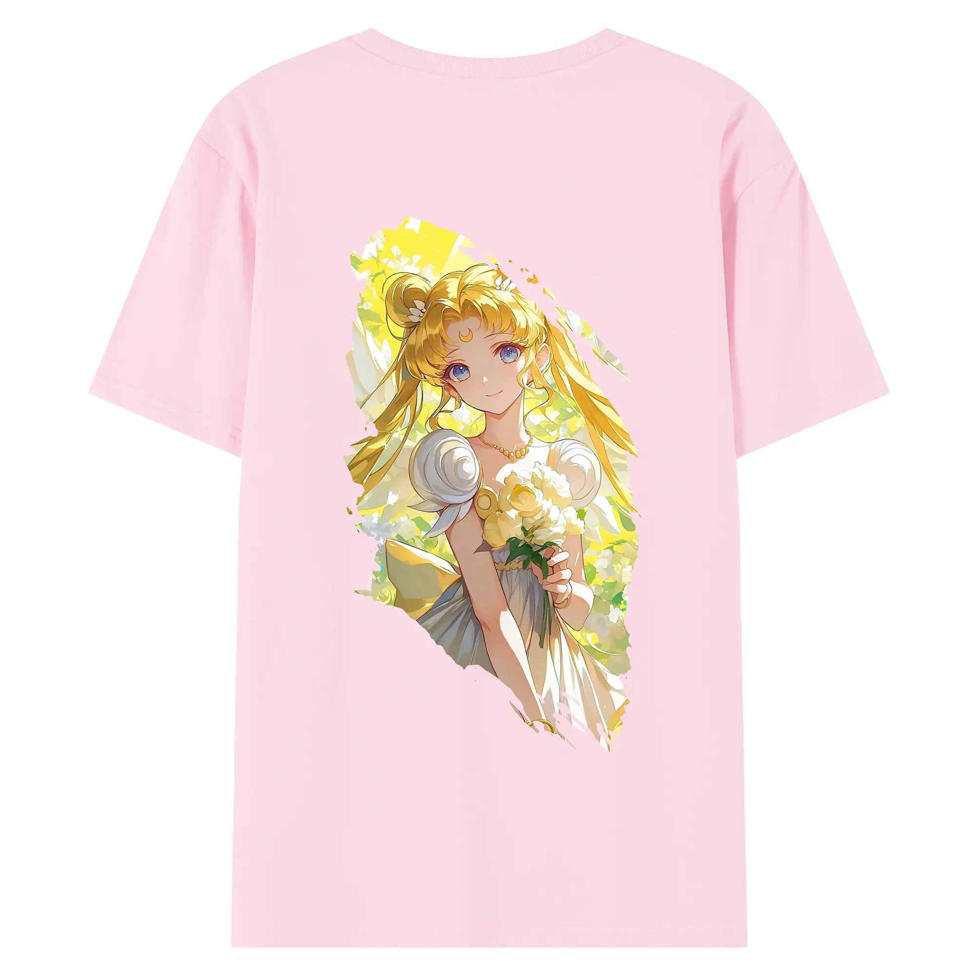 美少女戦士セーラームーン グッズ 月野 うさぎ - 綿100% 半袖Tシャツ ・ フロントプリント ・ 快適 通気性 ・ 日常使い 散歩 スポーツ用