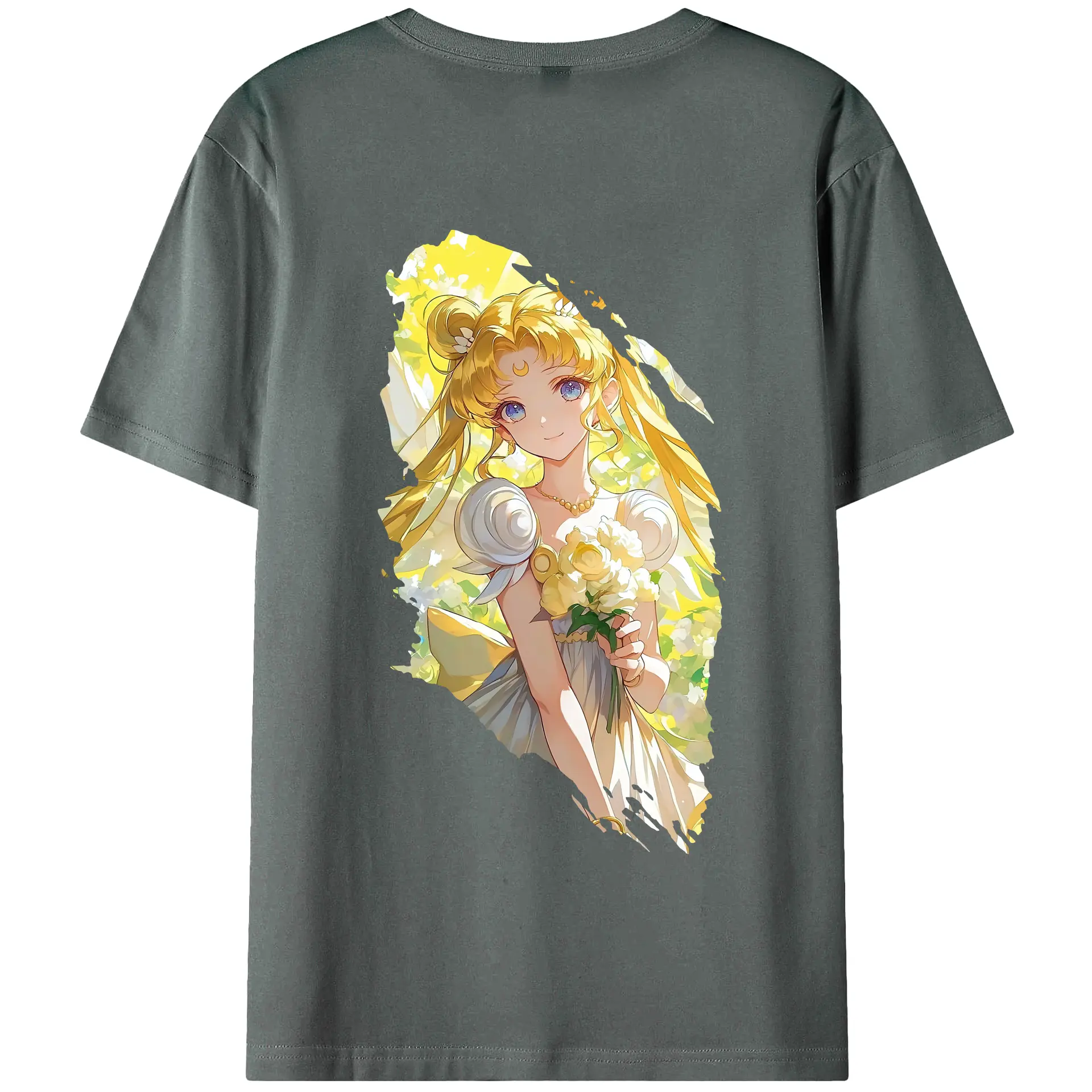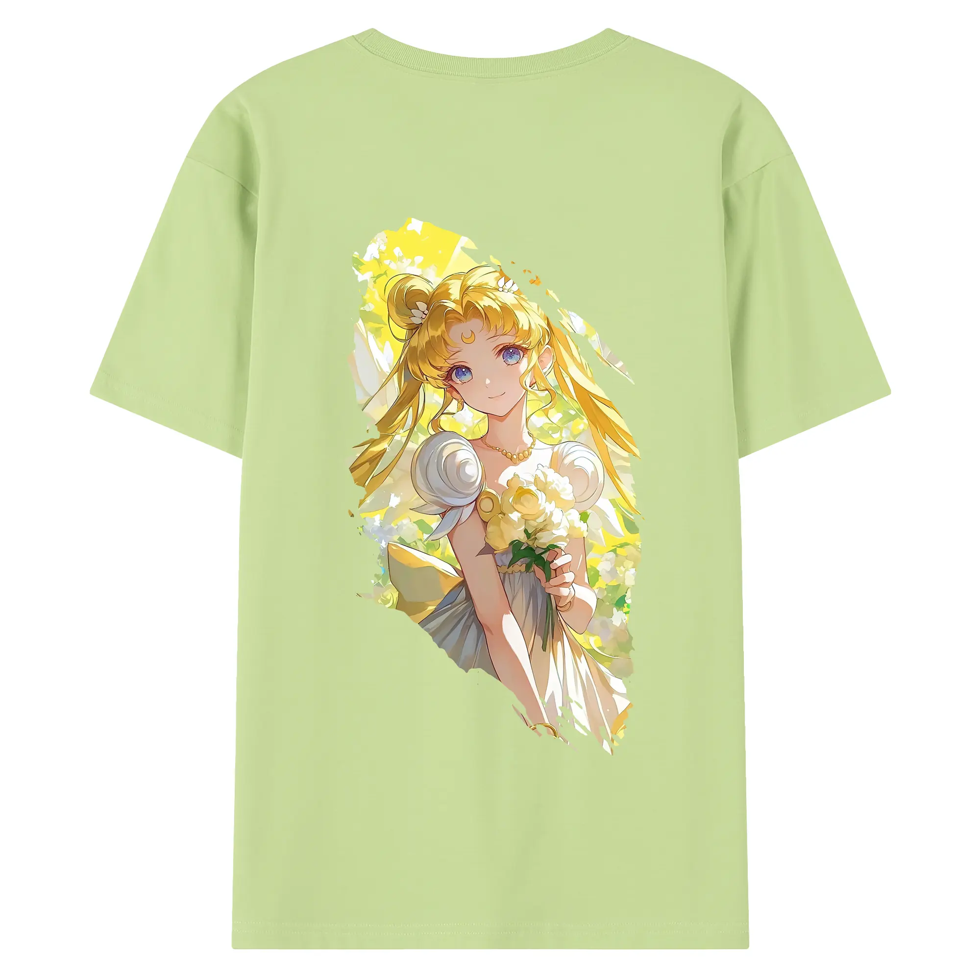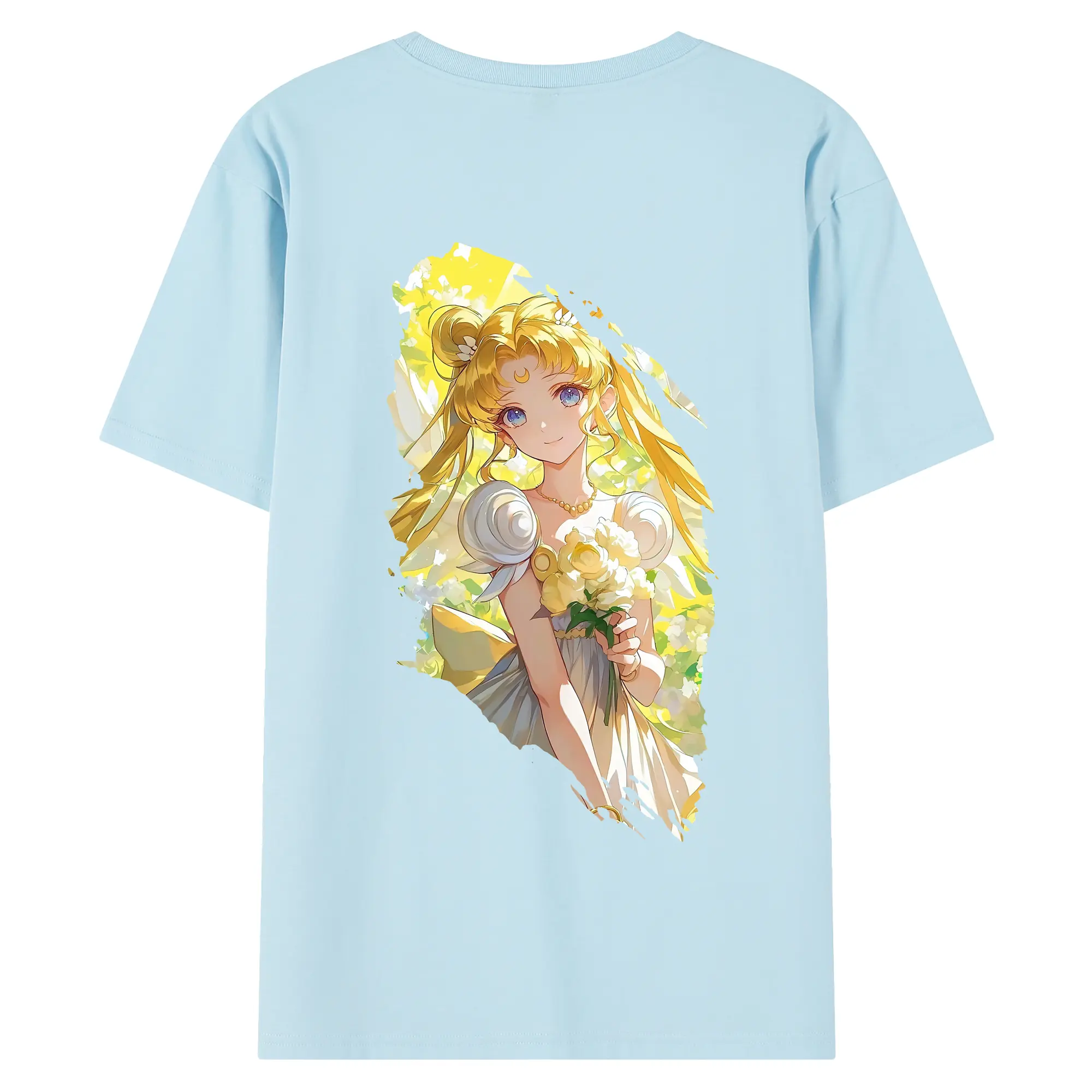 美少女戦士セーラームーン グッズ 月野 うさぎ - 綿100% 半袖Tシャツ ・ フロントプリント ・ 快適 通気性 ・ 日常使い 散歩 スポーツ用