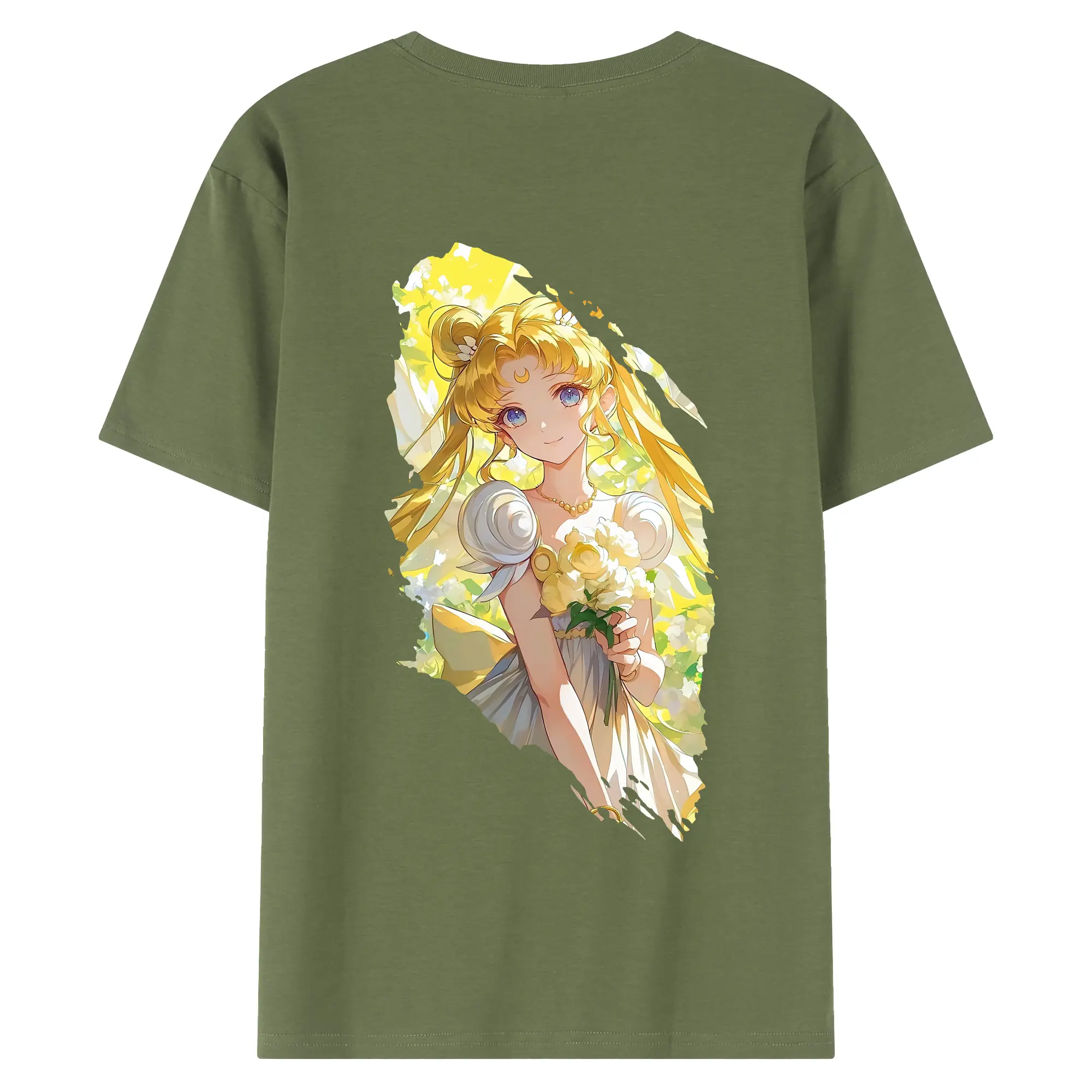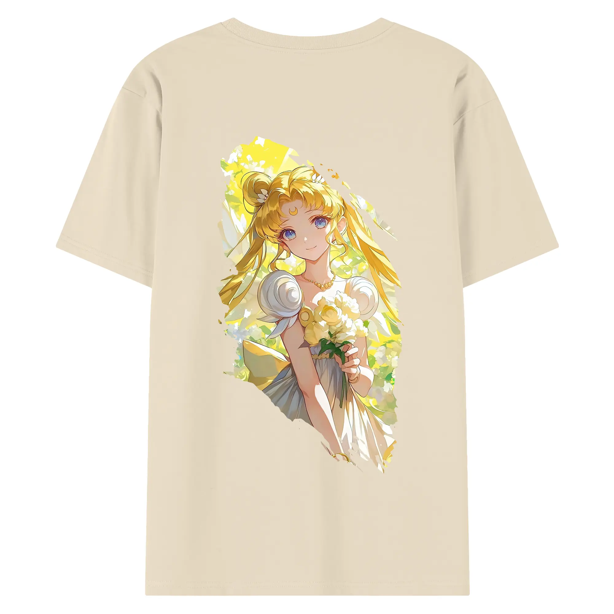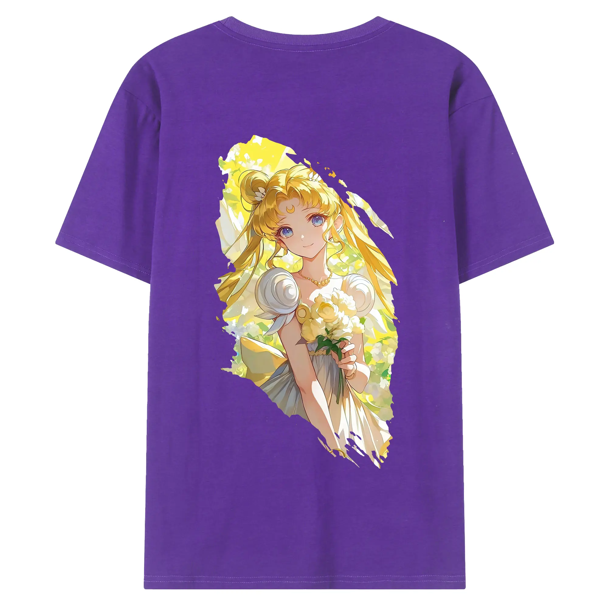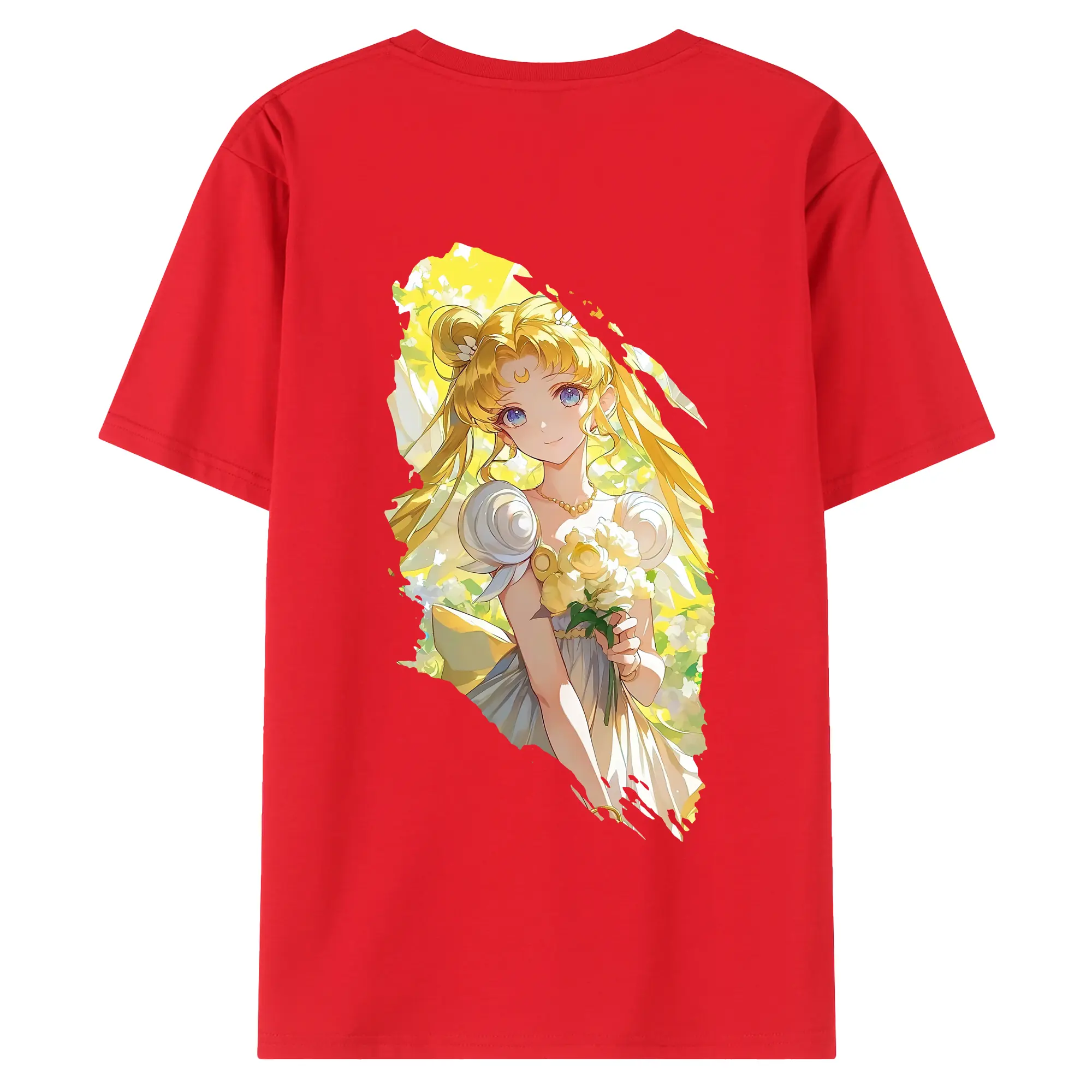 美少女戦士セーラームーン グッズ 月野 うさぎ - 綿100% 半袖Tシャツ ・ フロントプリント ・ 快適 通気性 ・ 日常使い 散歩 スポーツ用