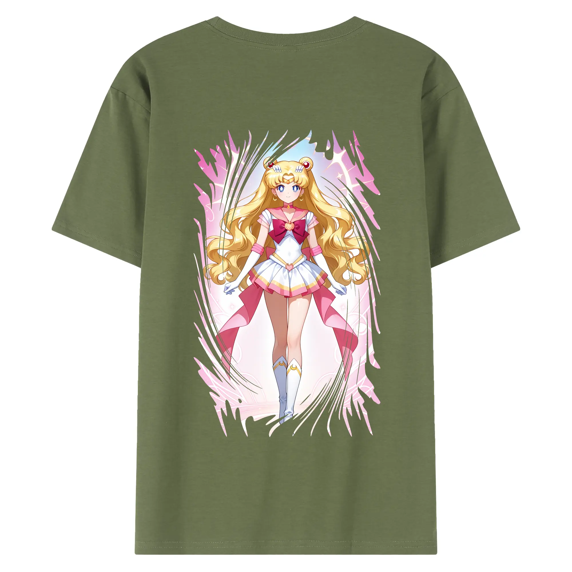 美少女戦士セーラームーン グッズ 月野 うさぎ - 綿100% 半袖Tシャツ ・ フロントプリント ・ 快適 通気性 ・ 日常使い 散歩 スポーツ用