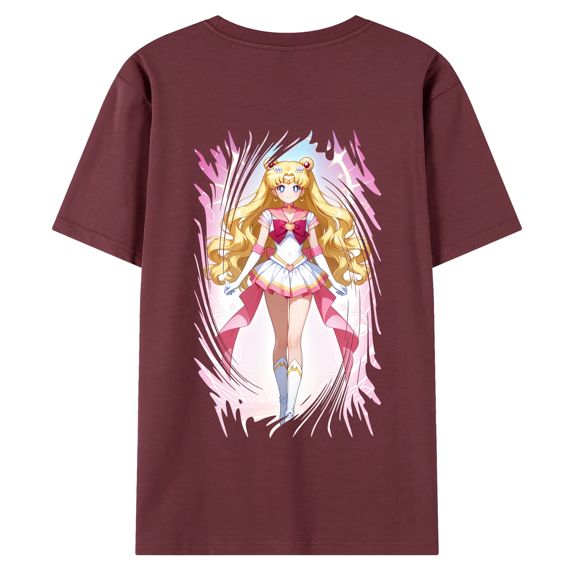 美少女戦士セーラームーン グッズ 月野 うさぎ - 綿100% ヴィンテージ風 半袖Tシャツ ・ 背面プリント ・ 柔らか肌触り ・ 通気性 快適 ・ スポーツ カジュアル 外出用