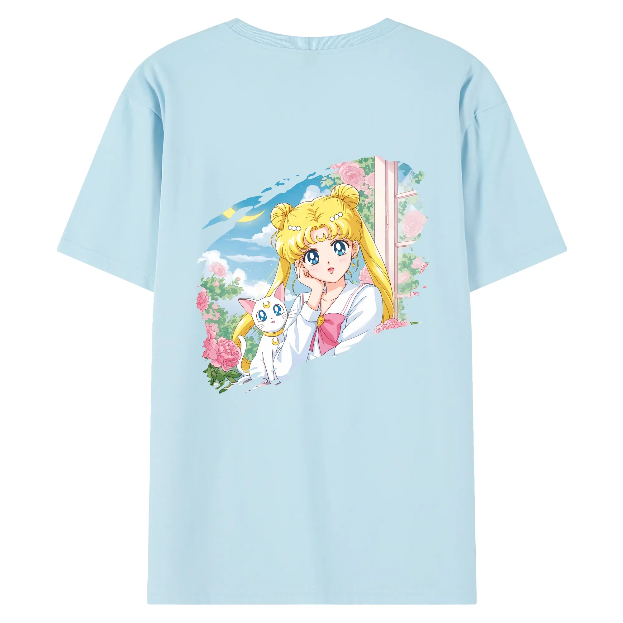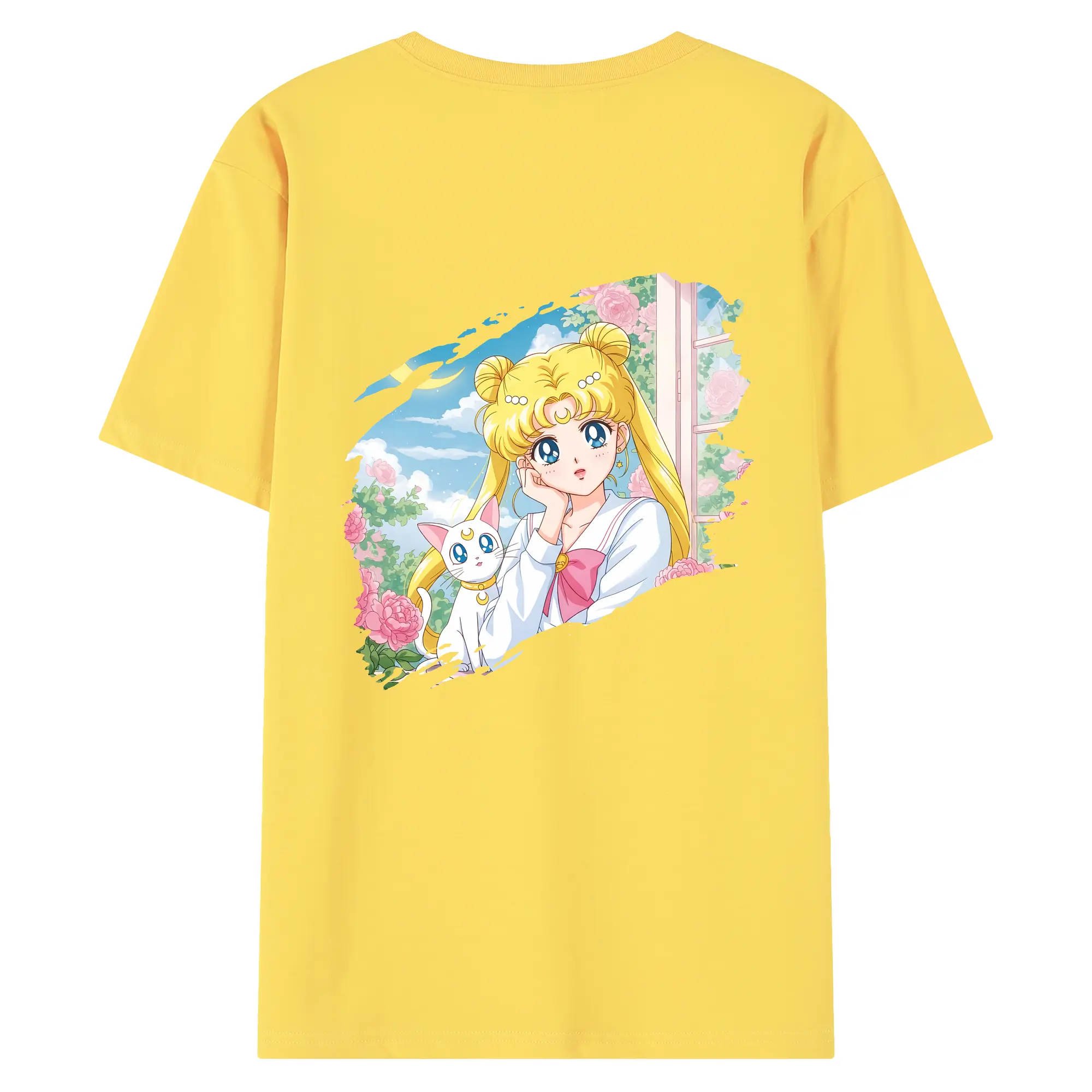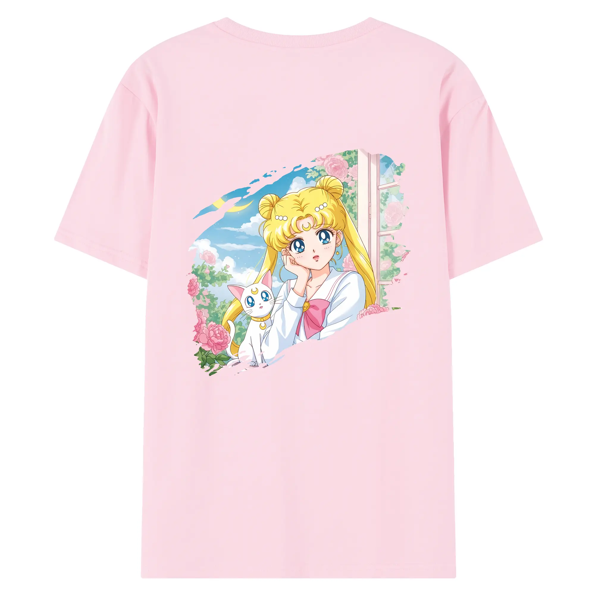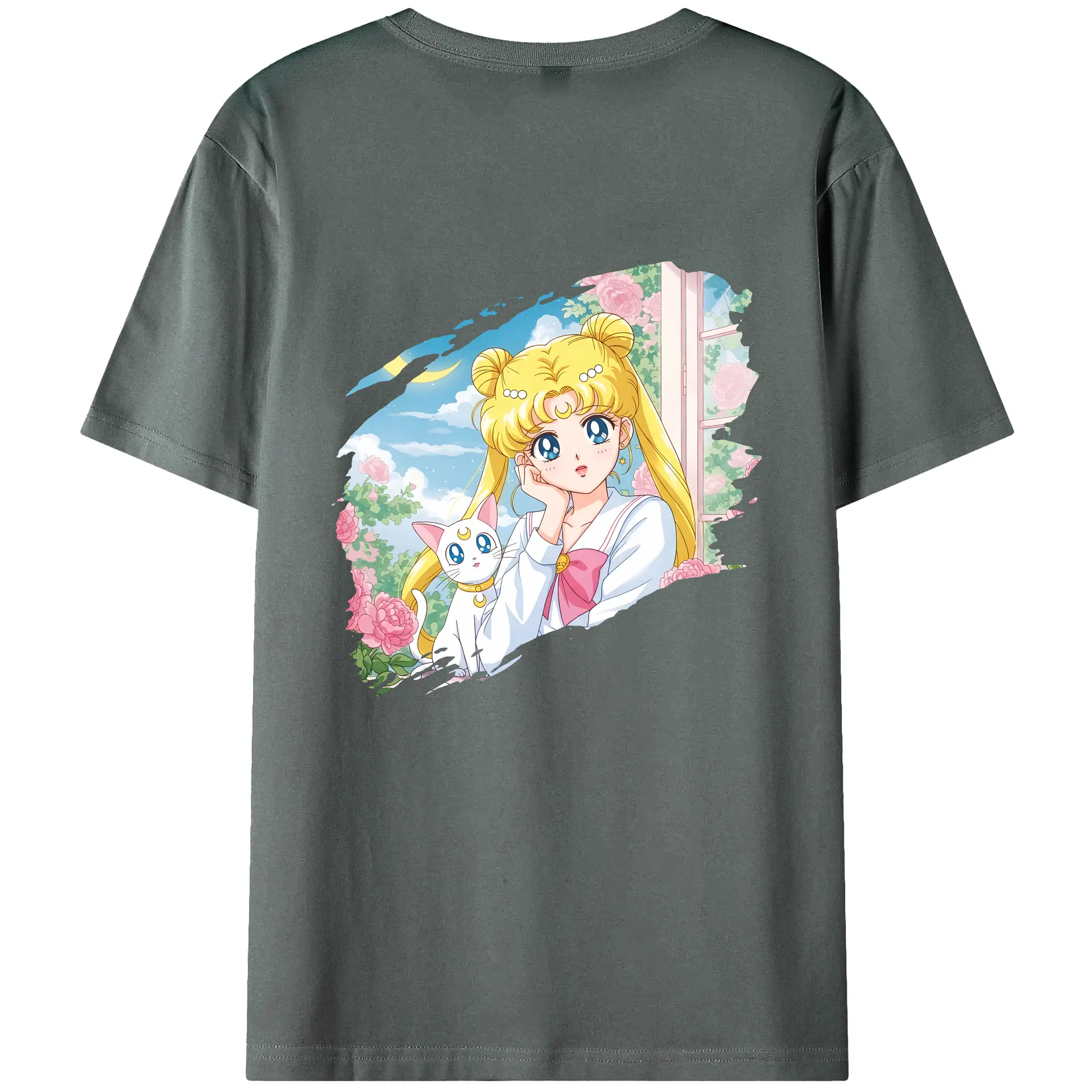 美少女戦士セーラームーン グッズ 月野 うさぎ - 綿100% 半袖Tシャツ ・ フロントプリント ・ 快適 通気性 ・ 日常使い 散歩 スポーツ用