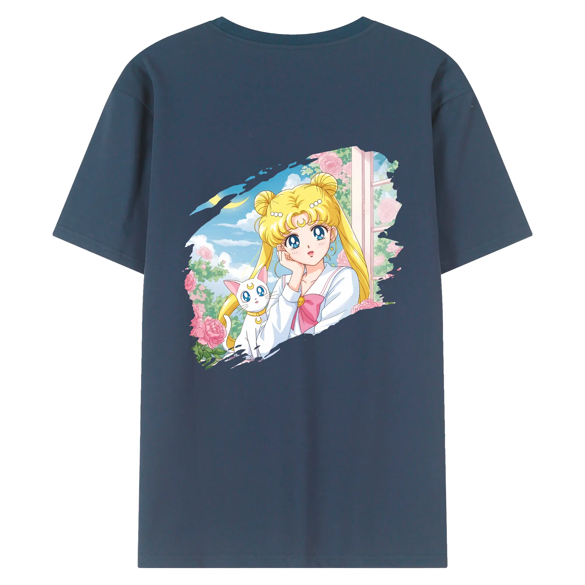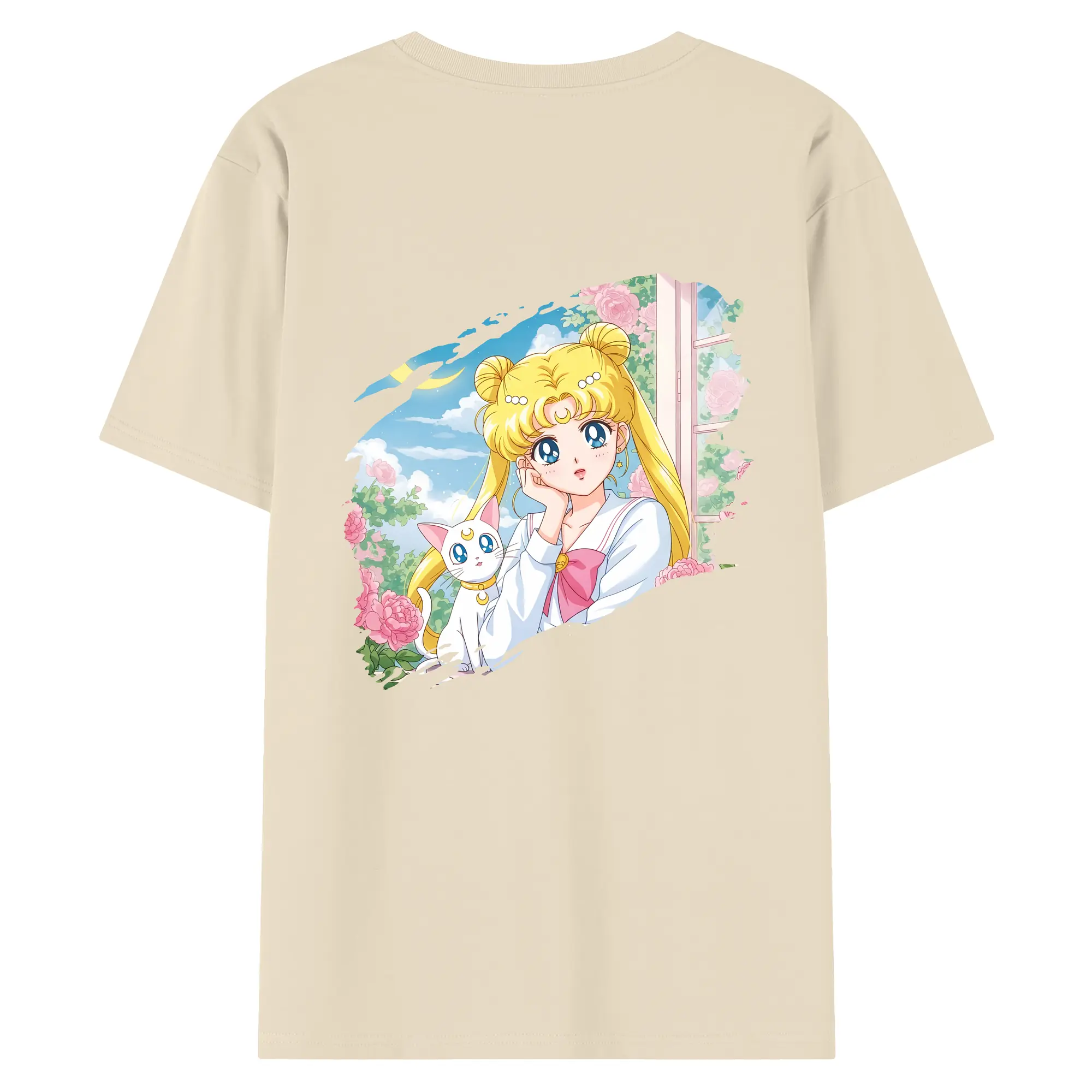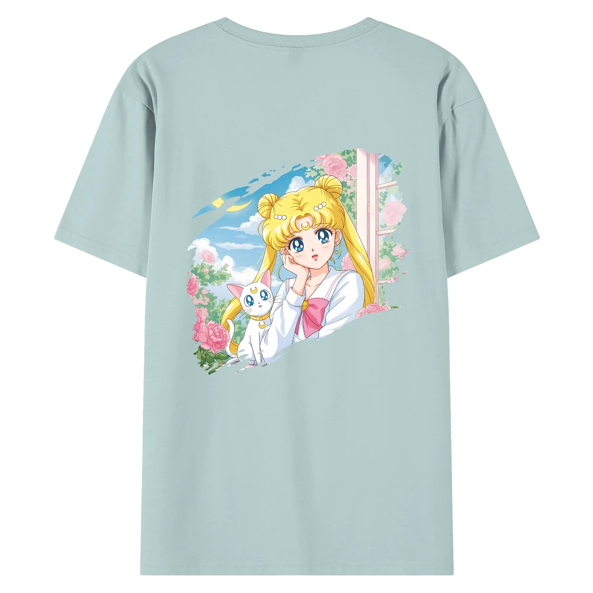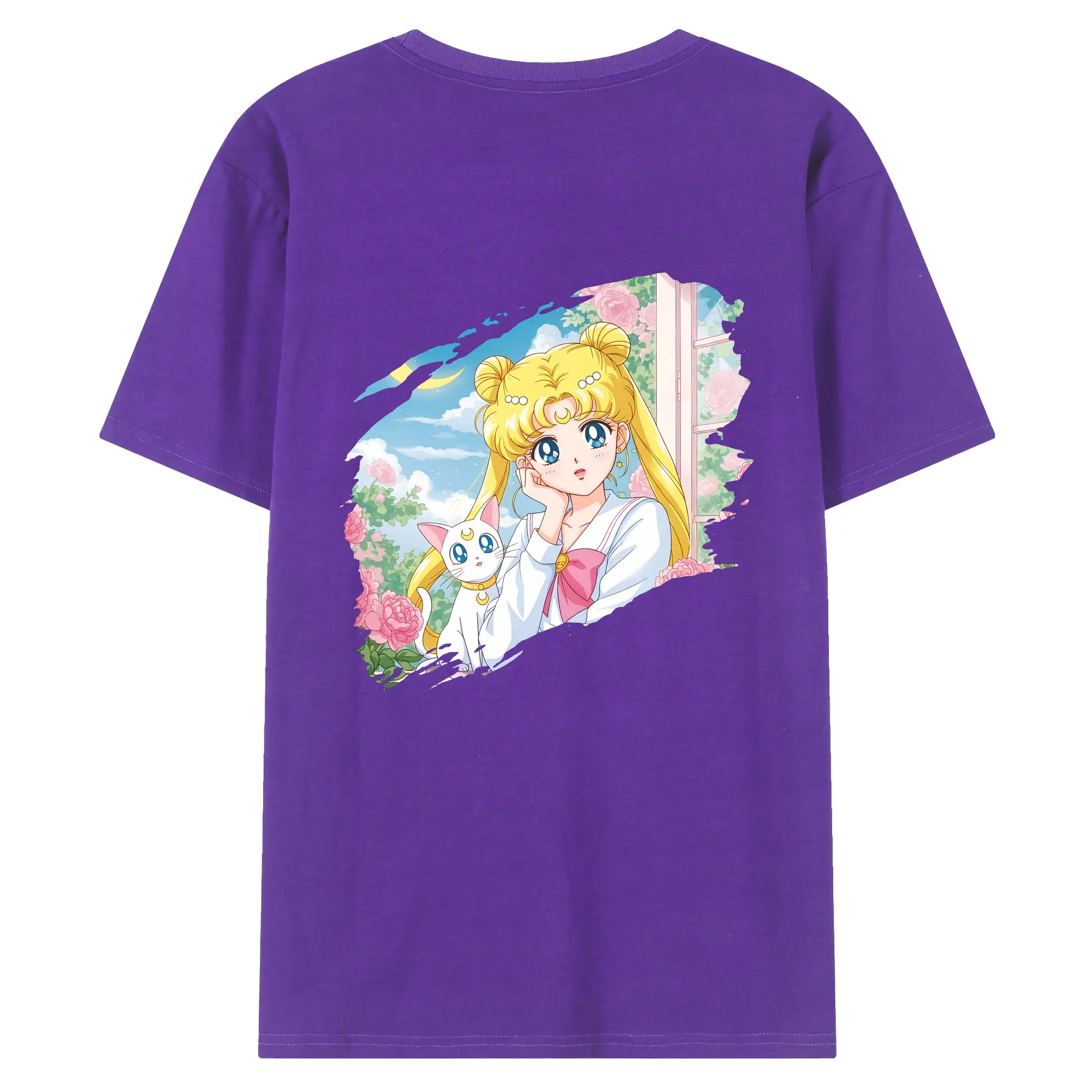 美少女戦士セーラームーン グッズ 月野 うさぎ - 綿100% 半袖Tシャツ ・ フロントプリント ・ 快適 通気性 ・ 日常使い 散歩 スポーツ用