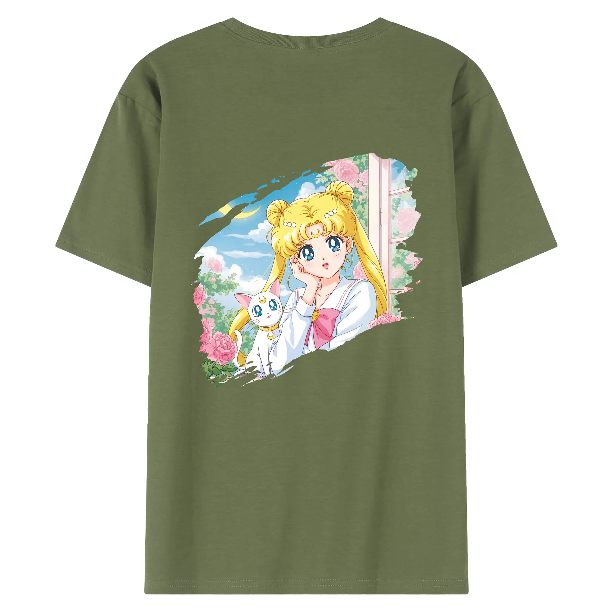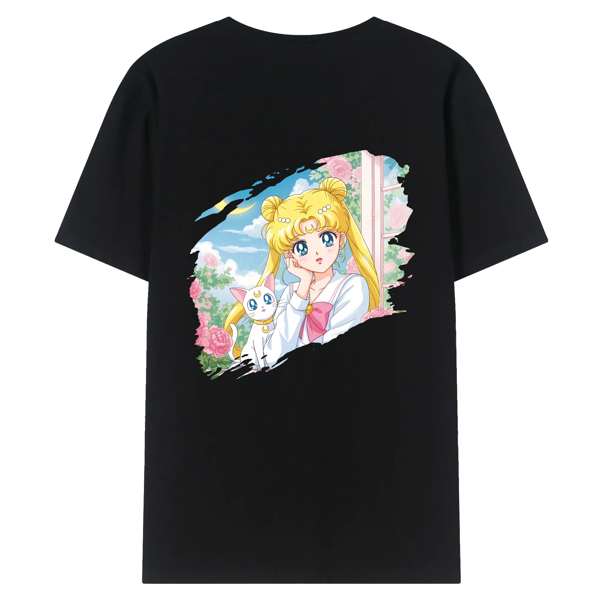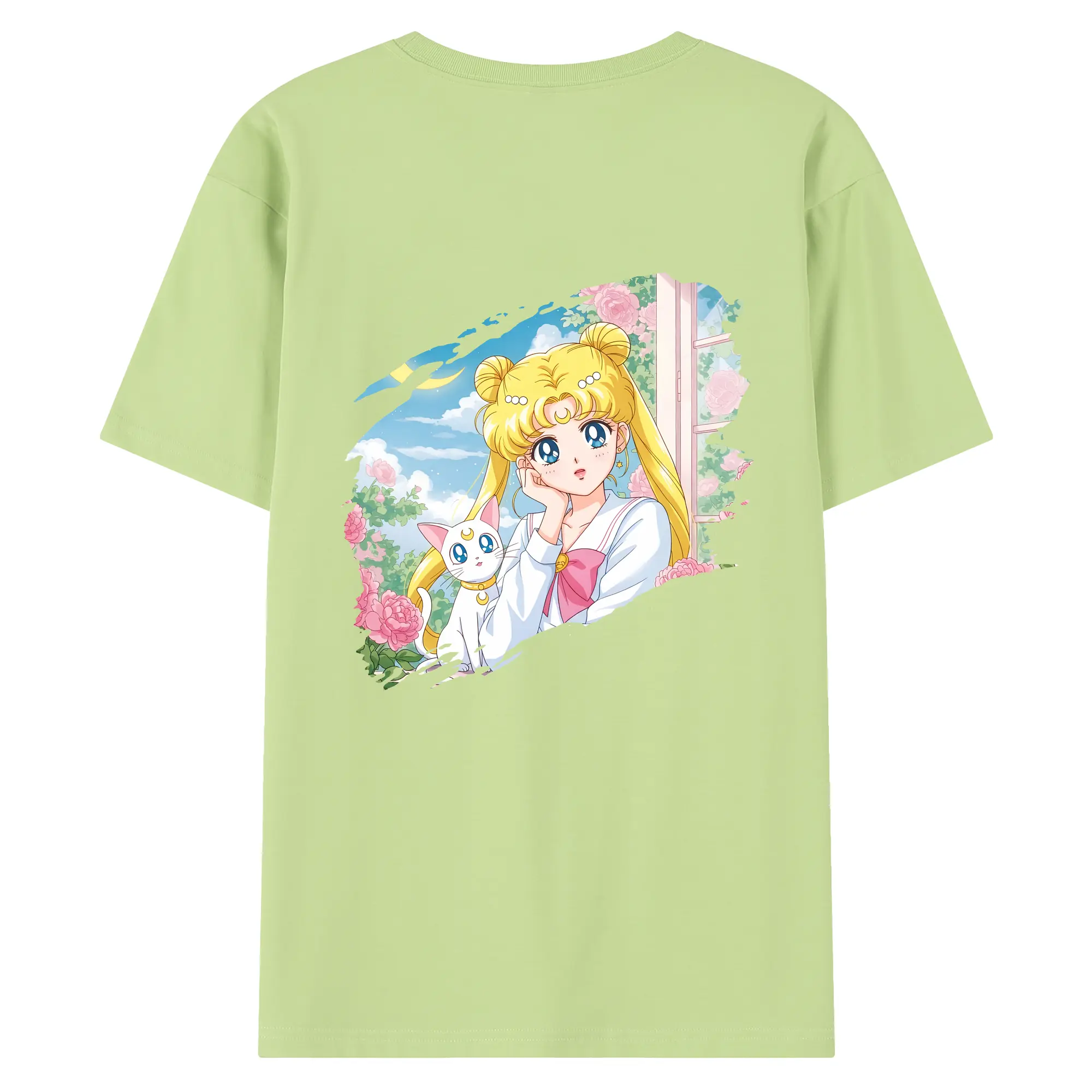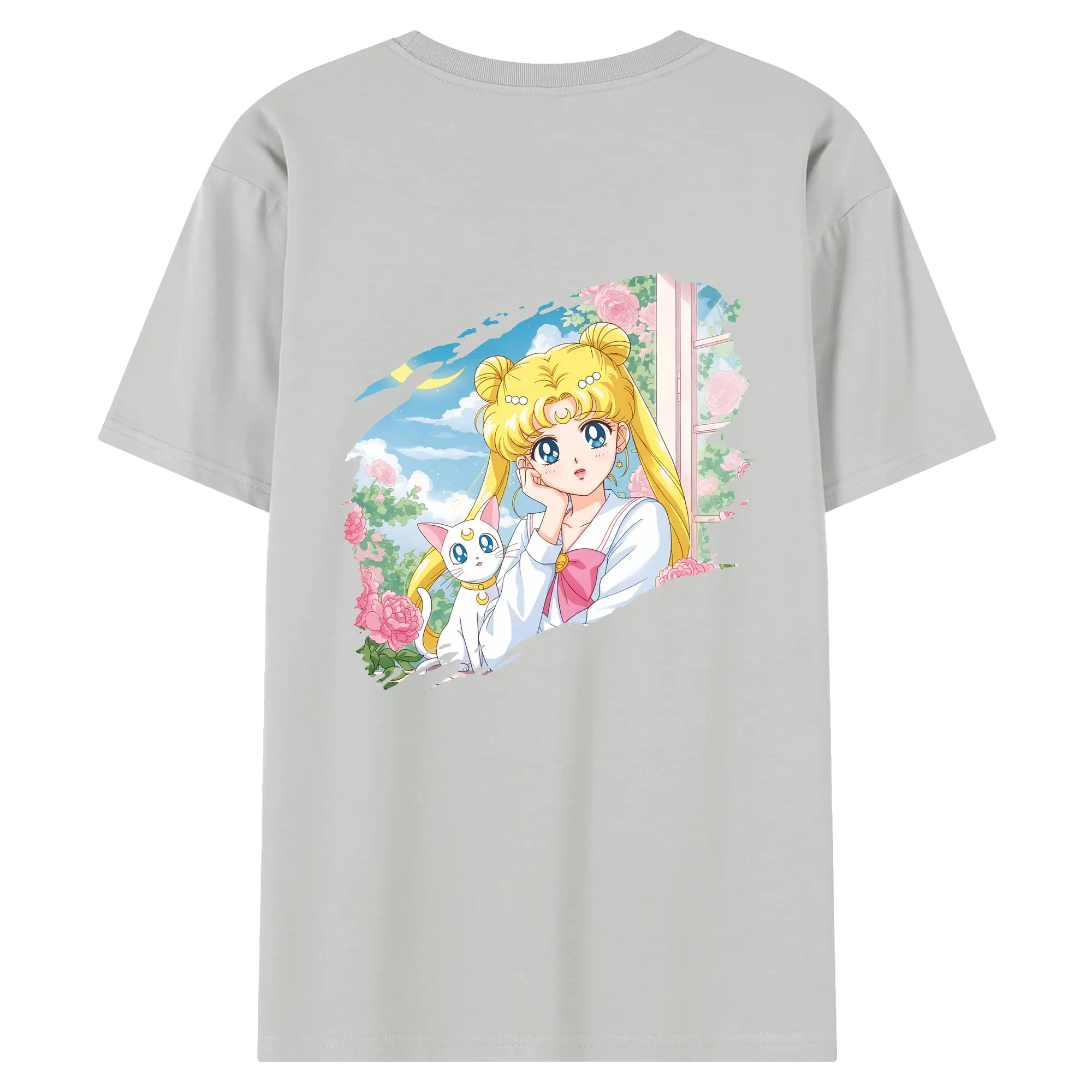 美少女戦士セーラームーン グッズ 月野 うさぎ - 綿100% 半袖Tシャツ ・ フロントプリント ・ 快適 通気性 ・ 日常使い 散歩 スポーツ用