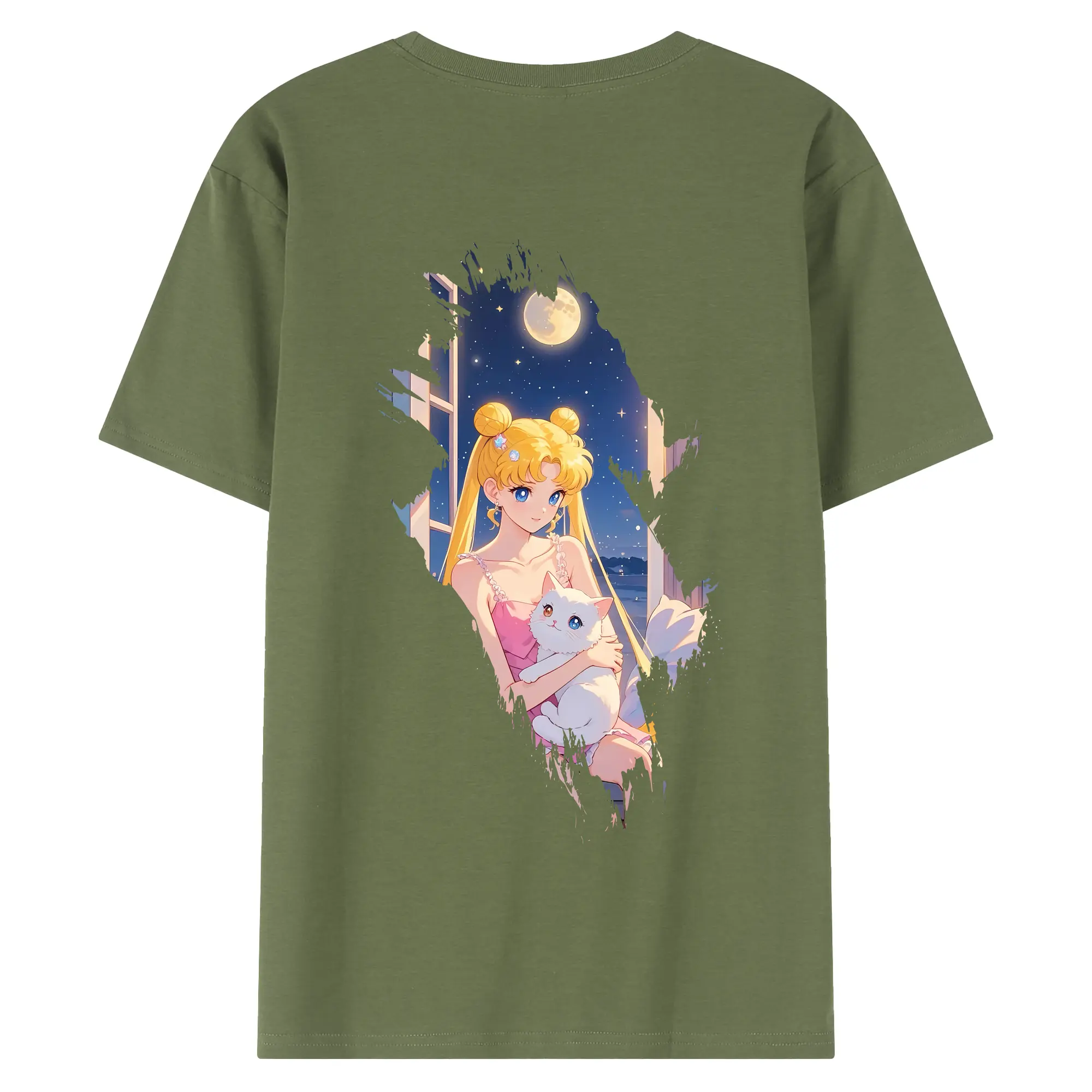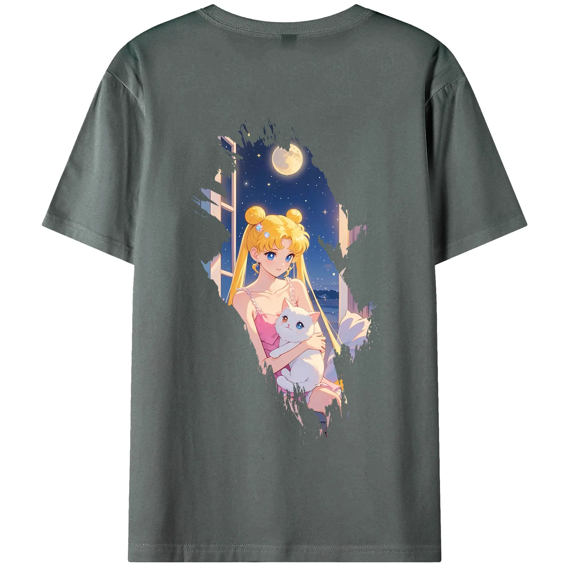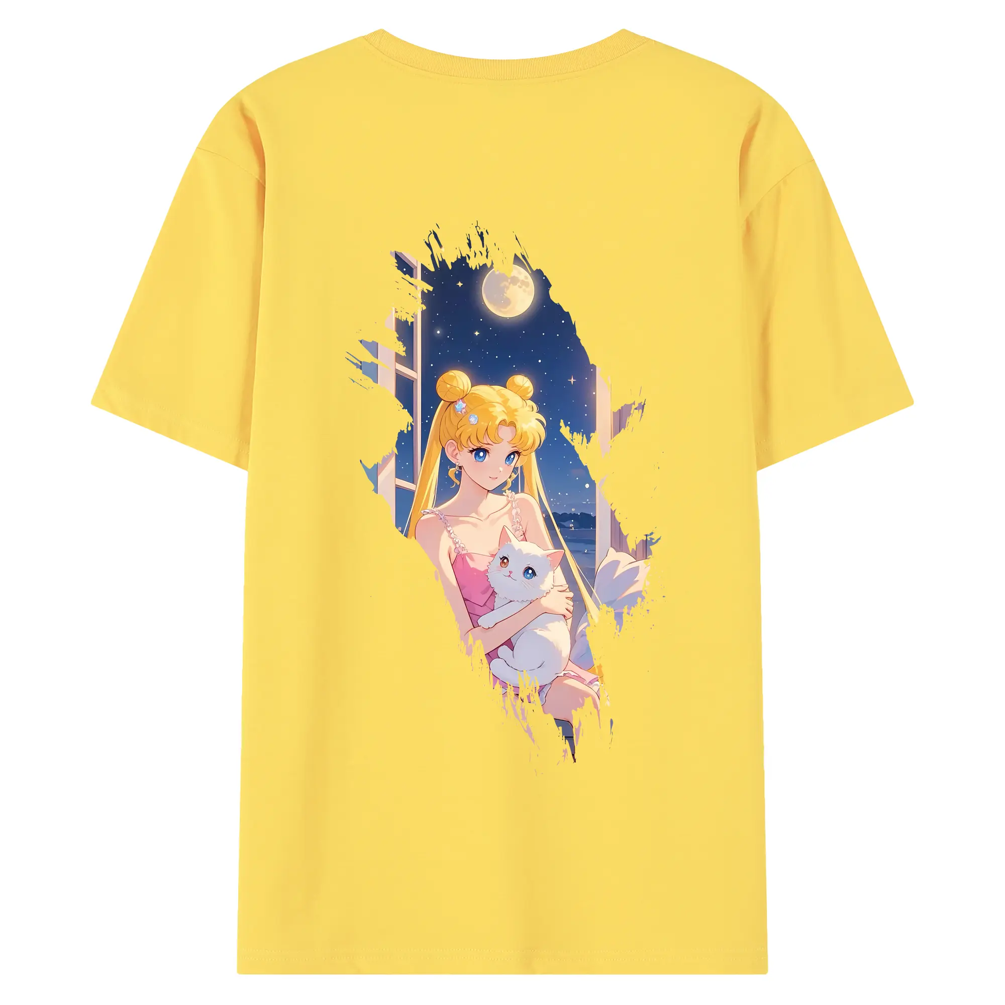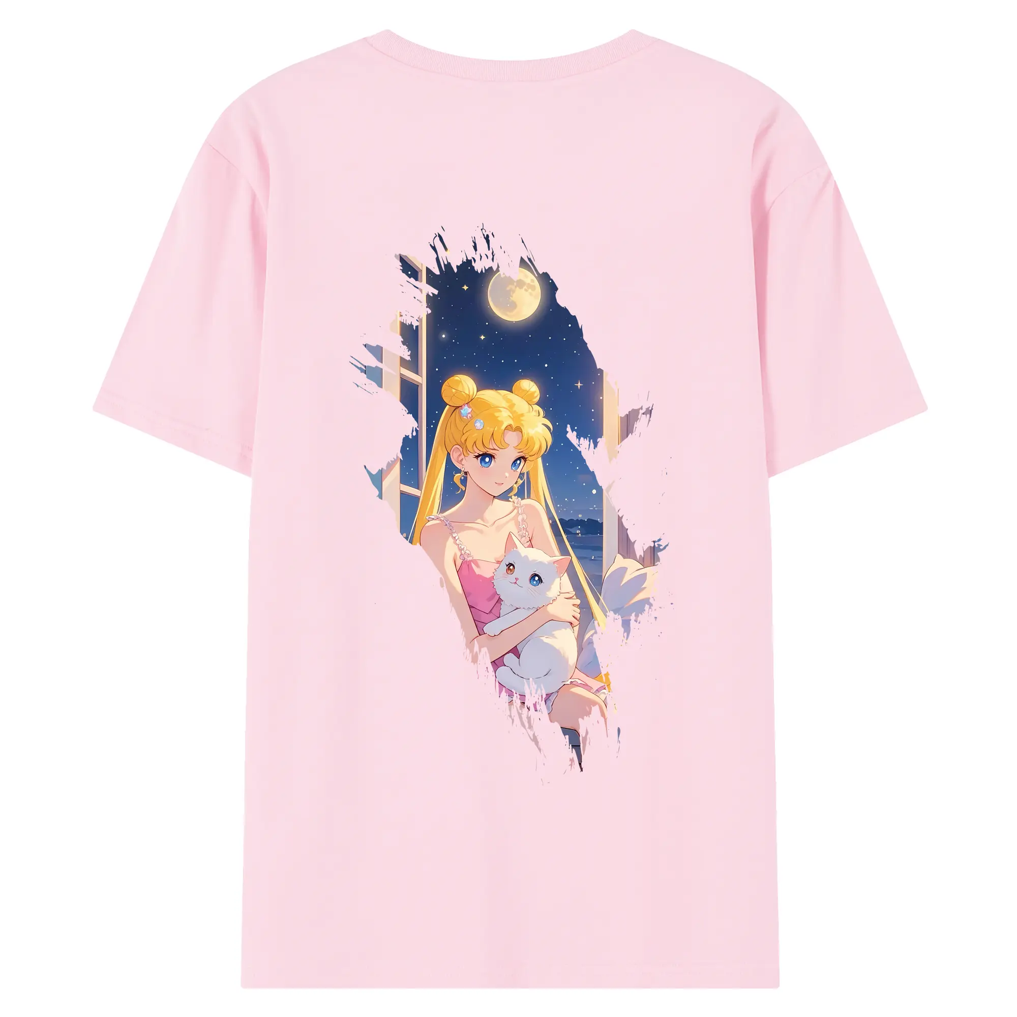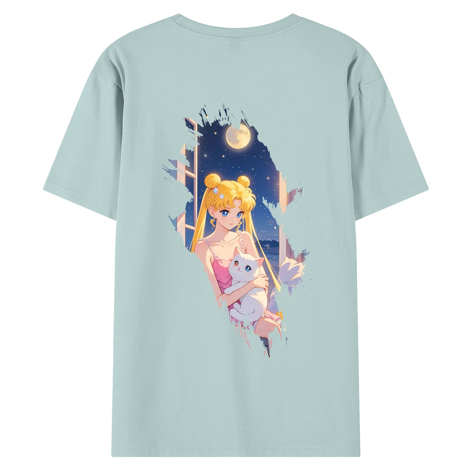 美少女戦士セーラームーン グッズ 月野 うさぎ - 綿100% 半袖Tシャツ ・ フロントプリント ・ 快適 通気性 ・ 日常使い 散歩 スポーツ用