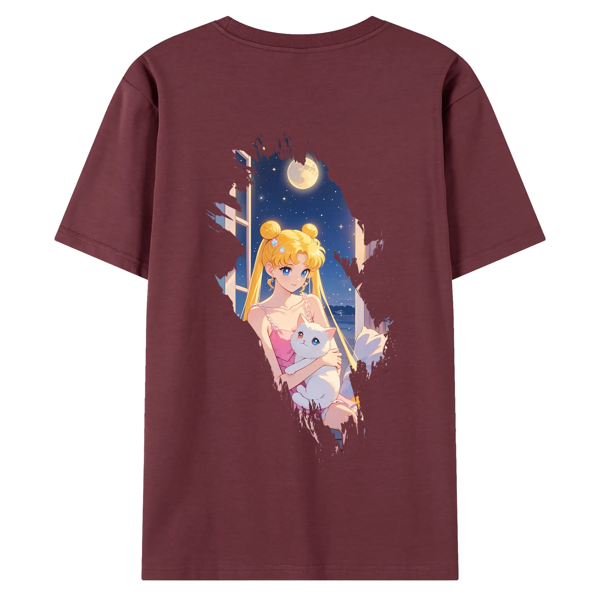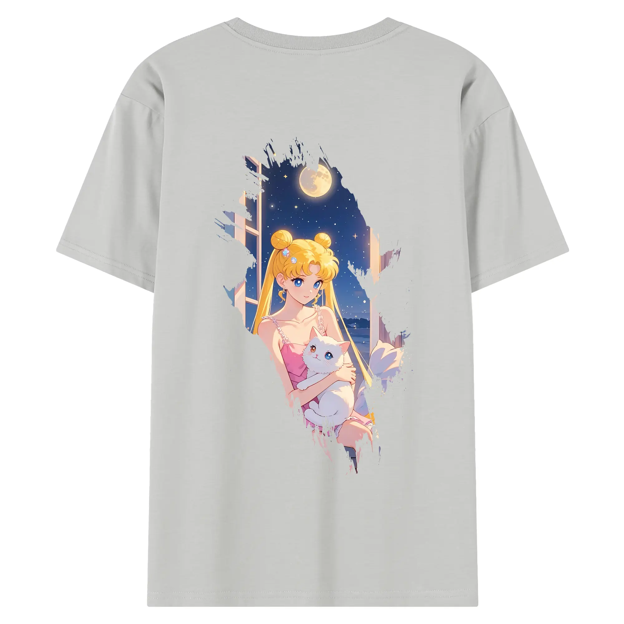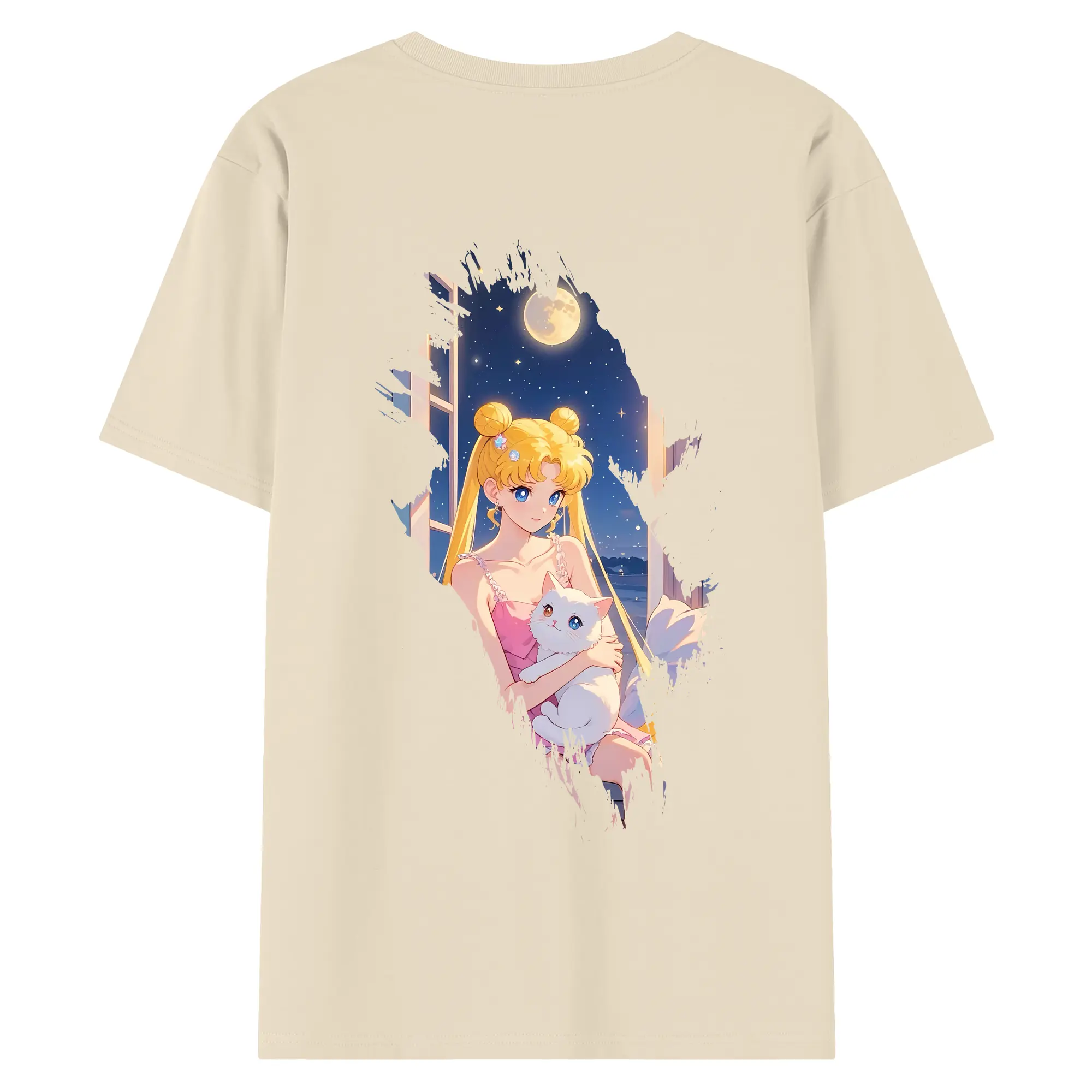 美少女戦士セーラームーン グッズ 月野 うさぎ - 綿100% ヴィンテージ風 半袖Tシャツ ・ 背面プリント ・ 柔らか肌触り ・ 通気性 快適 ・ スポーツ カジュアル 外出用